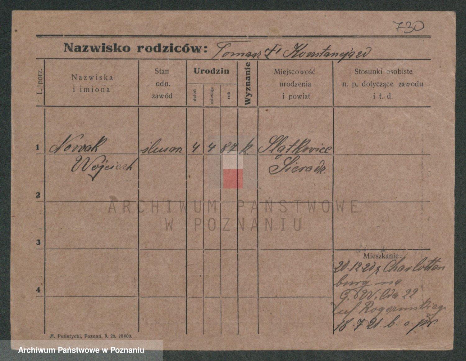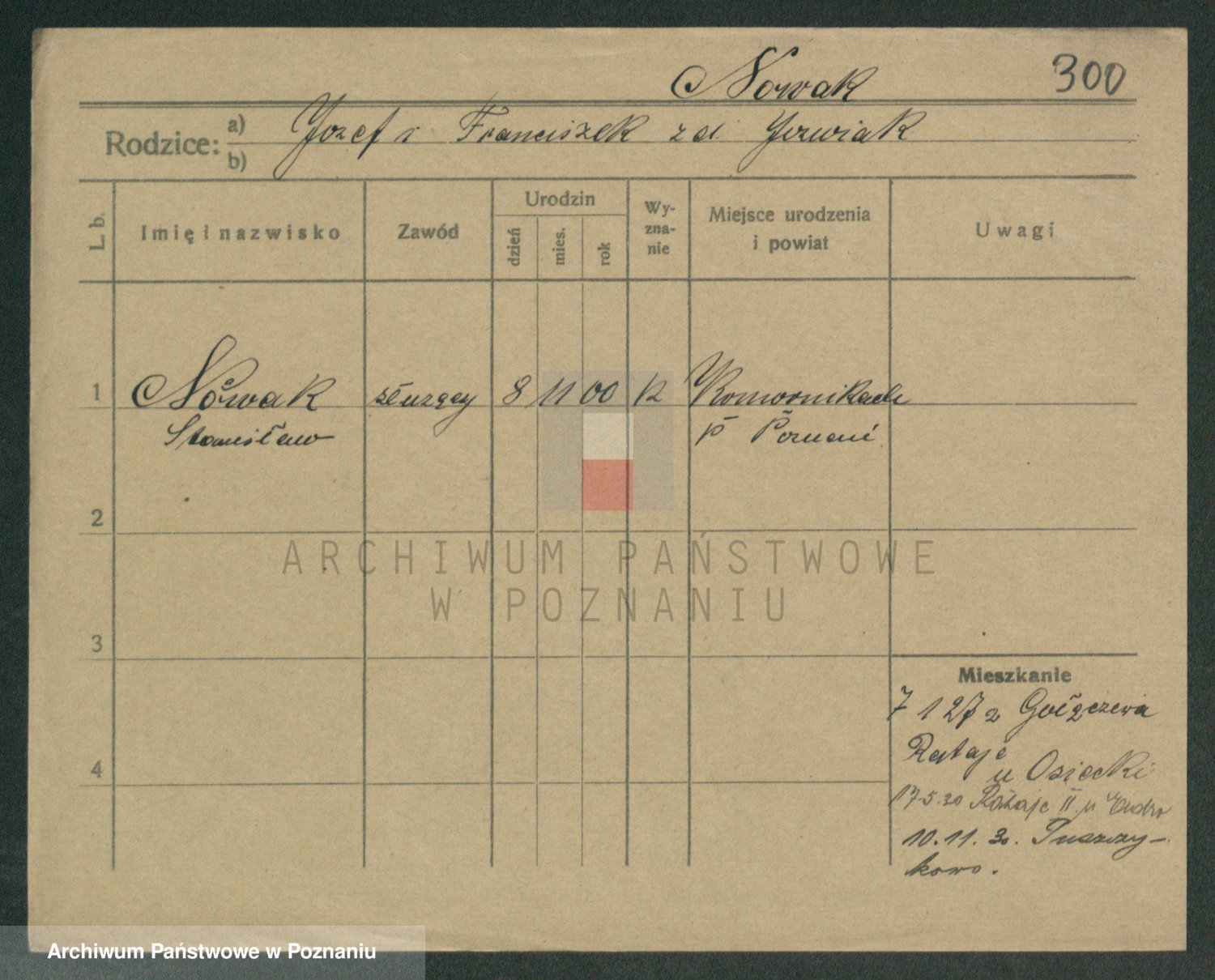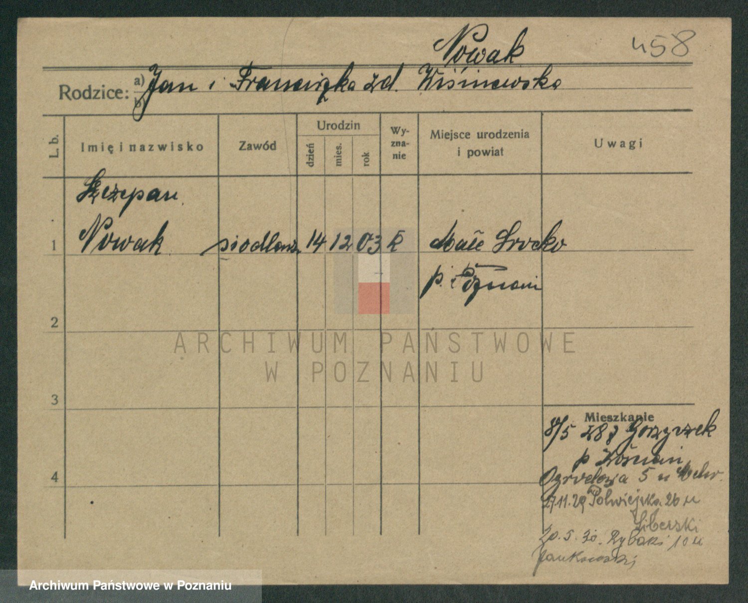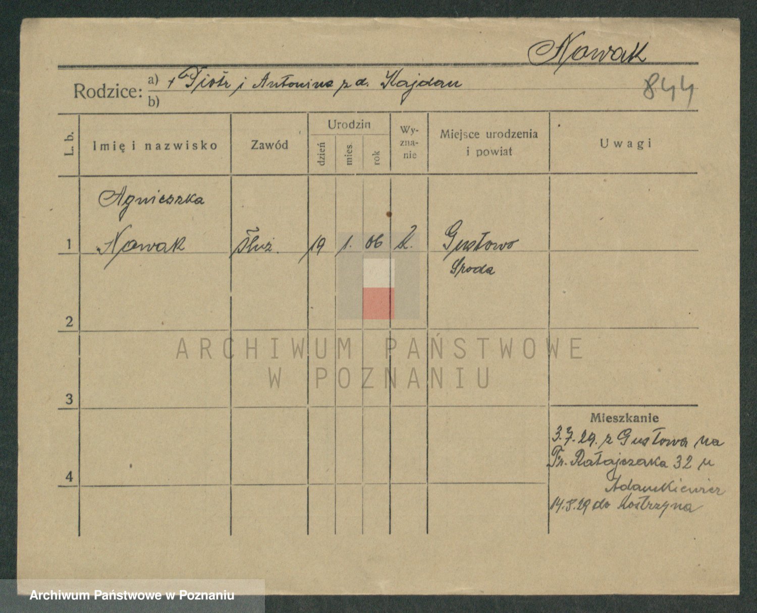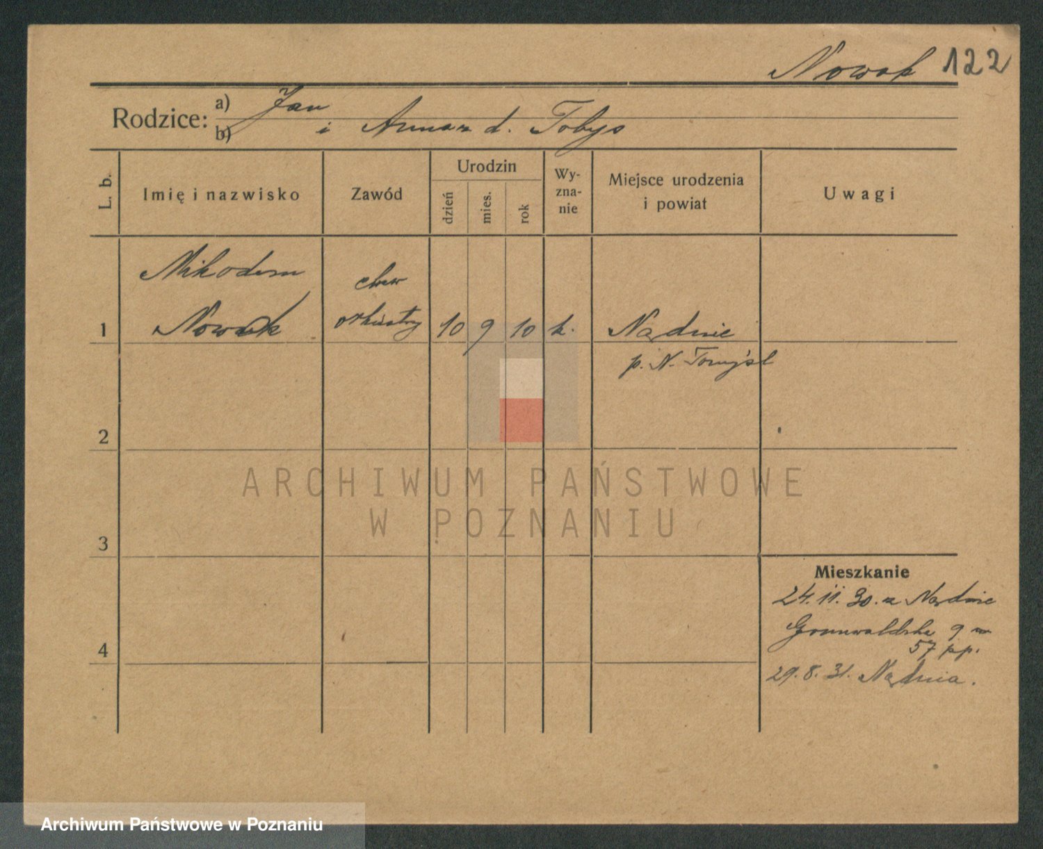Podgląd karty osobowej dostępny jest po kliknięciu na nazwisko lub ikonkę karty. Można dokonywać powiększenia (ikony na górze) lub przechodzić między kolejnymi skanami (strzałki po bokach).