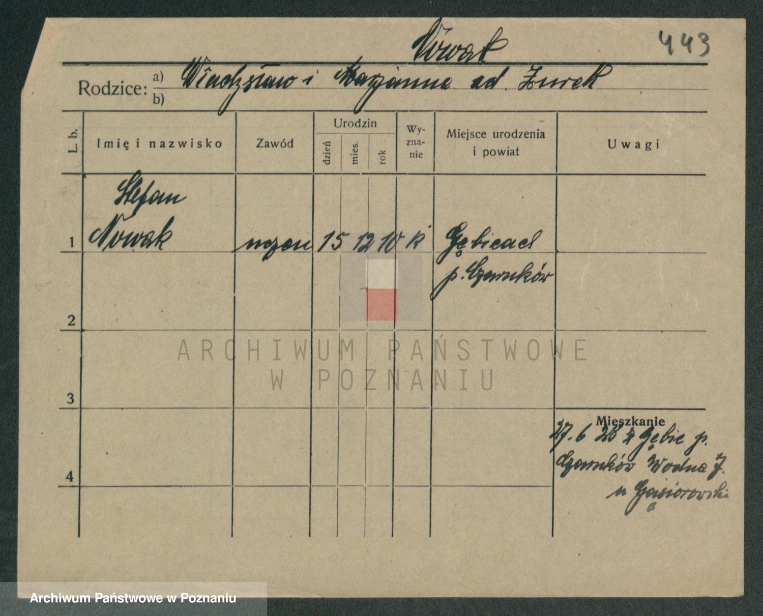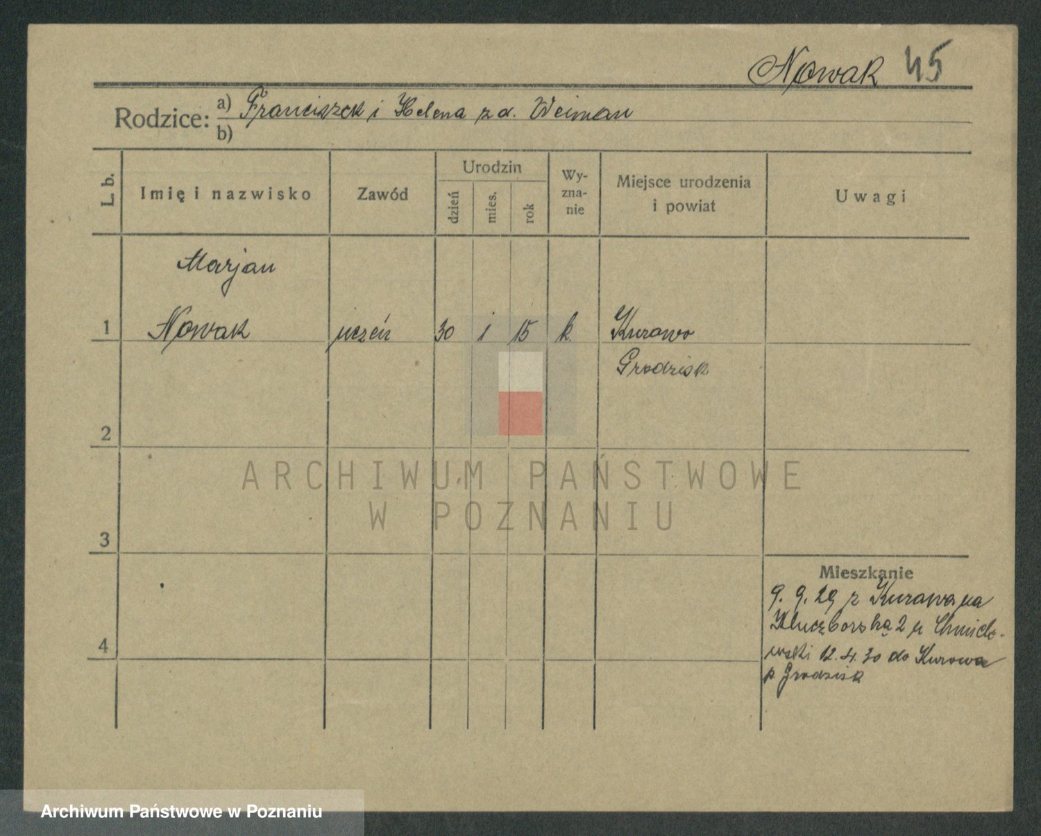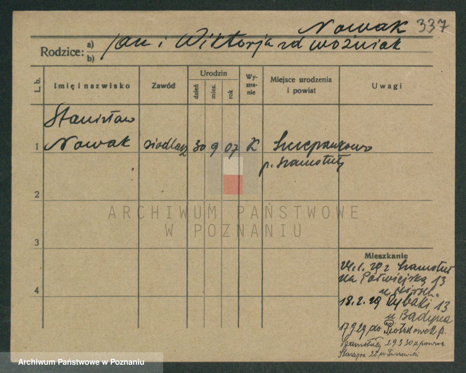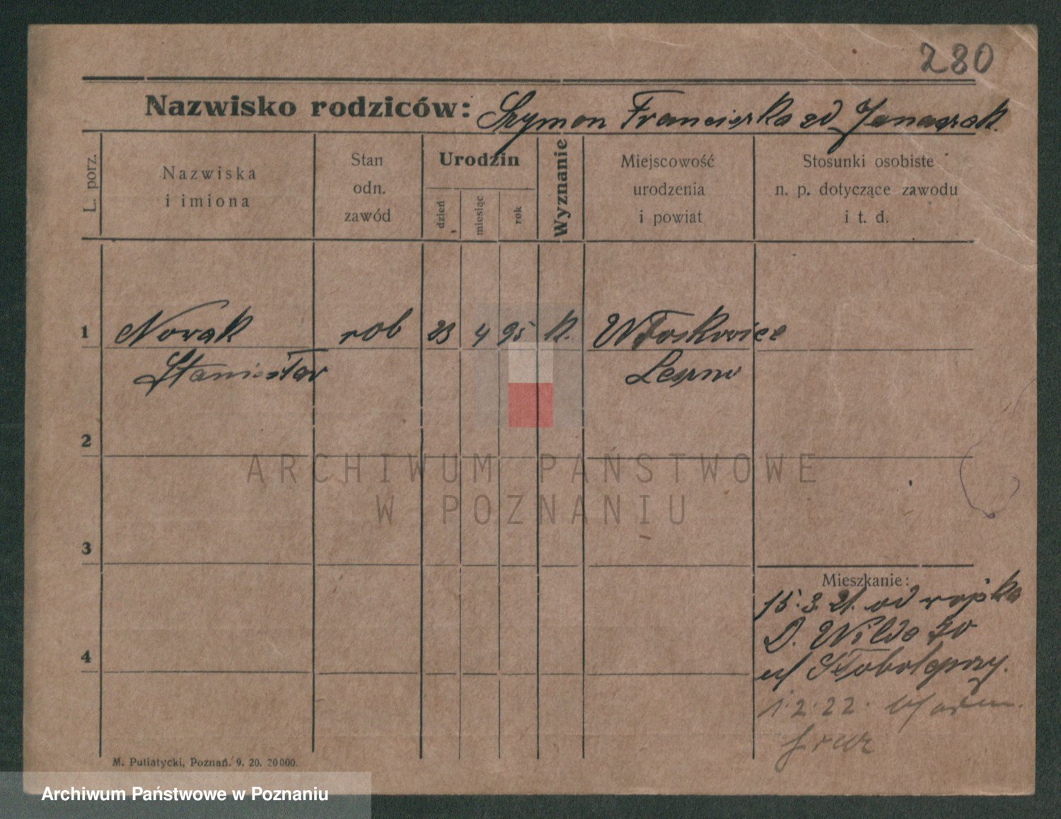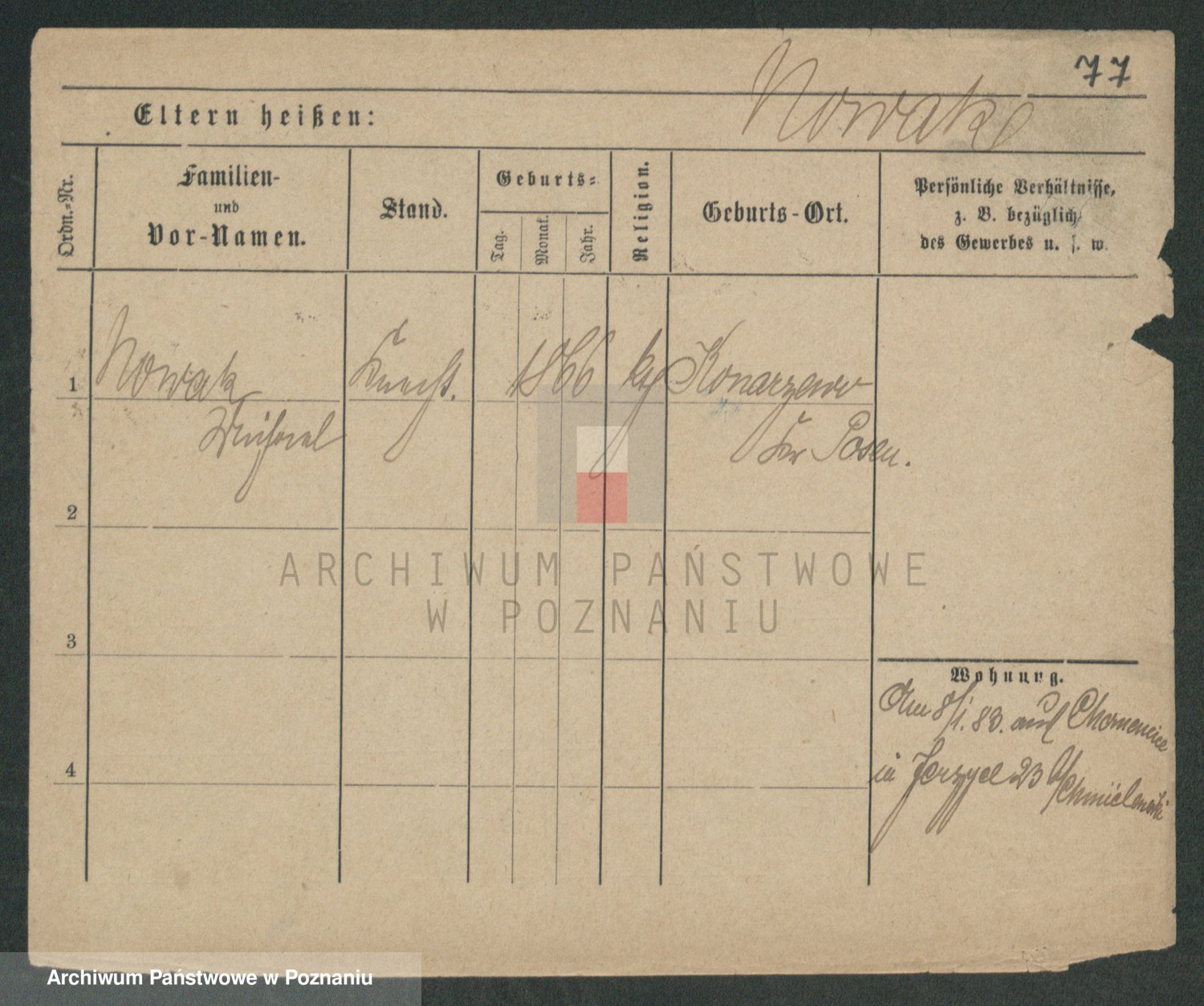 Podgląd karty osobowej dostępny jest po kliknięciu na nazwisko lub ikonkę karty. Można dokonywać powiększenia (ikony na górze) lub przechodzić między kolejnymi skanami (strzałki po bokach).