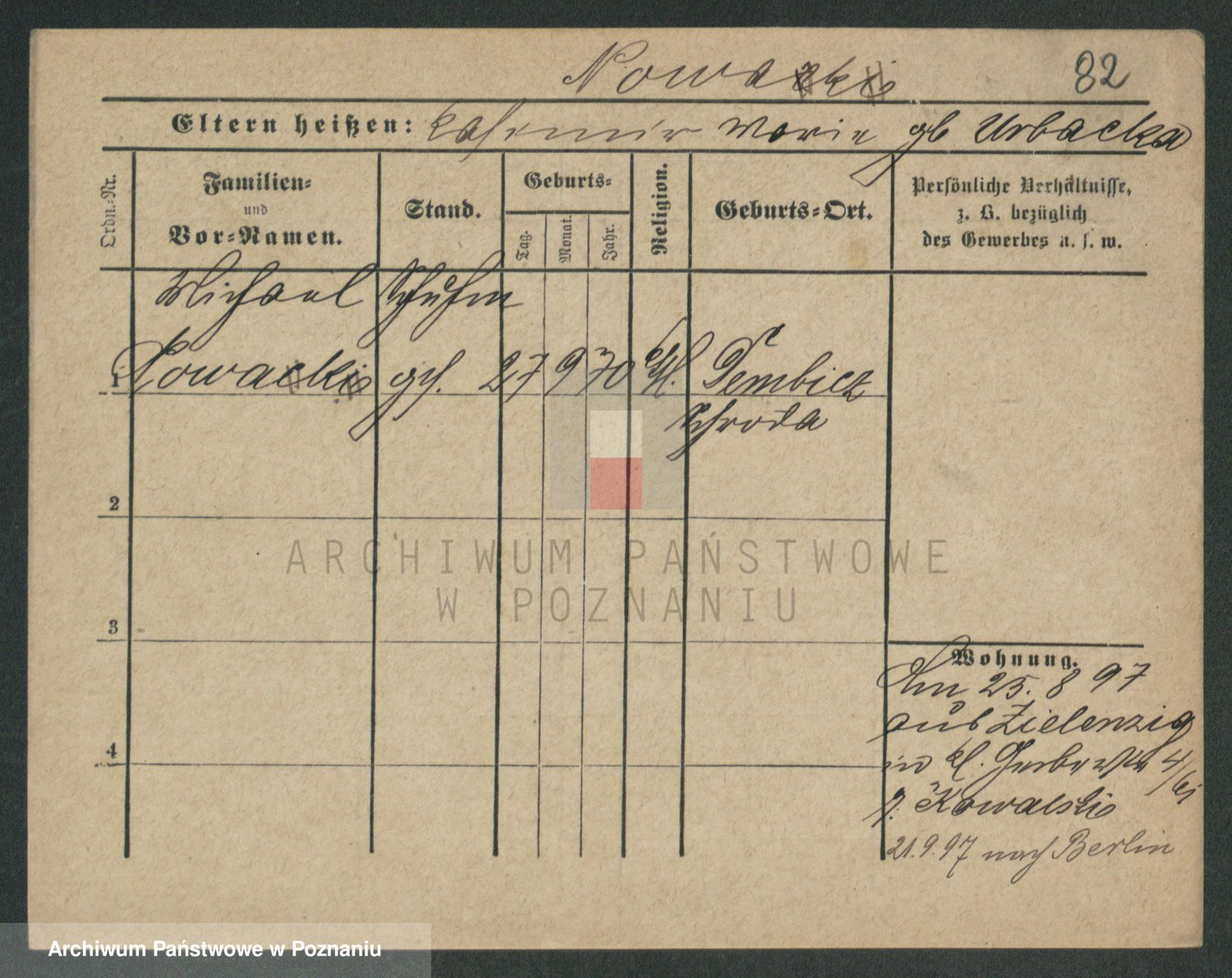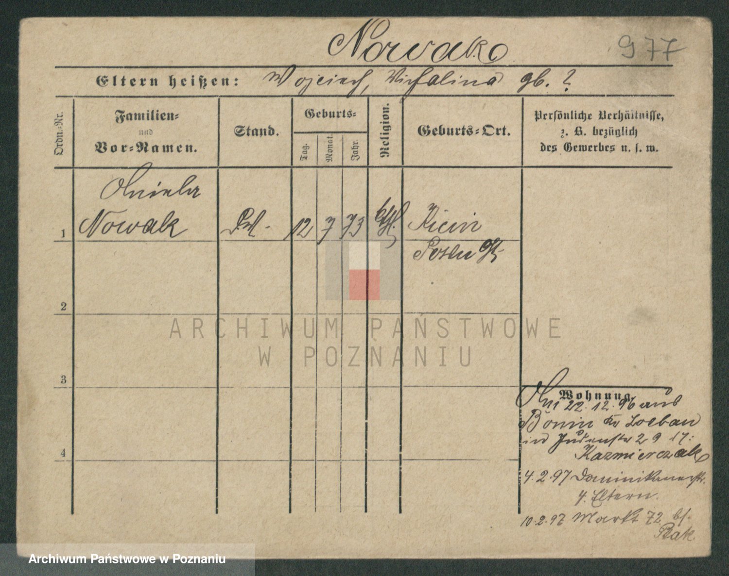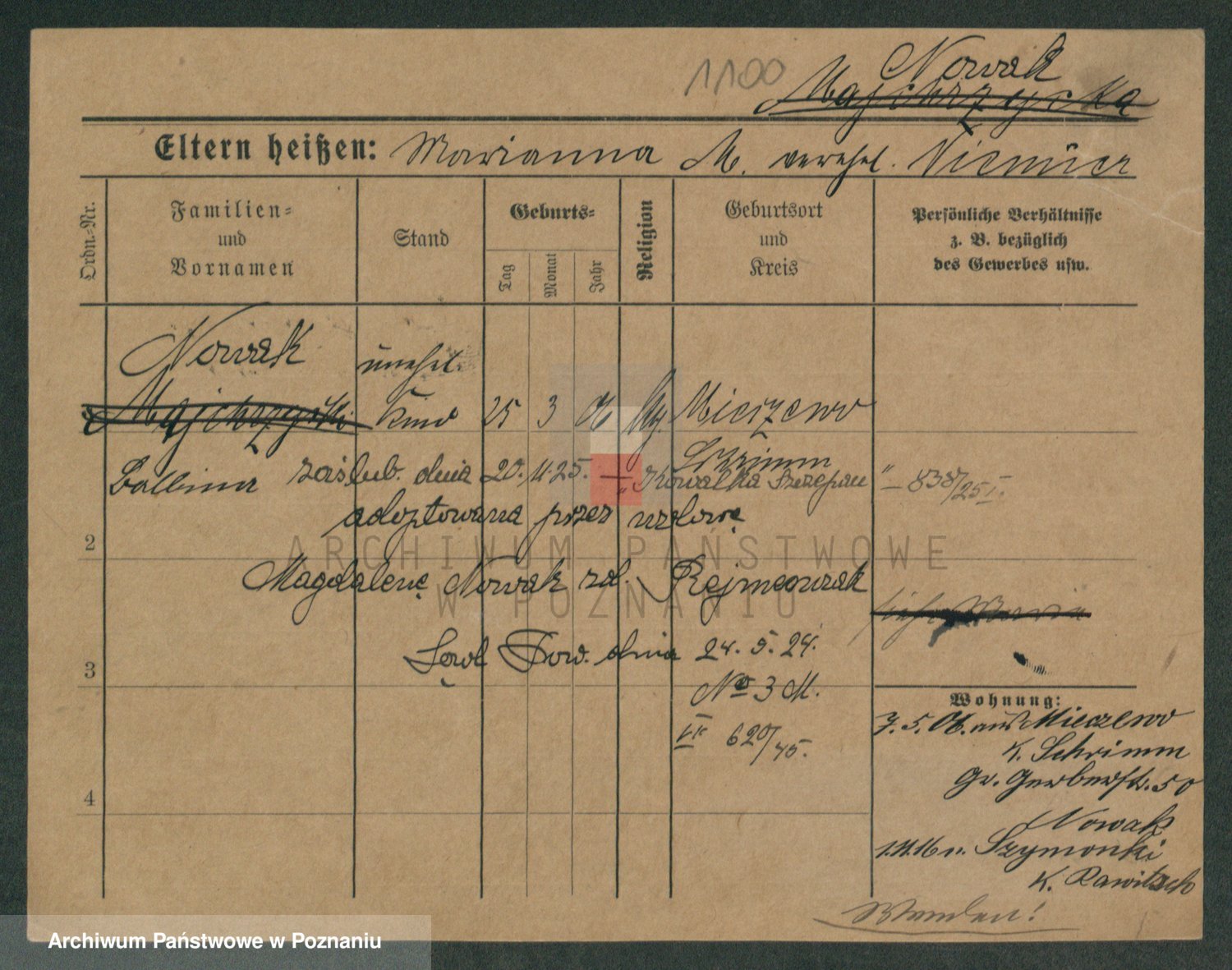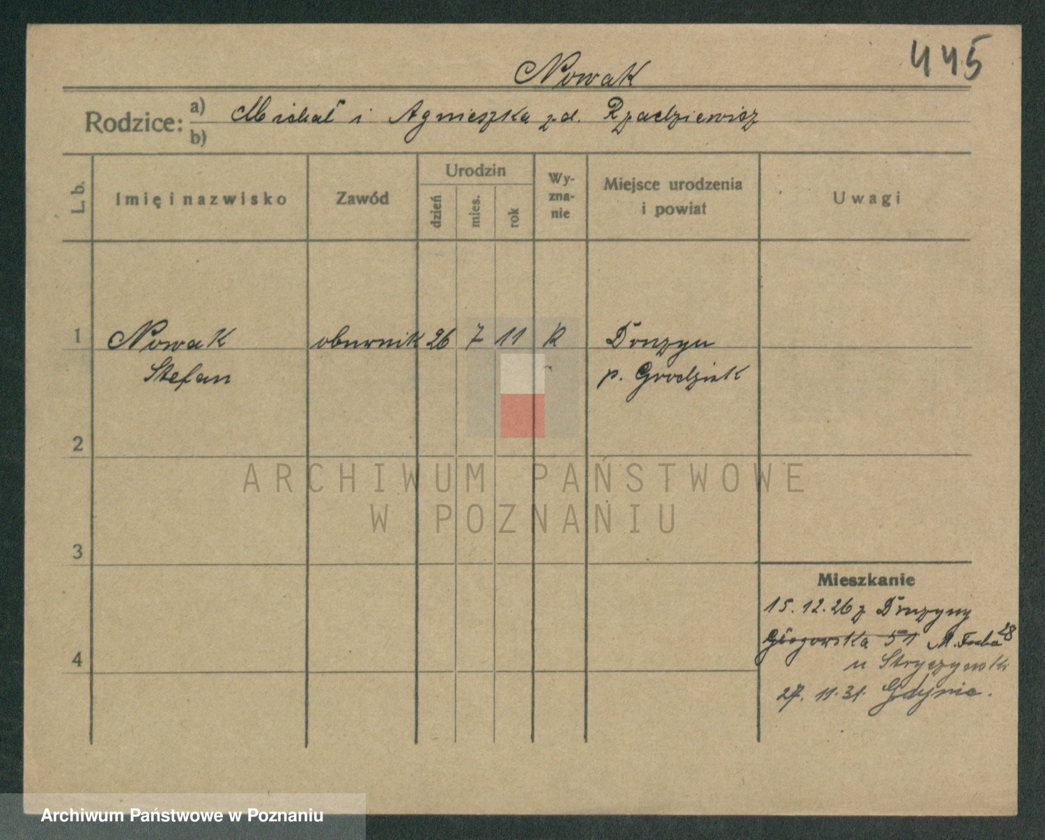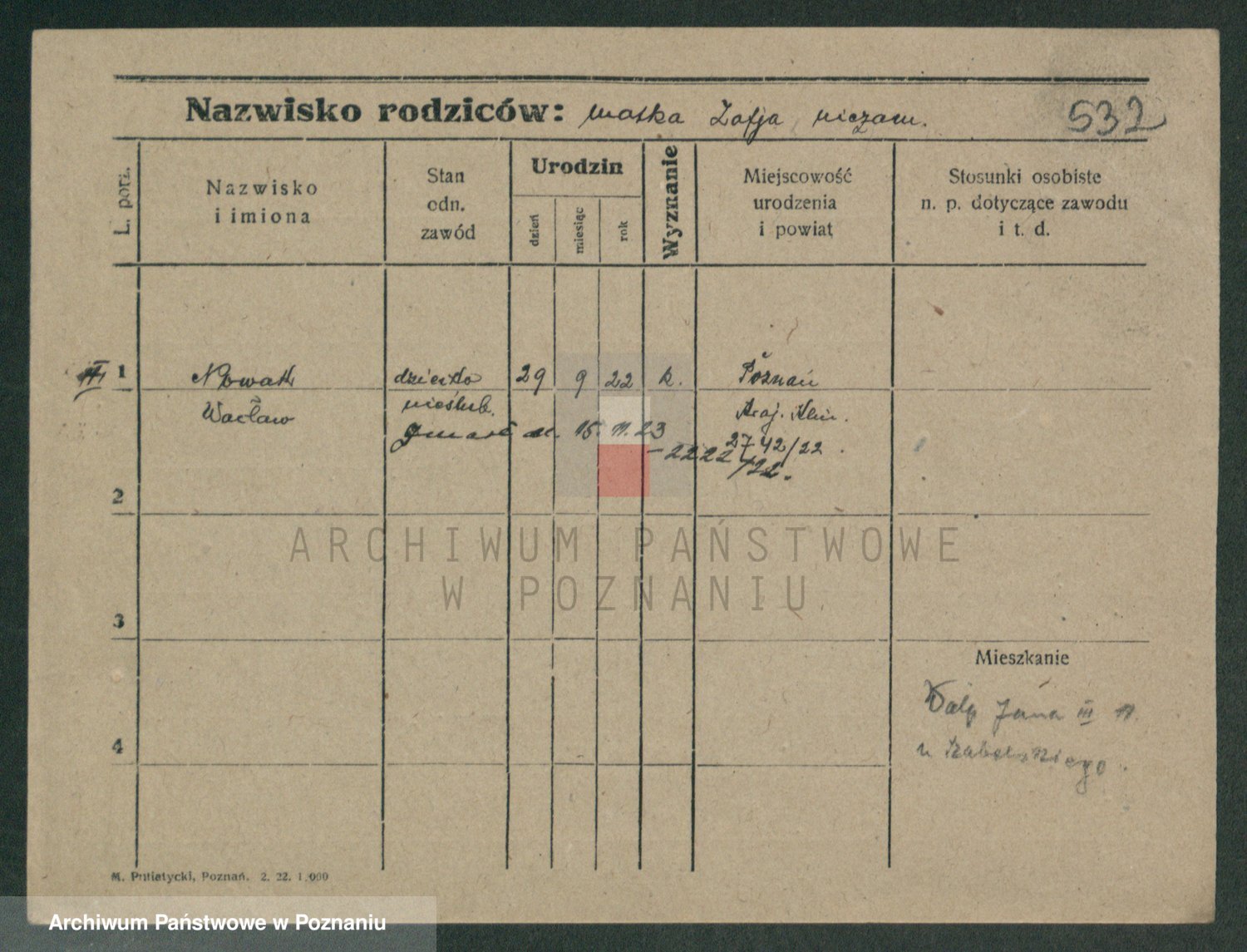 Podgląd karty osobowej dostępny jest po kliknięciu na nazwisko lub ikonkę karty. Można dokonywać powiększenia (ikony na górze) lub przechodzić między kolejnymi skanami (strzałki po bokach).