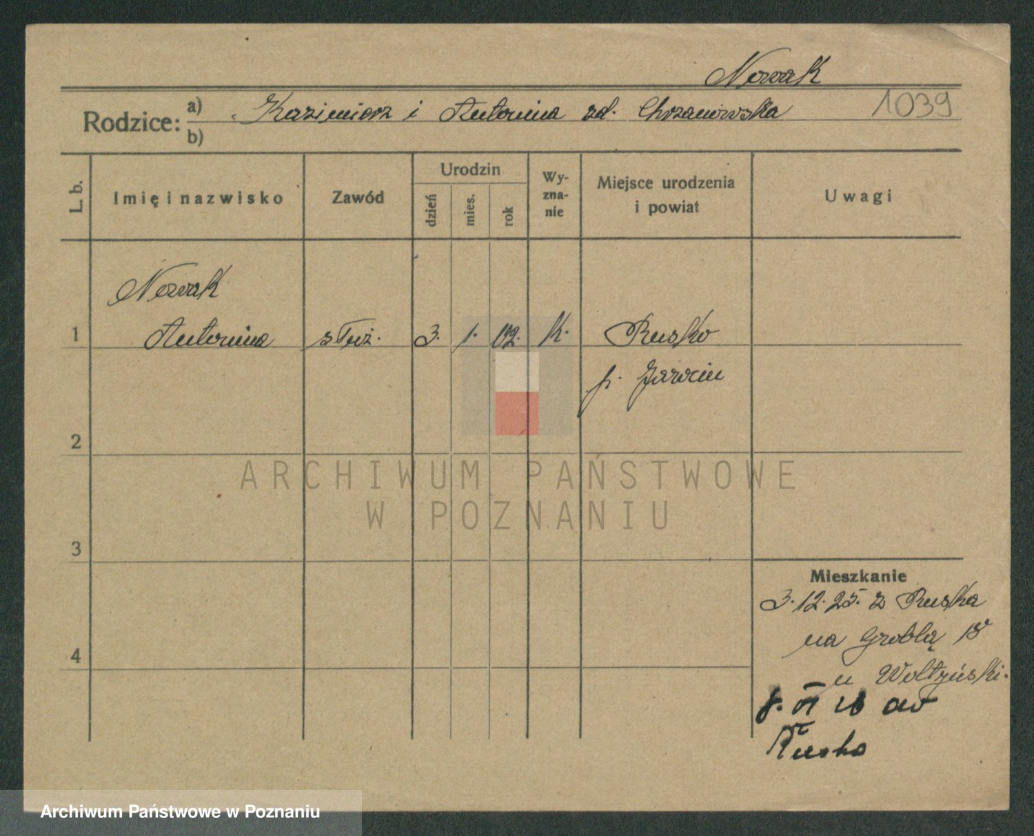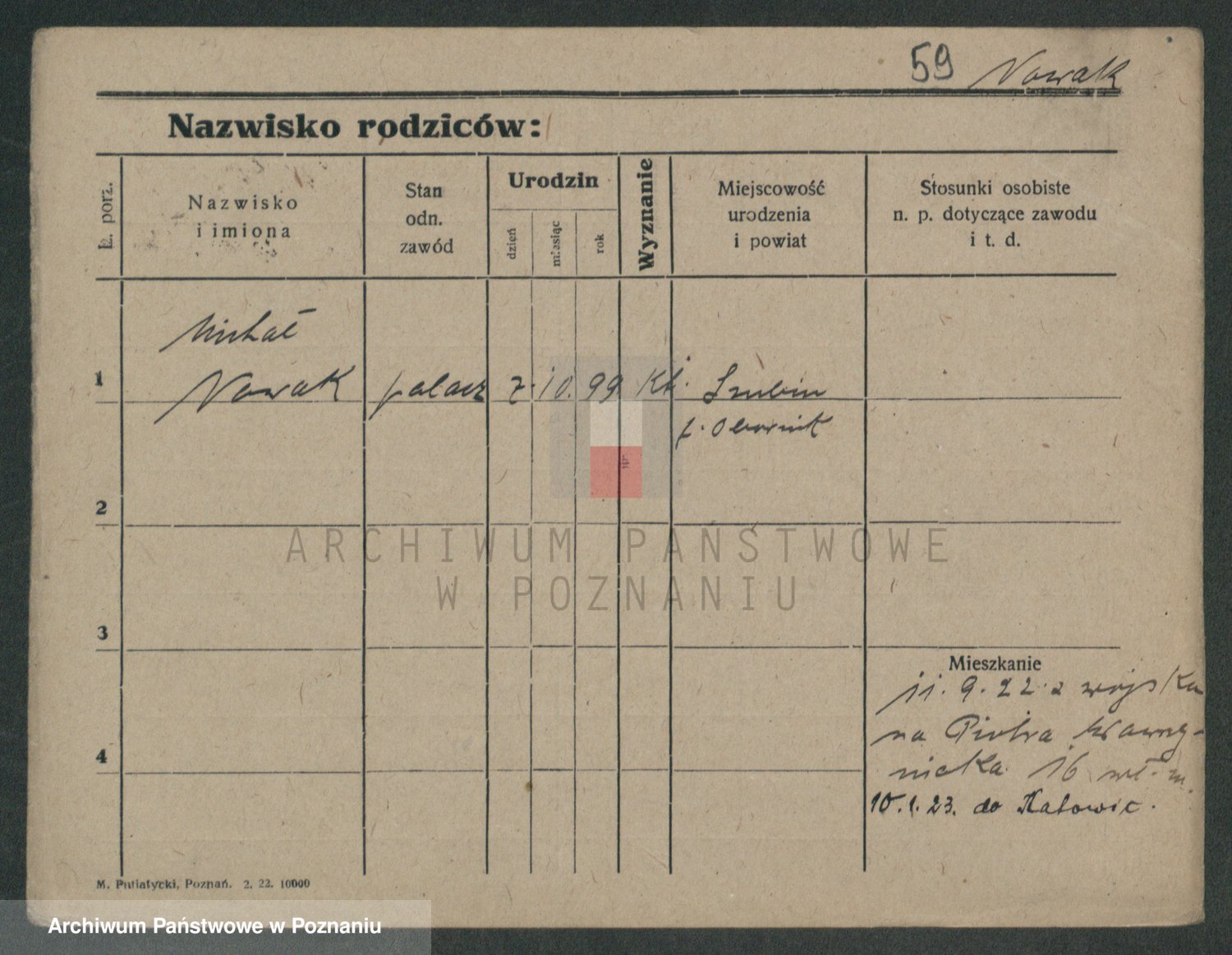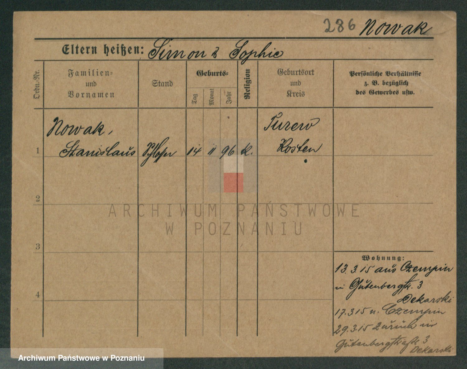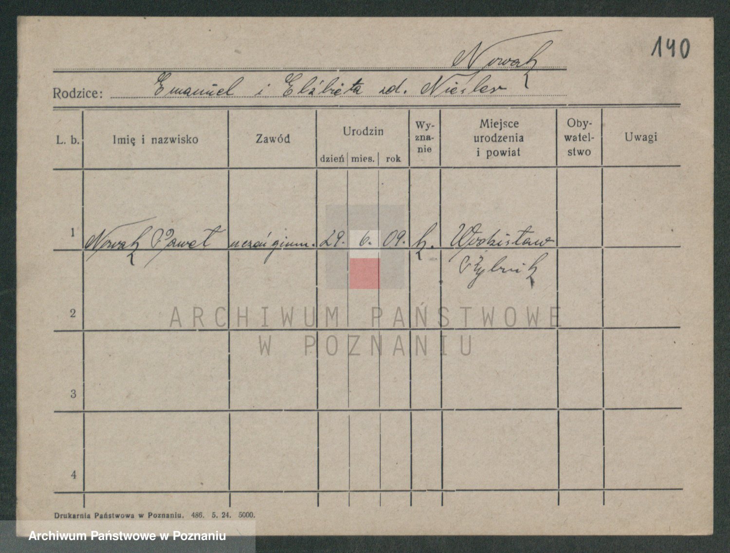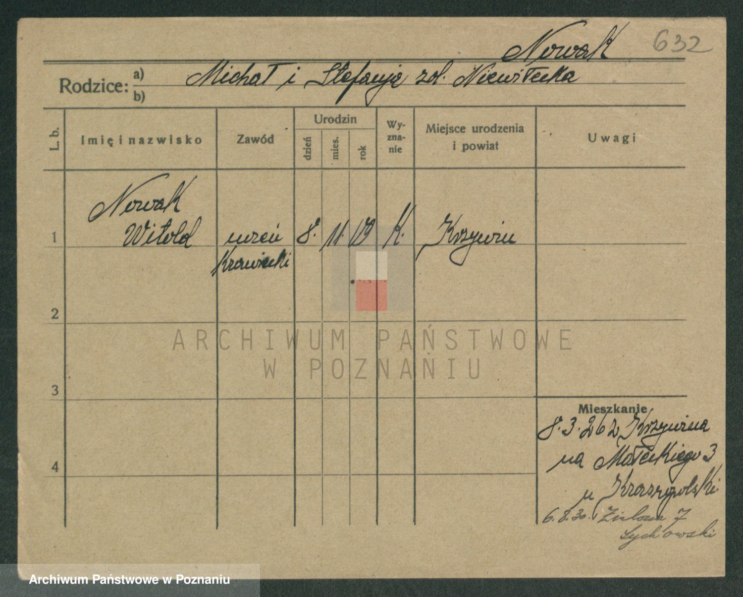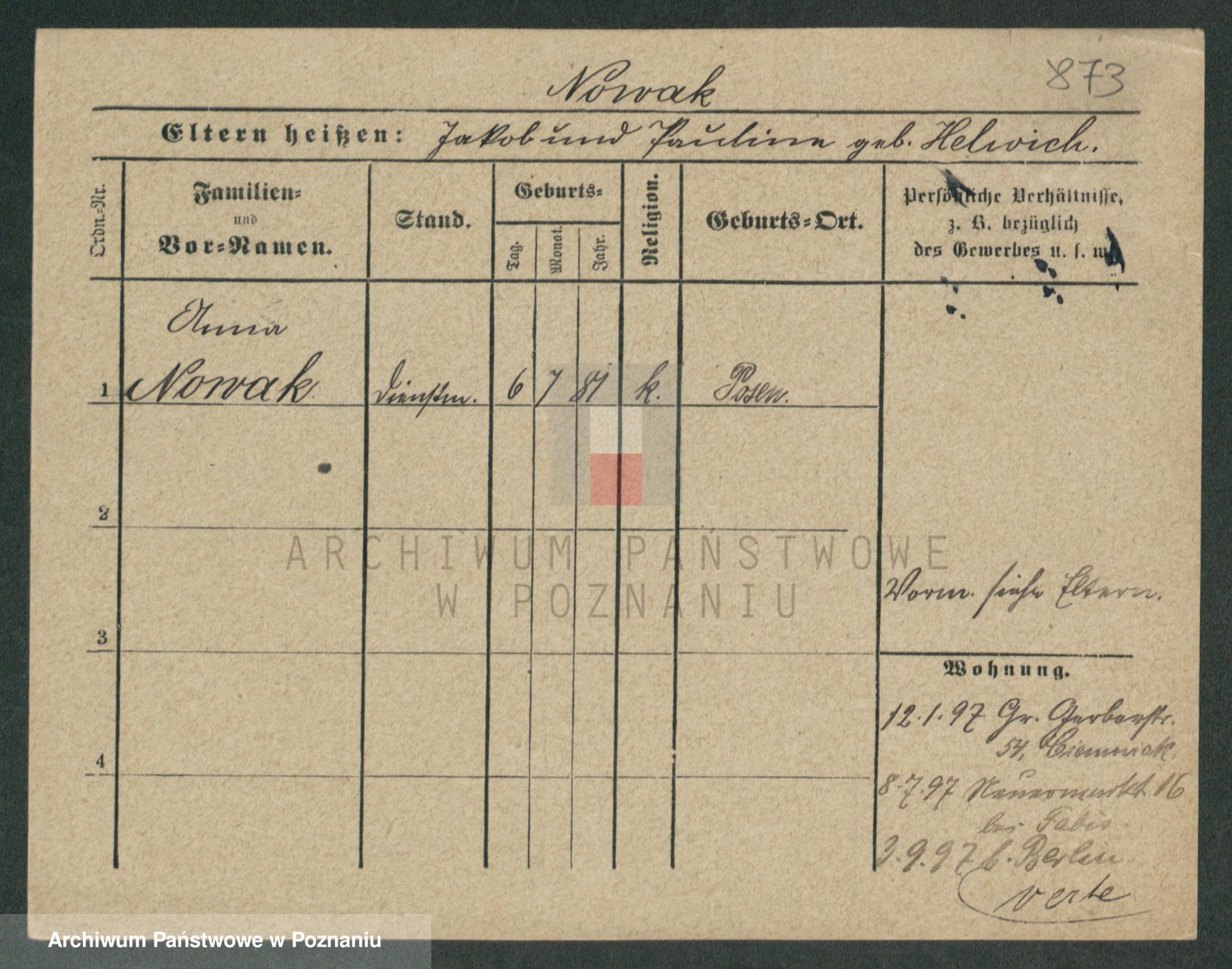 Podgląd karty osobowej dostępny jest po kliknięciu na nazwisko lub ikonkę karty. Można dokonywać powiększenia (ikony na górze) lub przechodzić między kolejnymi skanami (strzałki po bokach).