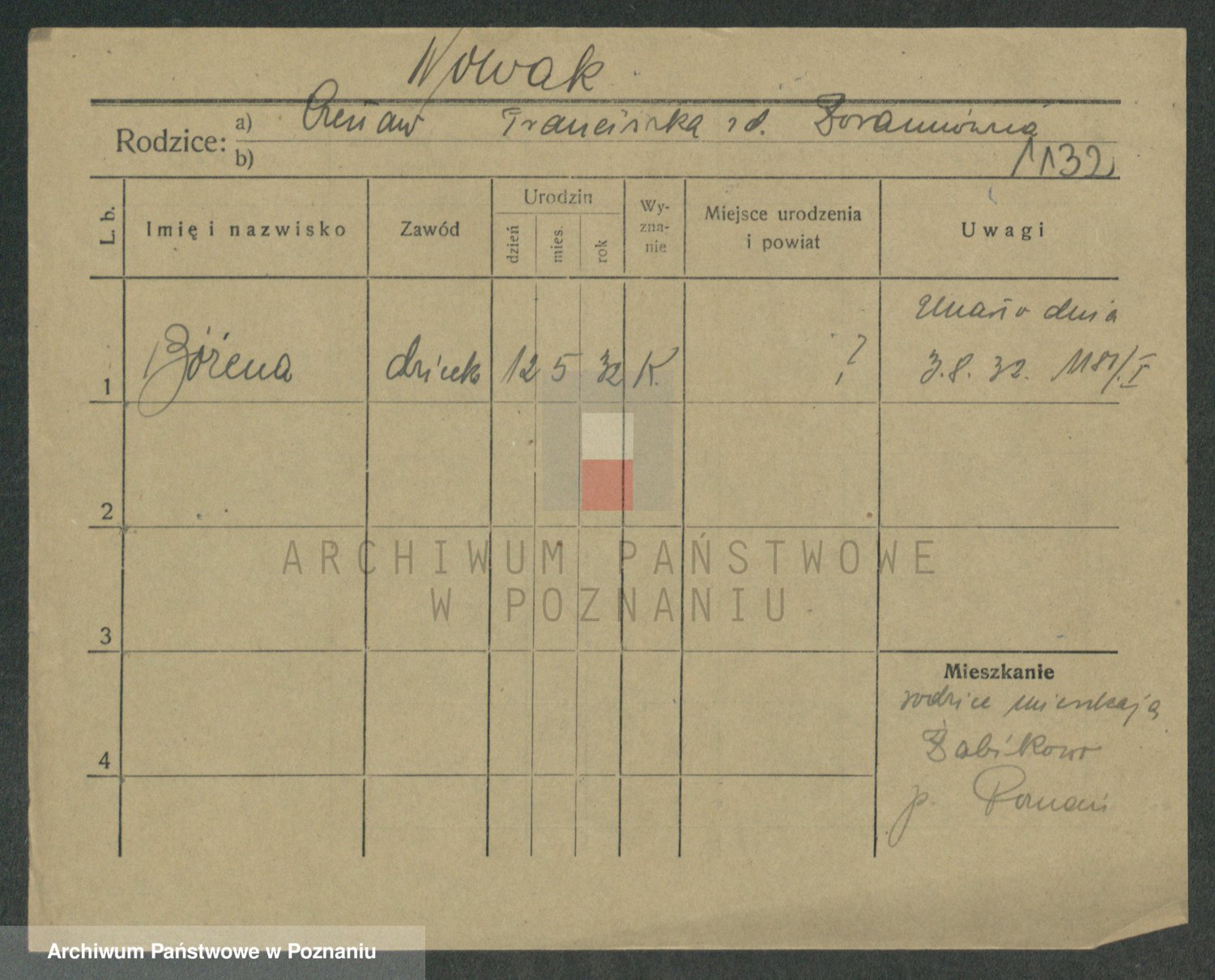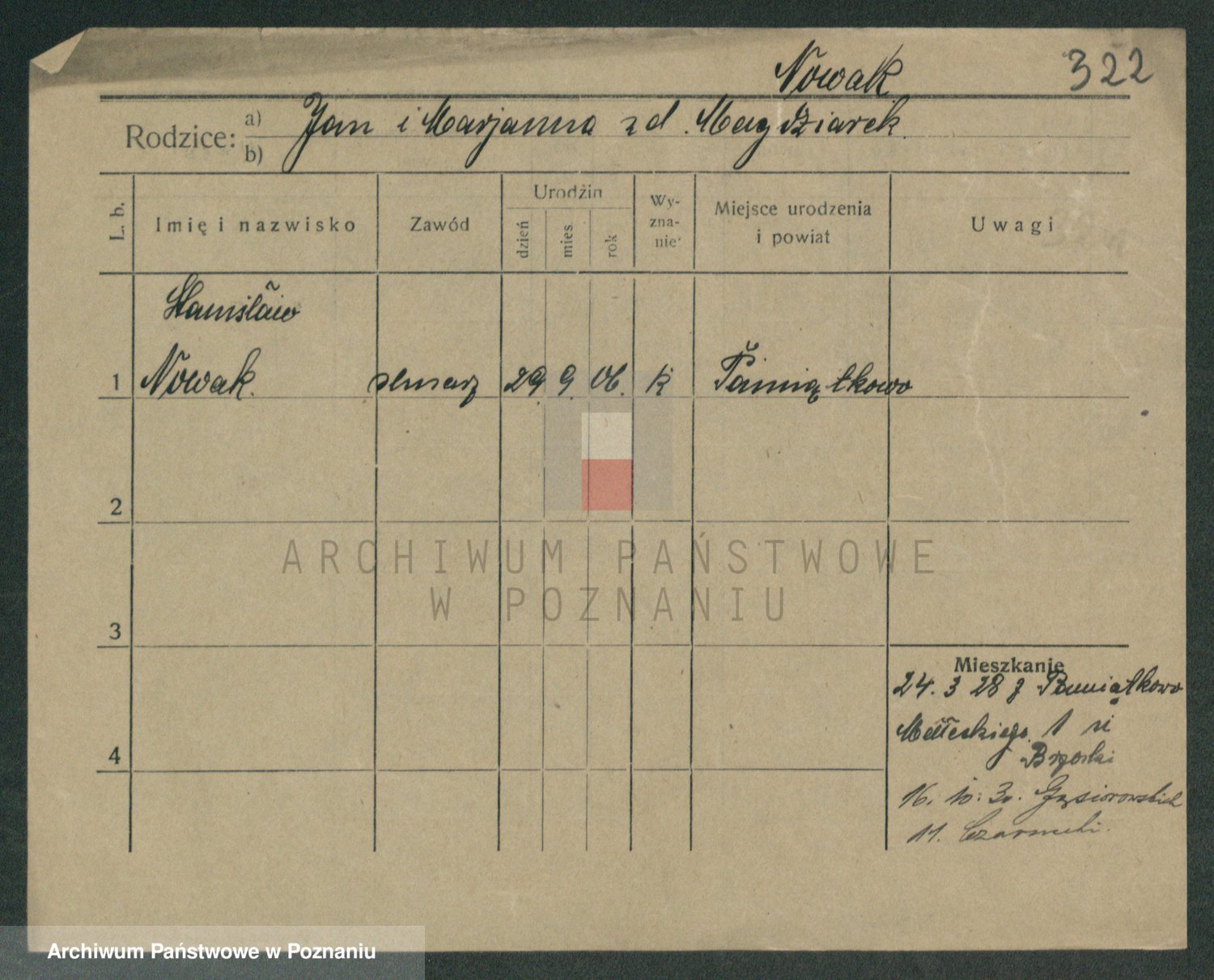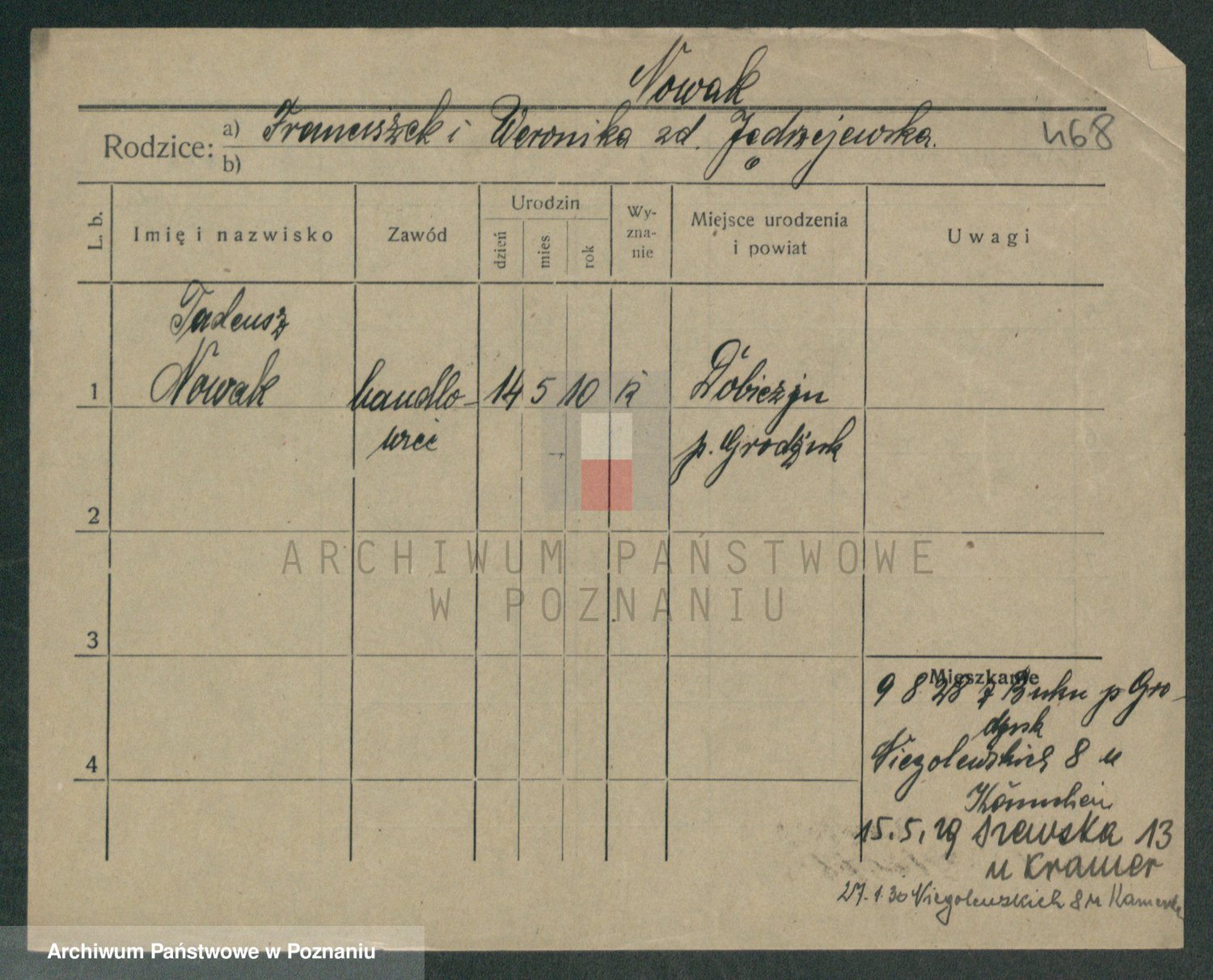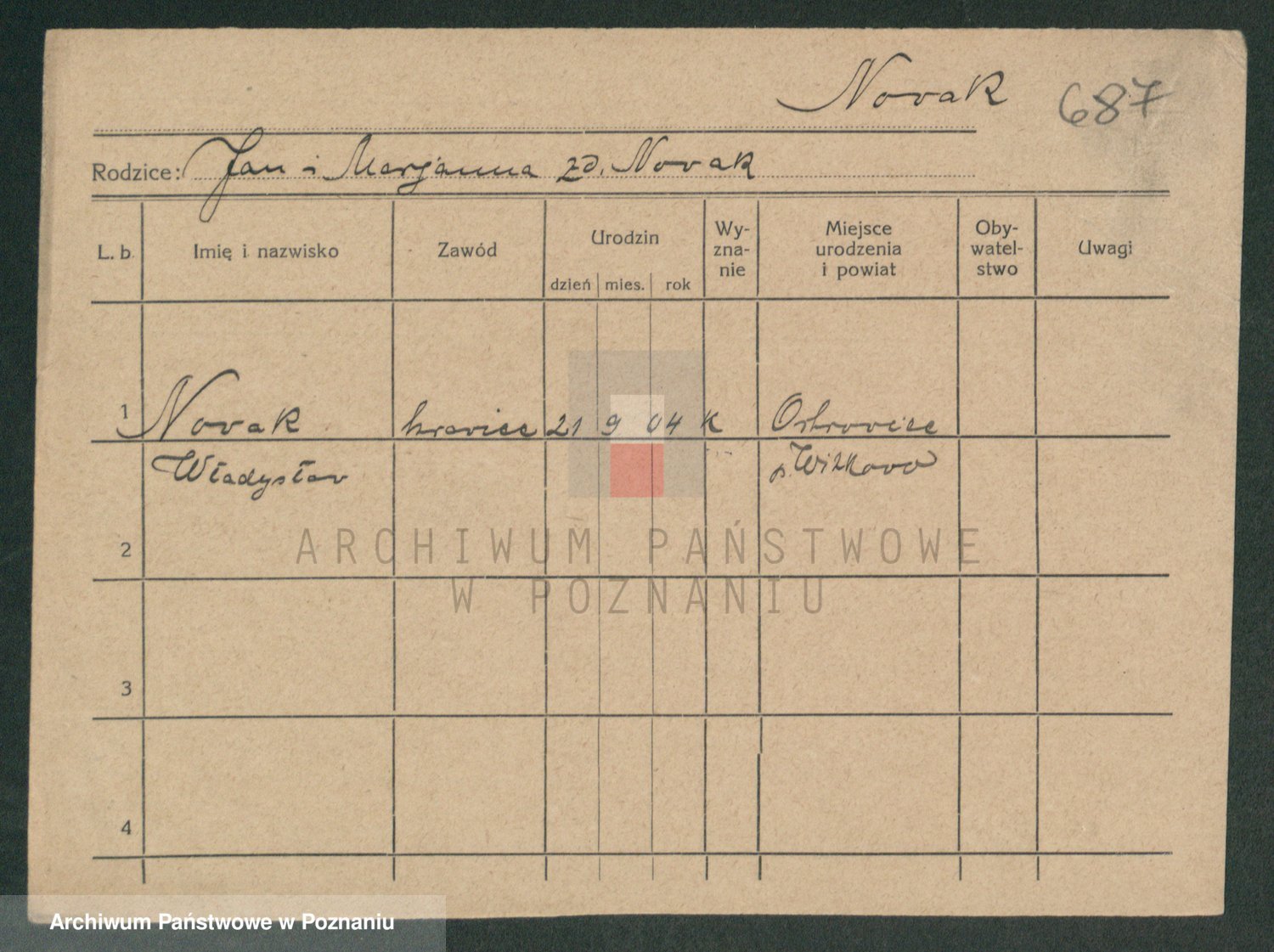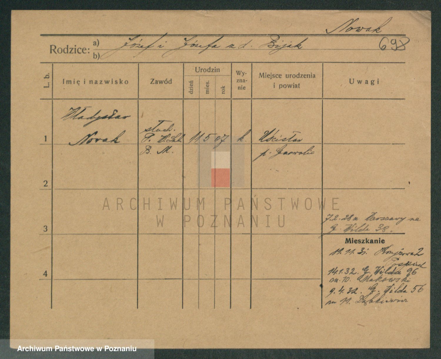 Podgląd karty osobowej dostępny jest po kliknięciu na nazwisko lub ikonkę karty. Można dokonywać powiększenia (ikony na górze) lub przechodzić między kolejnymi skanami (strzałki po bokach).