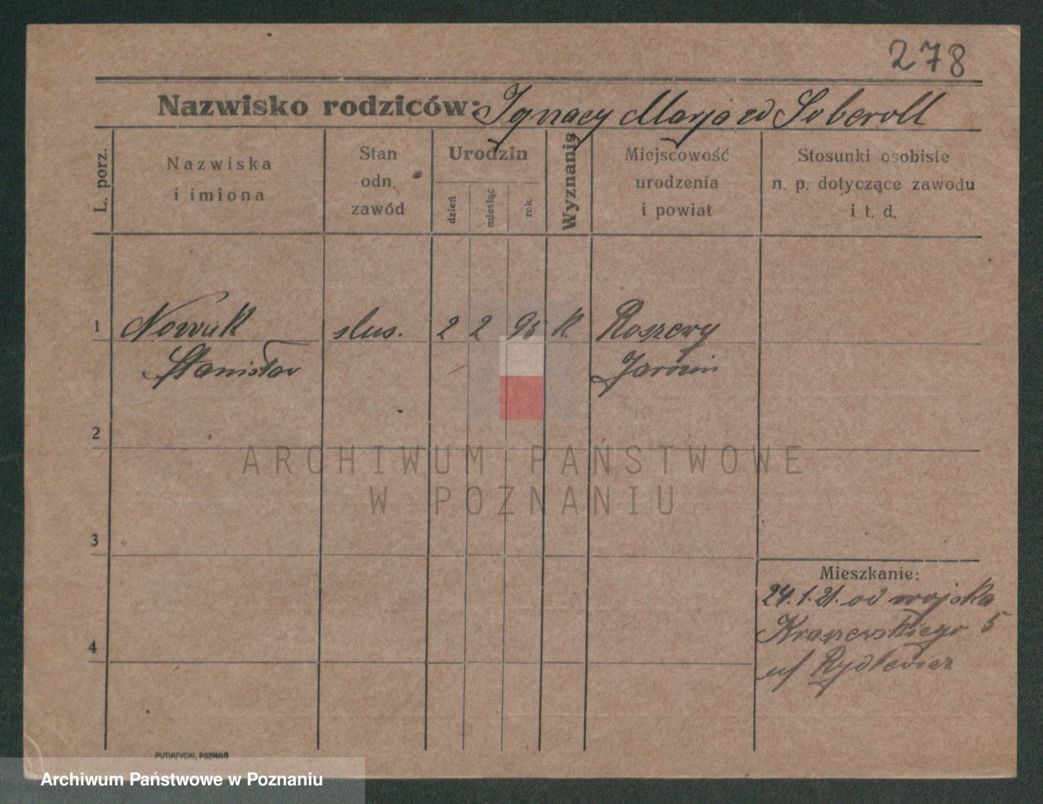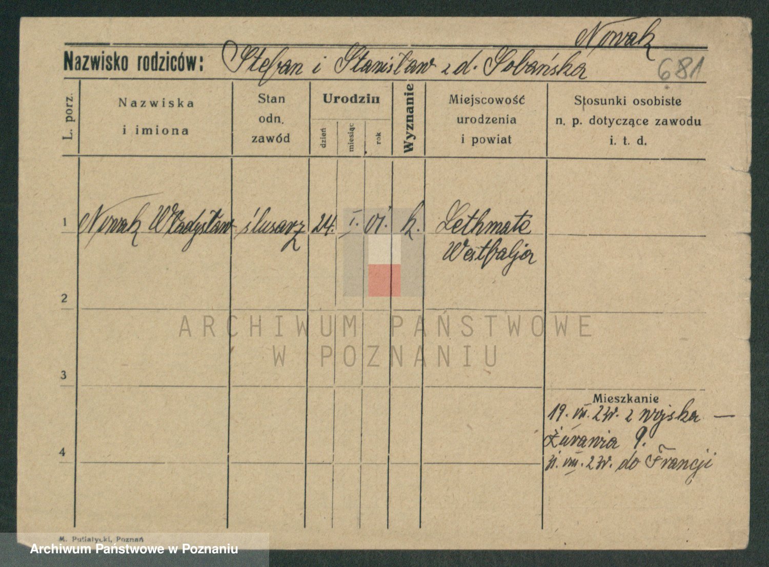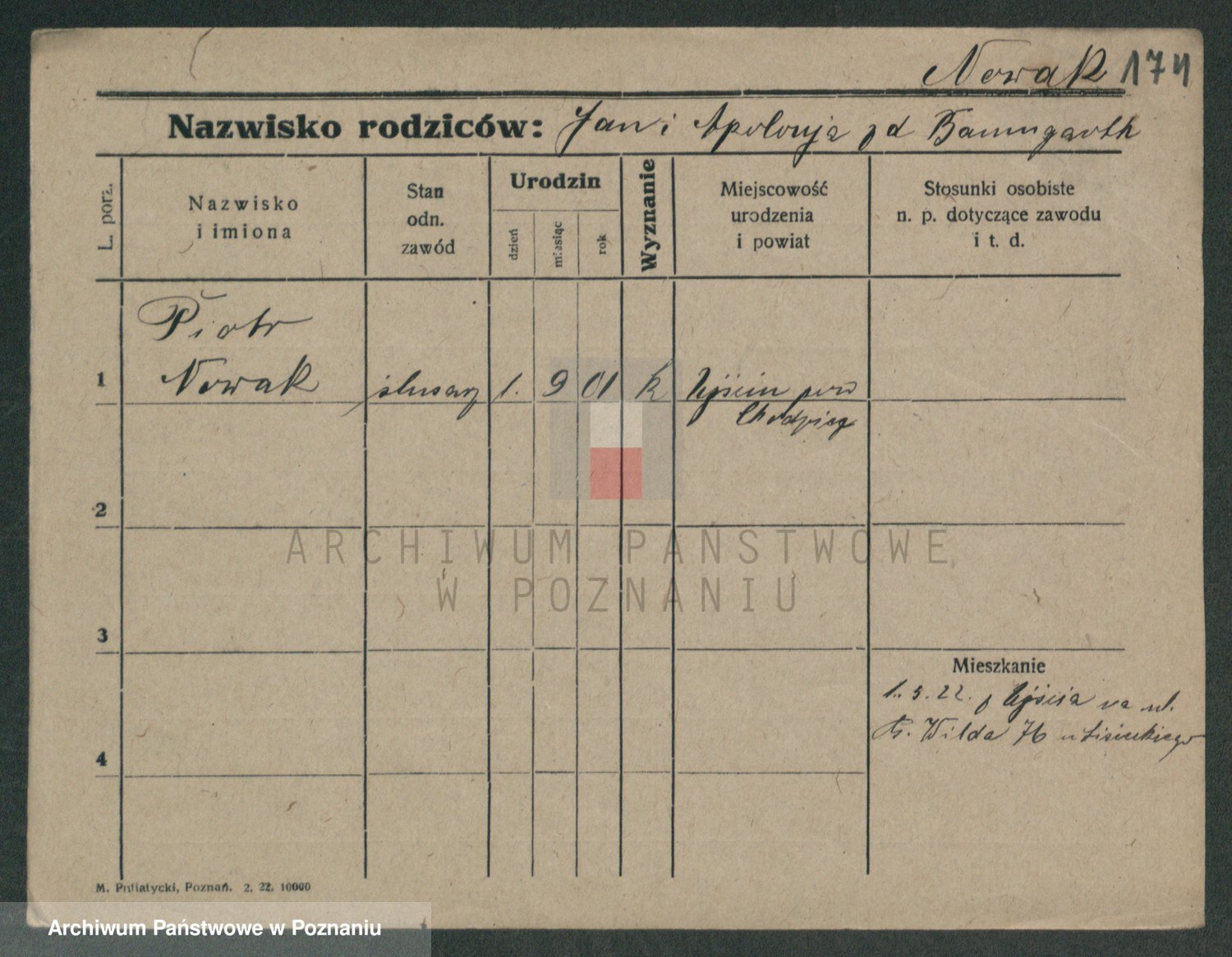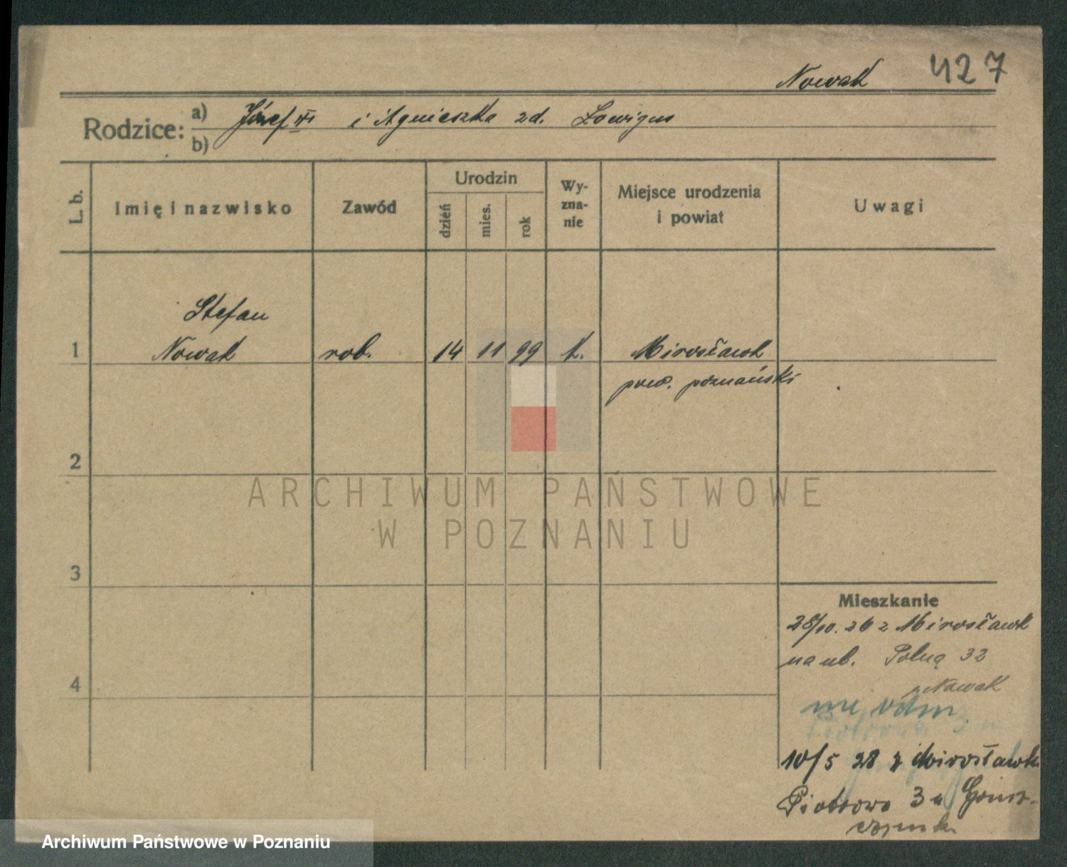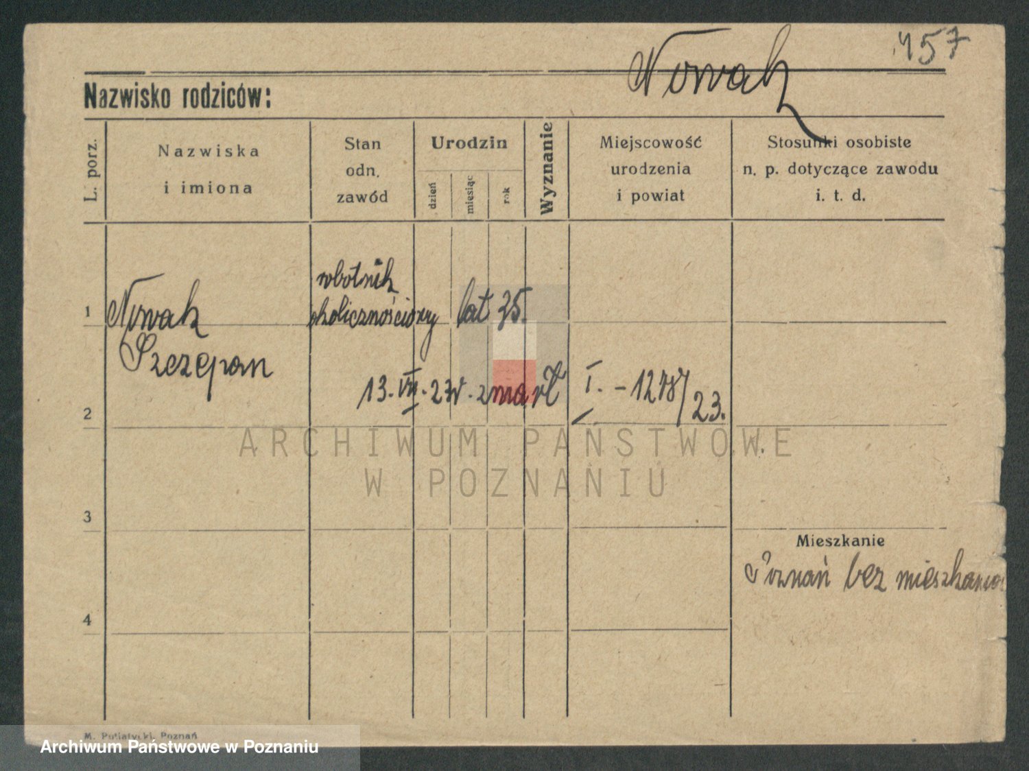 Podgląd karty osobowej dostępny jest po kliknięciu na nazwisko lub ikonkę karty. Można dokonywać powiększenia (ikony na górze) lub przechodzić między kolejnymi skanami (strzałki po bokach).