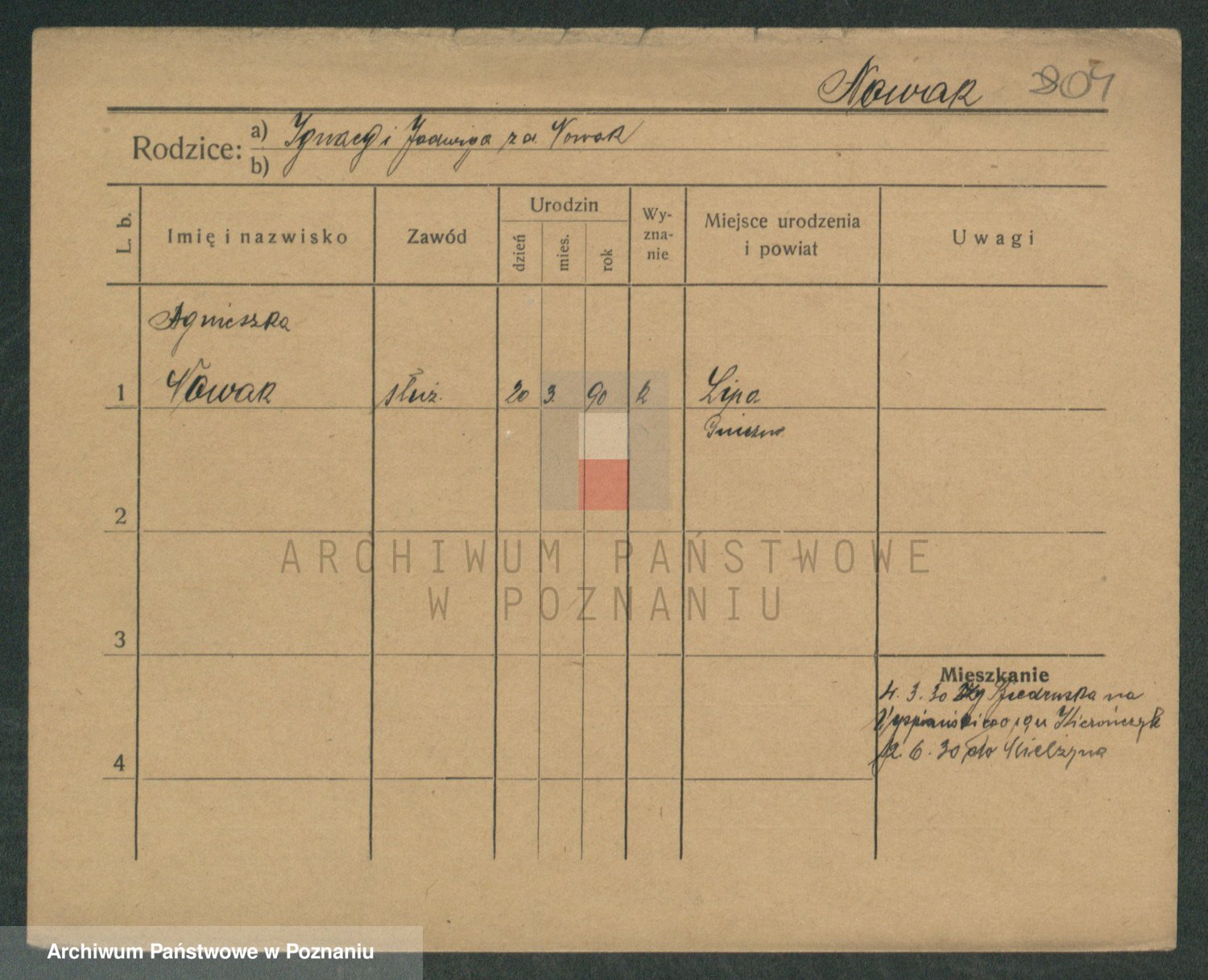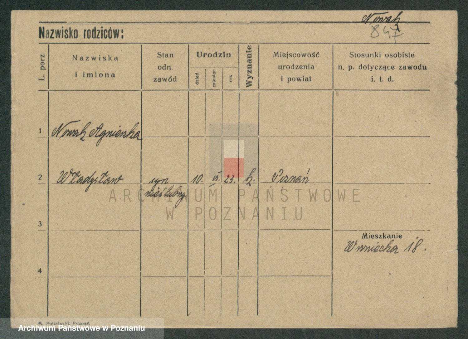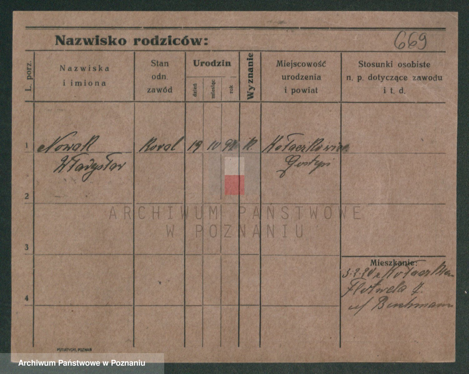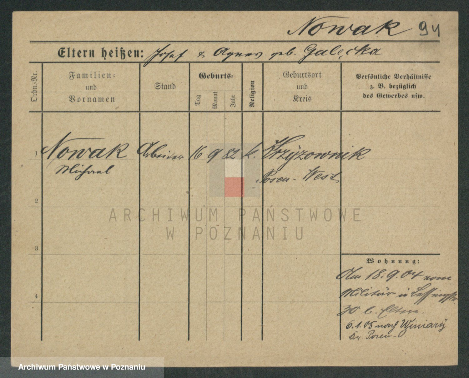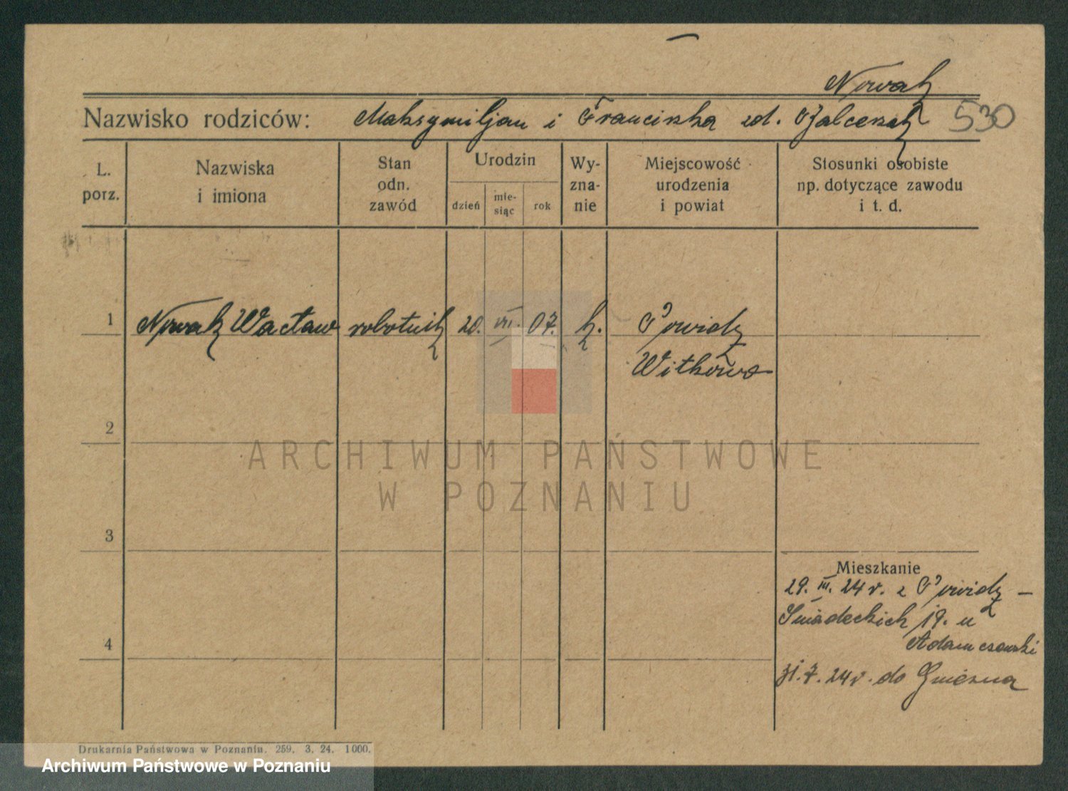 Podgląd karty osobowej dostępny jest po kliknięciu na nazwisko lub ikonkę karty. Można dokonywać powiększenia (ikony na górze) lub przechodzić między kolejnymi skanami (strzałki po bokach).