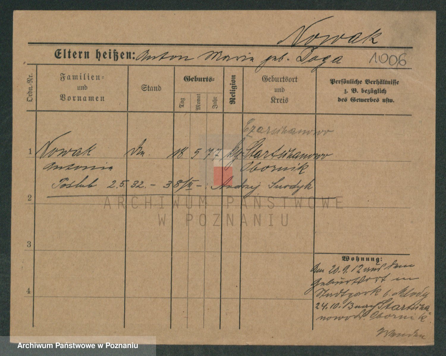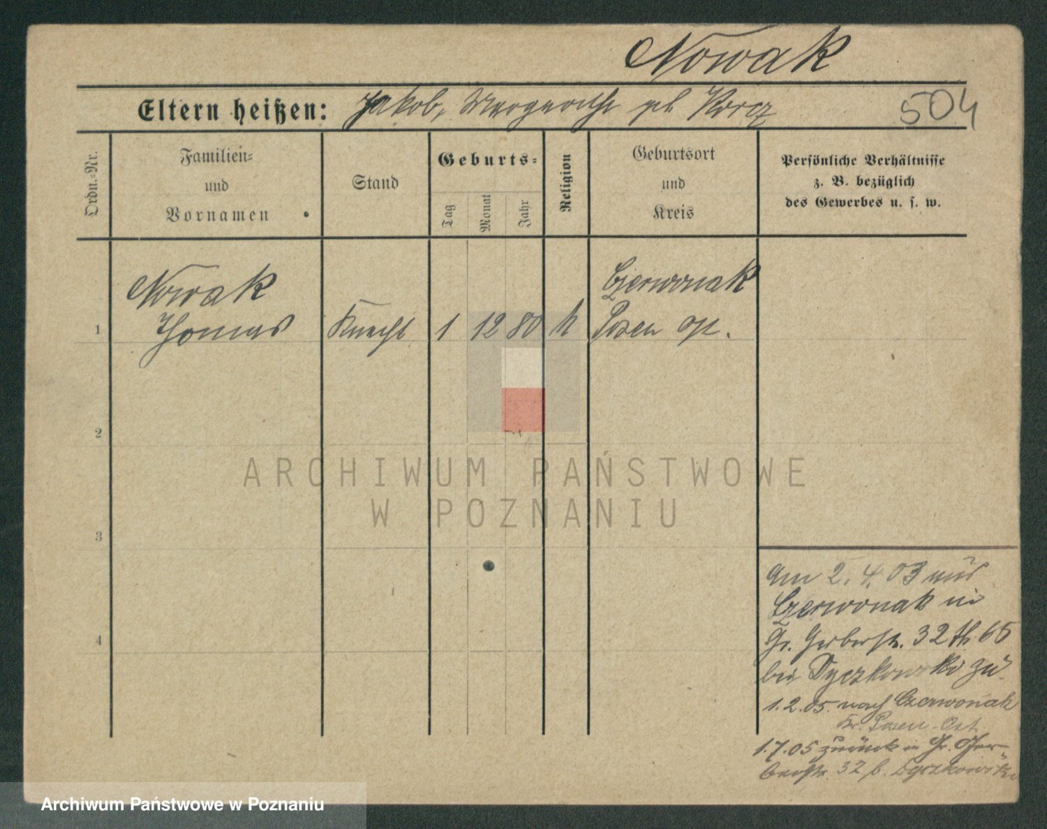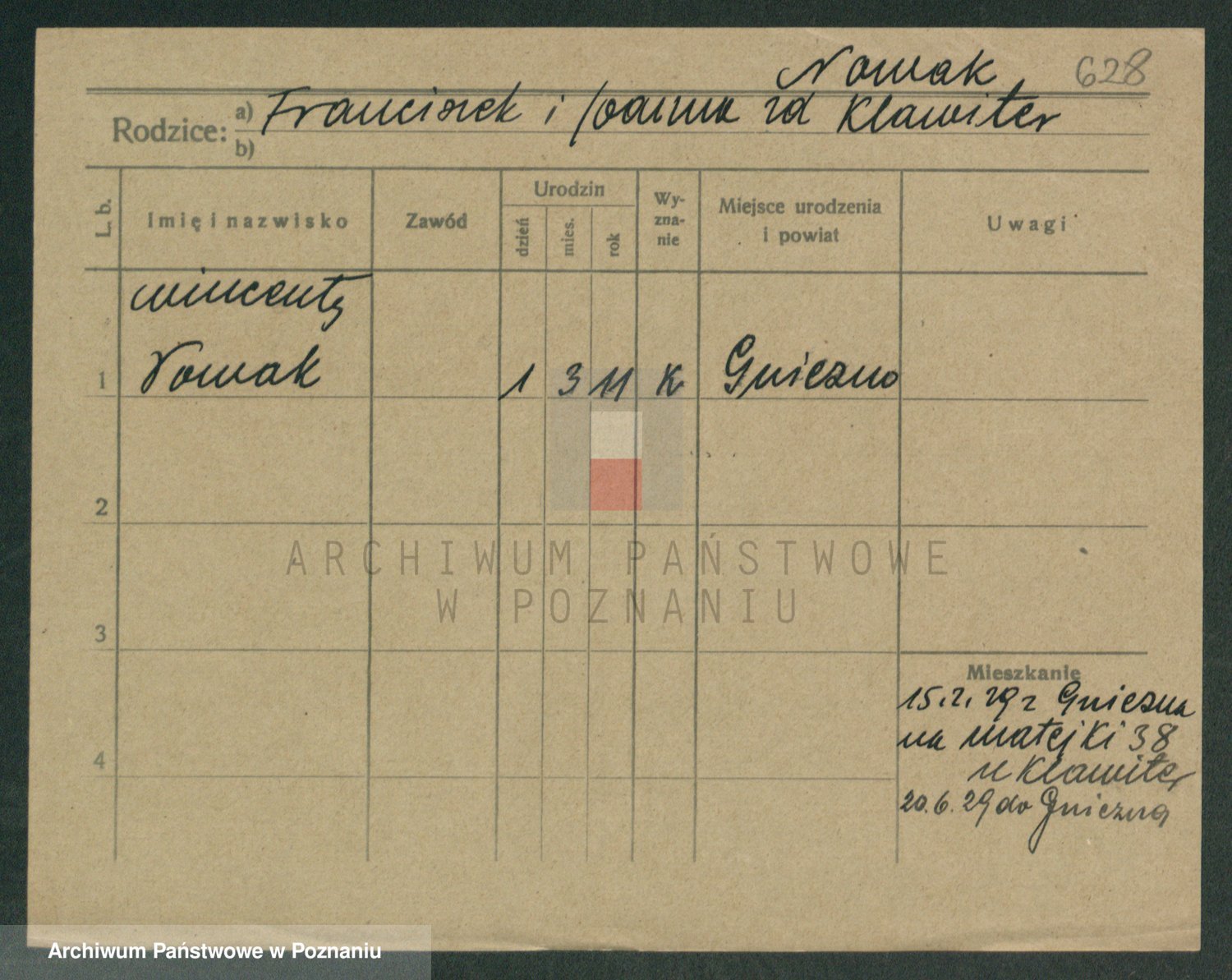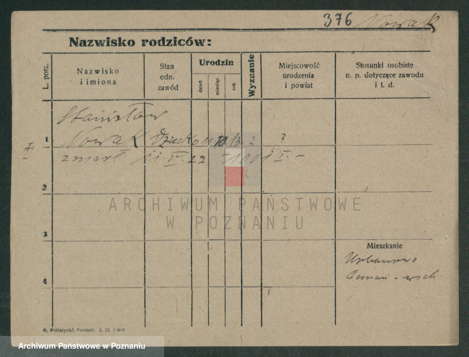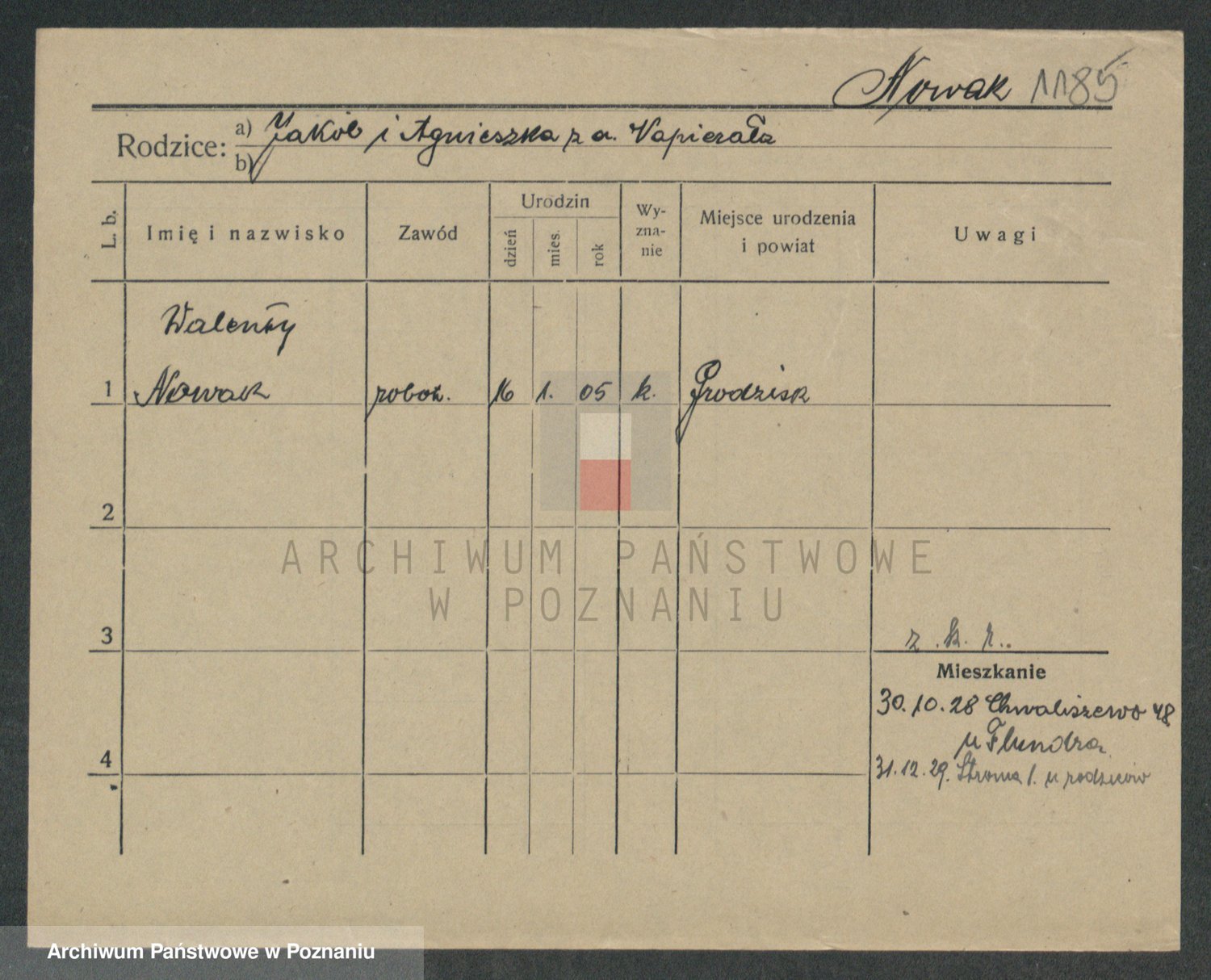 Podgląd karty osobowej dostępny jest po kliknięciu na nazwisko lub ikonkę karty. Można dokonywać powiększenia (ikony na górze) lub przechodzić między kolejnymi skanami (strzałki po bokach).
