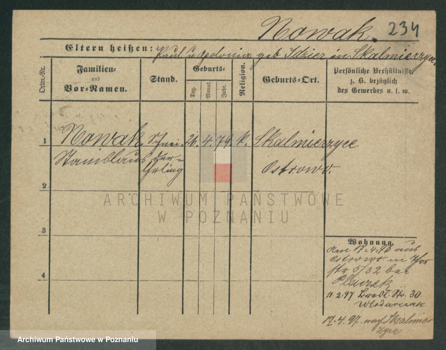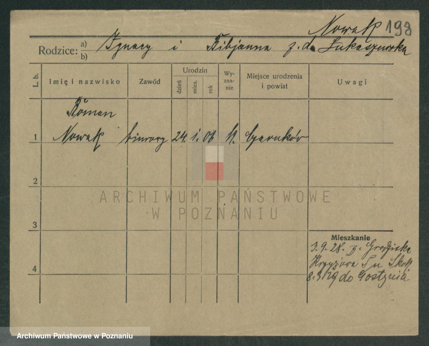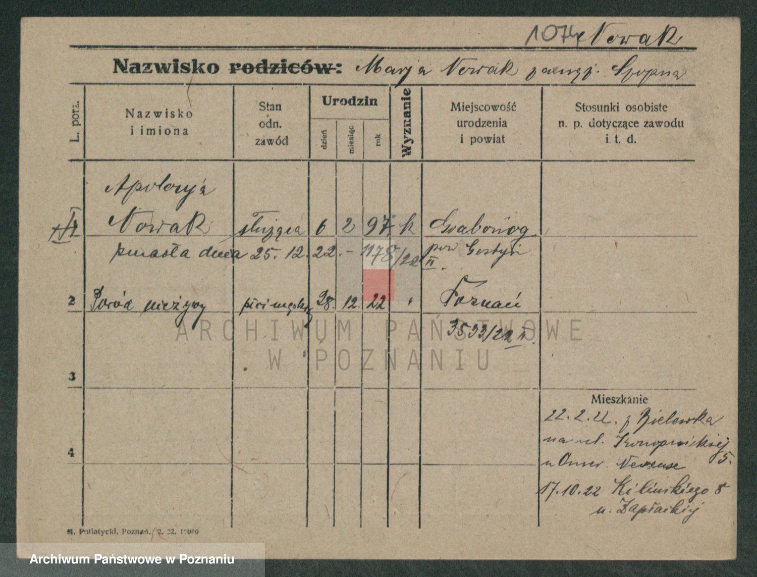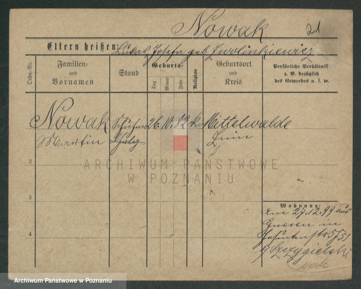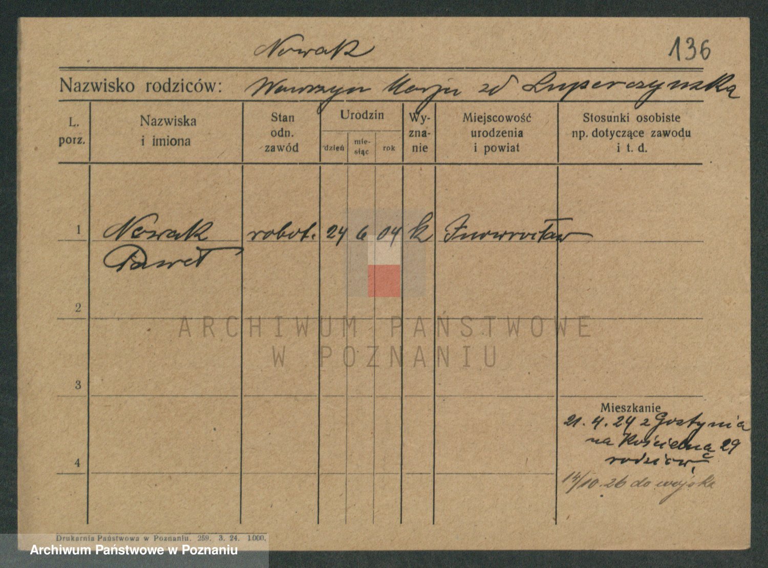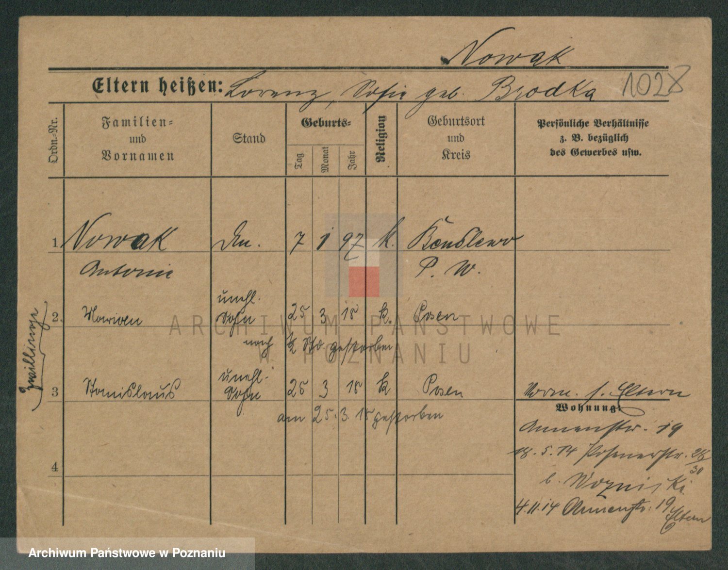 Podgląd karty osobowej dostępny jest po kliknięciu na nazwisko lub ikonkę karty. Można dokonywać powiększenia (ikony na górze) lub przechodzić między kolejnymi skanami (strzałki po bokach).