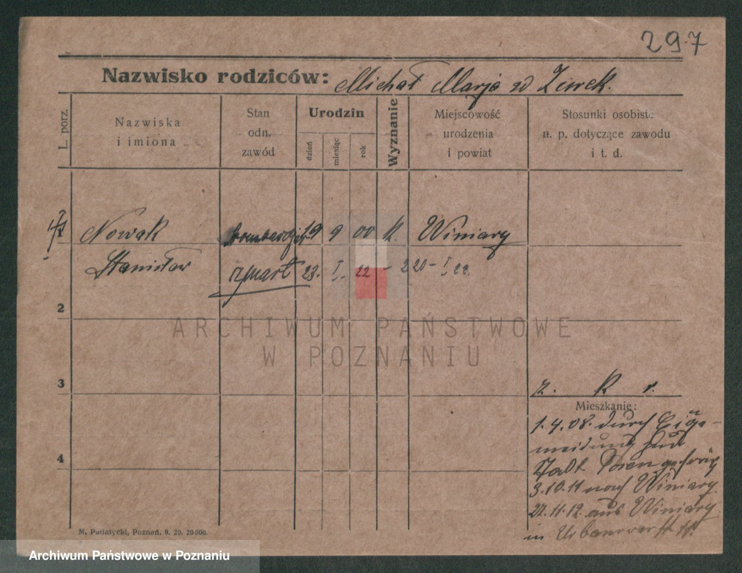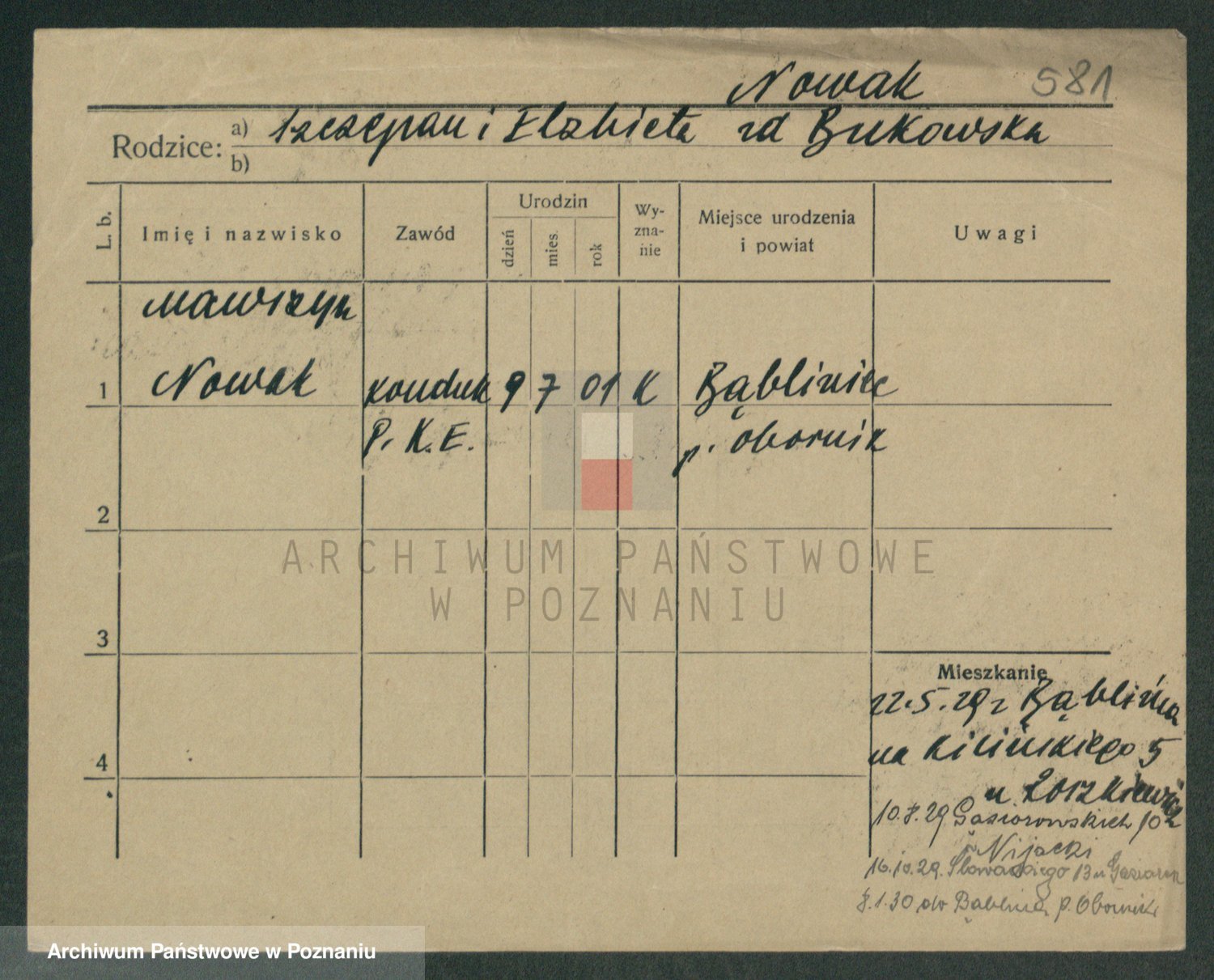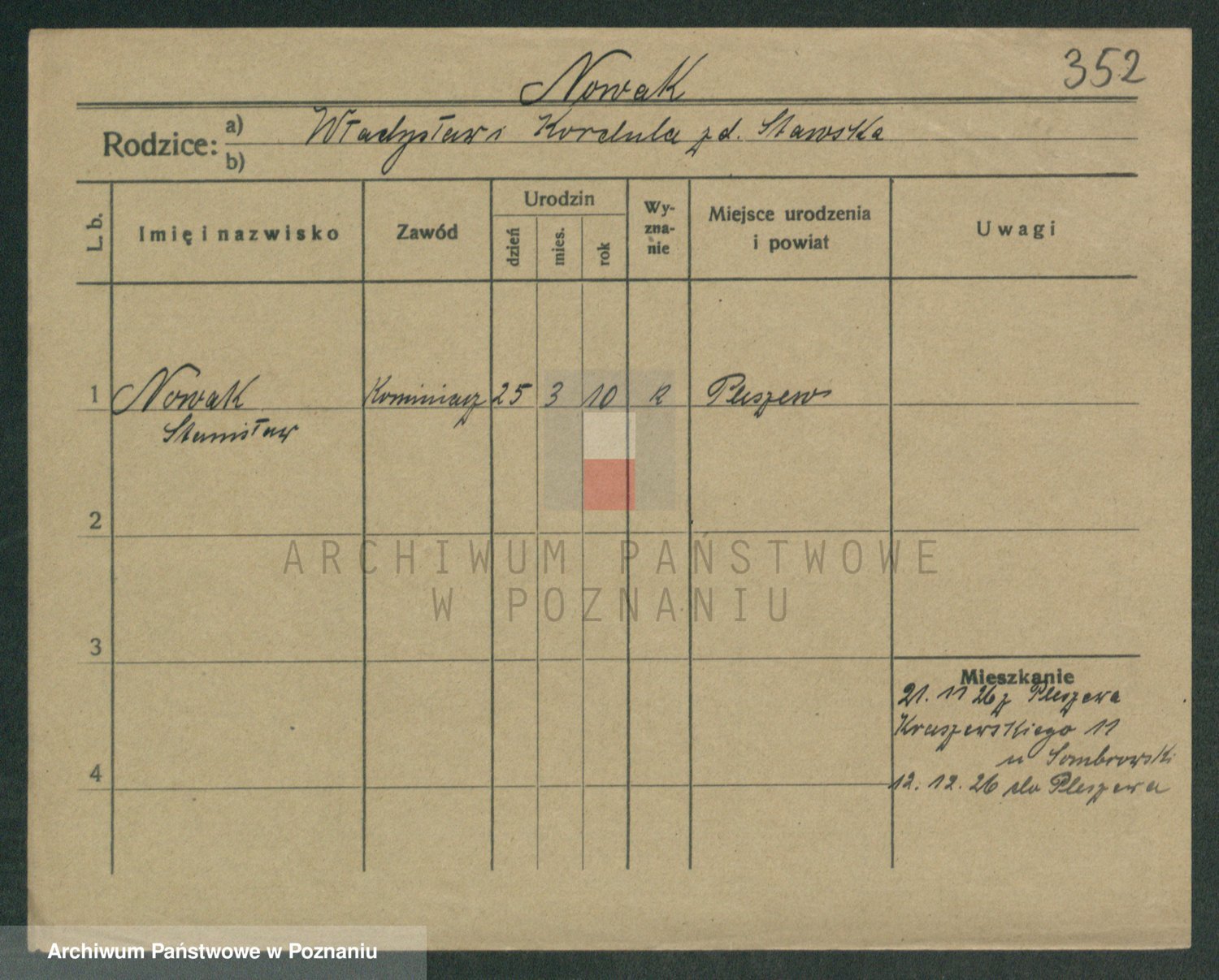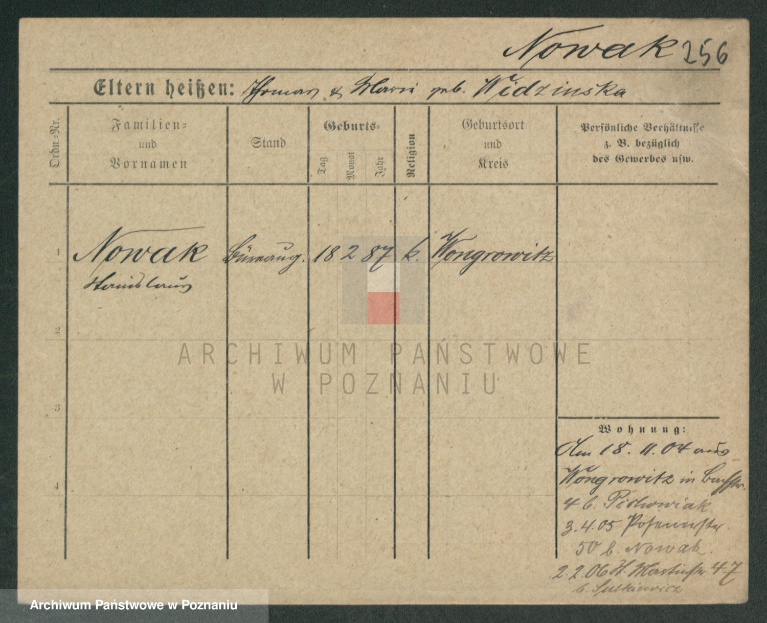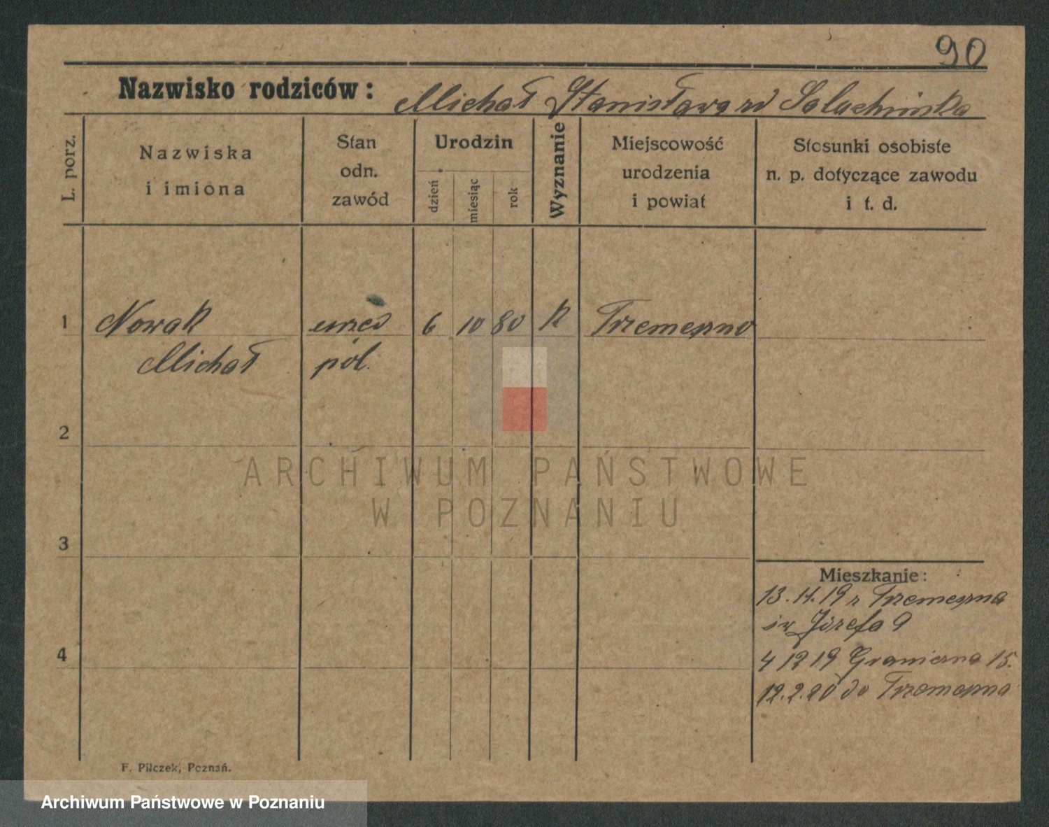 Podgląd karty osobowej dostępny jest po kliknięciu na nazwisko lub ikonkę karty. Można dokonywać powiększenia (ikony na górze) lub przechodzić między kolejnymi skanami (strzałki po bokach).