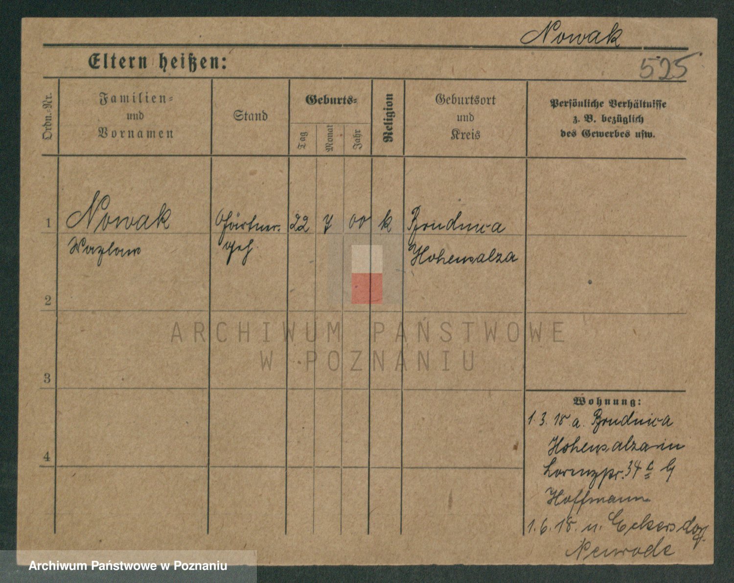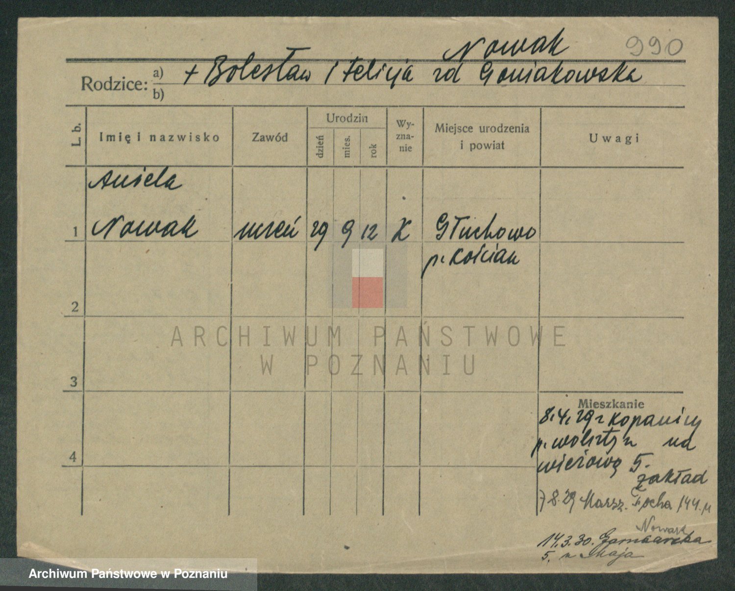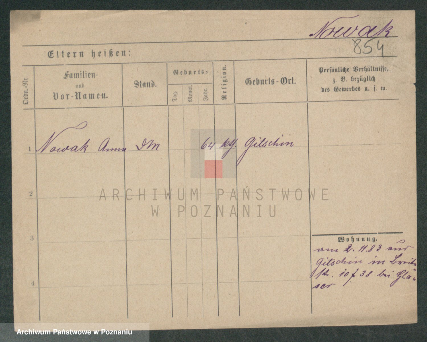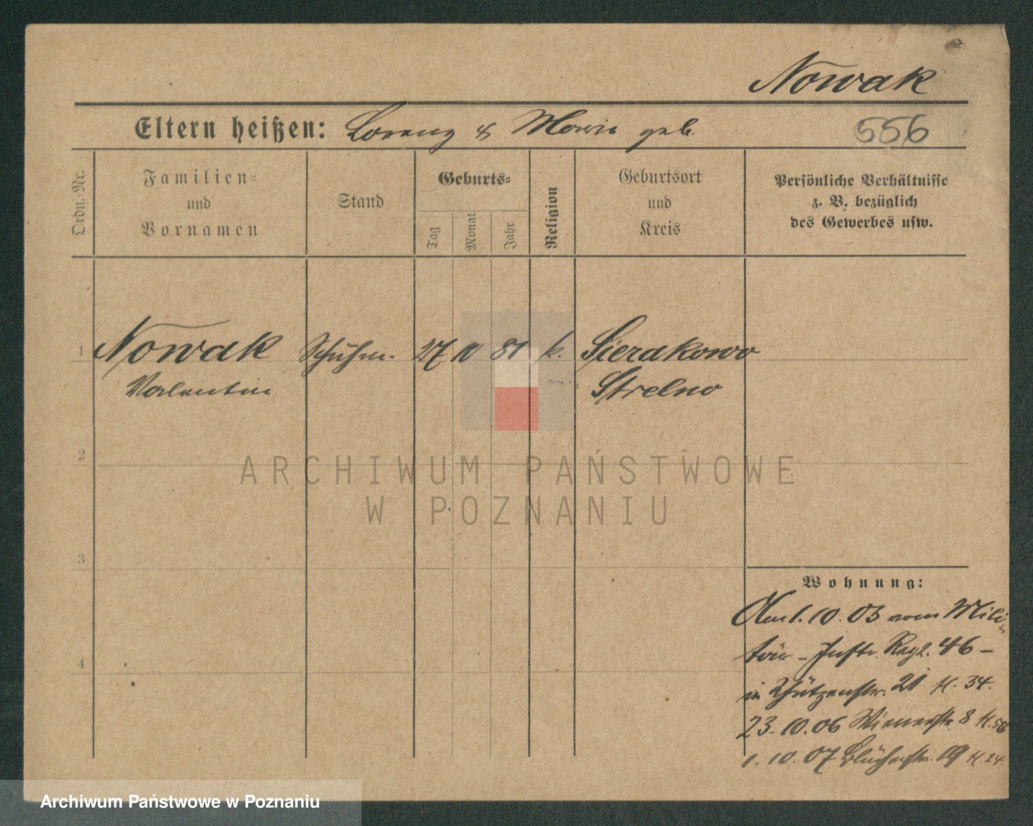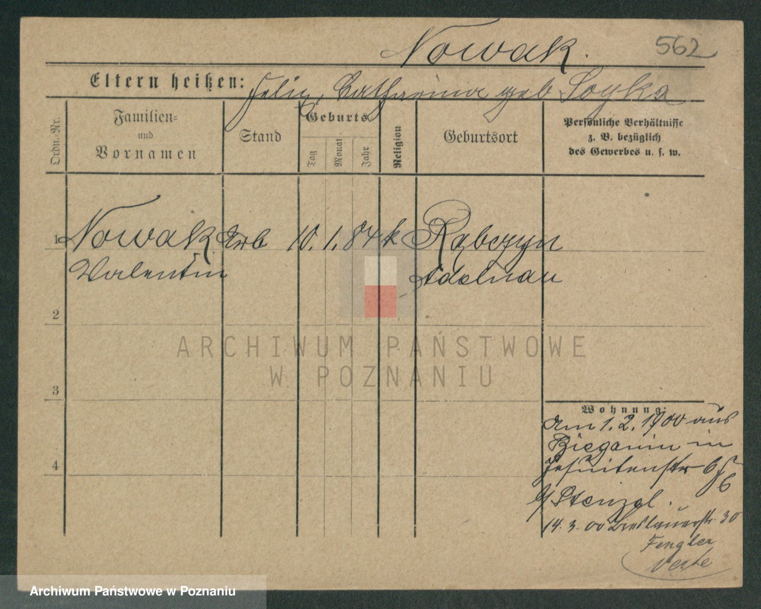 Podgląd karty osobowej dostępny jest po kliknięciu na nazwisko lub ikonkę karty. Można dokonywać powiększenia (ikony na górze) lub przechodzić między kolejnymi skanami (strzałki po bokach).