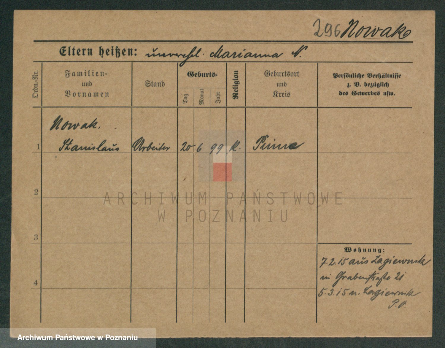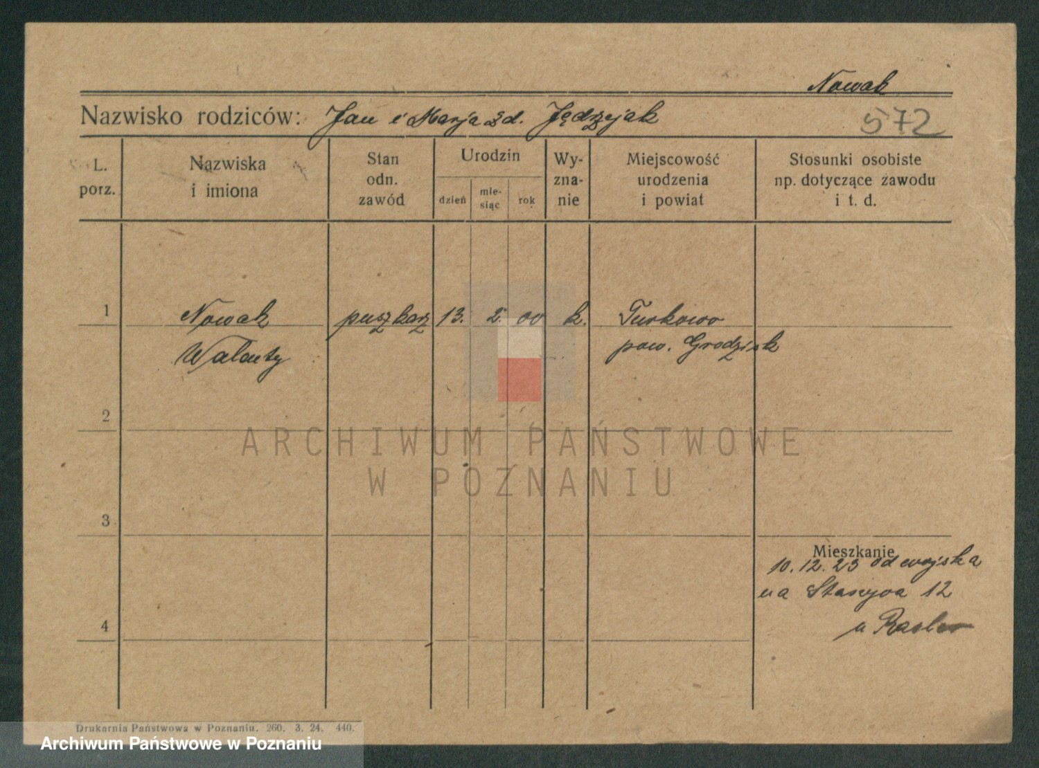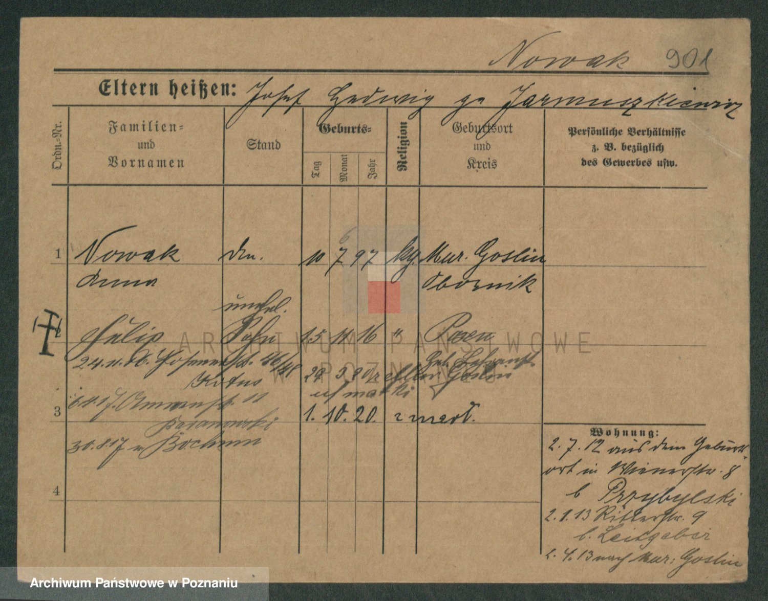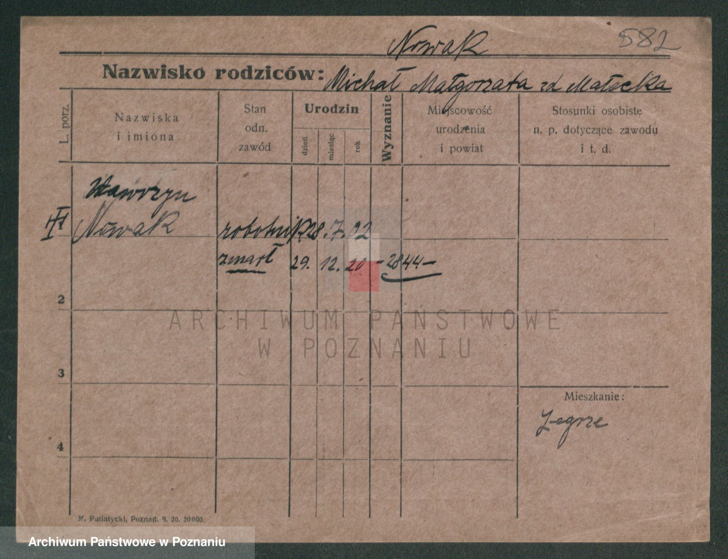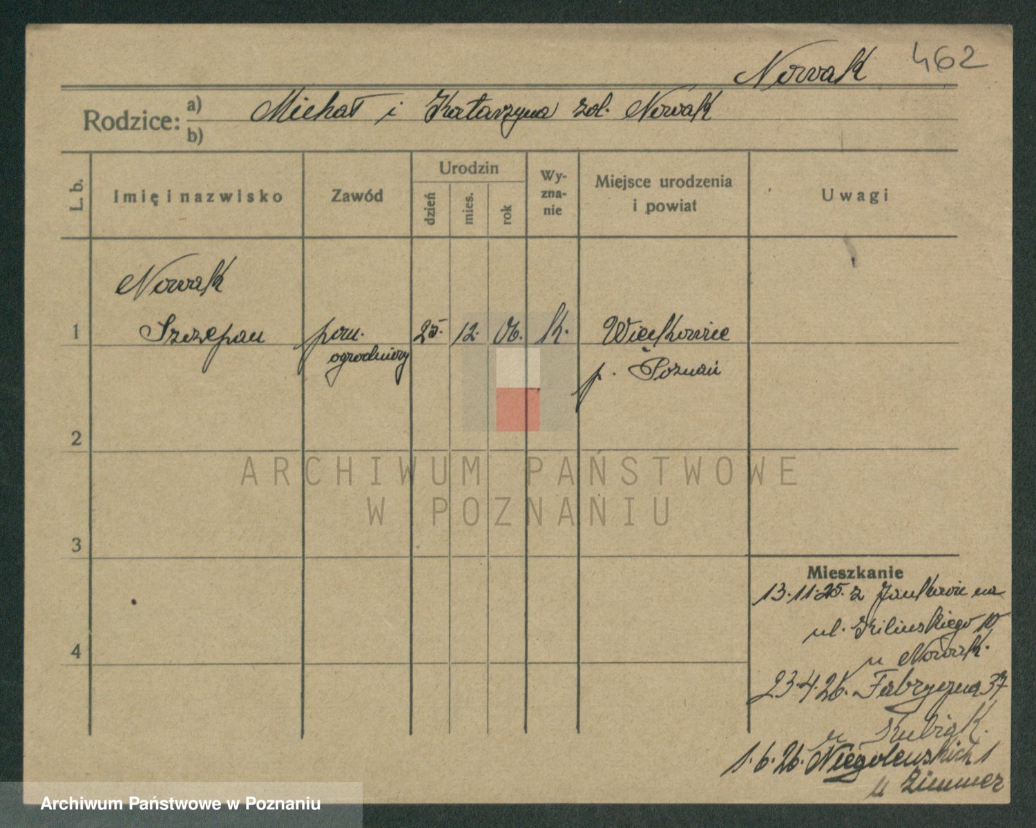Podgląd karty osobowej dostępny jest po kliknięciu na nazwisko lub ikonkę karty. Można dokonywać powiększenia (ikony na górze) lub przechodzić między kolejnymi skanami (strzałki po bokach).