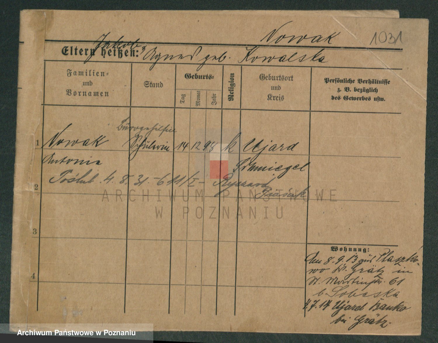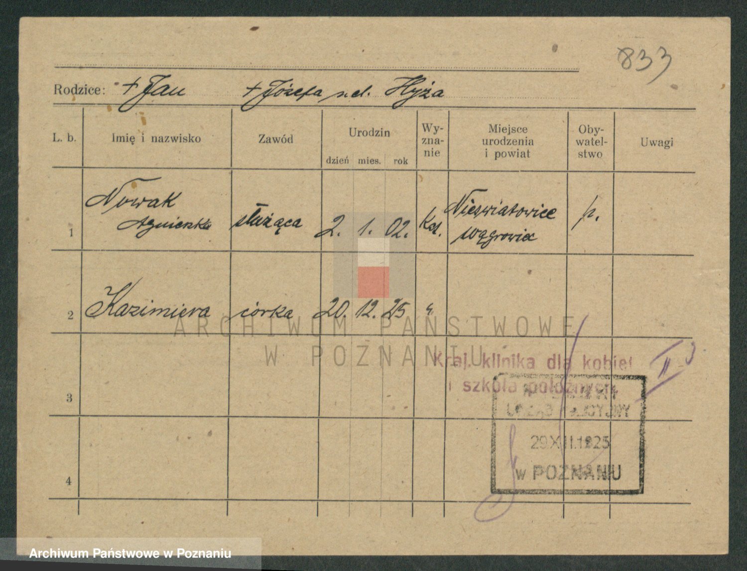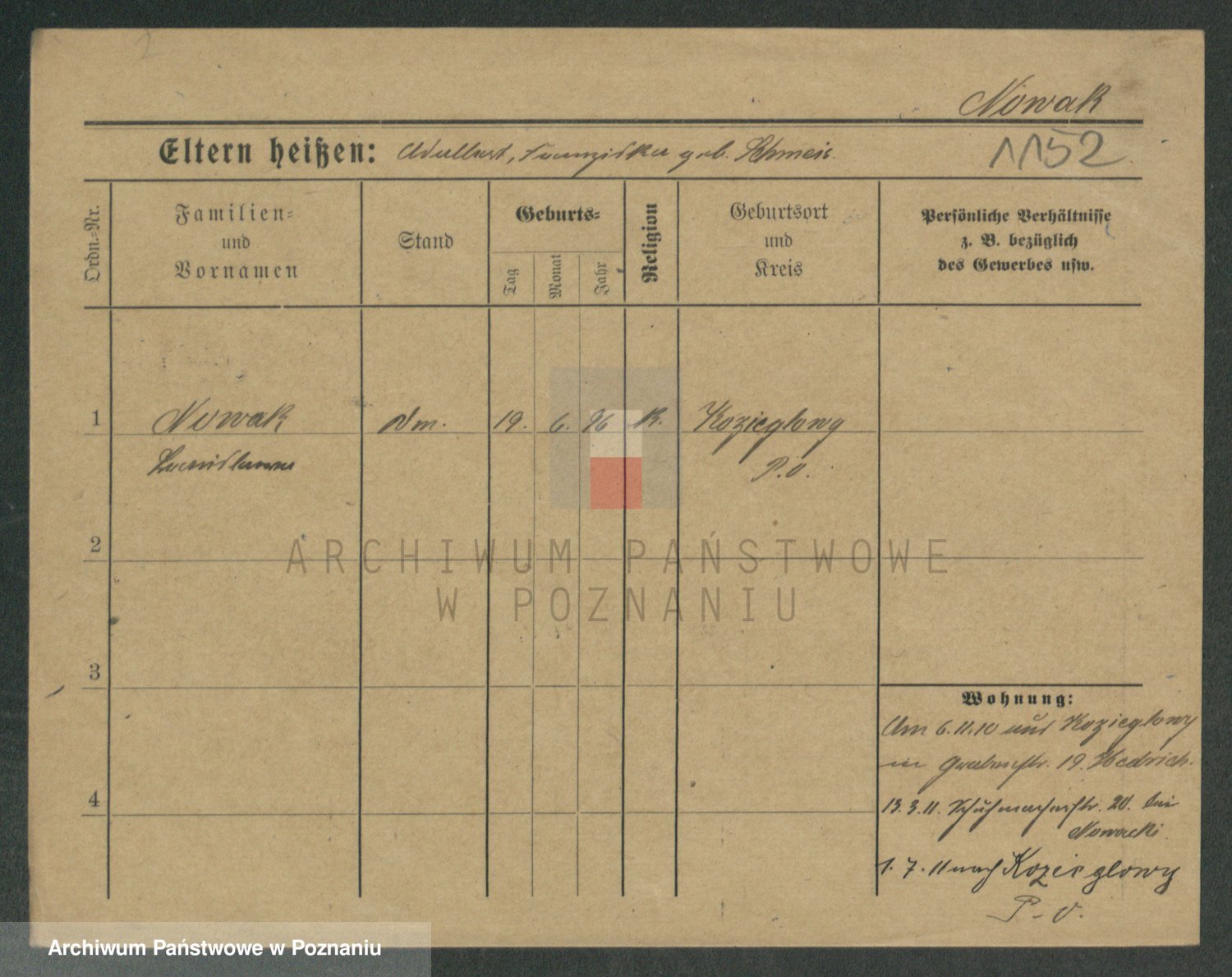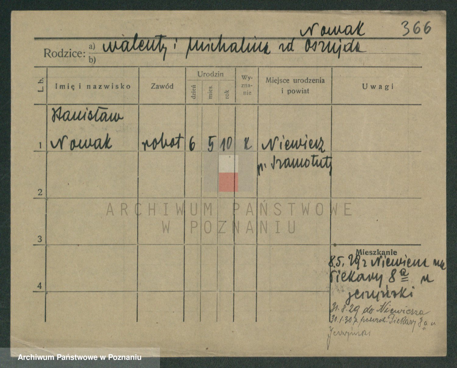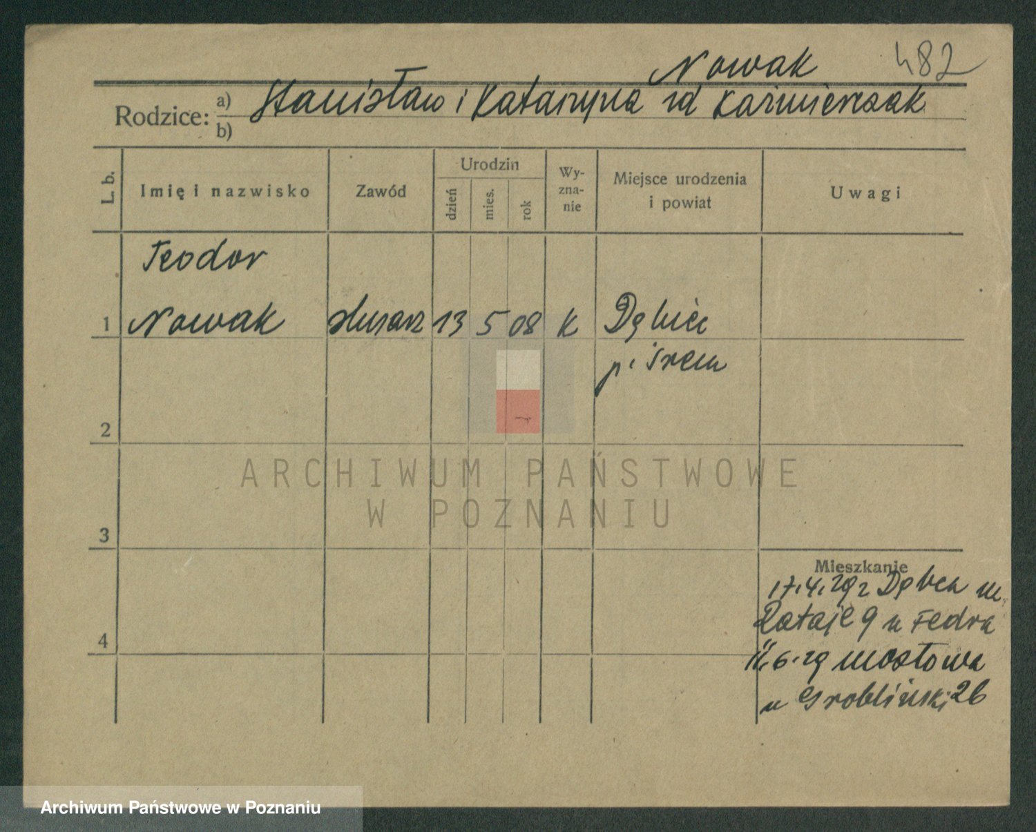 Podgląd karty osobowej dostępny jest po kliknięciu na nazwisko lub ikonkę karty. Można dokonywać powiększenia (ikony na górze) lub przechodzić między kolejnymi skanami (strzałki po bokach).