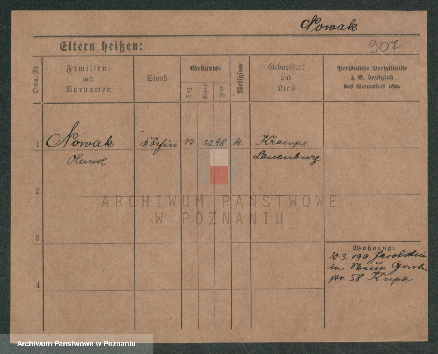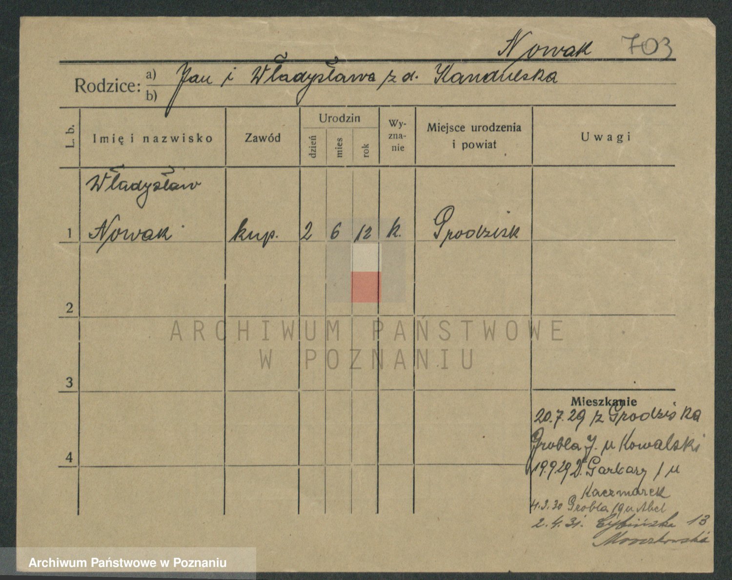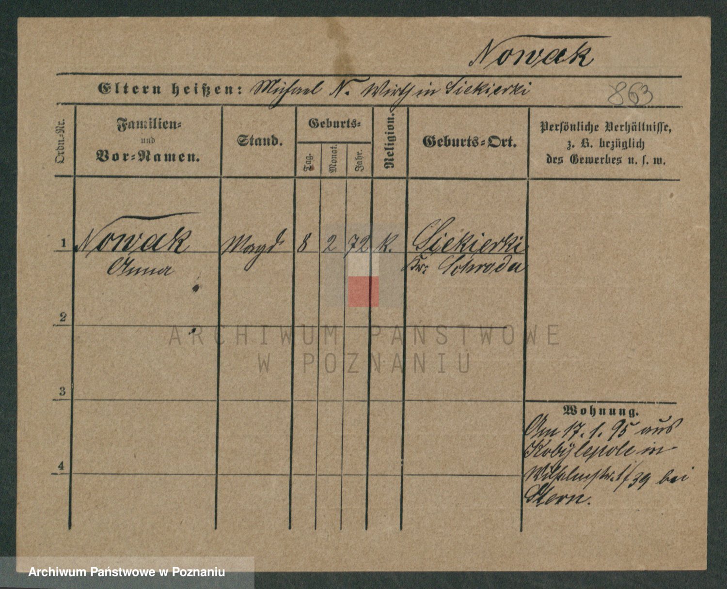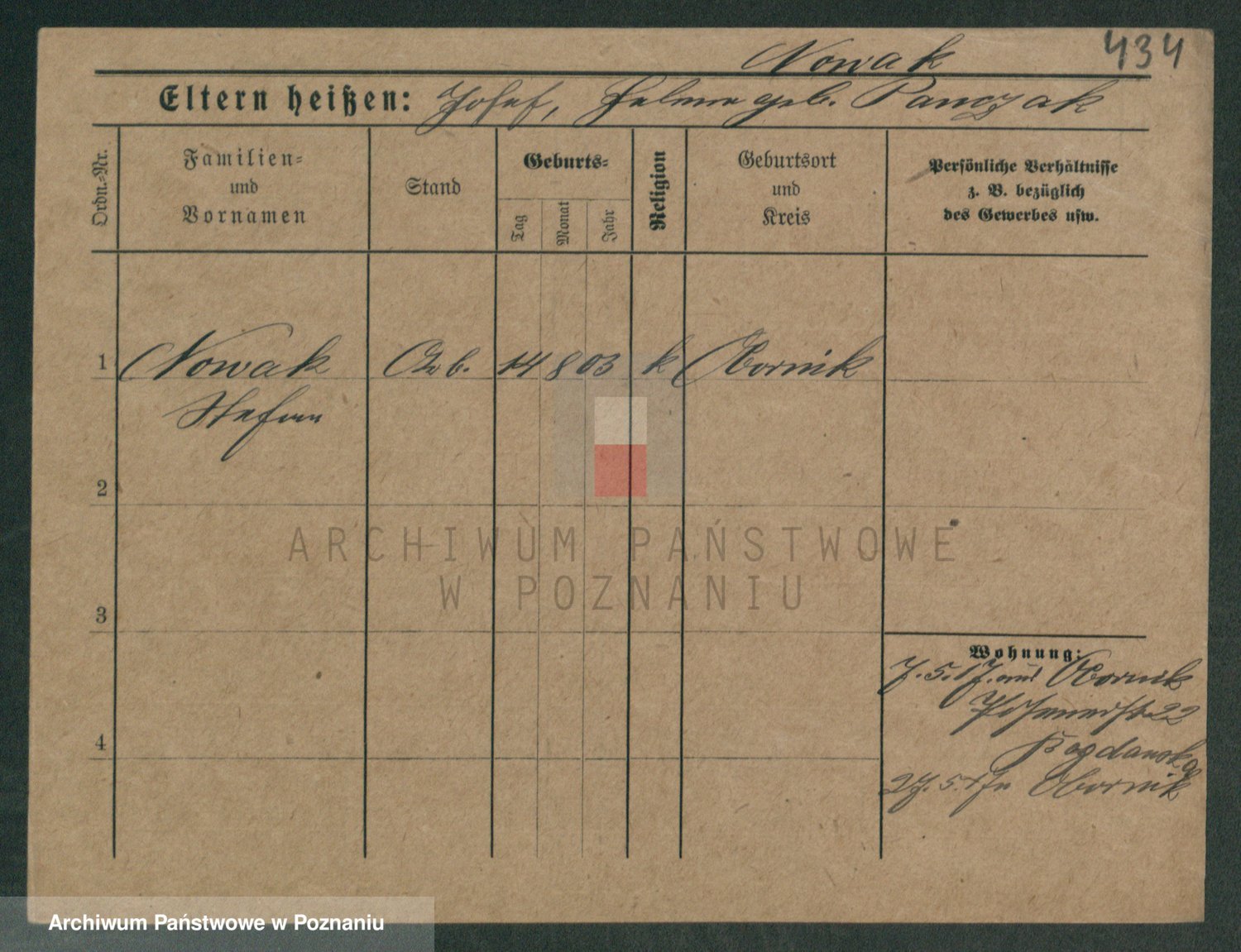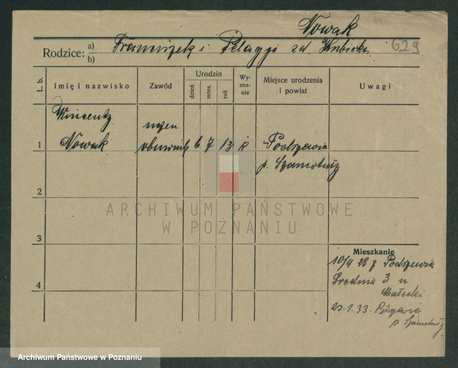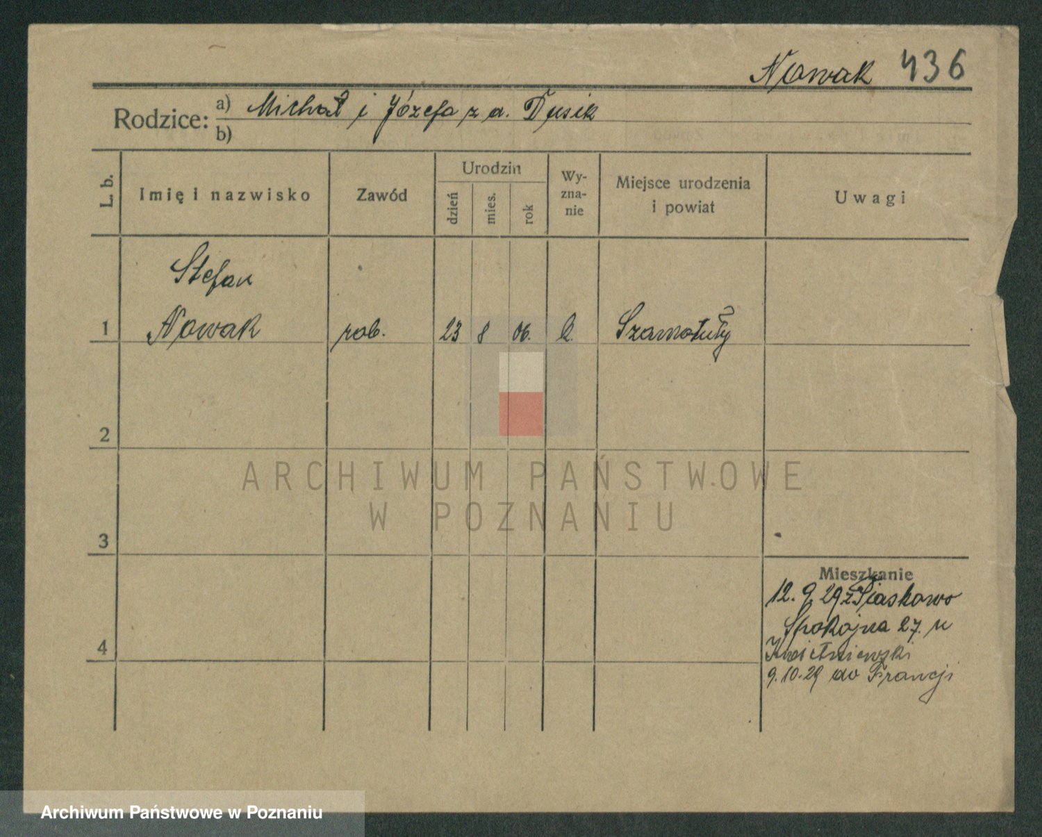 Podgląd karty osobowej dostępny jest po kliknięciu na nazwisko lub ikonkę karty. Można dokonywać powiększenia (ikony na górze) lub przechodzić między kolejnymi skanami (strzałki po bokach).