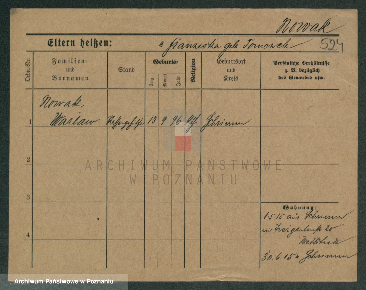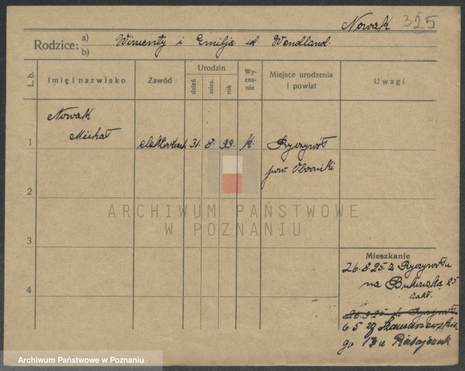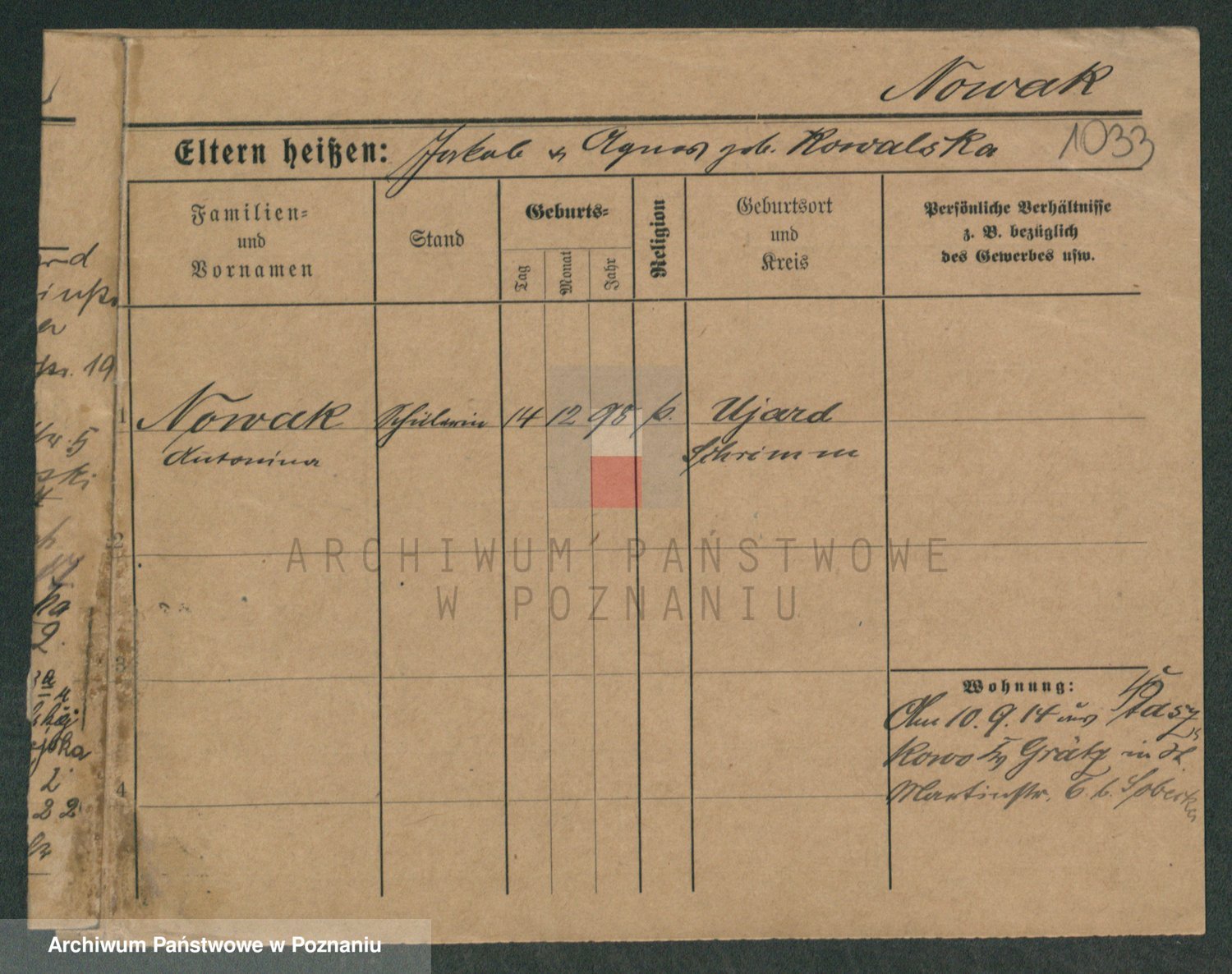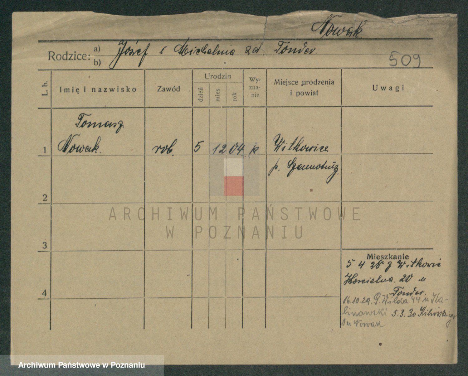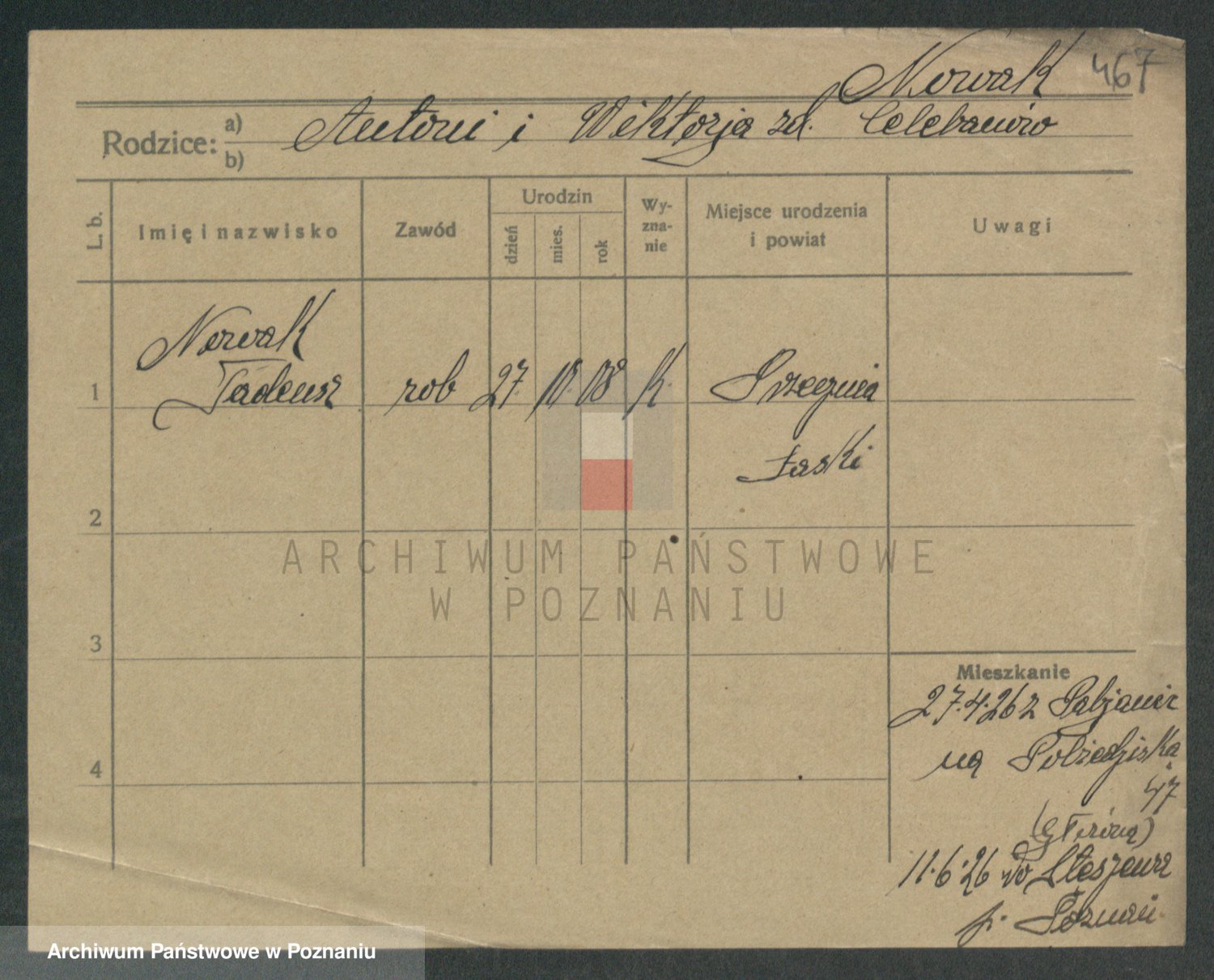Podgląd karty osobowej dostępny jest po kliknięciu na nazwisko lub ikonkę karty. Można dokonywać powiększenia (ikony na górze) lub przechodzić między kolejnymi skanami (strzałki po bokach).