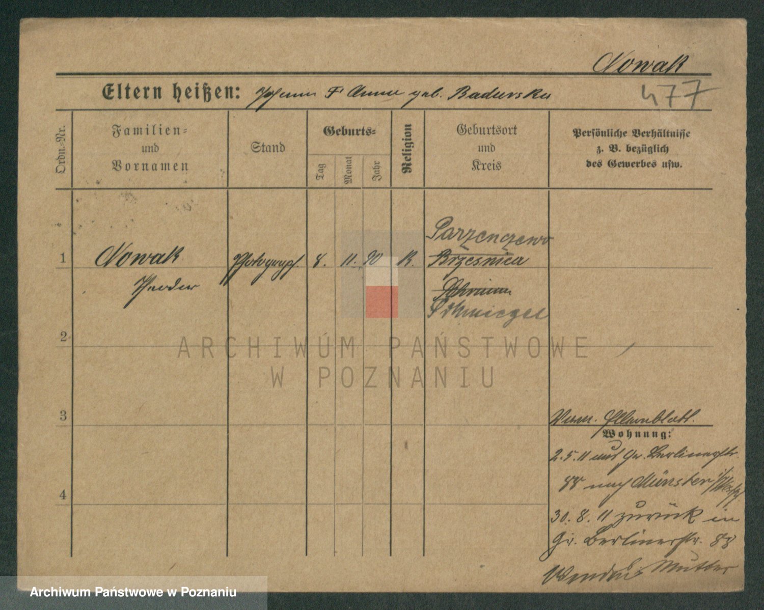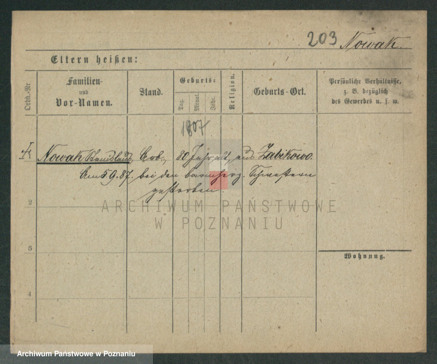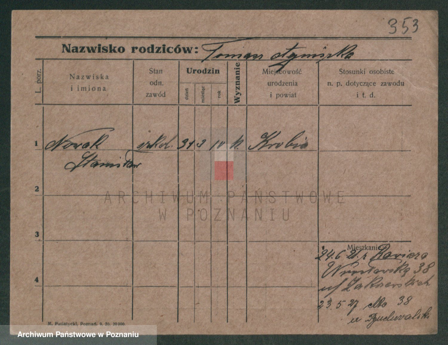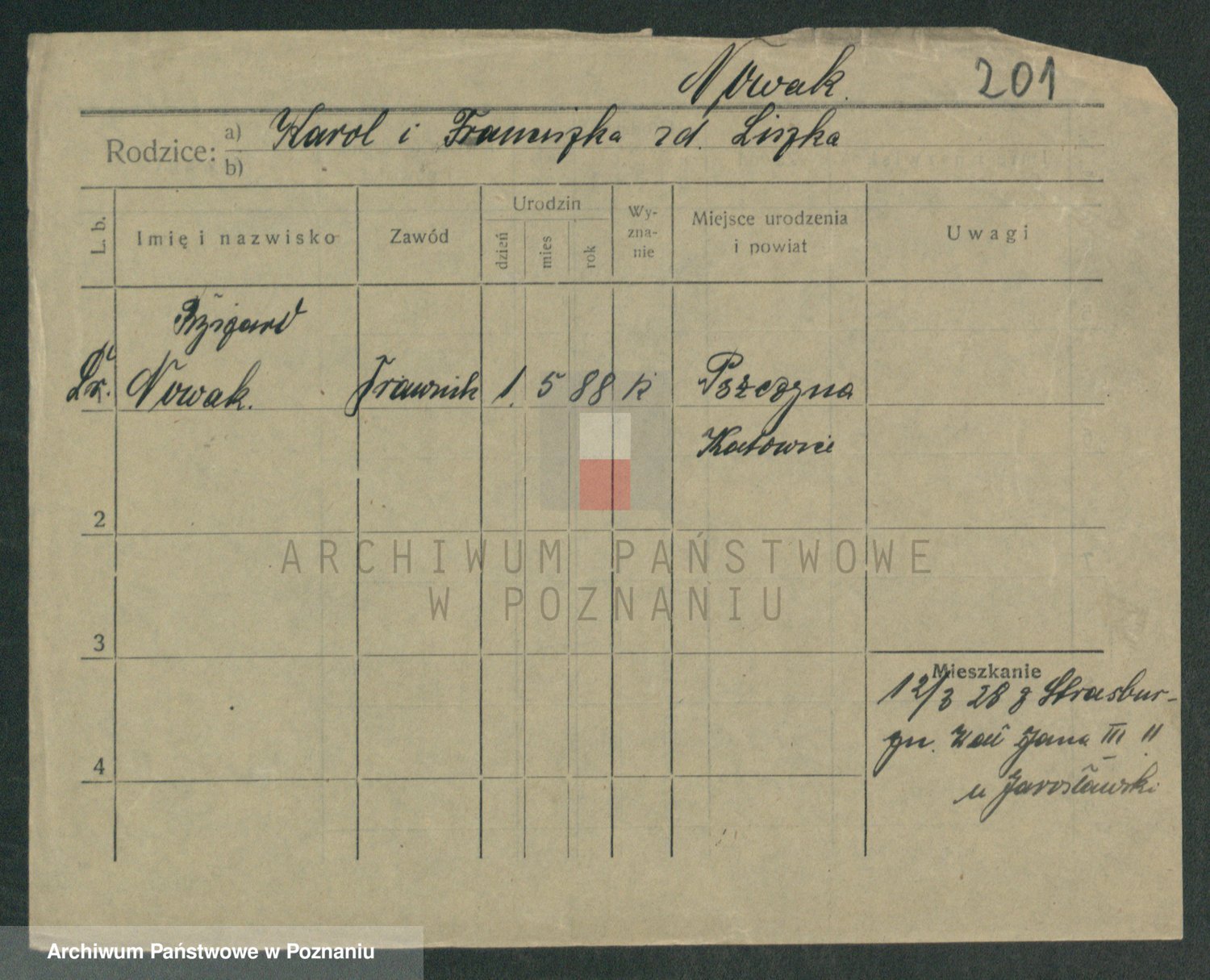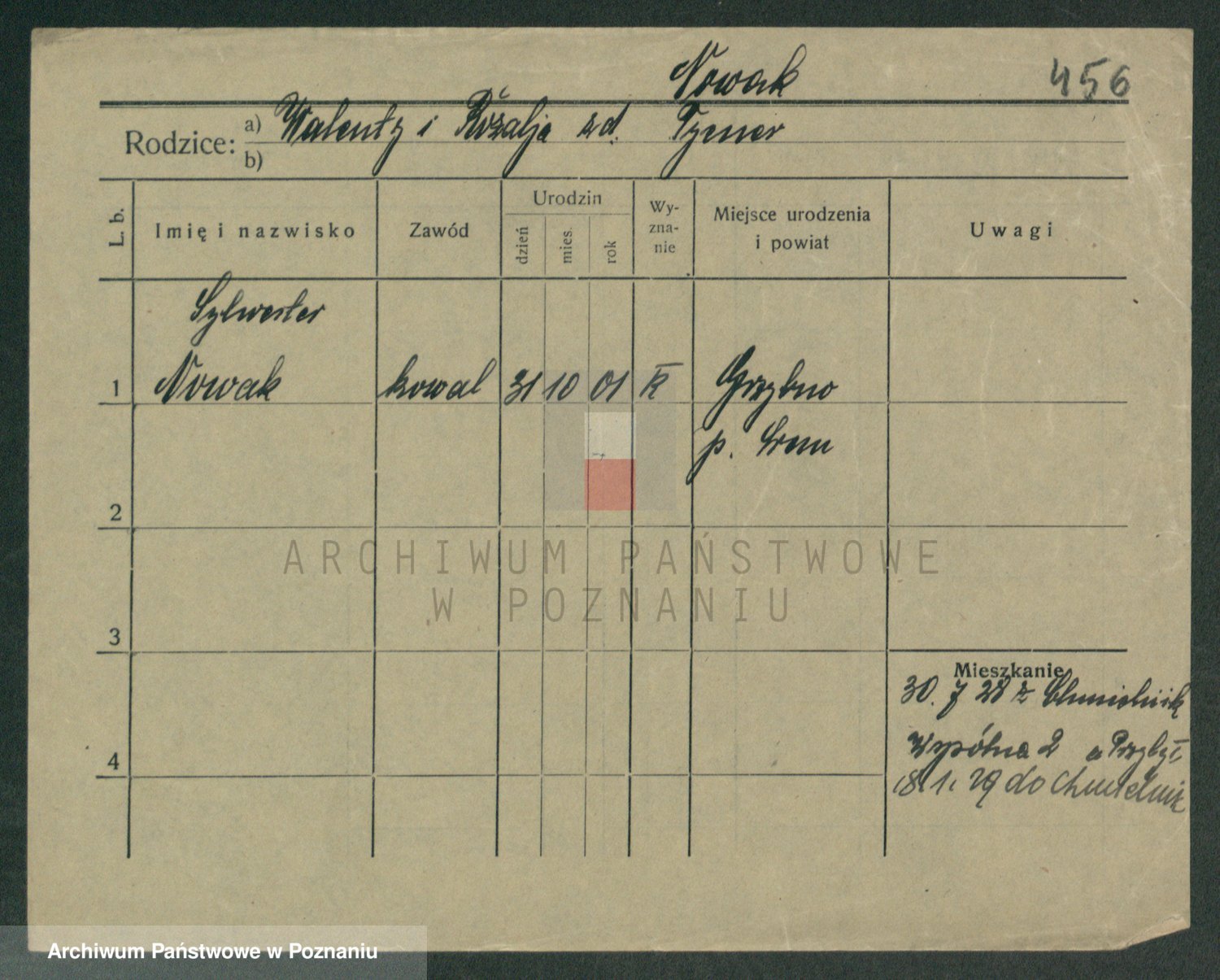Podgląd karty osobowej dostępny jest po kliknięciu na nazwisko lub ikonkę karty. Można dokonywać powiększenia (ikony na górze) lub przechodzić między kolejnymi skanami (strzałki po bokach).