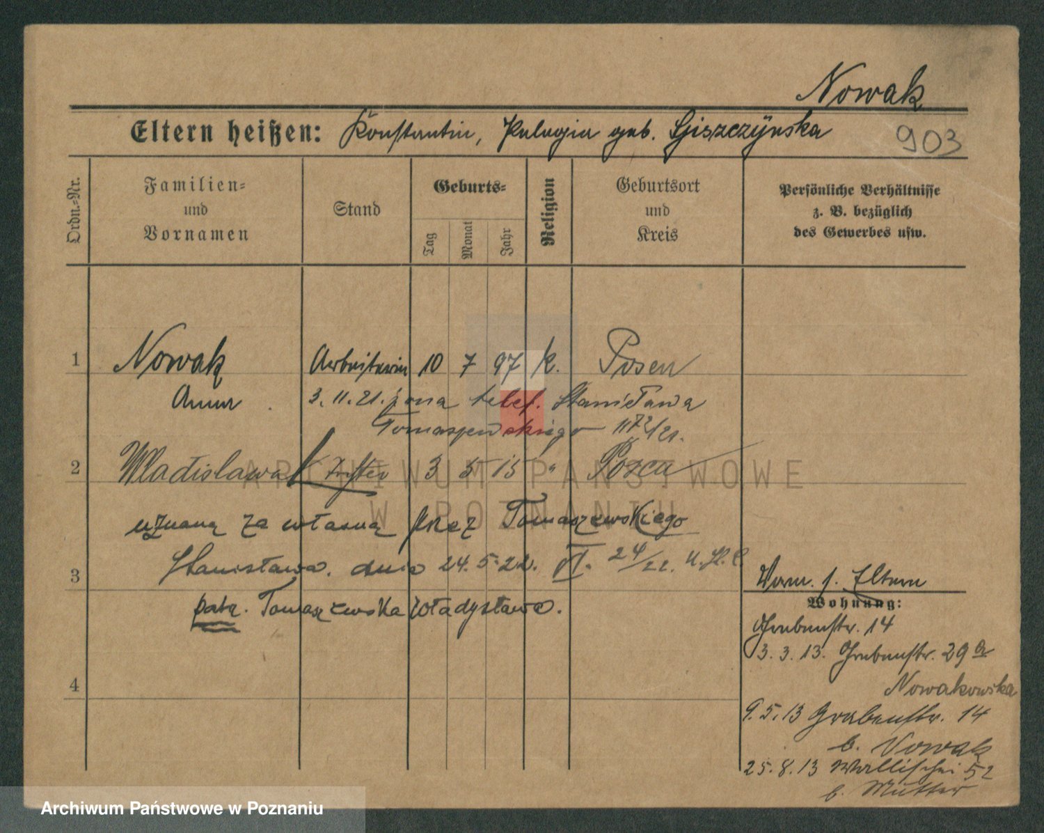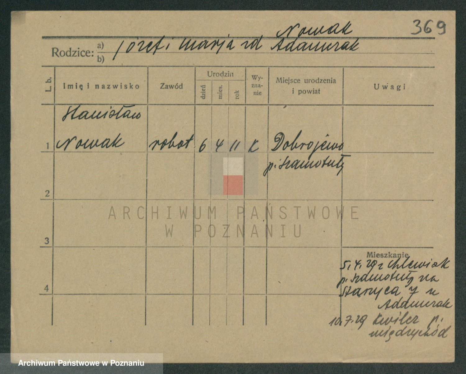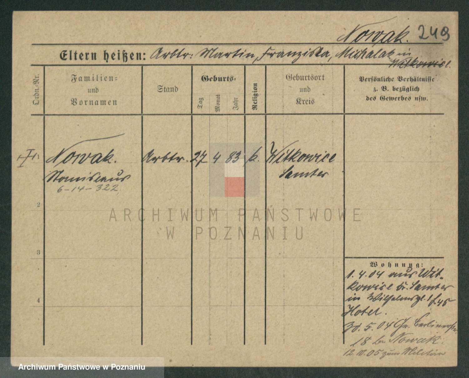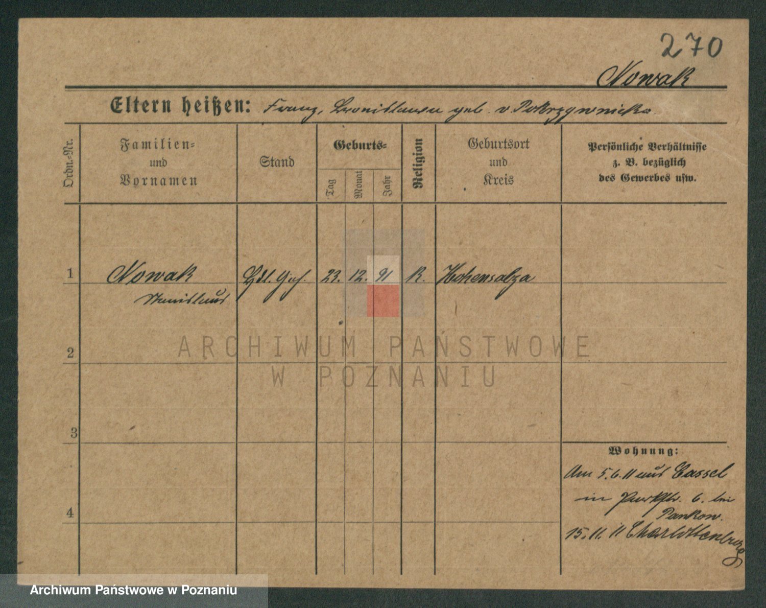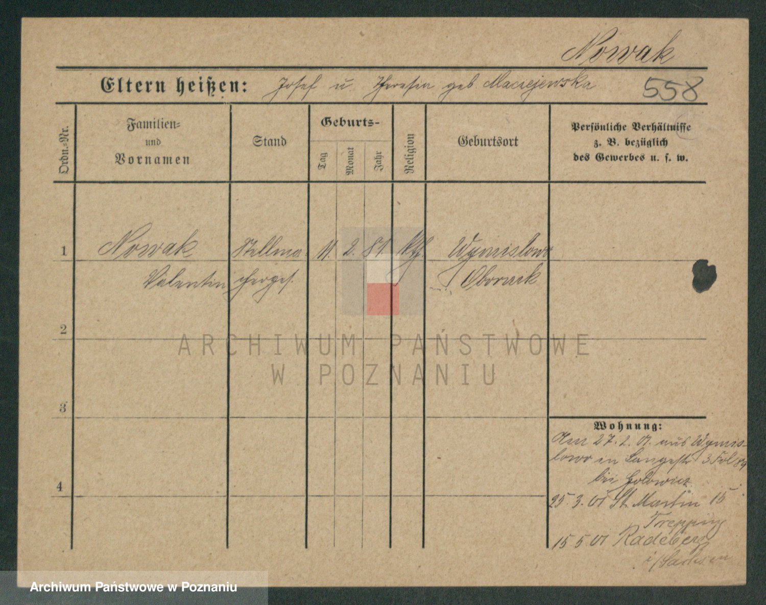 Podgląd karty osobowej dostępny jest po kliknięciu na nazwisko lub ikonkę karty. Można dokonywać powiększenia (ikony na górze) lub przechodzić między kolejnymi skanami (strzałki po bokach).