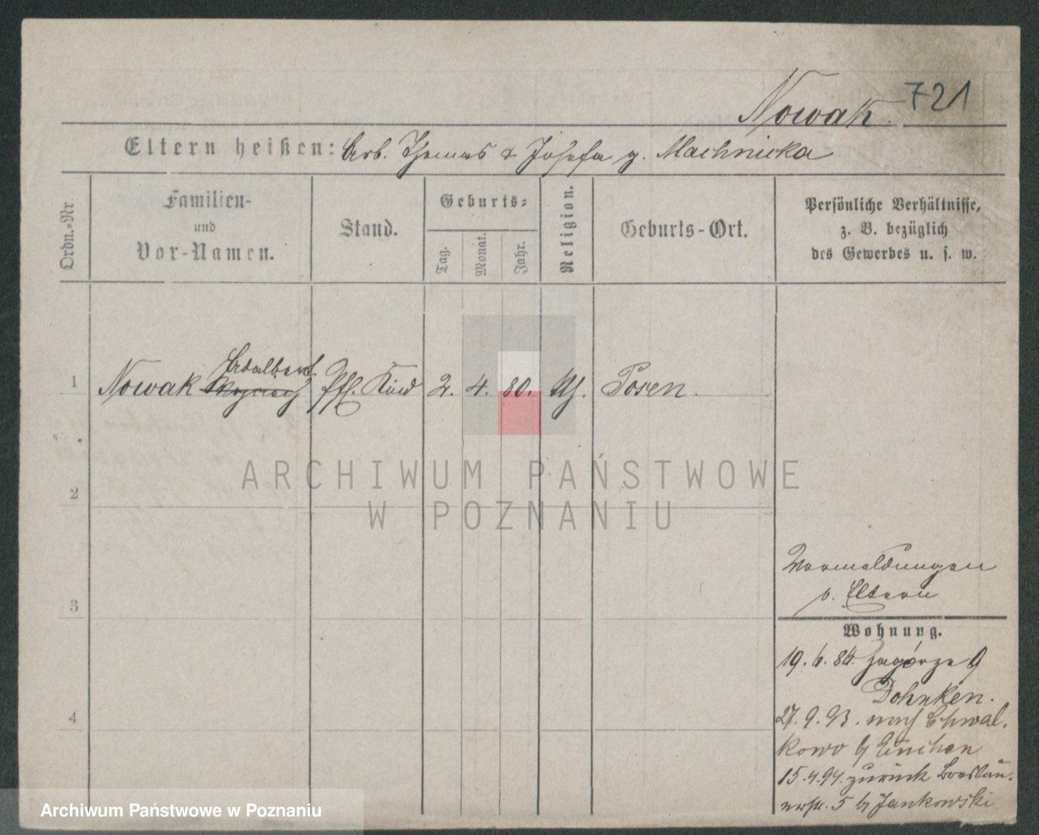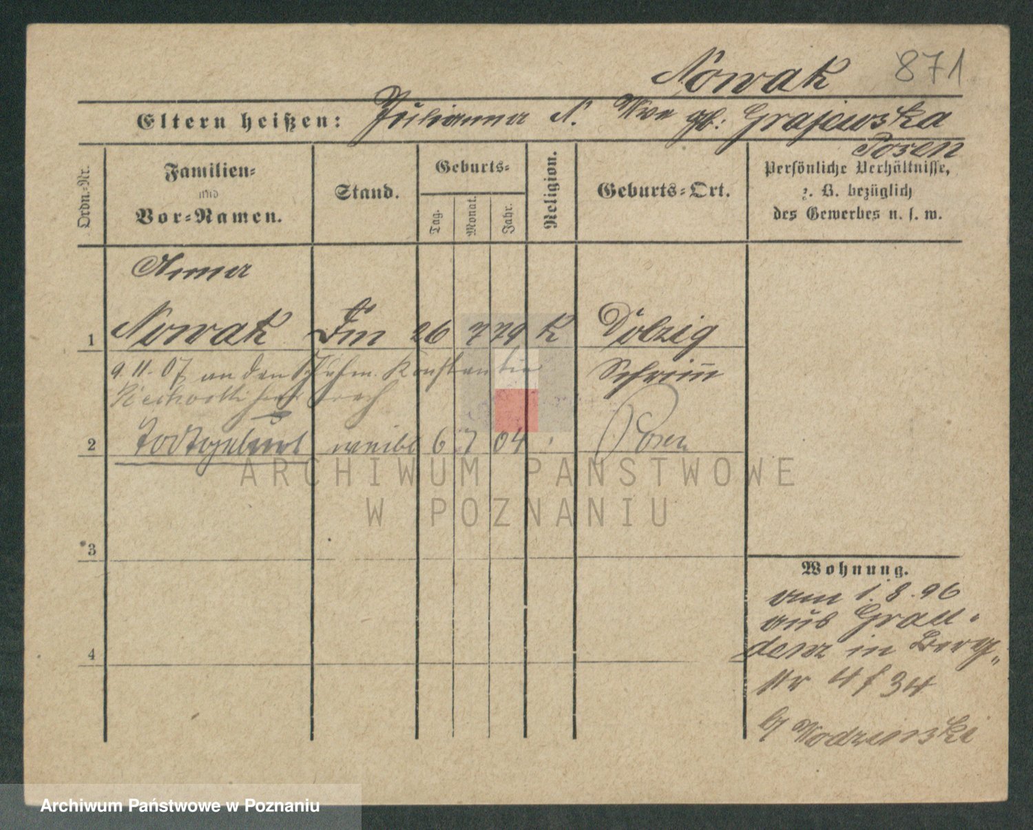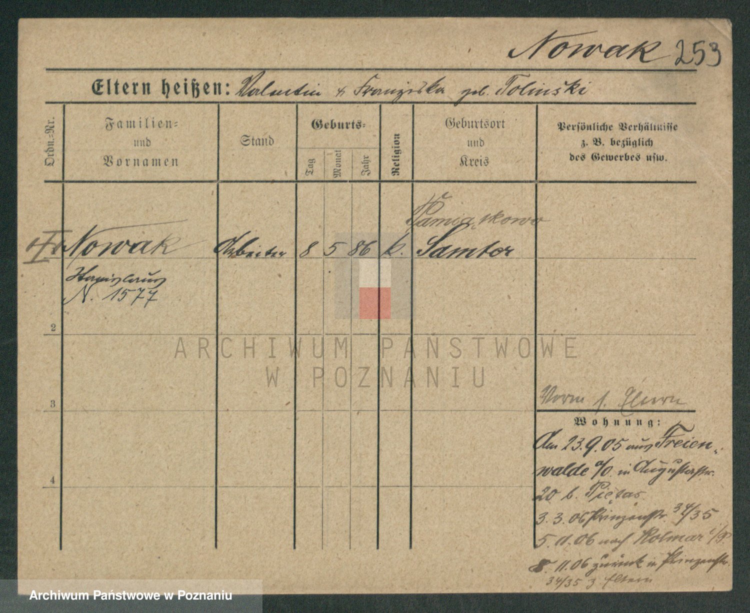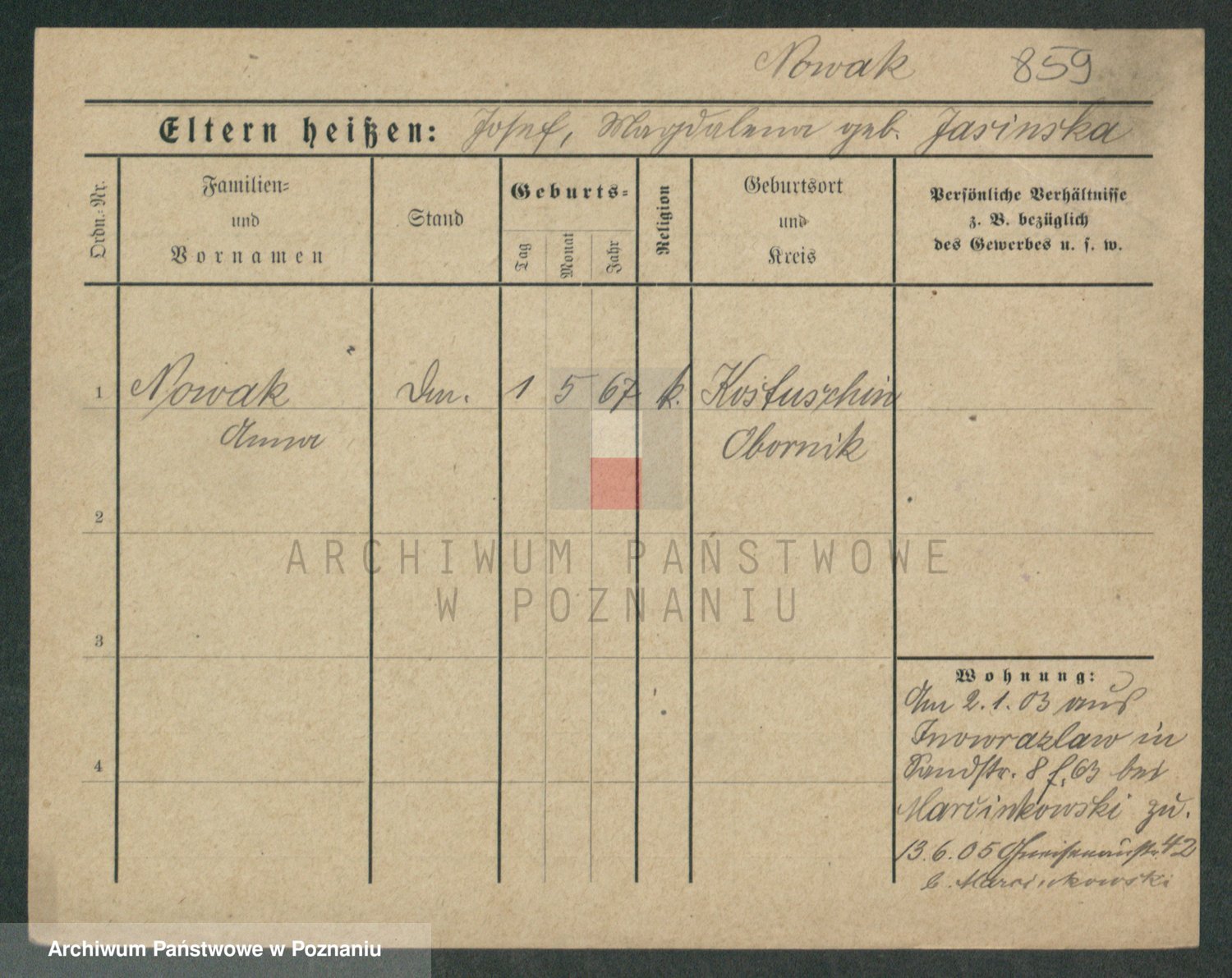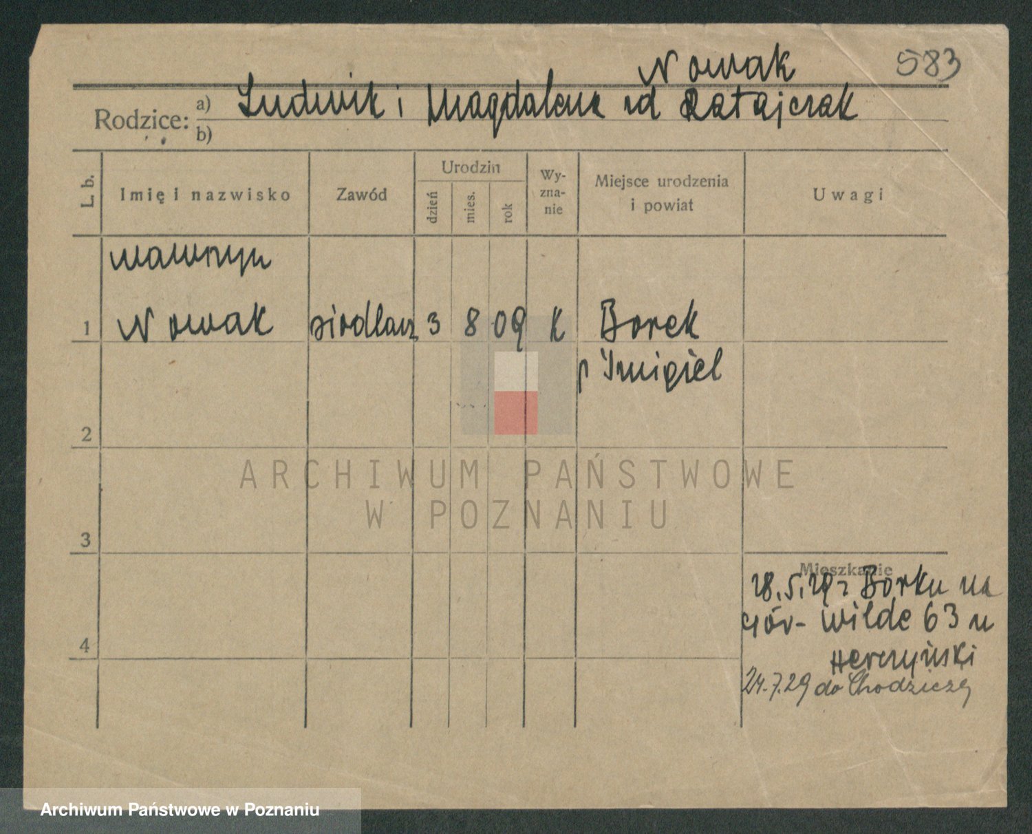 Podgląd karty osobowej dostępny jest po kliknięciu na nazwisko lub ikonkę karty. Można dokonywać powiększenia (ikony na górze) lub przechodzić między kolejnymi skanami (strzałki po bokach).