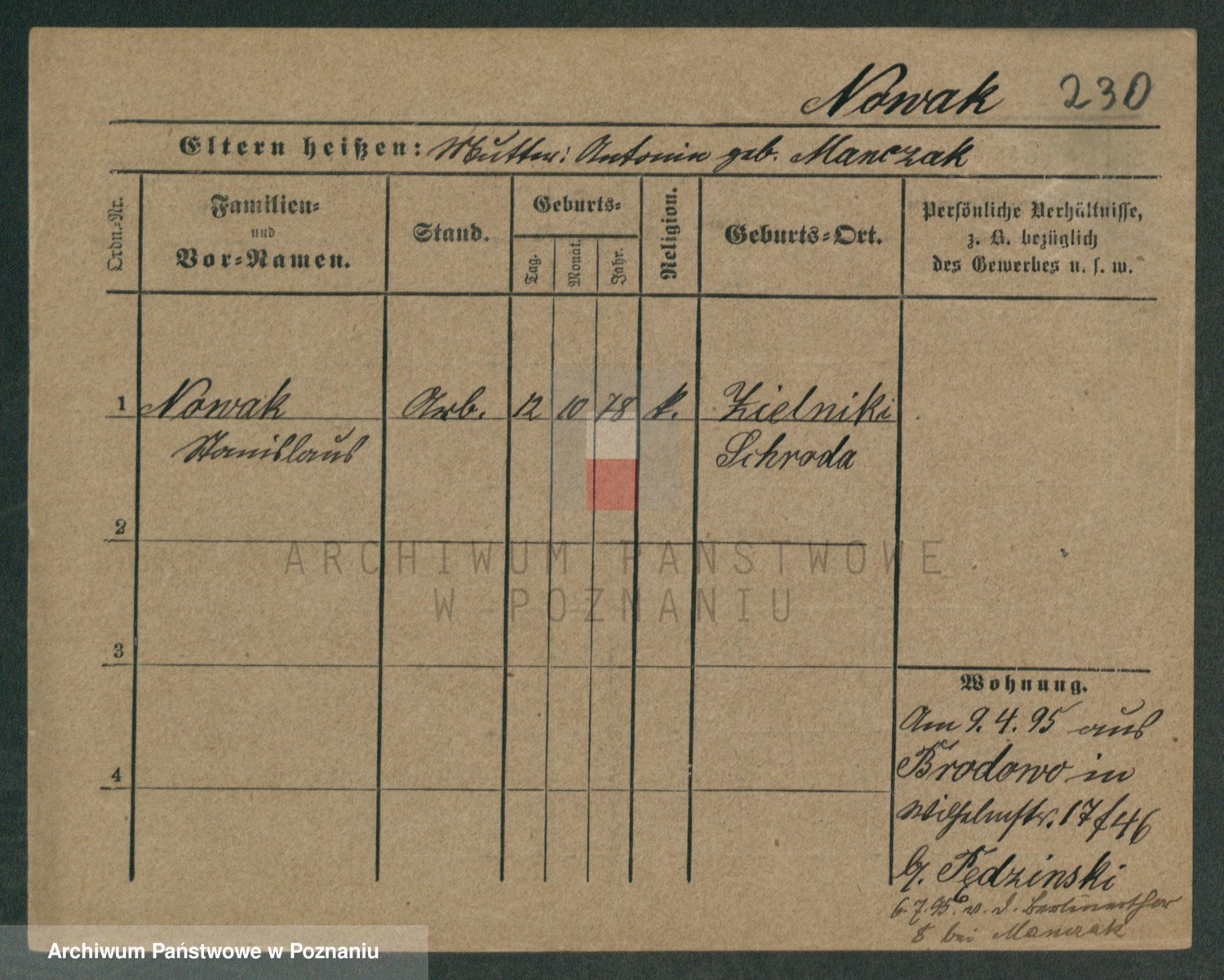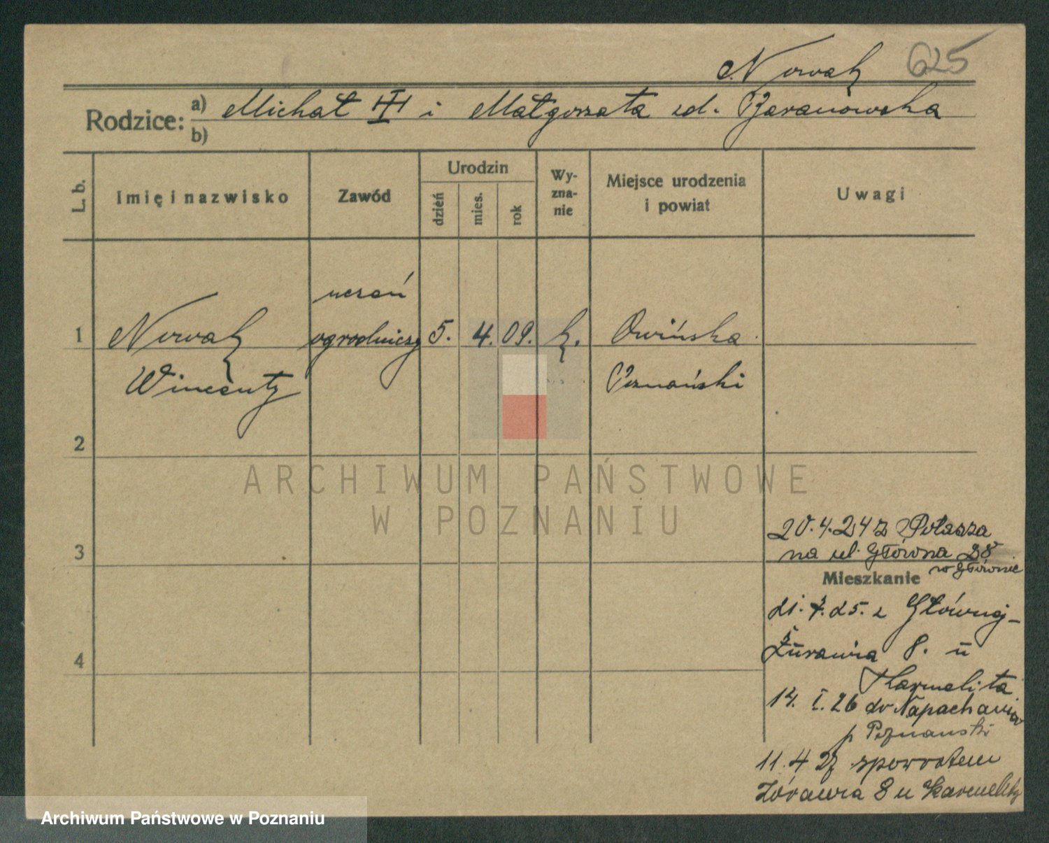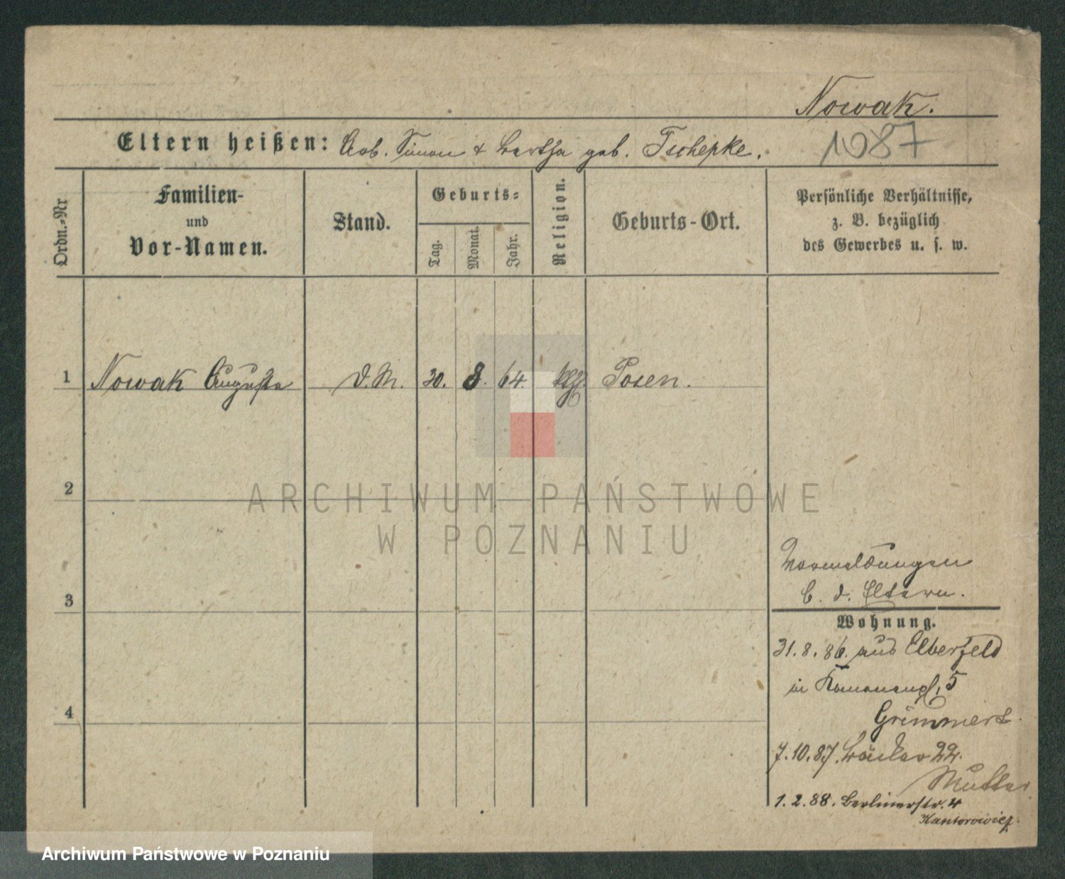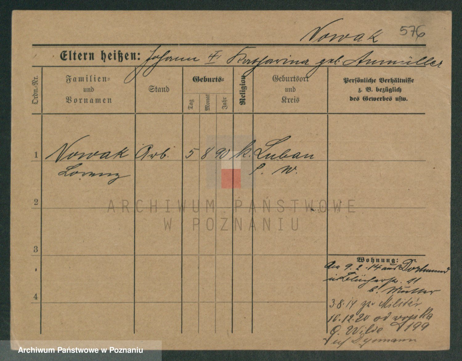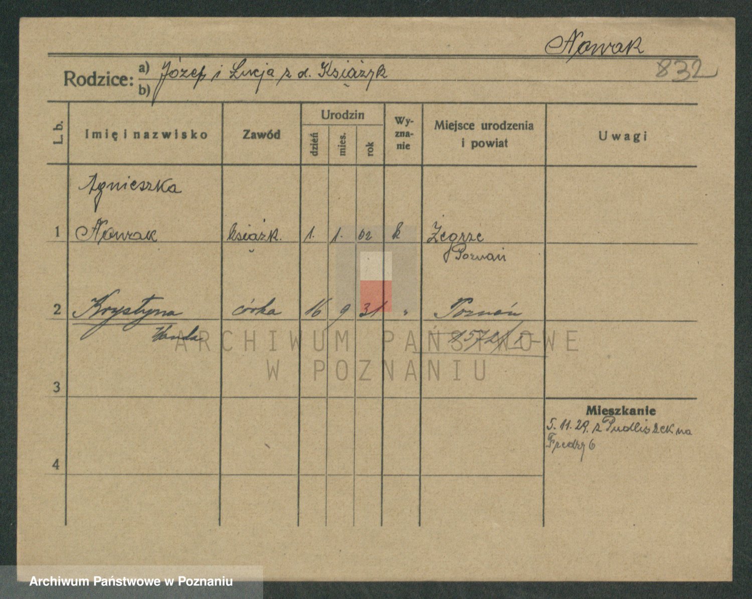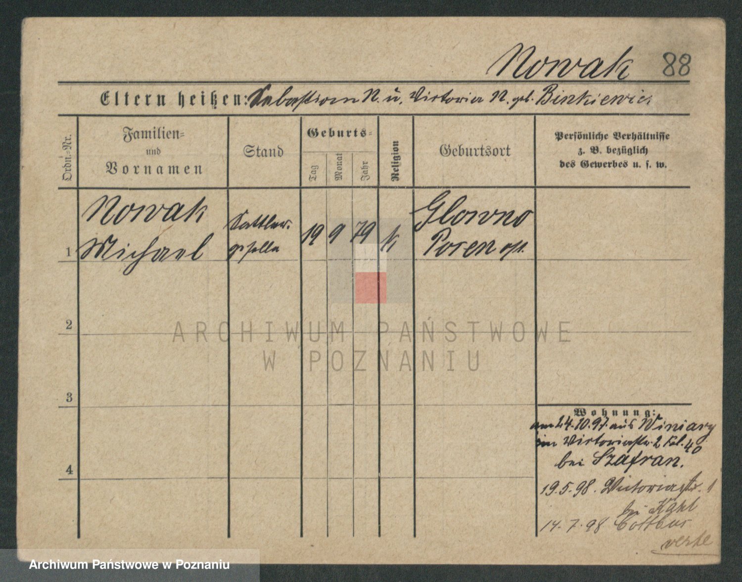 Podgląd karty osobowej dostępny jest po kliknięciu na nazwisko lub ikonkę karty. Można dokonywać powiększenia (ikony na górze) lub przechodzić między kolejnymi skanami (strzałki po bokach).