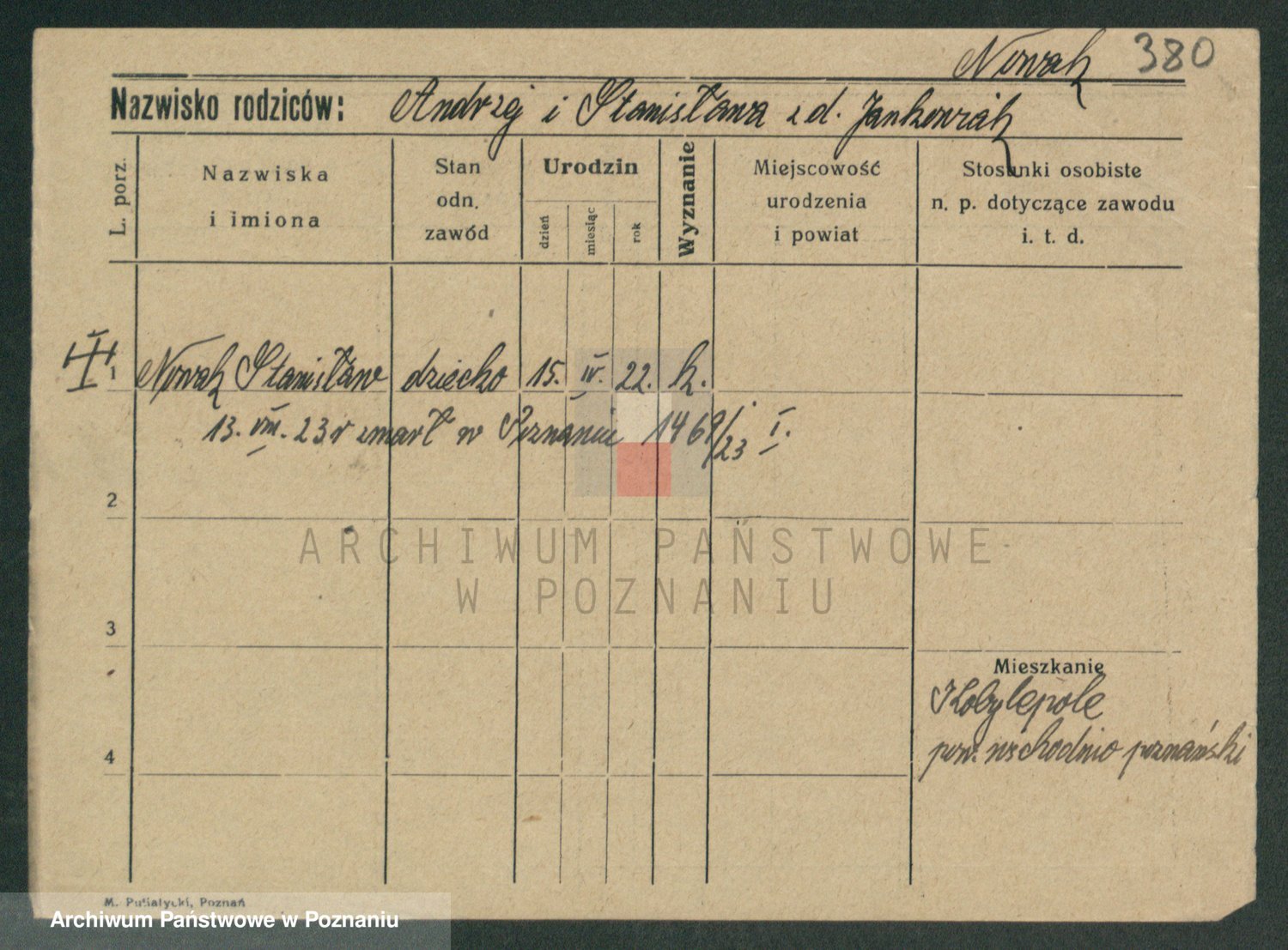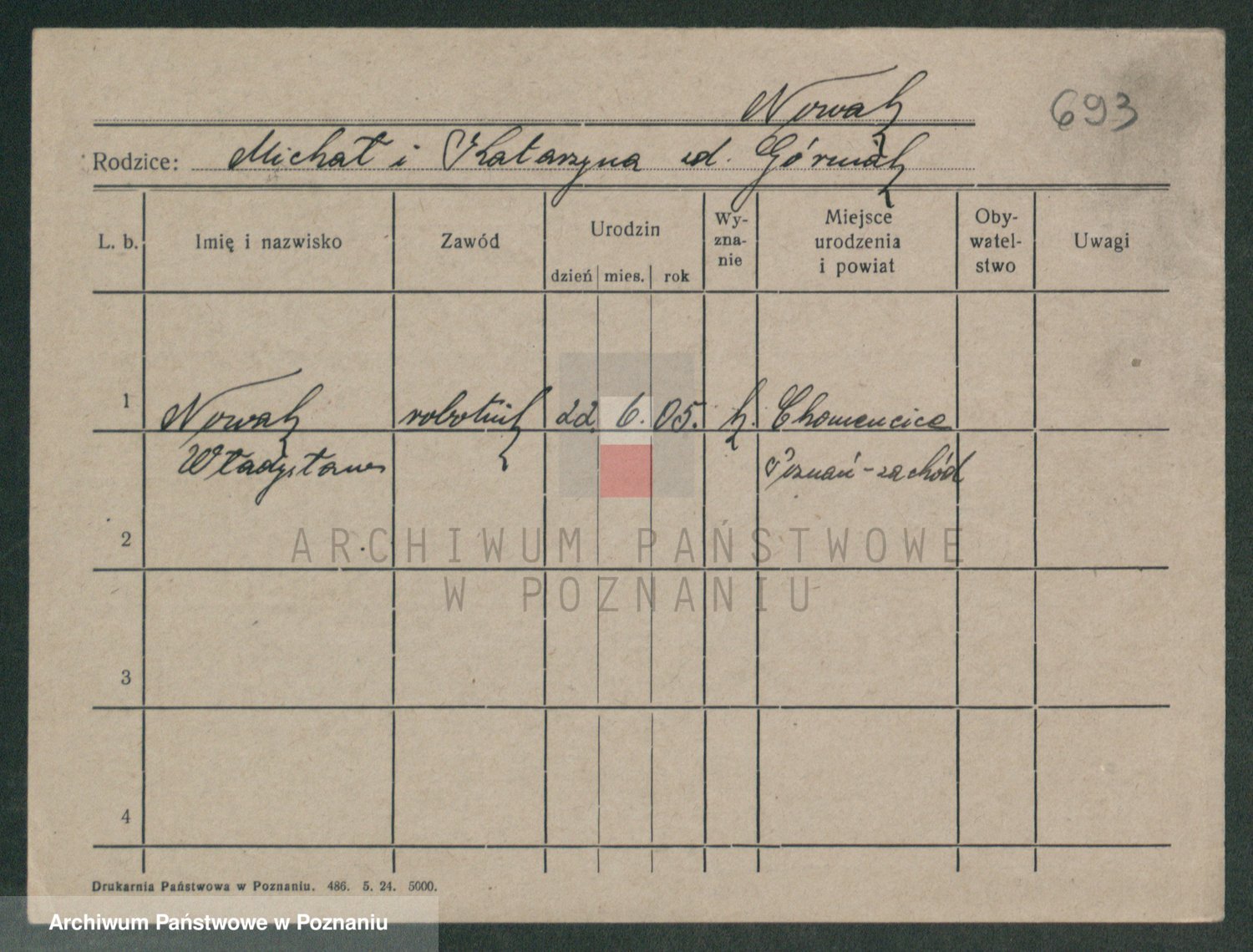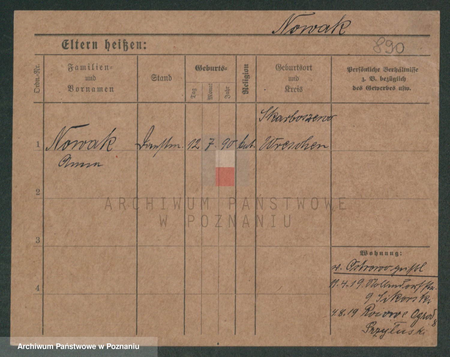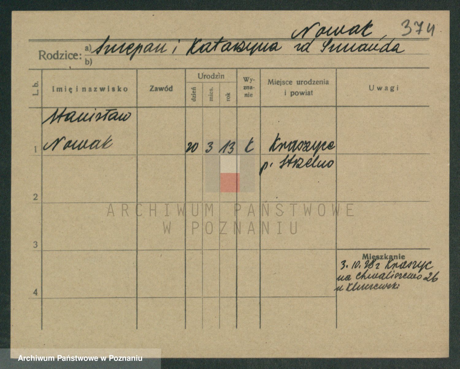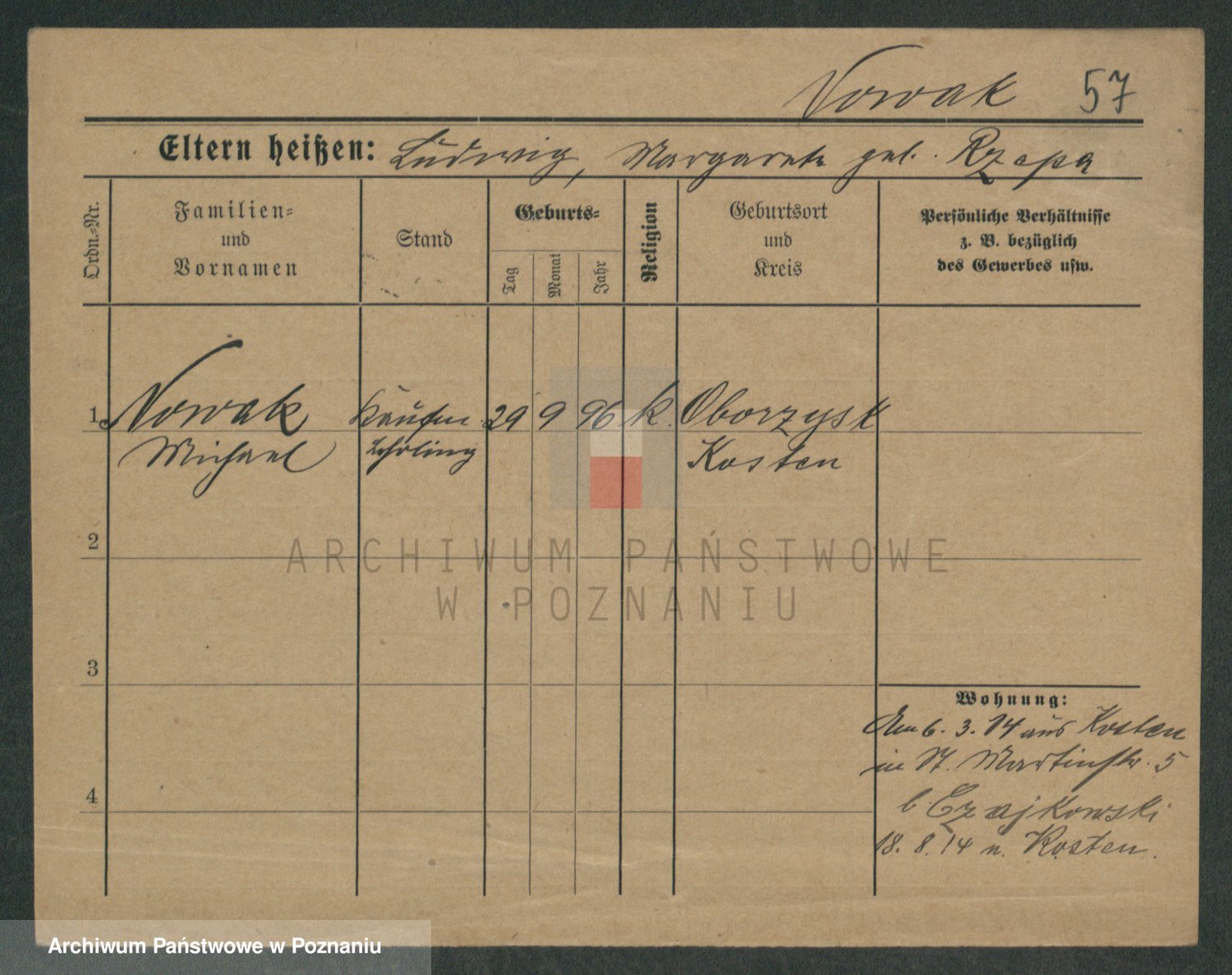 Podgląd karty osobowej dostępny jest po kliknięciu na nazwisko lub ikonkę karty. Można dokonywać powiększenia (ikony na górze) lub przechodzić między kolejnymi skanami (strzałki po bokach).