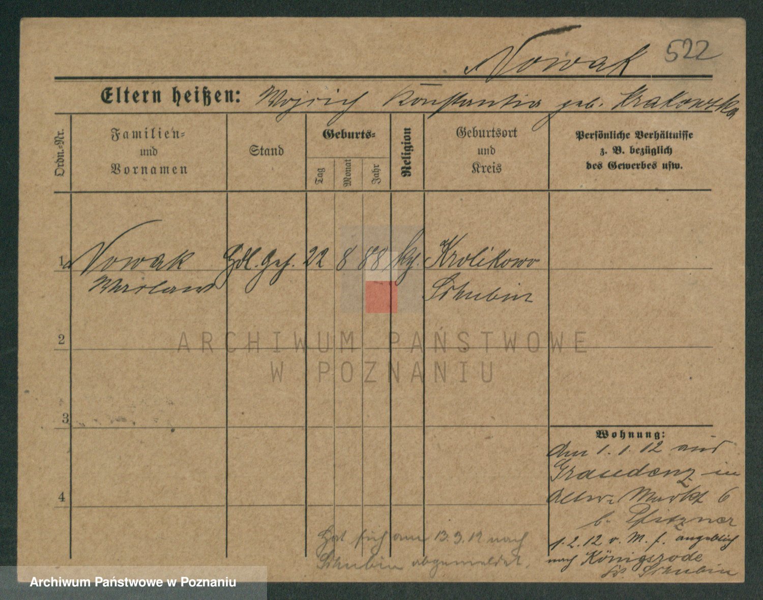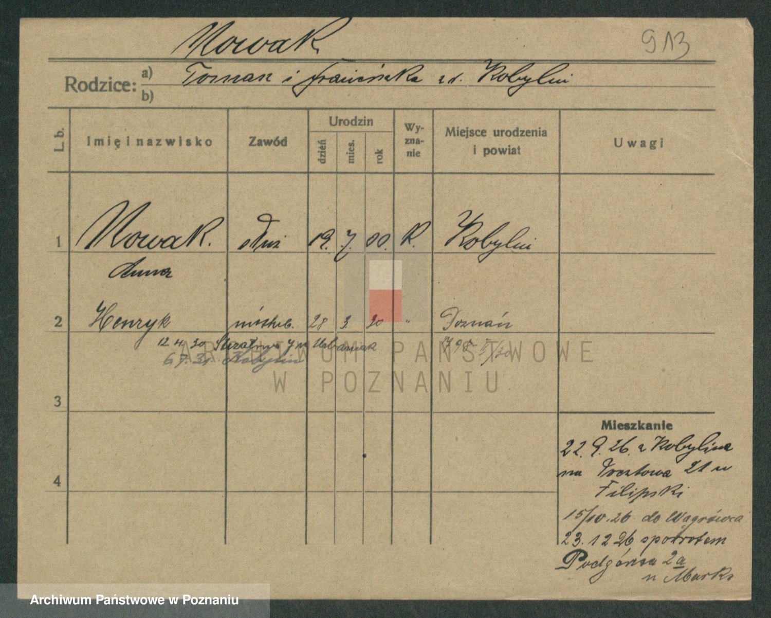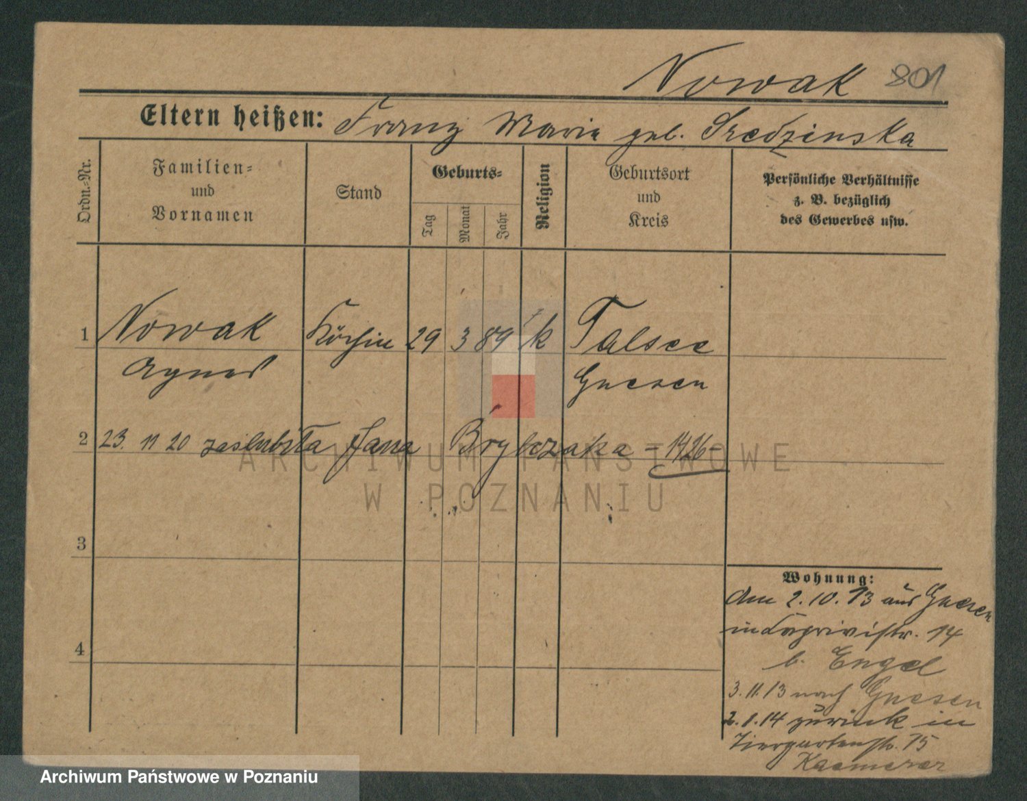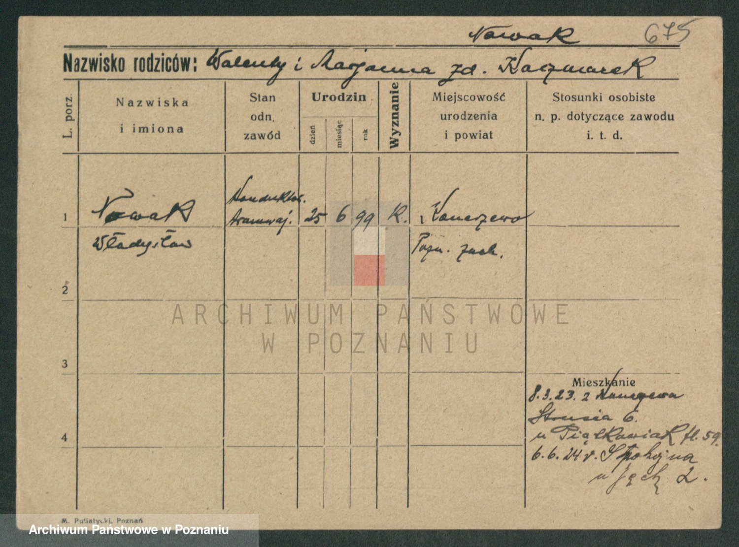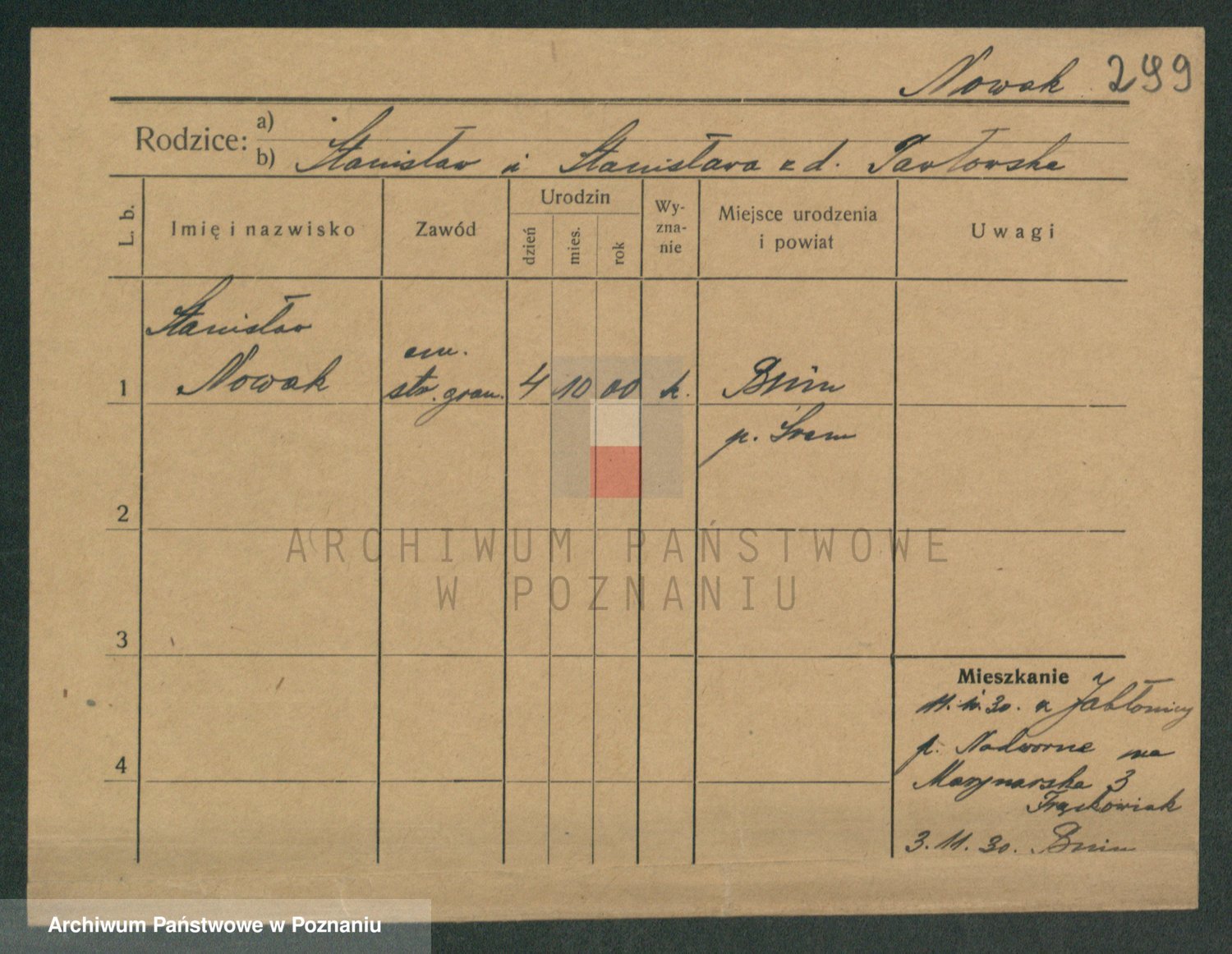 Podgląd karty osobowej dostępny jest po kliknięciu na nazwisko lub ikonkę karty. Można dokonywać powiększenia (ikony na górze) lub przechodzić między kolejnymi skanami (strzałki po bokach).