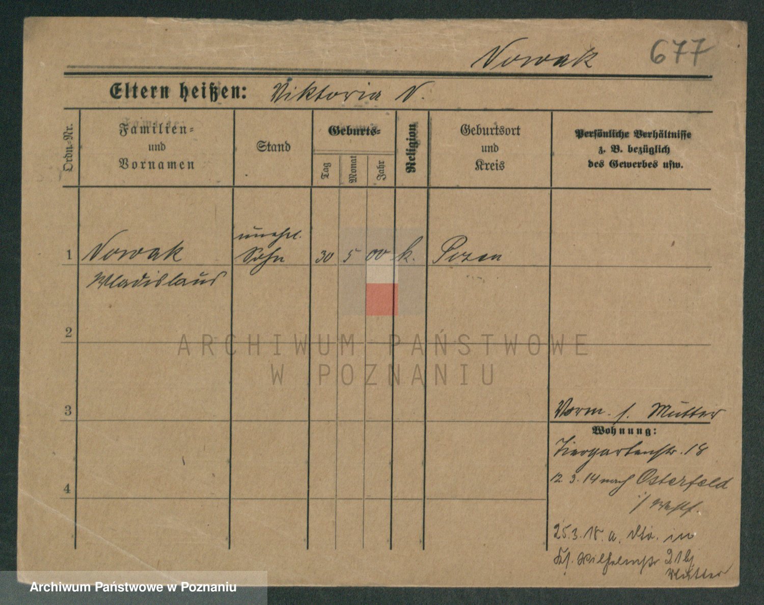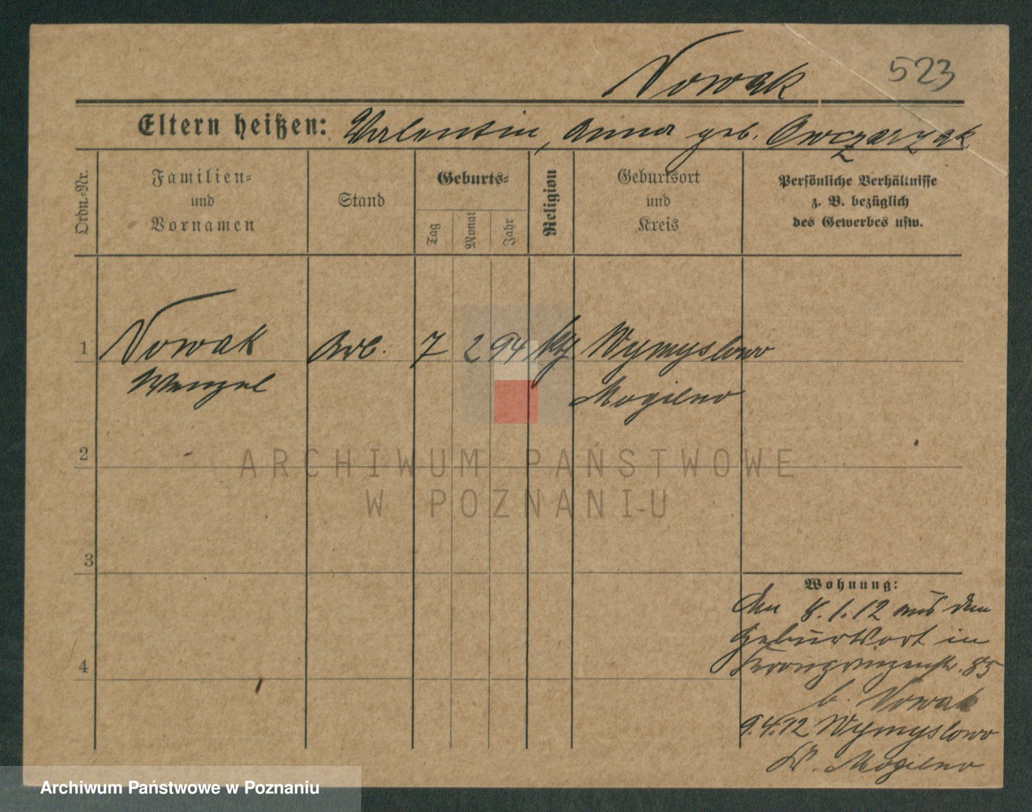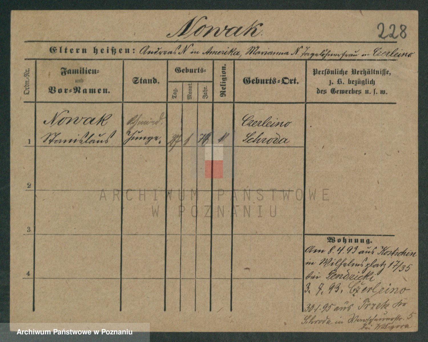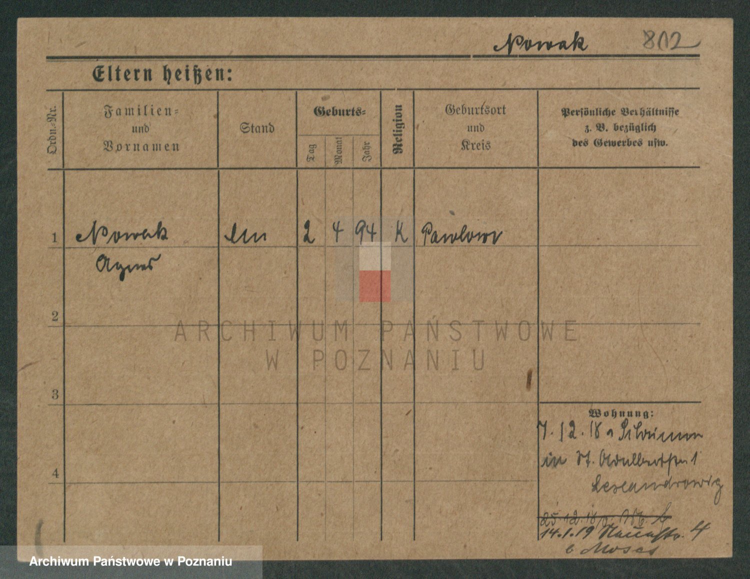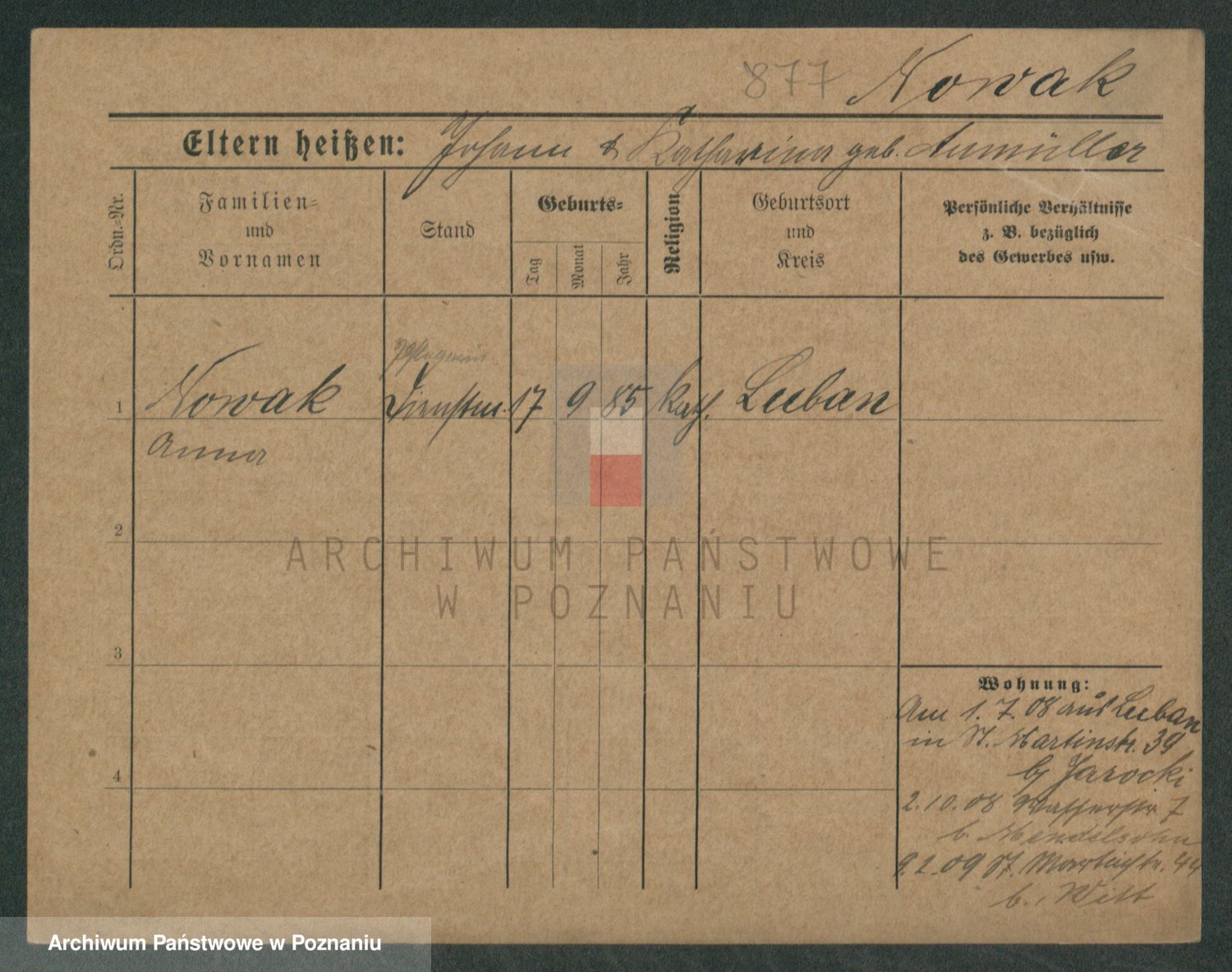 Podgląd karty osobowej dostępny jest po kliknięciu na nazwisko lub ikonkę karty. Można dokonywać powiększenia (ikony na górze) lub przechodzić między kolejnymi skanami (strzałki po bokach).