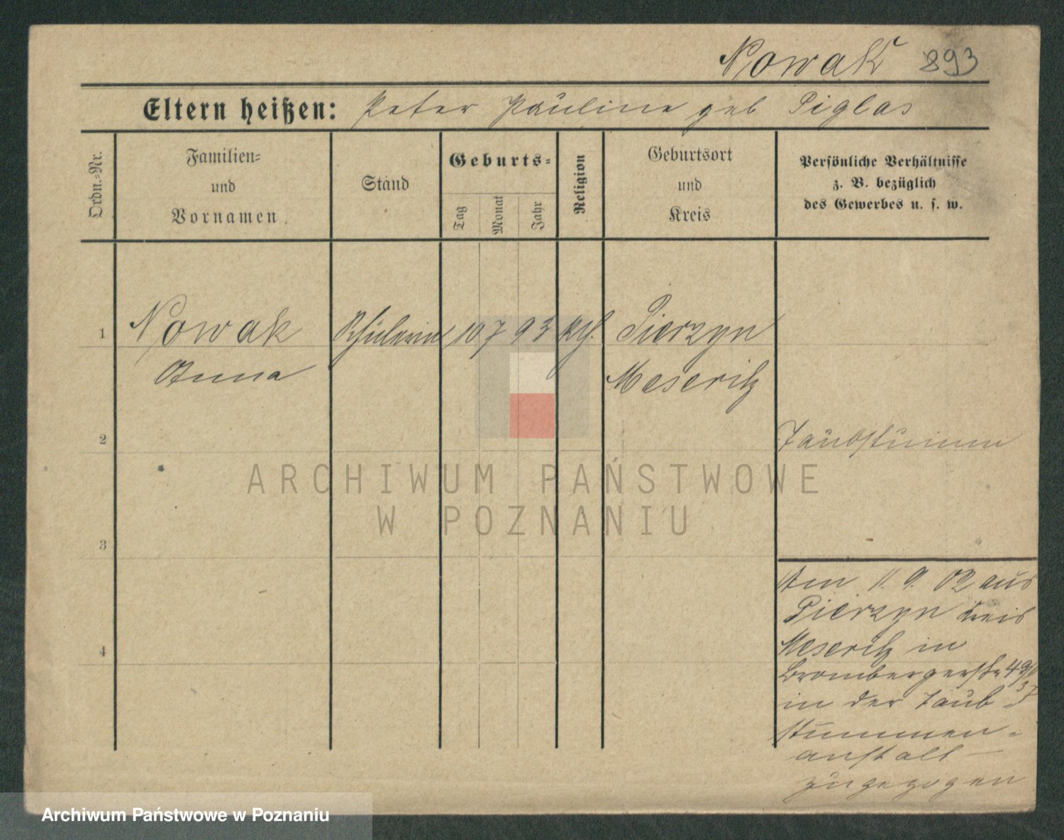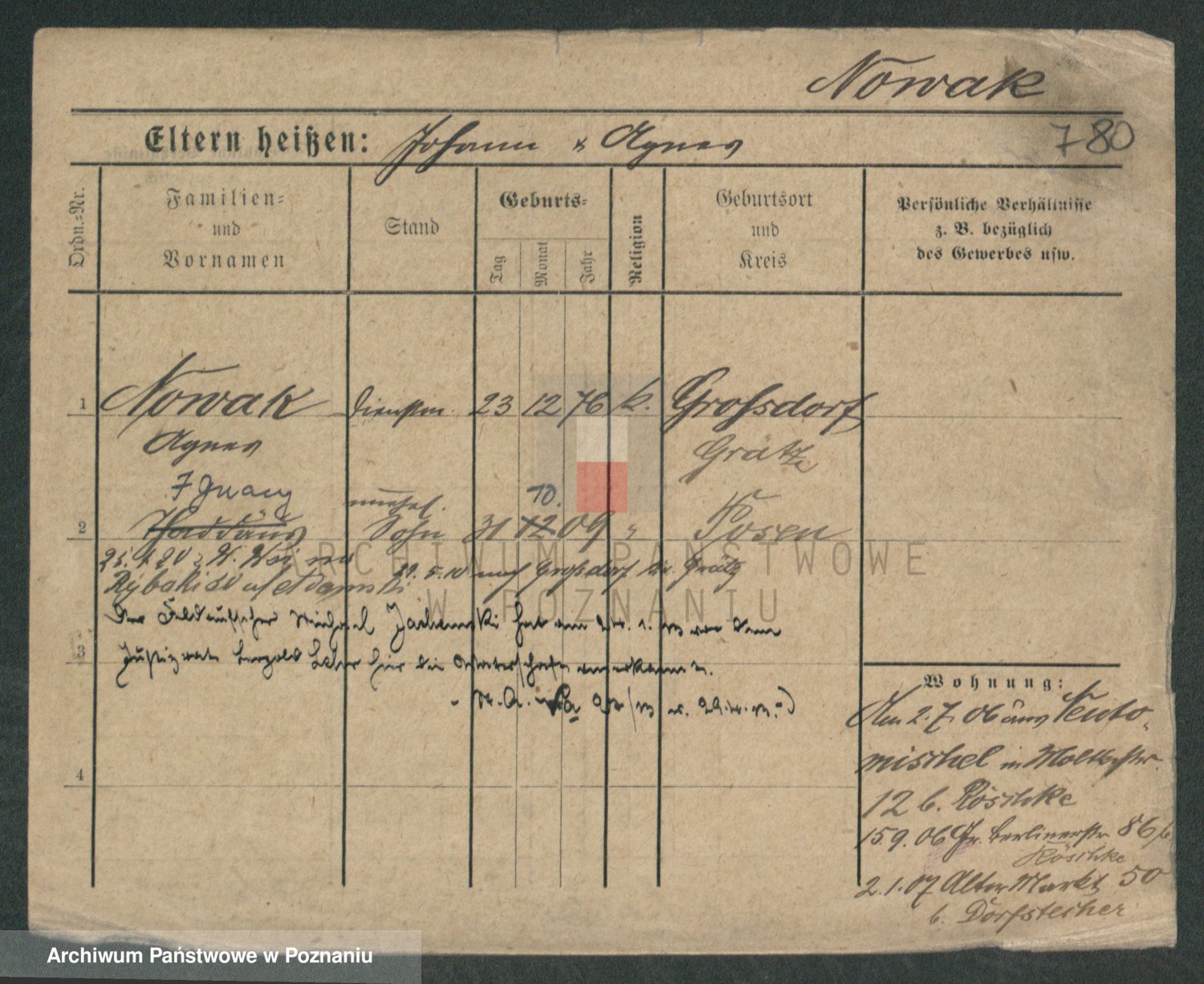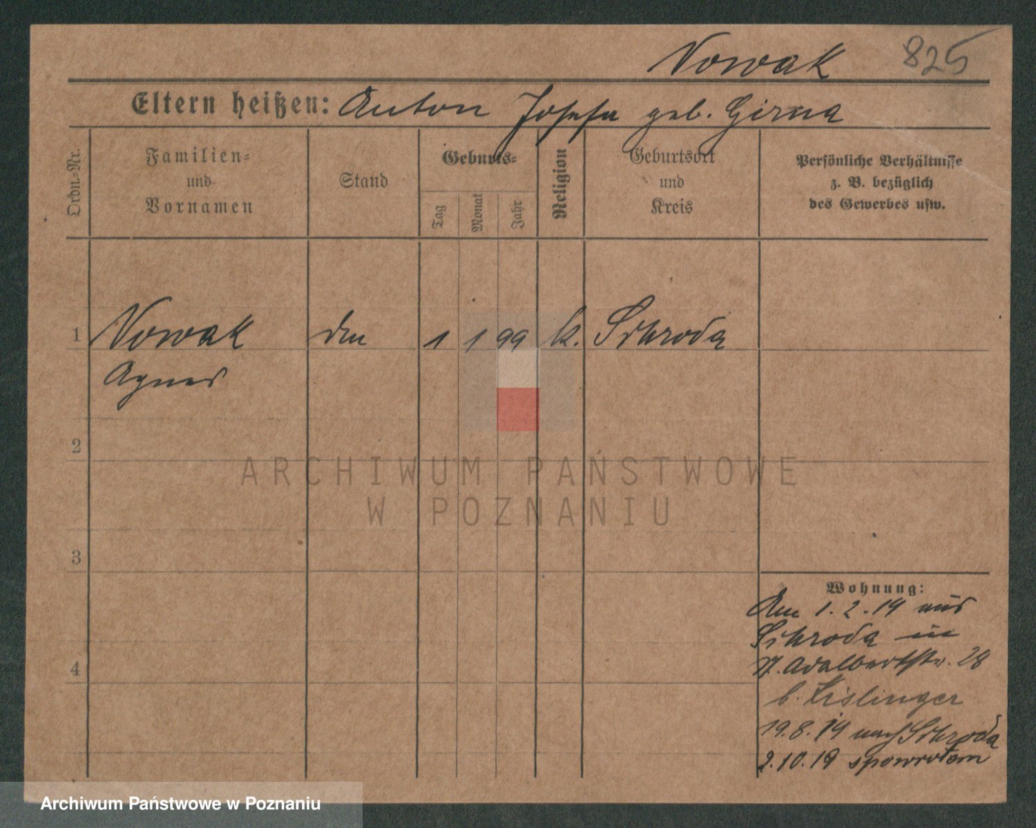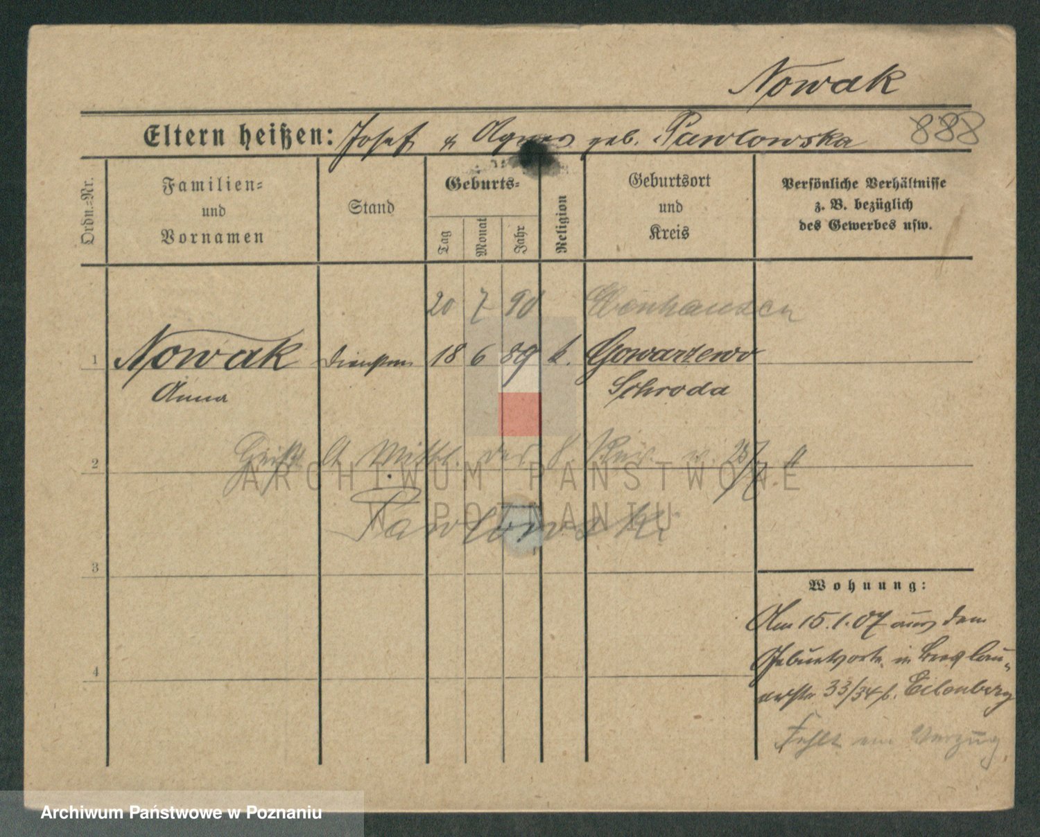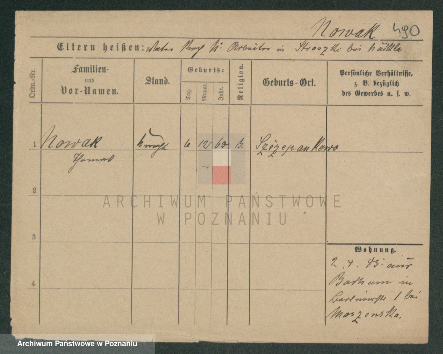 Podgląd karty osobowej dostępny jest po kliknięciu na nazwisko lub ikonkę karty. Można dokonywać powiększenia (ikony na górze) lub przechodzić między kolejnymi skanami (strzałki po bokach).