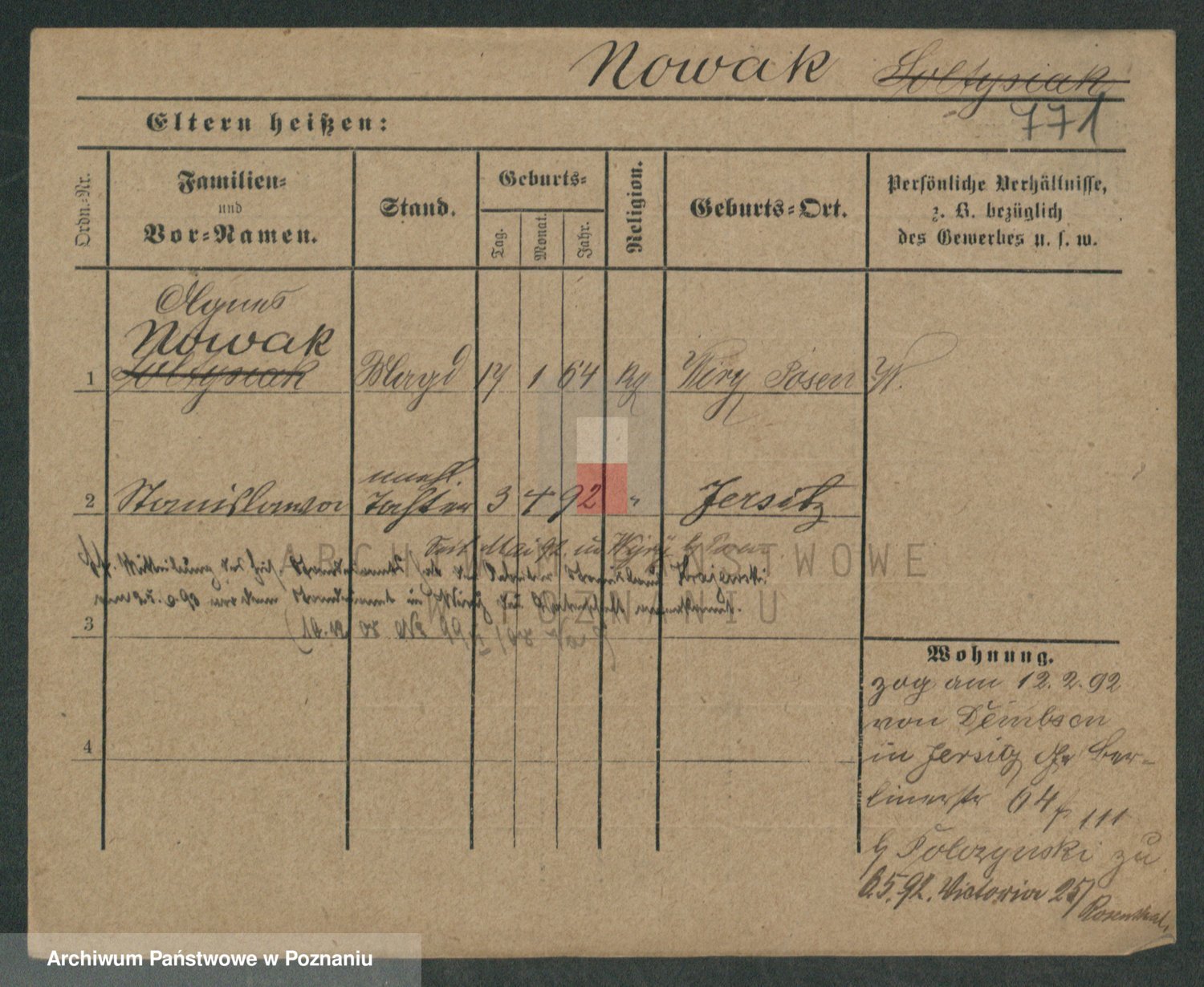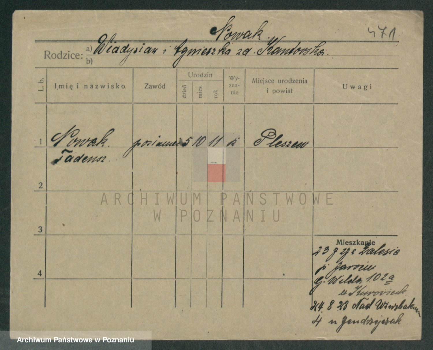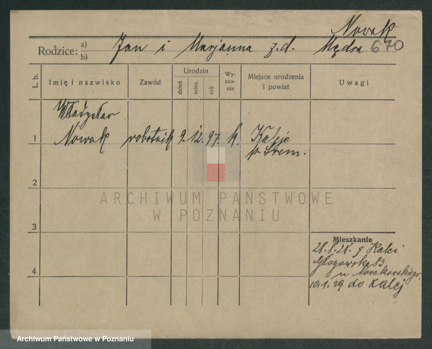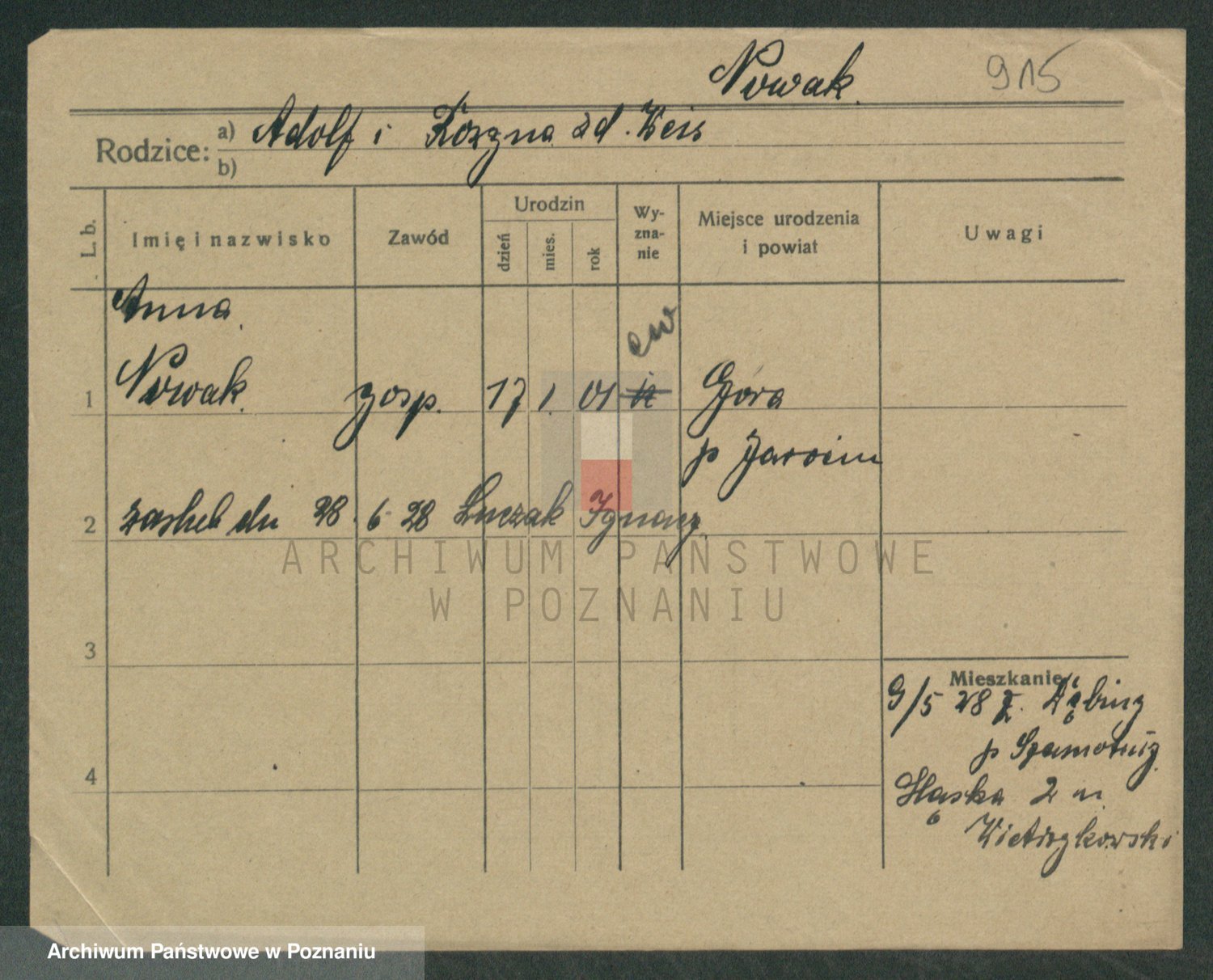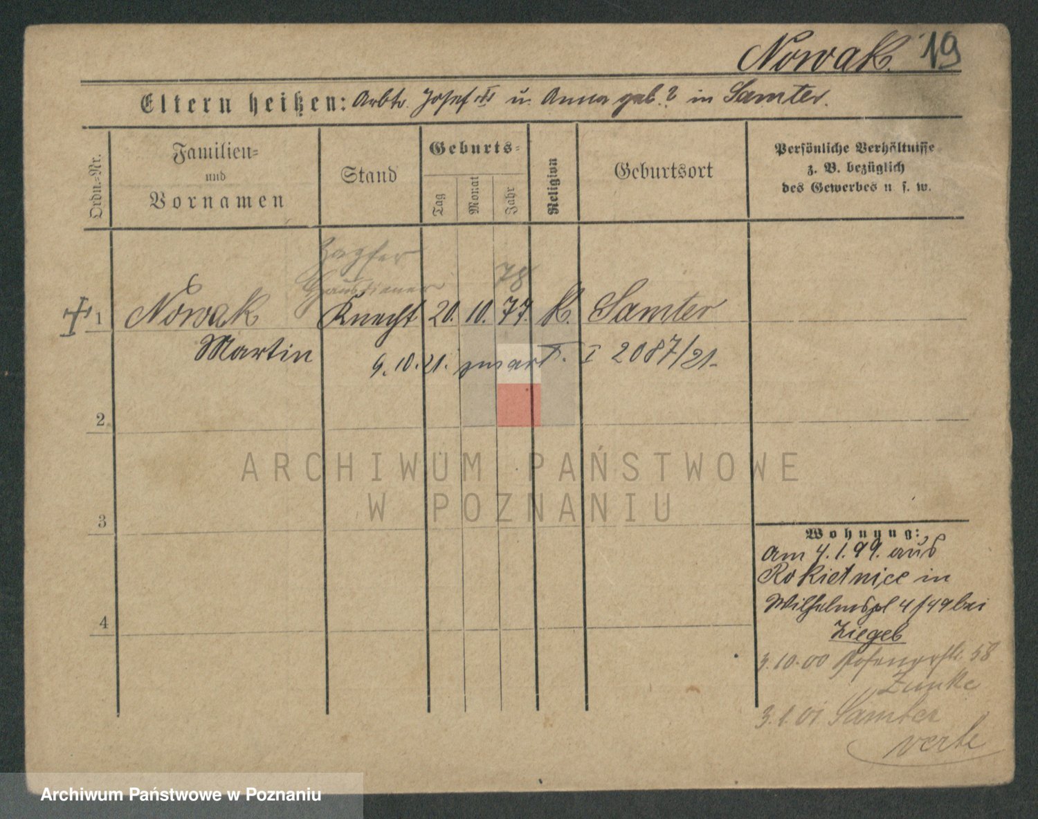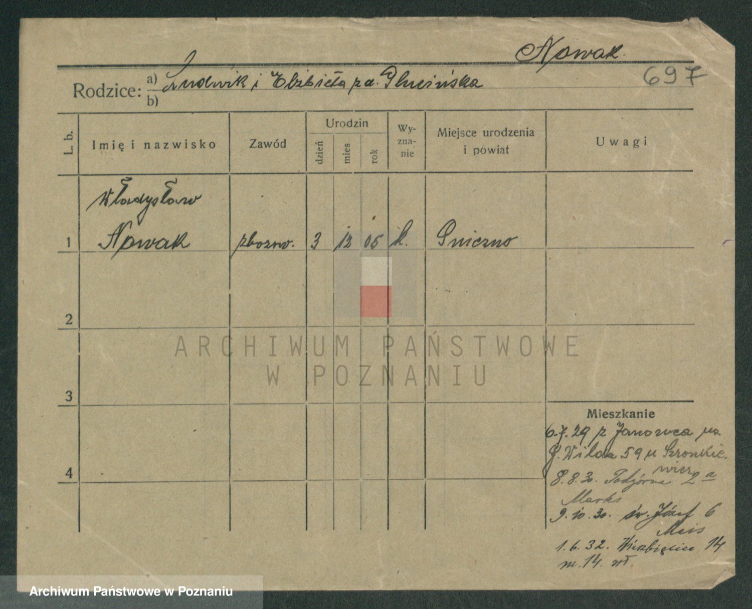 Podgląd karty osobowej dostępny jest po kliknięciu na nazwisko lub ikonkę karty. Można dokonywać powiększenia (ikony na górze) lub przechodzić między kolejnymi skanami (strzałki po bokach).