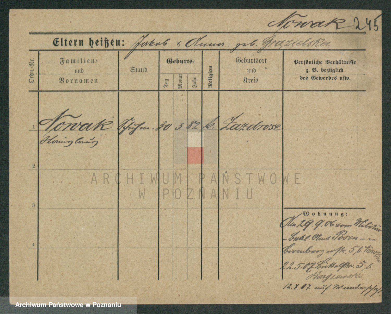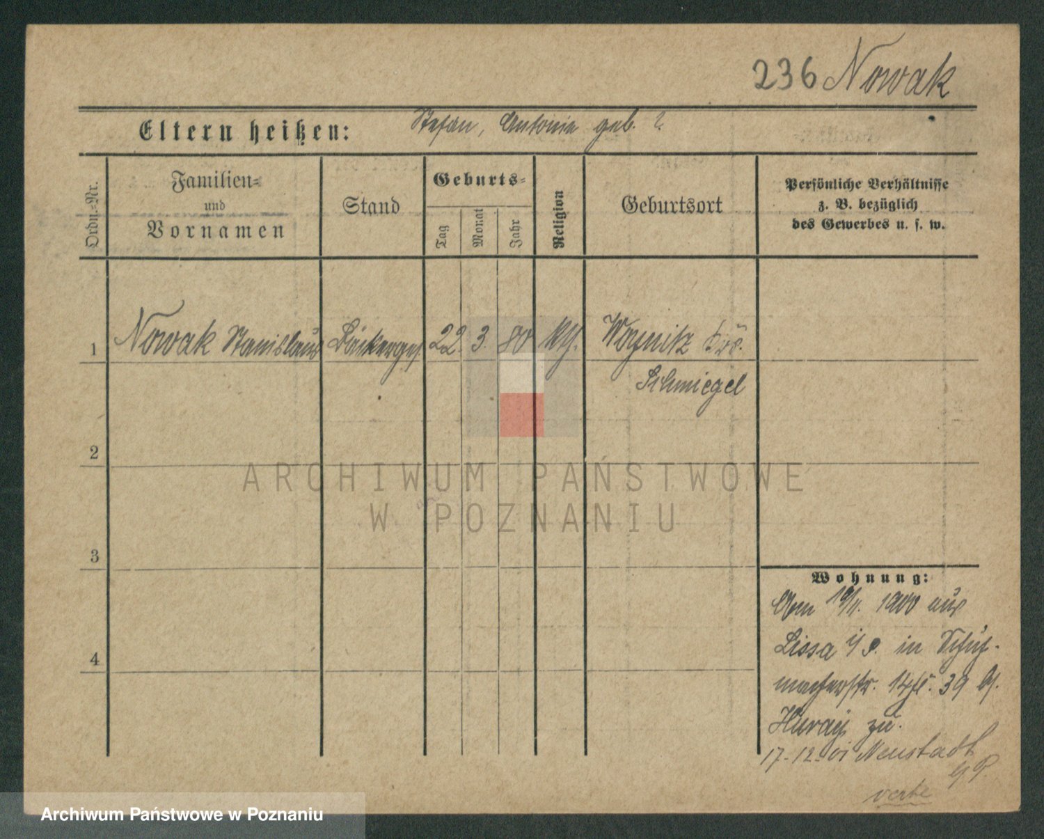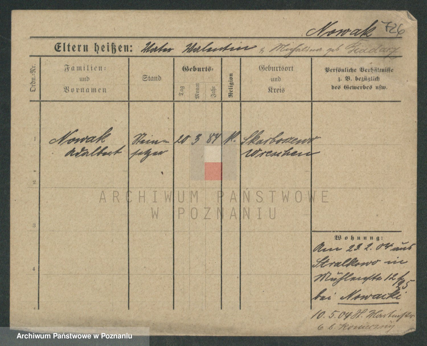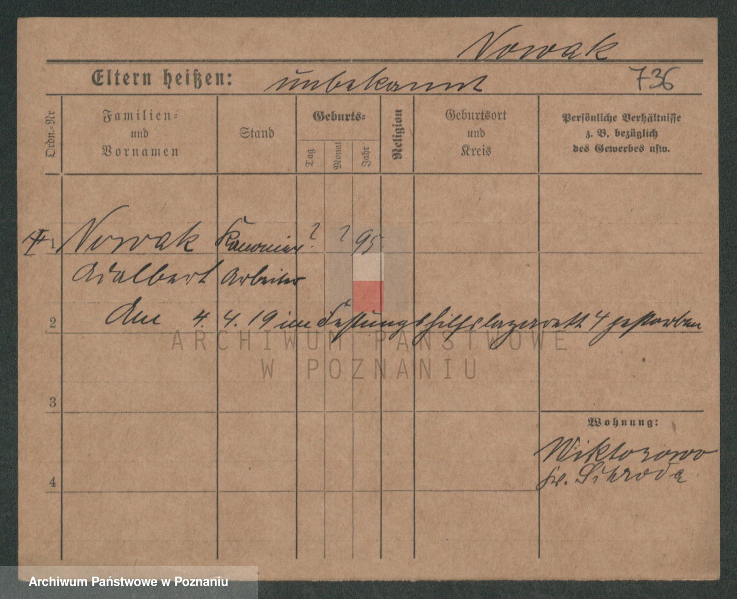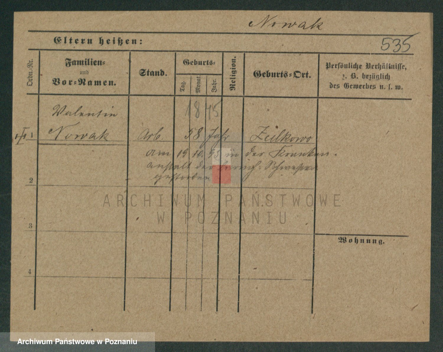 Podgląd karty osobowej dostępny jest po kliknięciu na nazwisko lub ikonkę karty. Można dokonywać powiększenia (ikony na górze) lub przechodzić między kolejnymi skanami (strzałki po bokach).