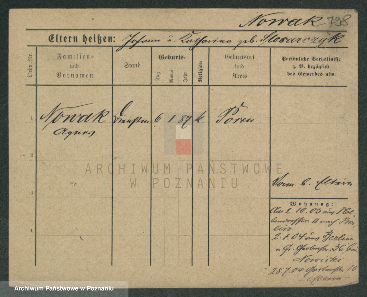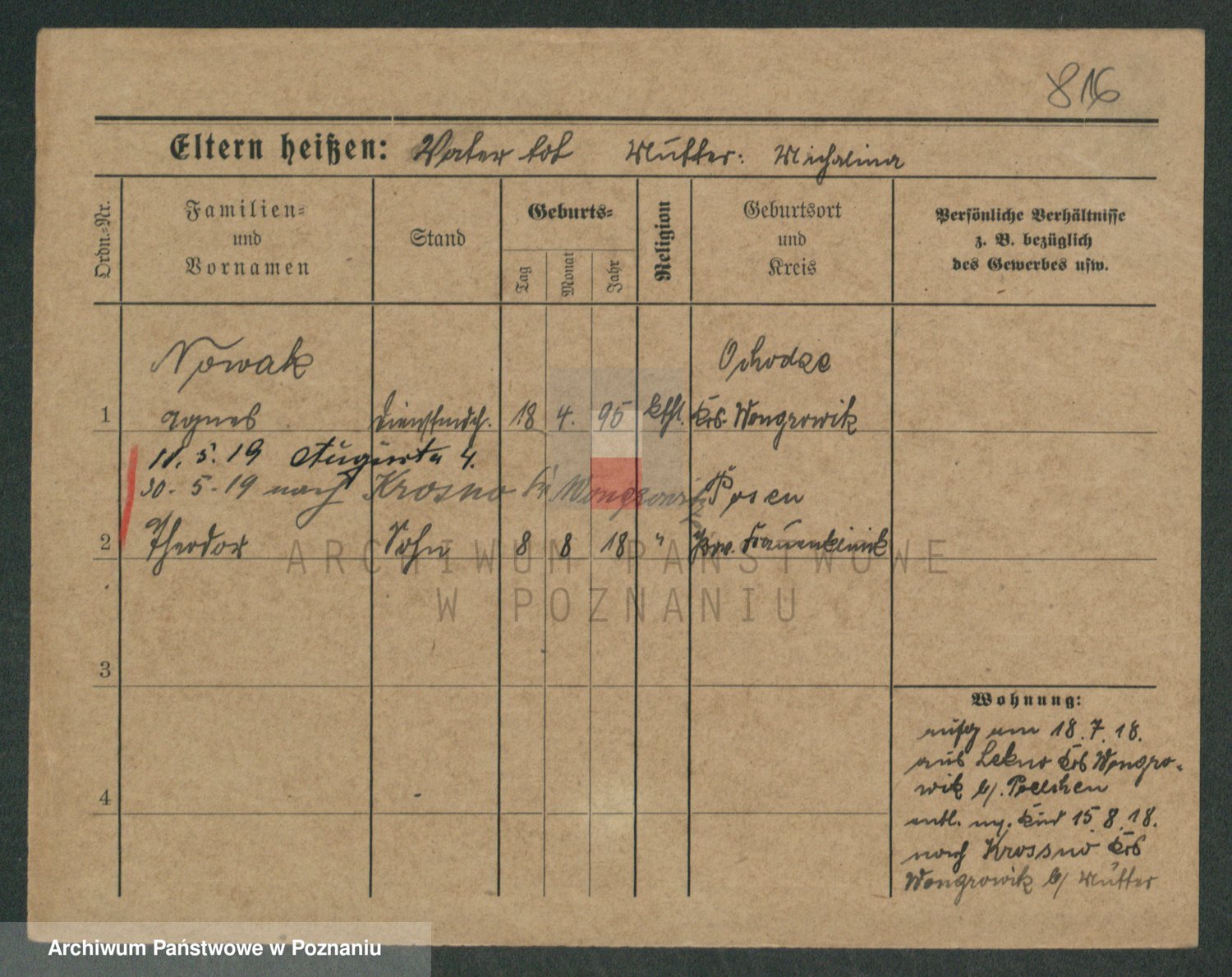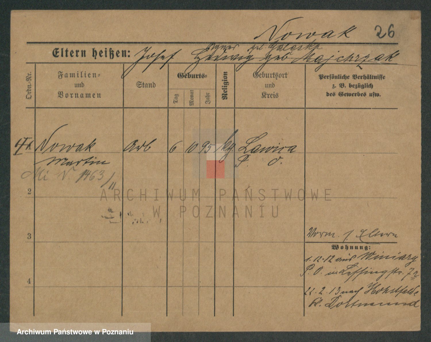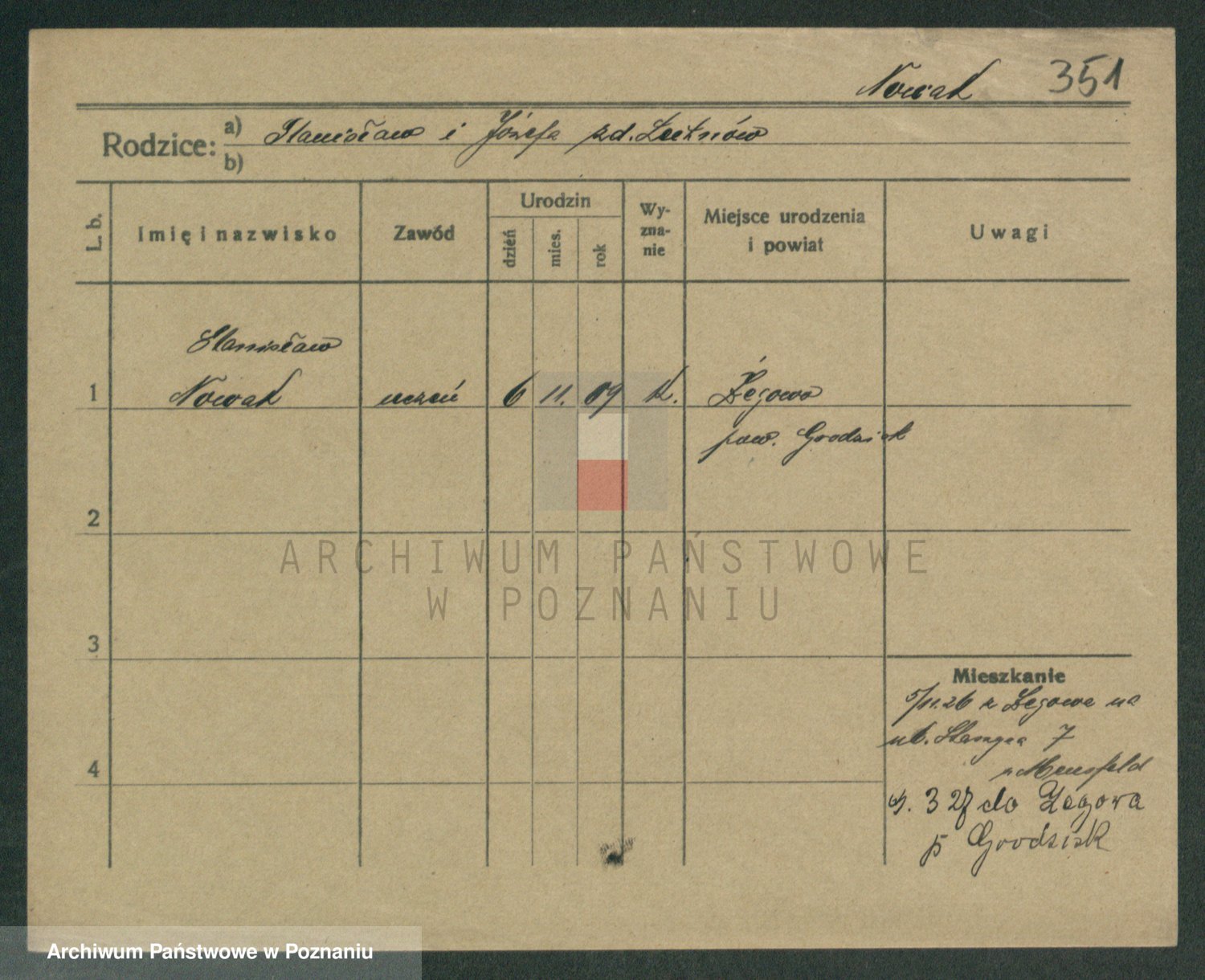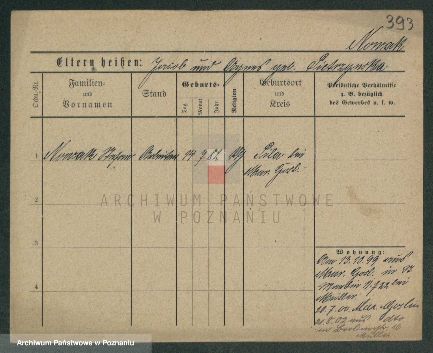 Podgląd karty osobowej dostępny jest po kliknięciu na nazwisko lub ikonkę karty. Można dokonywać powiększenia (ikony na górze) lub przechodzić między kolejnymi skanami (strzałki po bokach).
