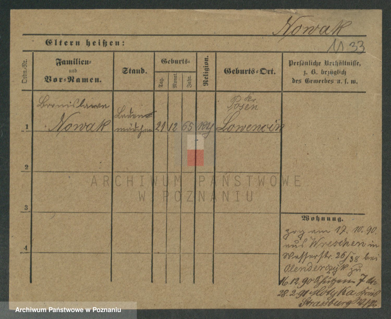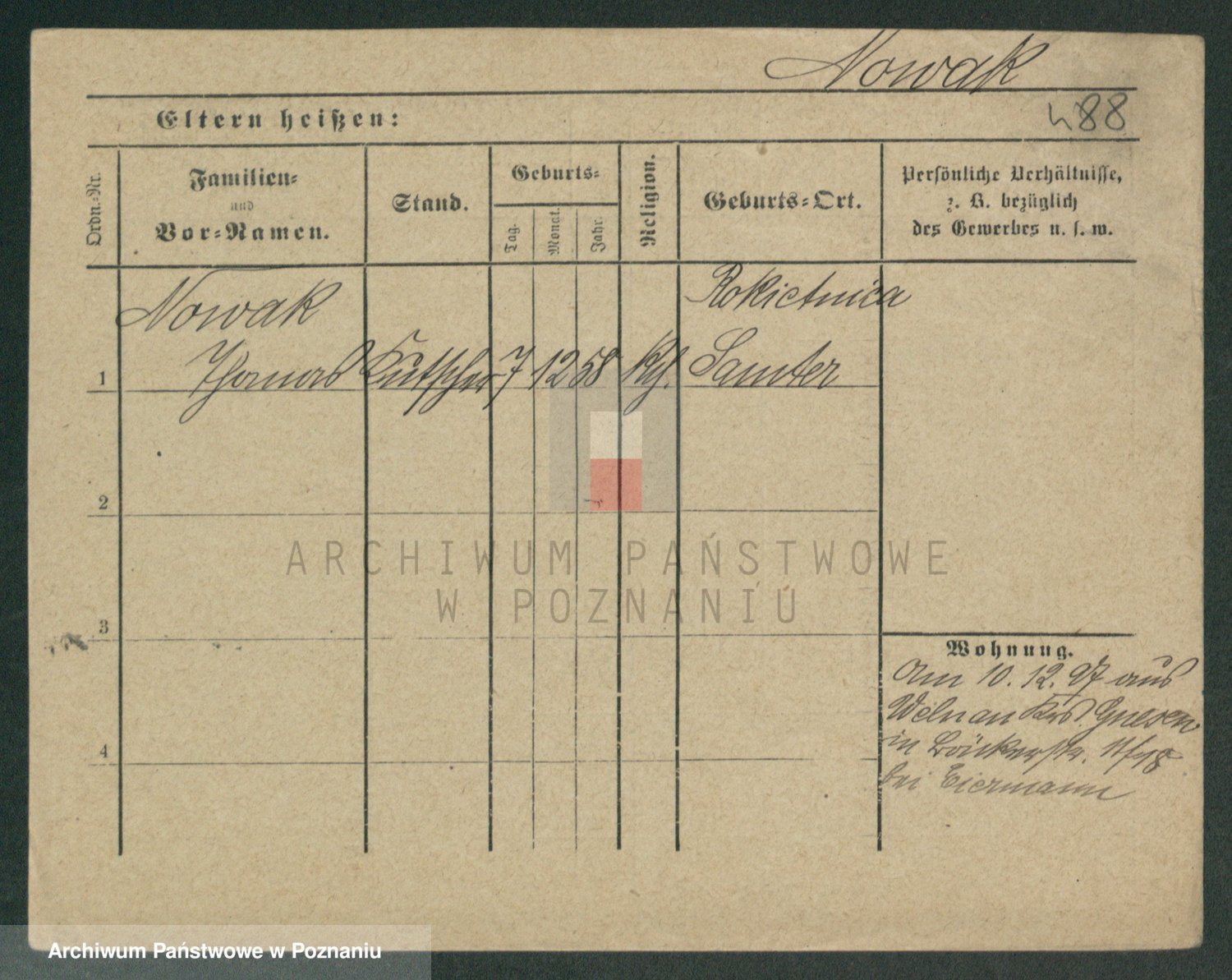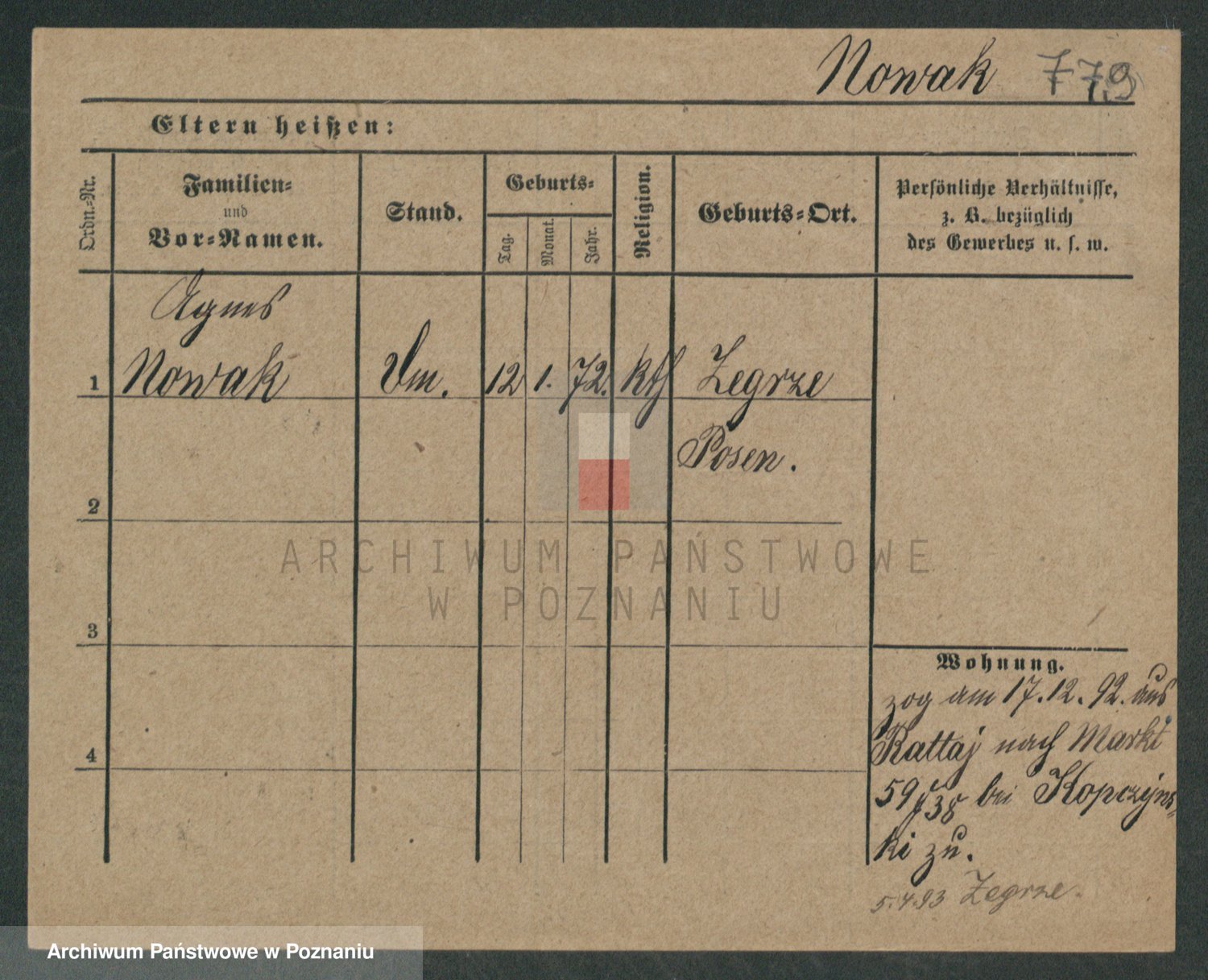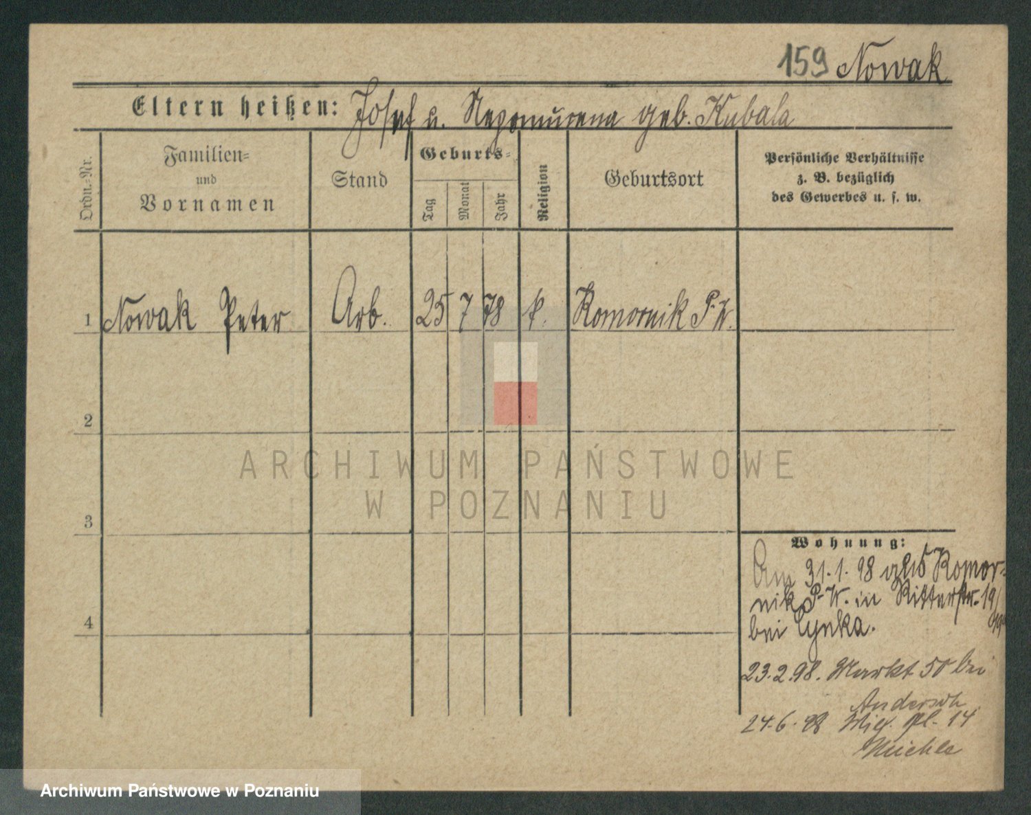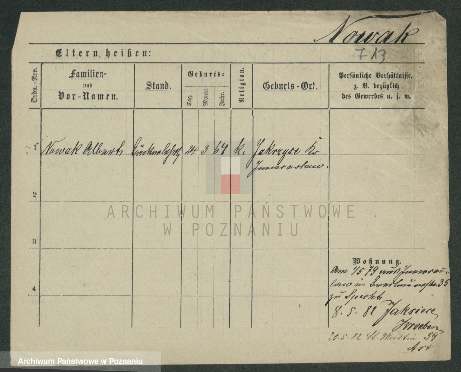 Podgląd karty osobowej dostępny jest po kliknięciu na nazwisko lub ikonkę karty. Można dokonywać powiększenia (ikony na górze) lub przechodzić między kolejnymi skanami (strzałki po bokach).