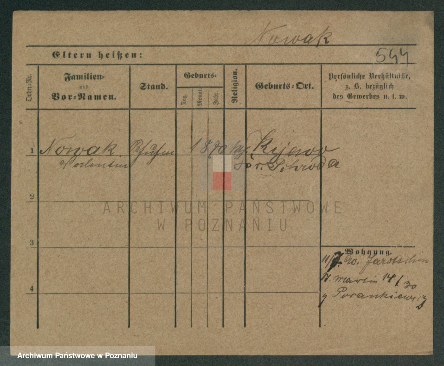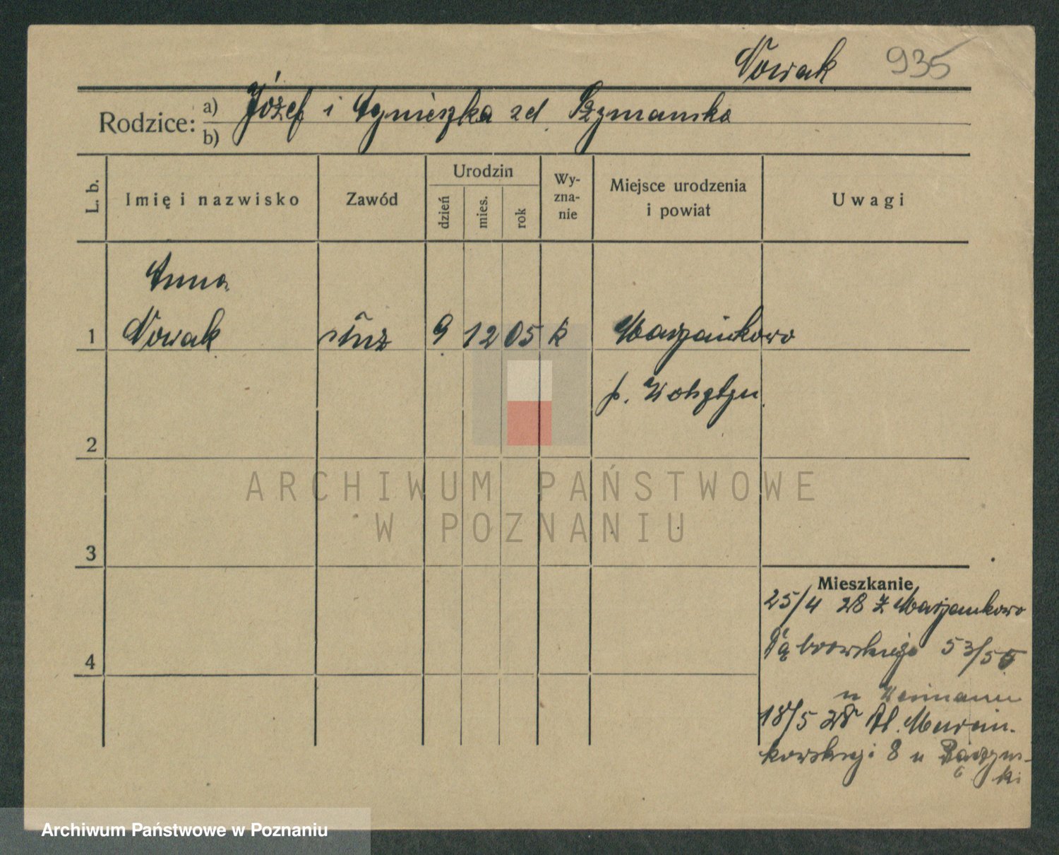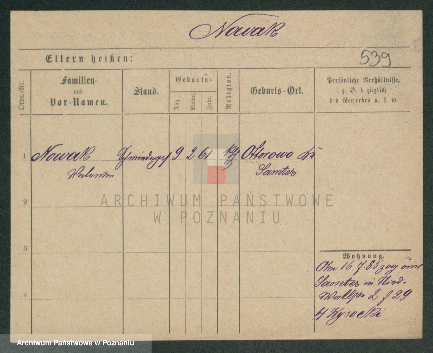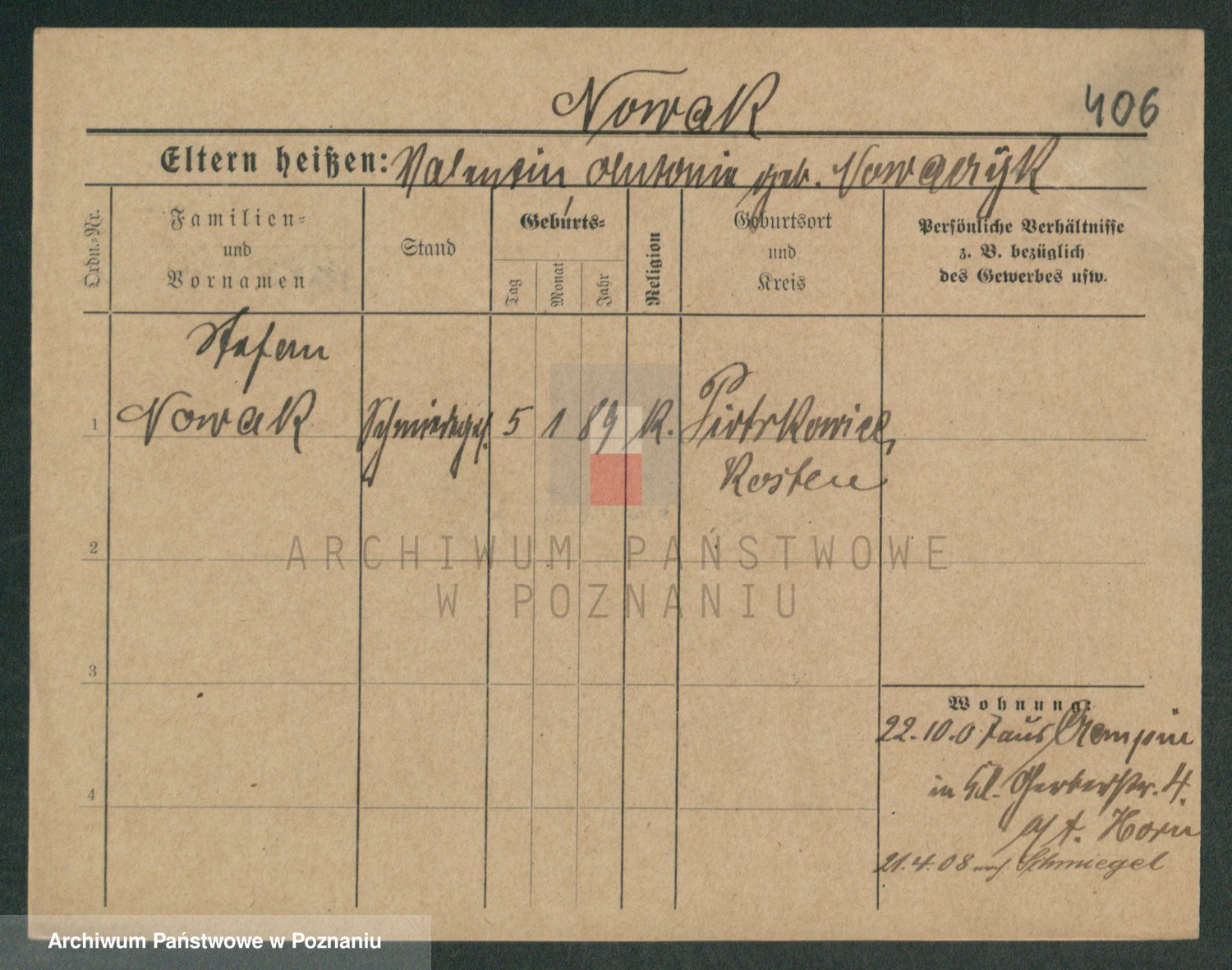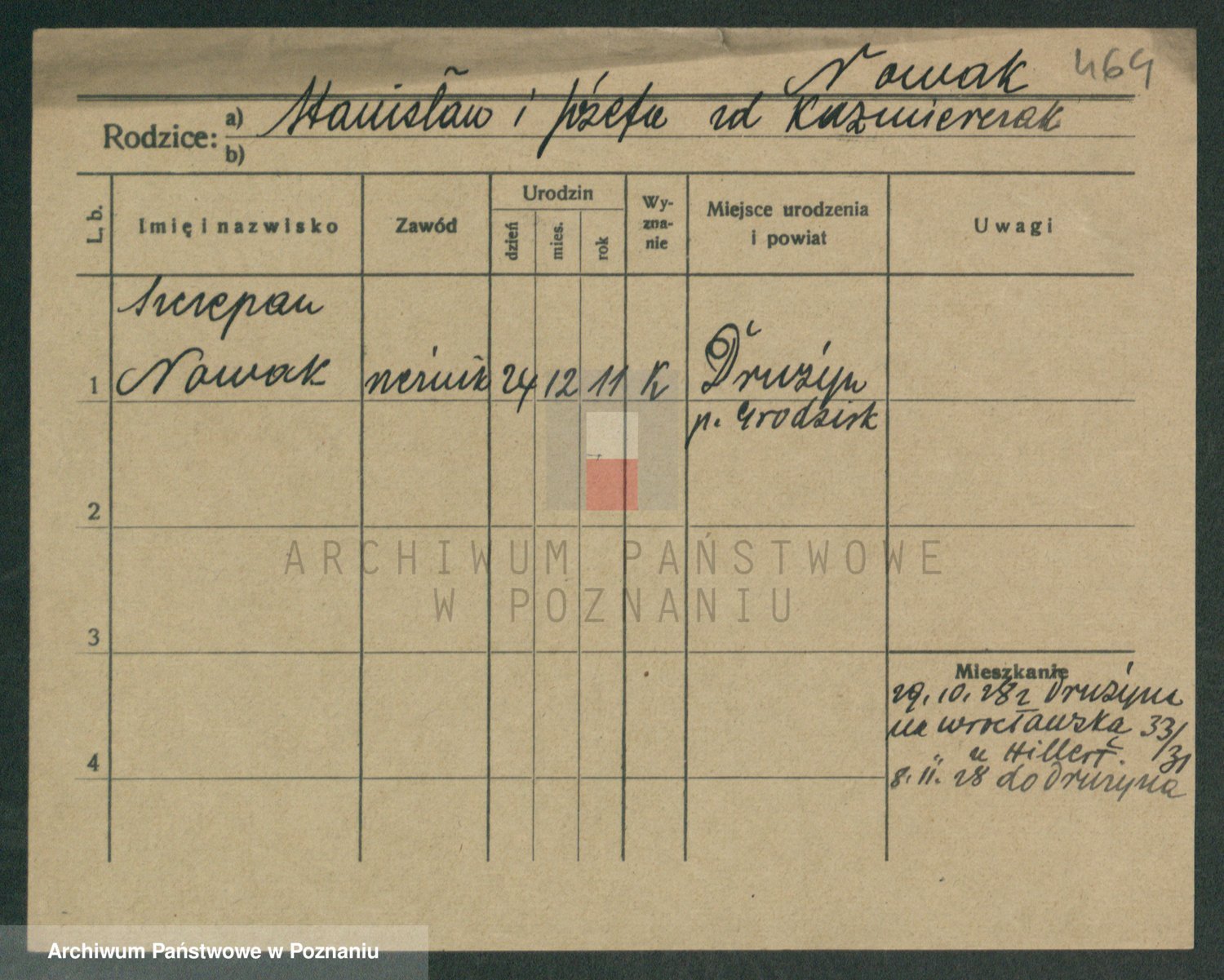 Podgląd karty osobowej dostępny jest po kliknięciu na nazwisko lub ikonkę karty. Można dokonywać powiększenia (ikony na górze) lub przechodzić między kolejnymi skanami (strzałki po bokach).