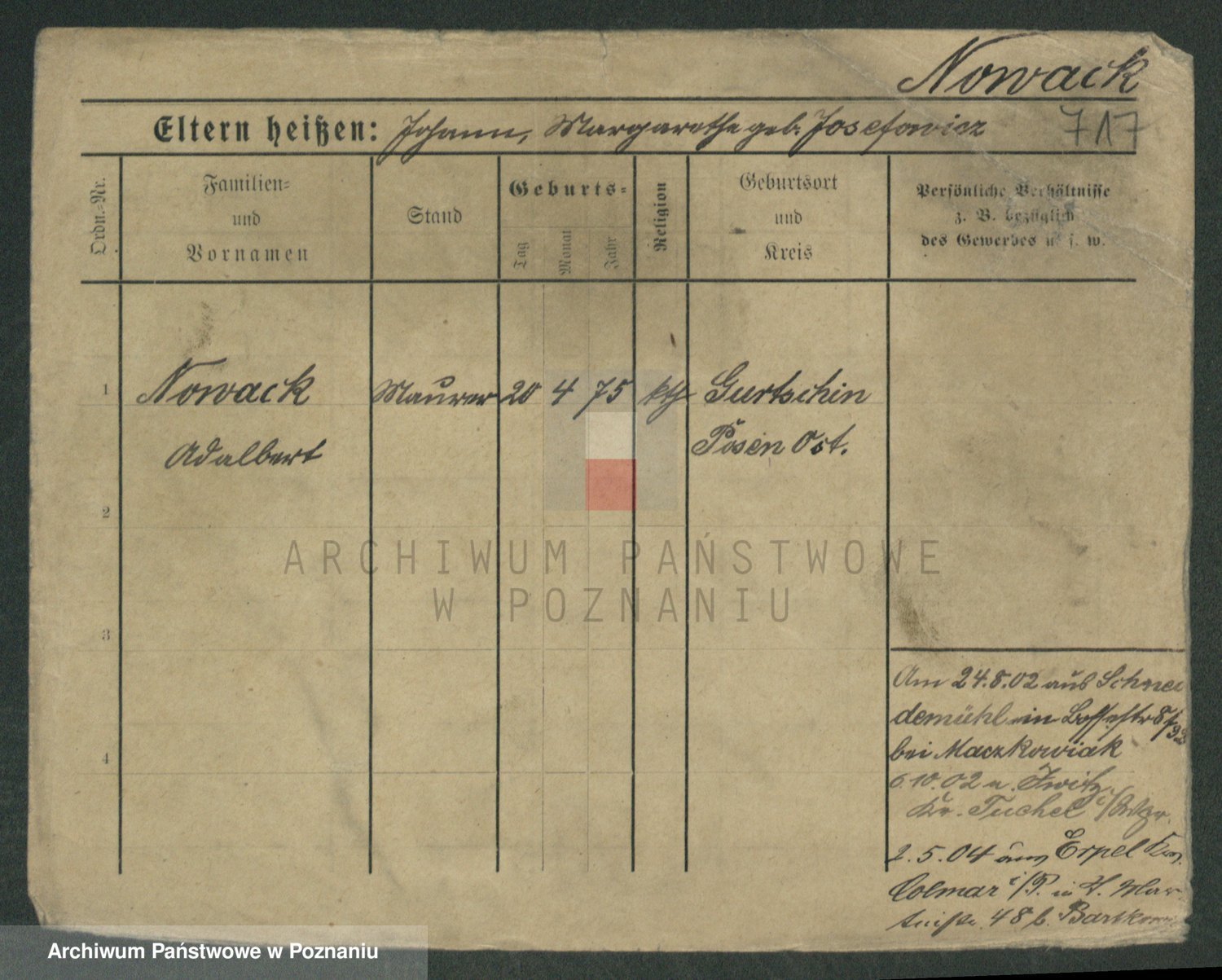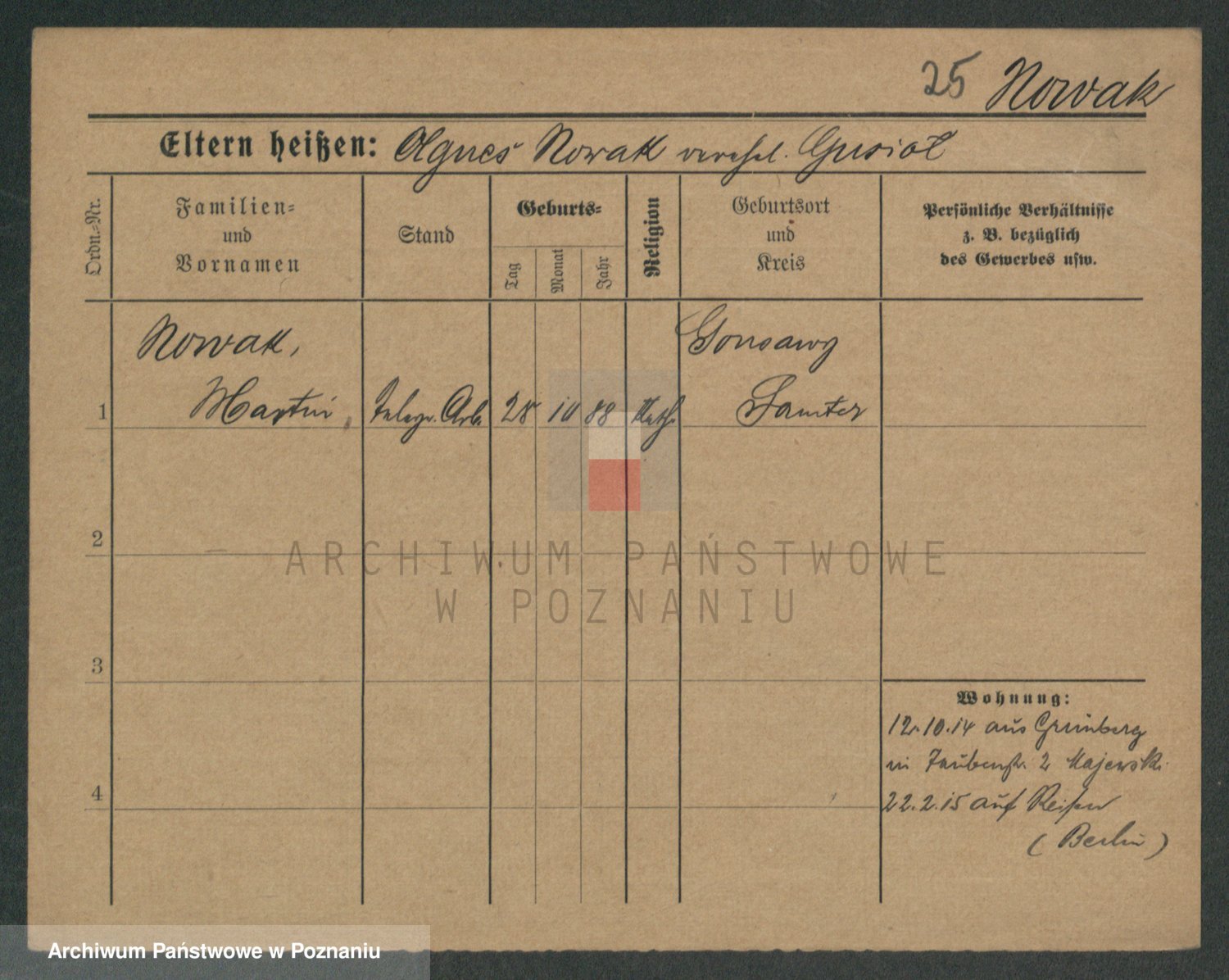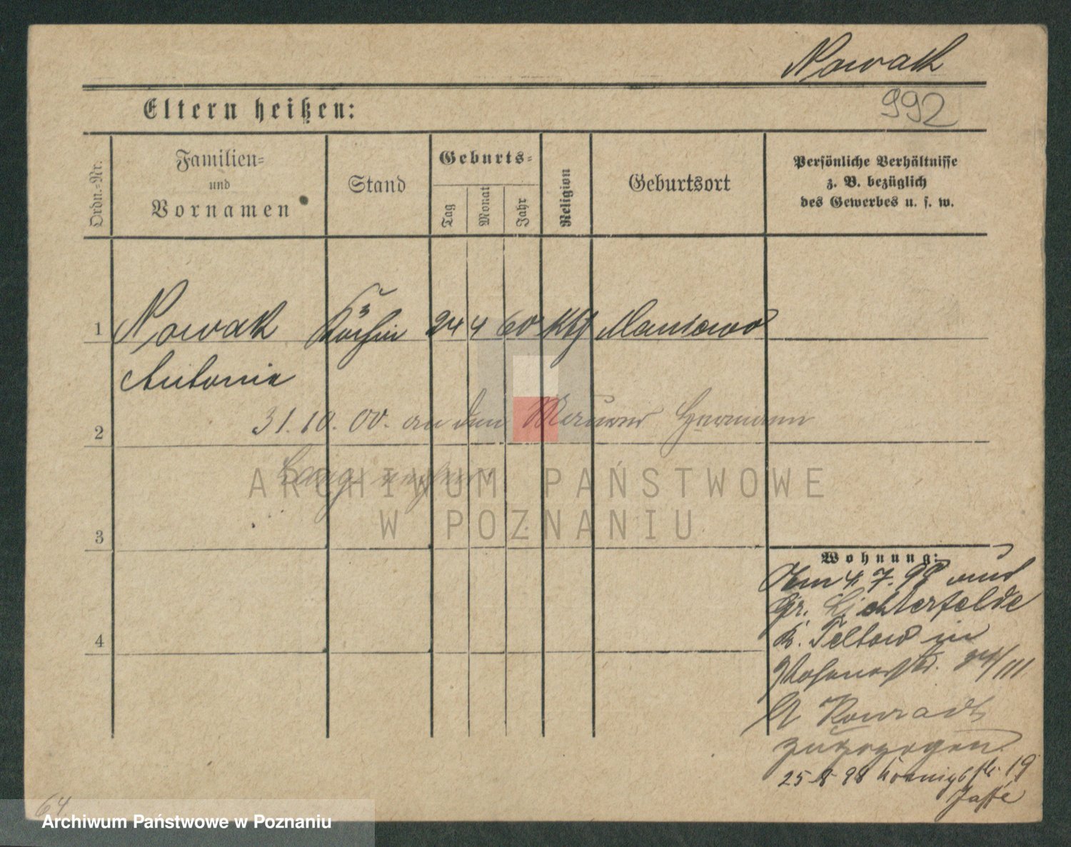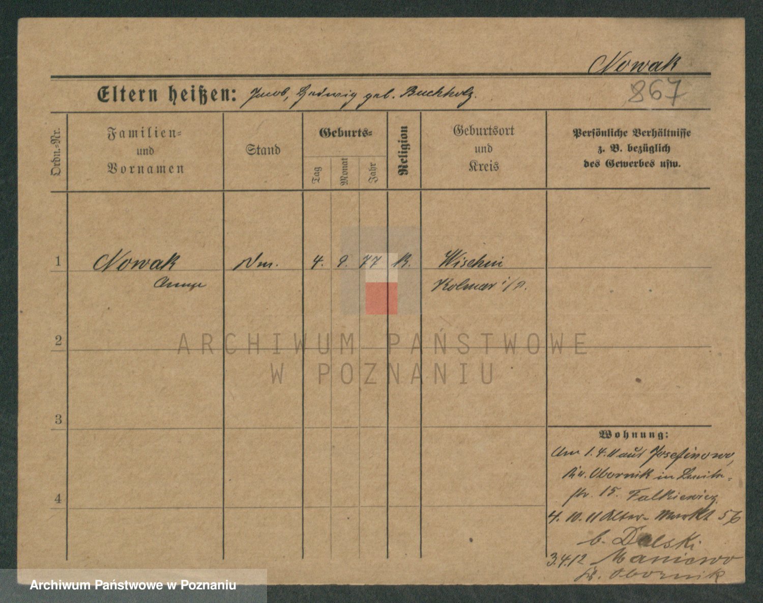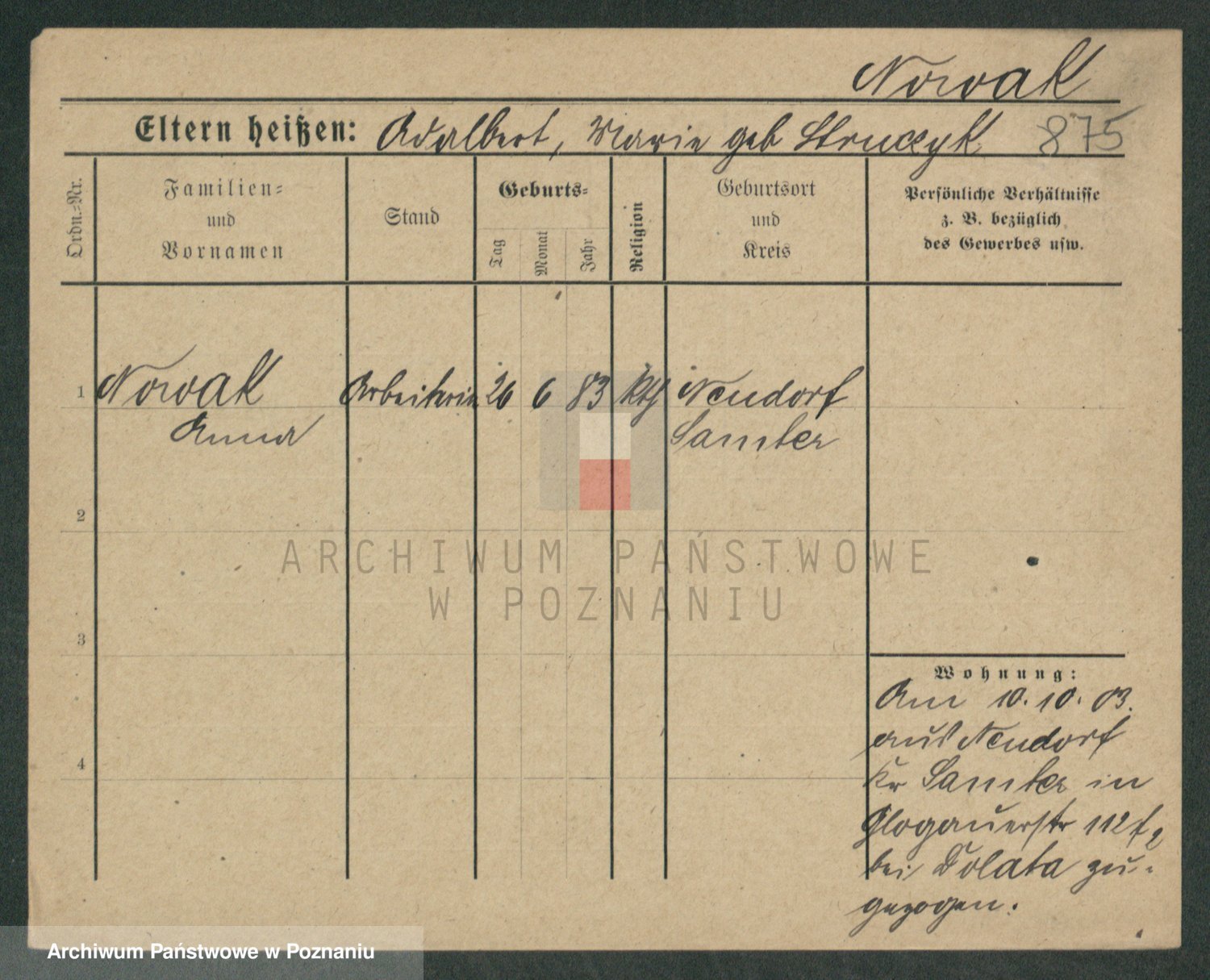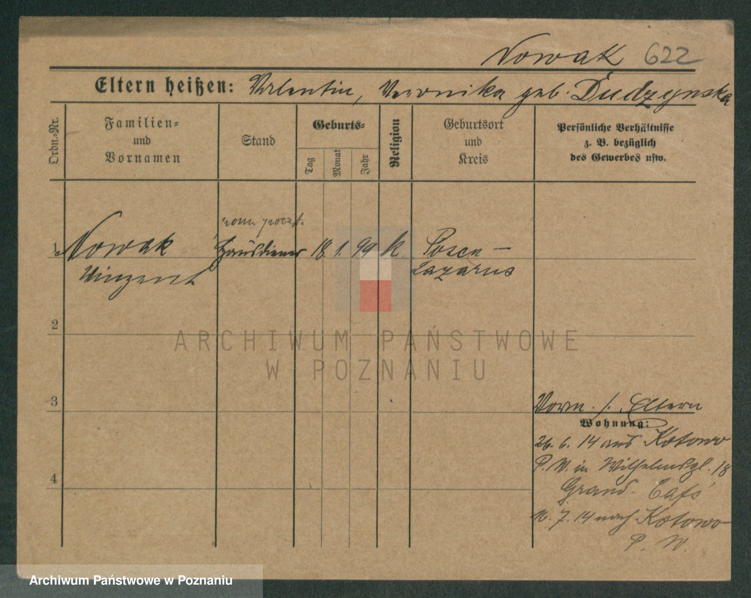 Podgląd karty osobowej dostępny jest po kliknięciu na nazwisko lub ikonkę karty. Można dokonywać powiększenia (ikony na górze) lub przechodzić między kolejnymi skanami (strzałki po bokach).