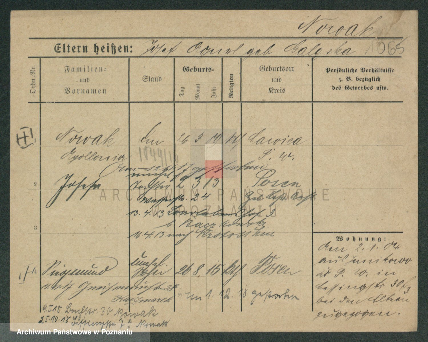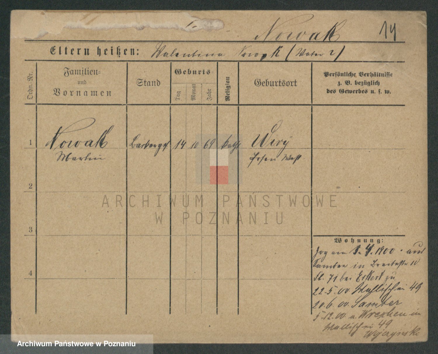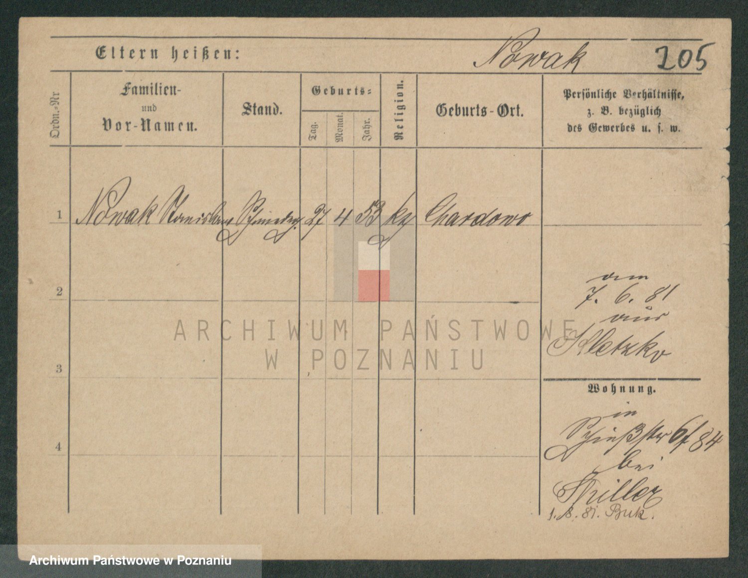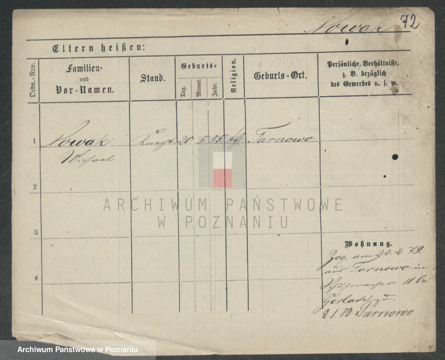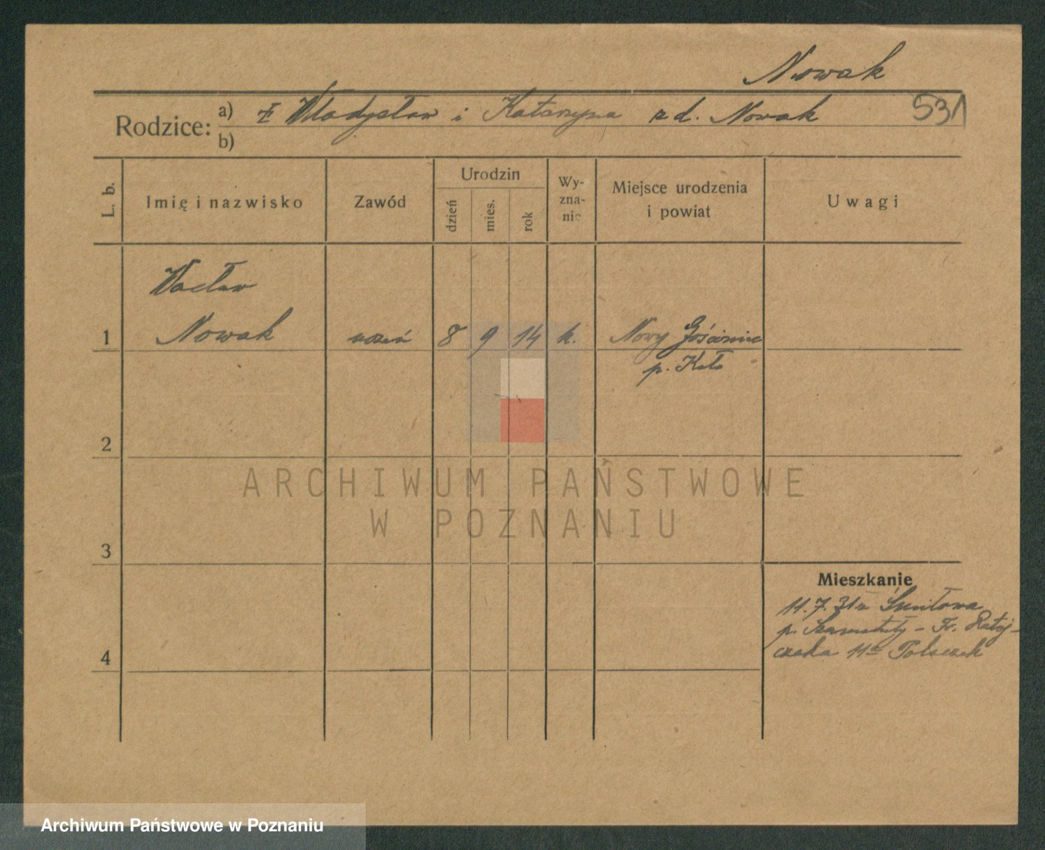 Podgląd karty osobowej dostępny jest po kliknięciu na nazwisko lub ikonkę karty. Można dokonywać powiększenia (ikony na górze) lub przechodzić między kolejnymi skanami (strzałki po bokach).