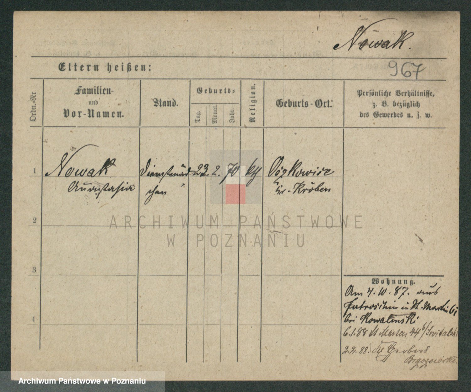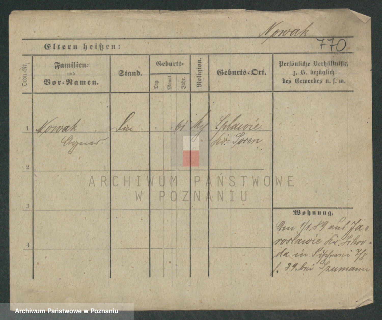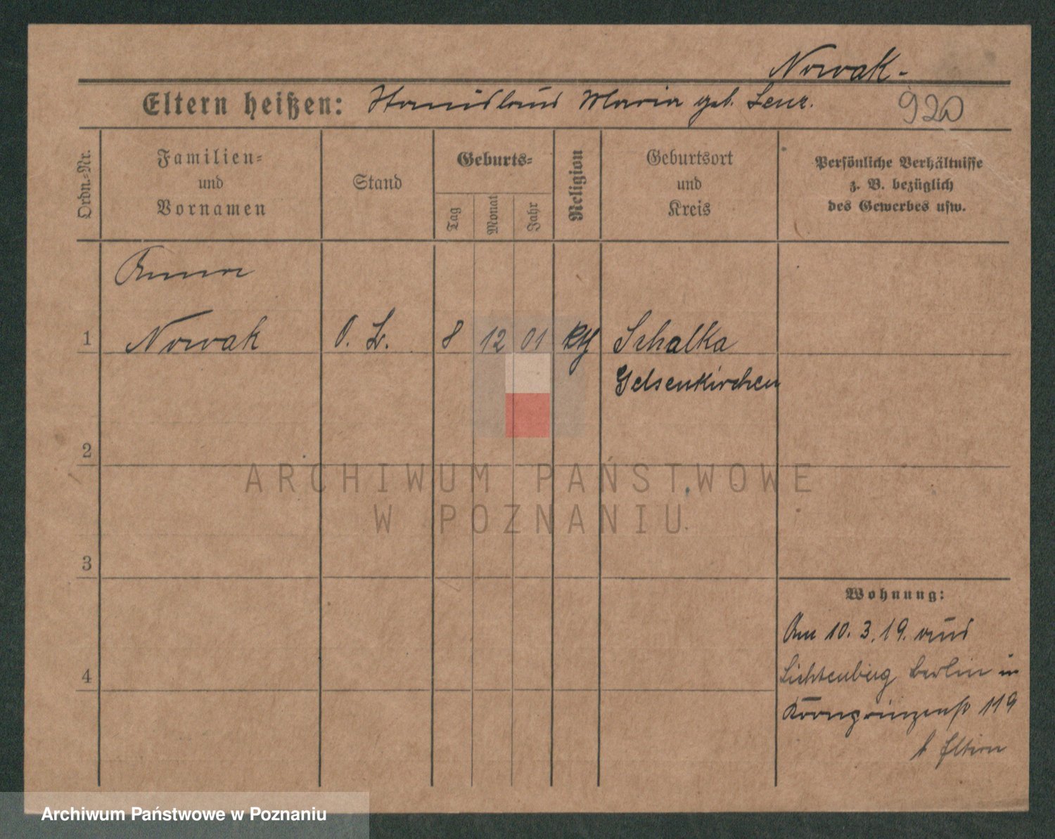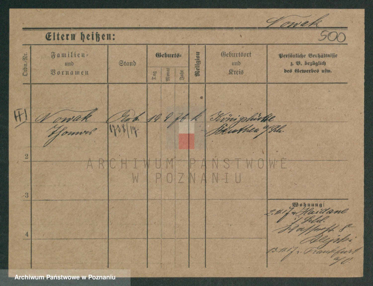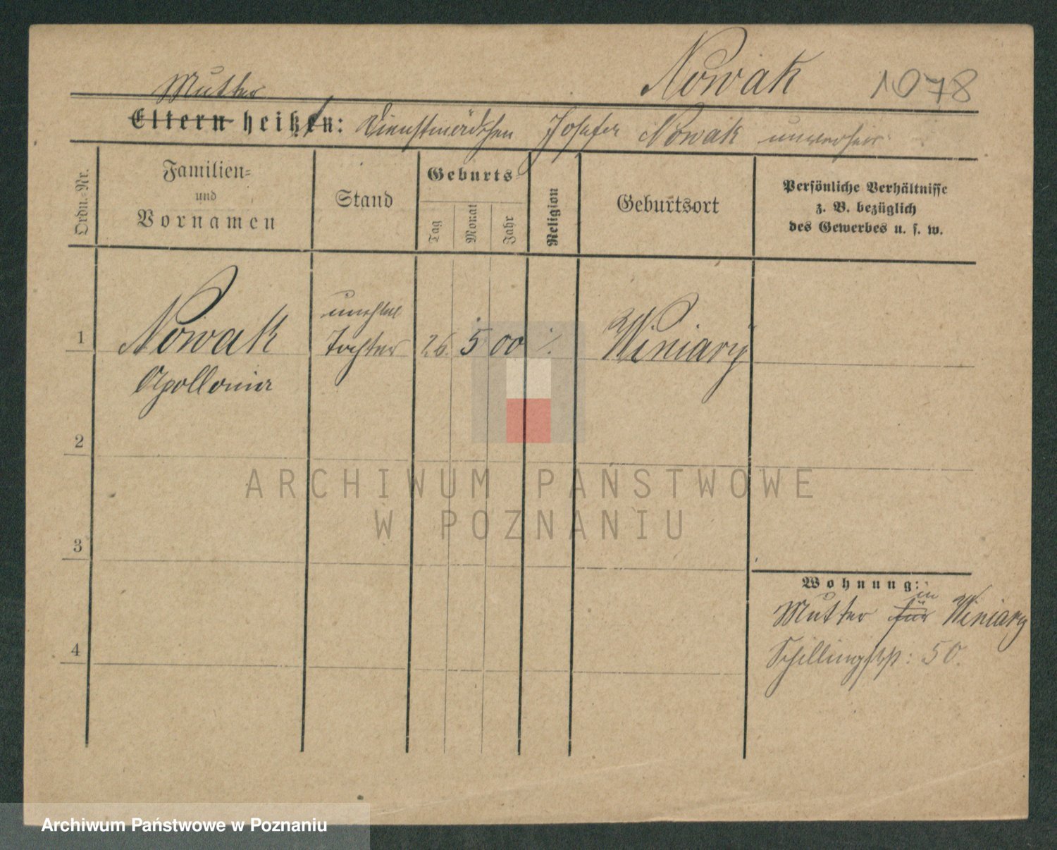 Podgląd karty osobowej dostępny jest po kliknięciu na nazwisko lub ikonkę karty. Można dokonywać powiększenia (ikony na górze) lub przechodzić między kolejnymi skanami (strzałki po bokach).