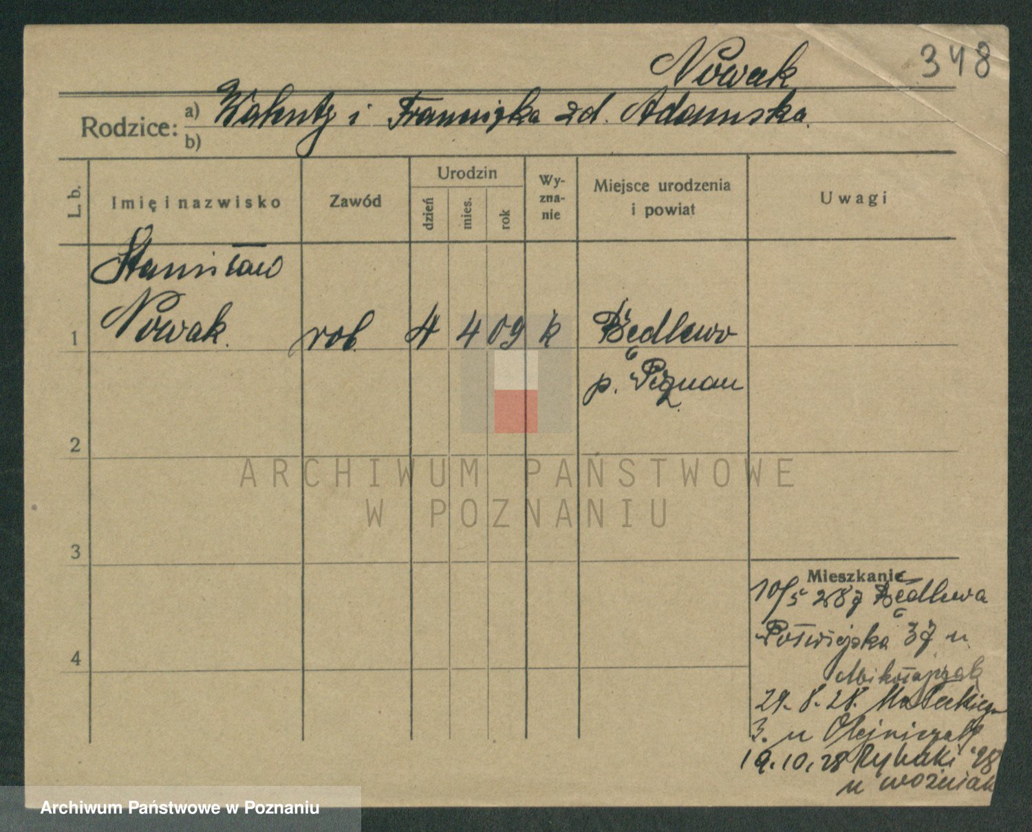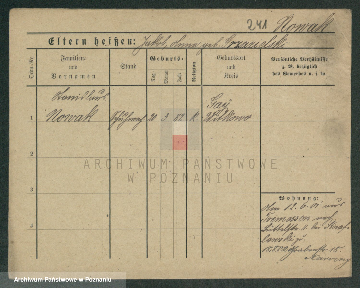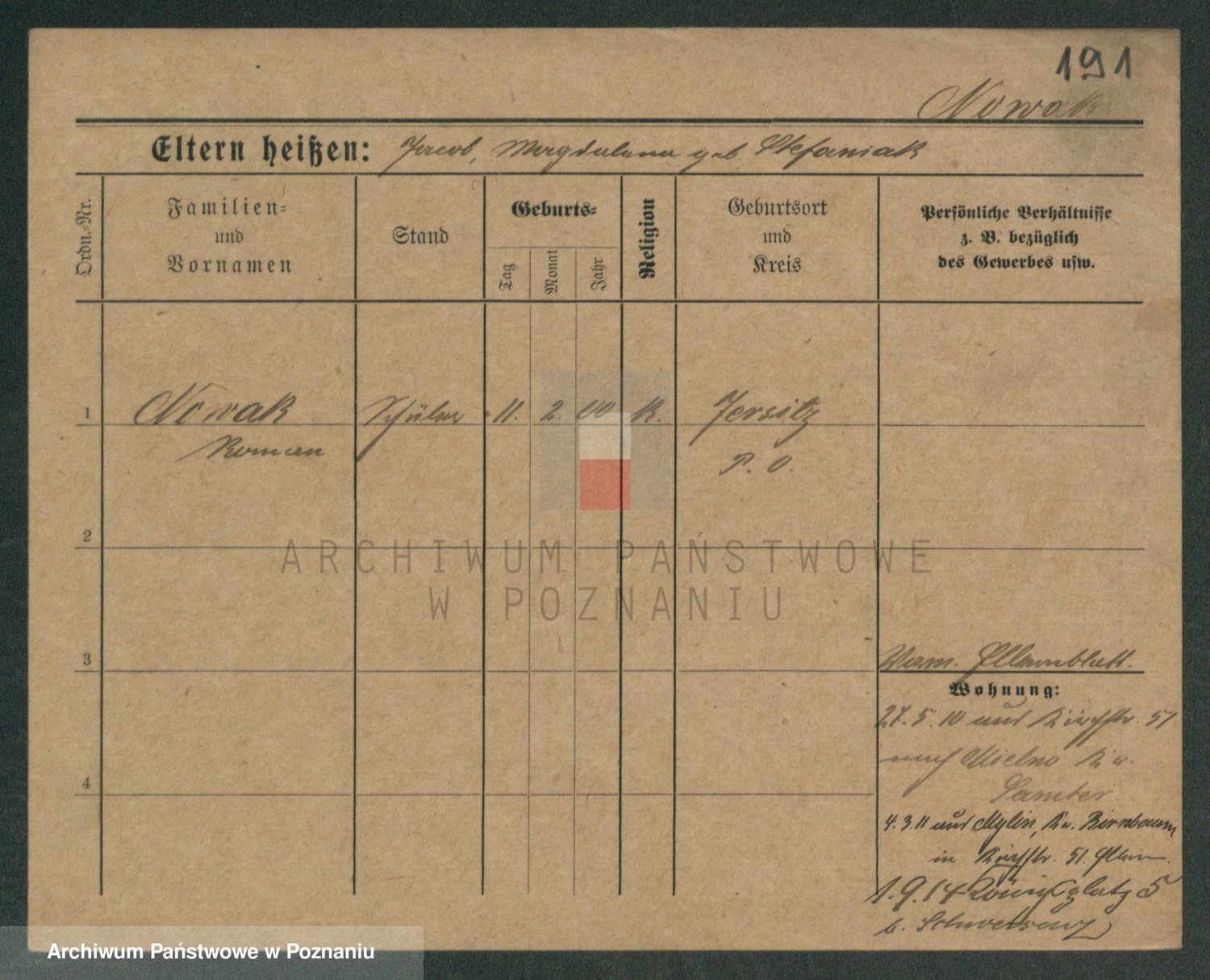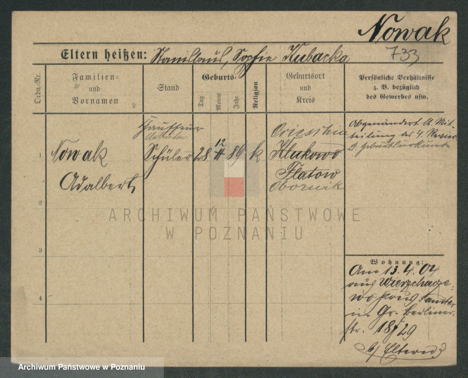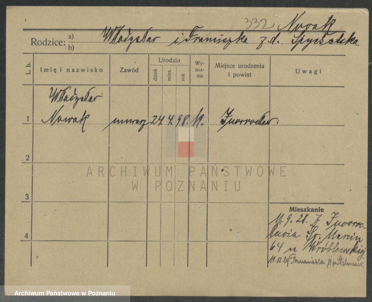 Podgląd karty osobowej dostępny jest po kliknięciu na nazwisko lub ikonkę karty. Można dokonywać powiększenia (ikony na górze) lub przechodzić między kolejnymi skanami (strzałki po bokach).