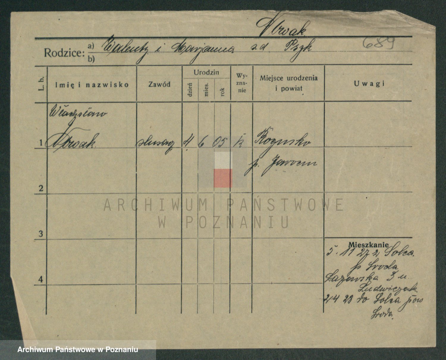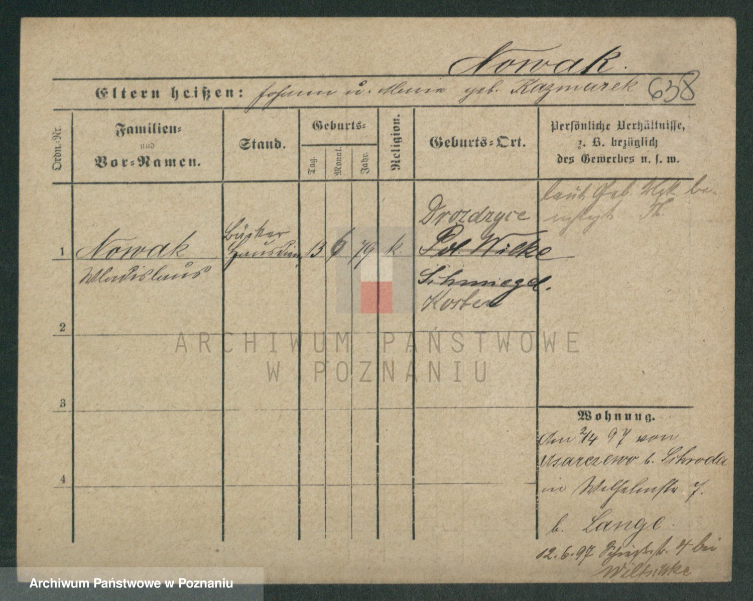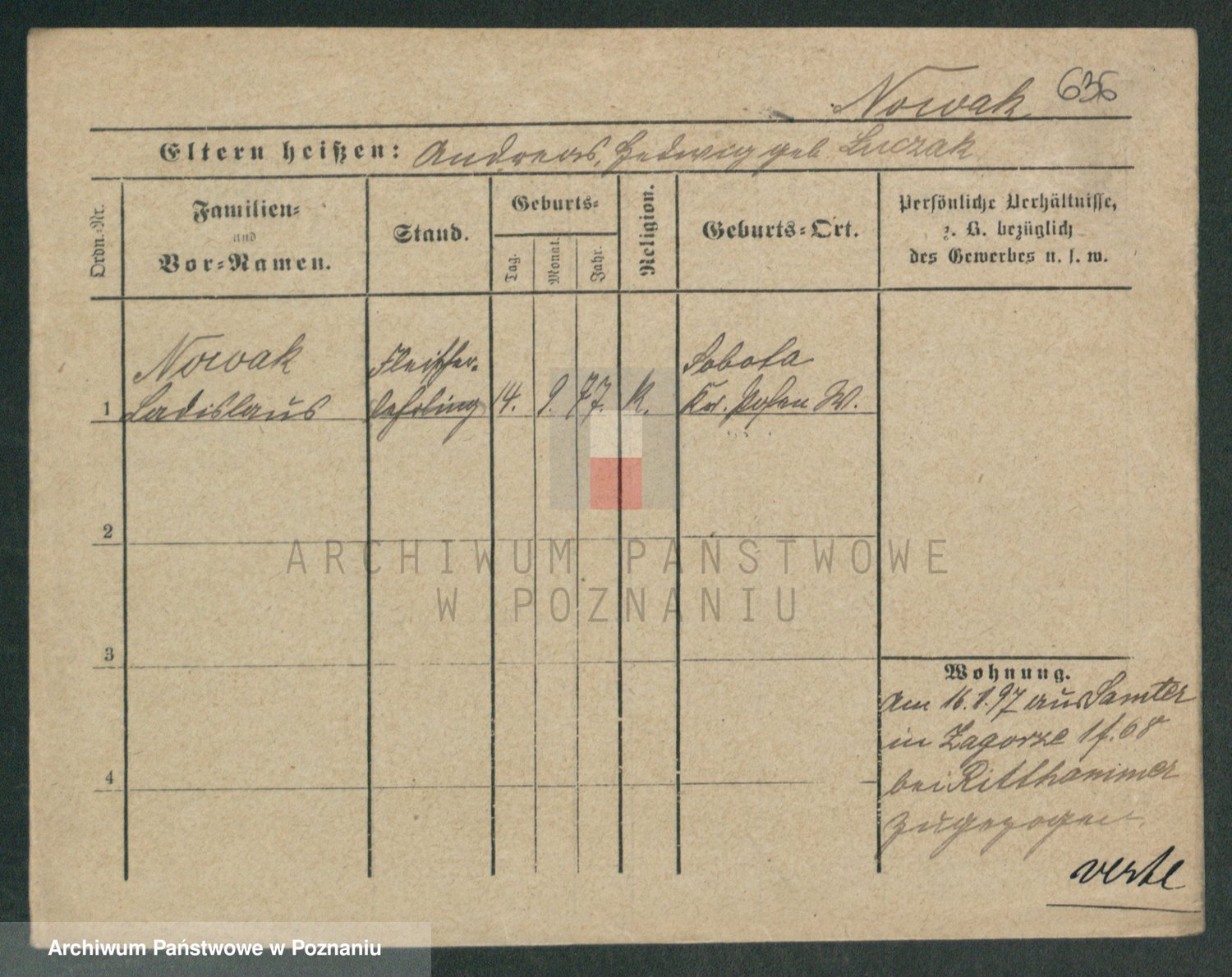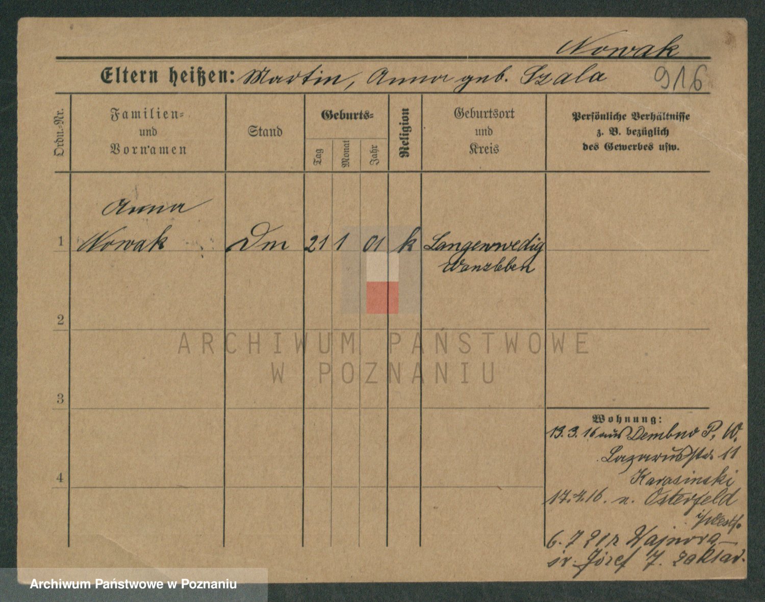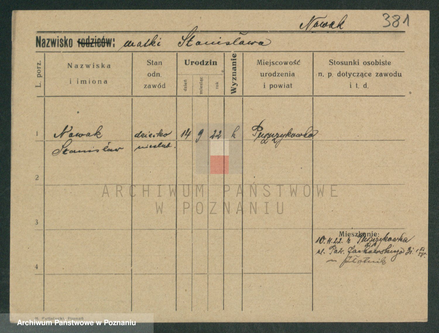 Podgląd karty osobowej dostępny jest po kliknięciu na nazwisko lub ikonkę karty. Można dokonywać powiększenia (ikony na górze) lub przechodzić między kolejnymi skanami (strzałki po bokach).
