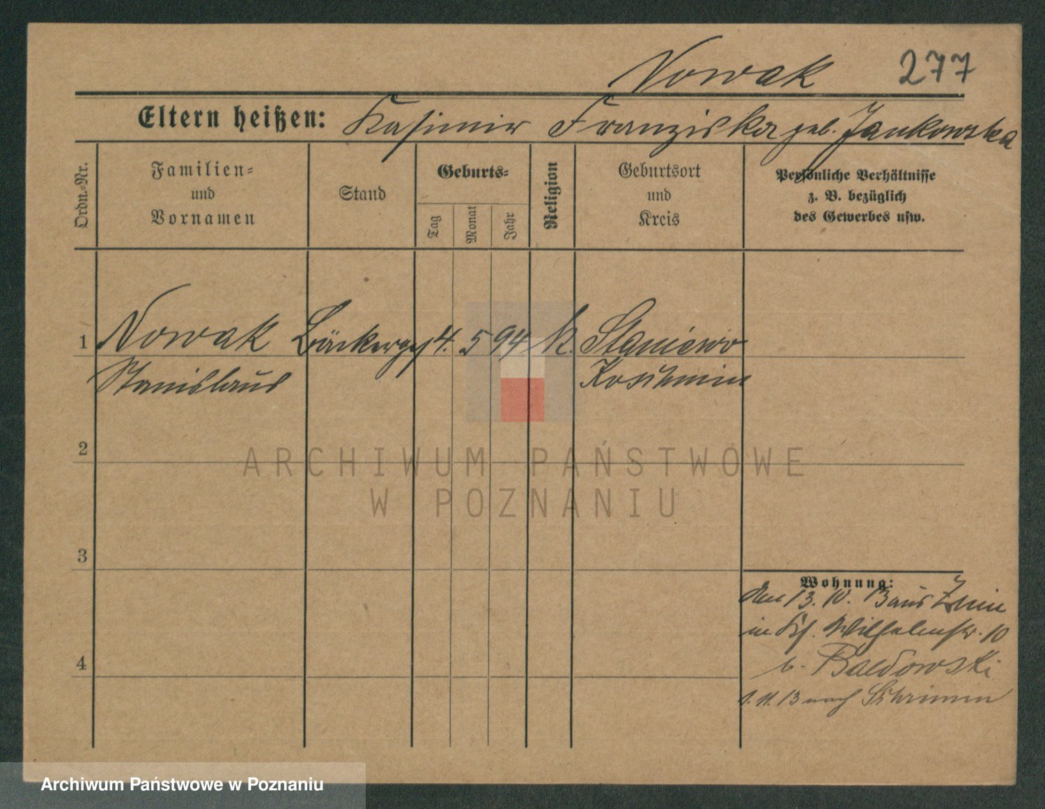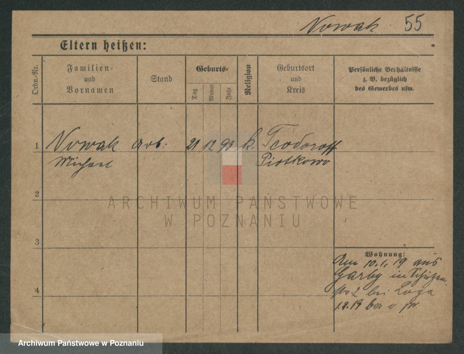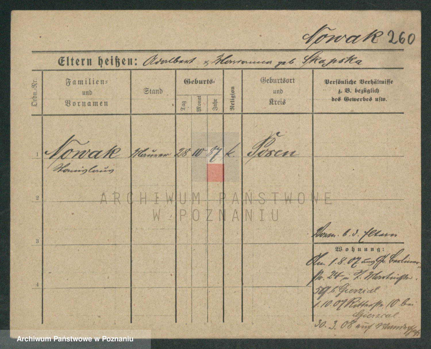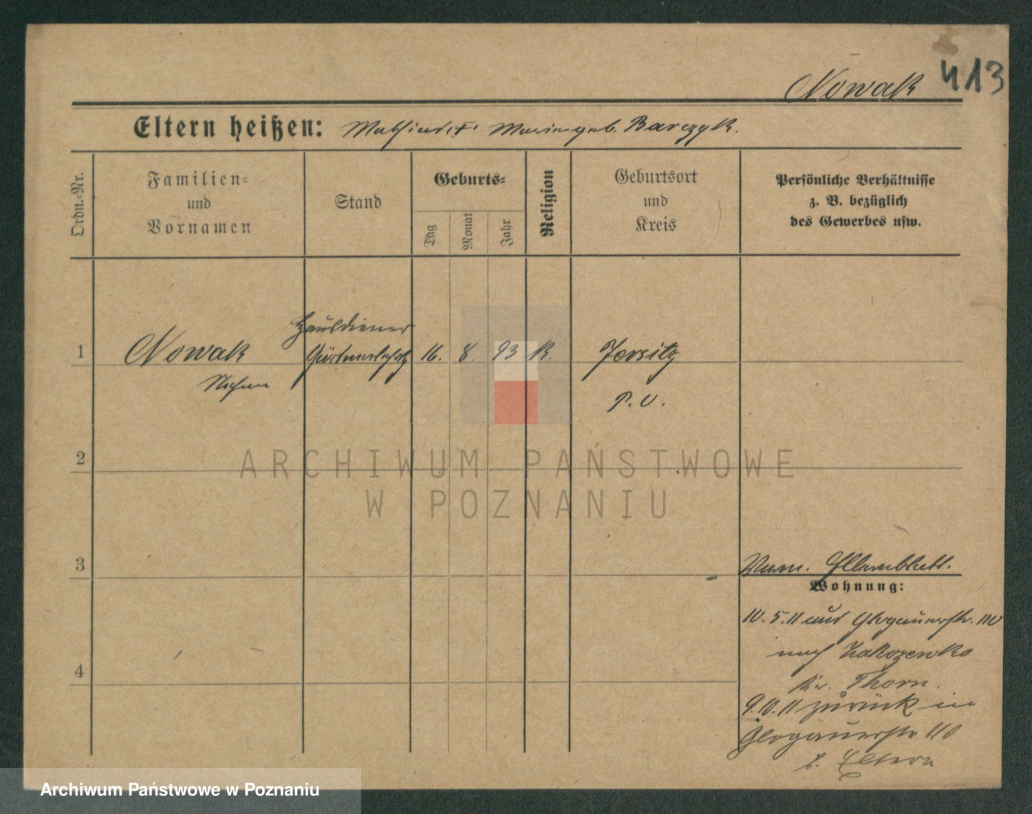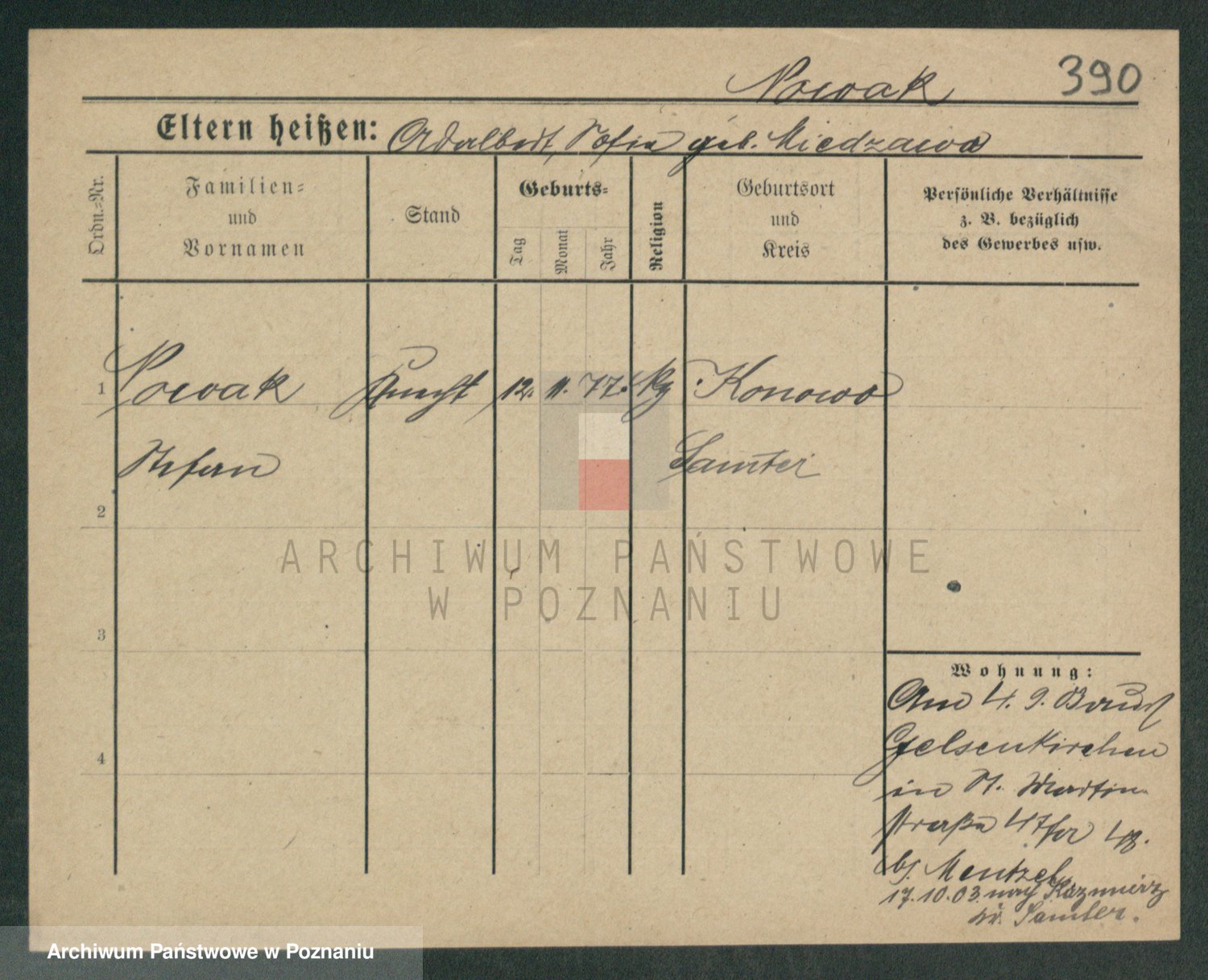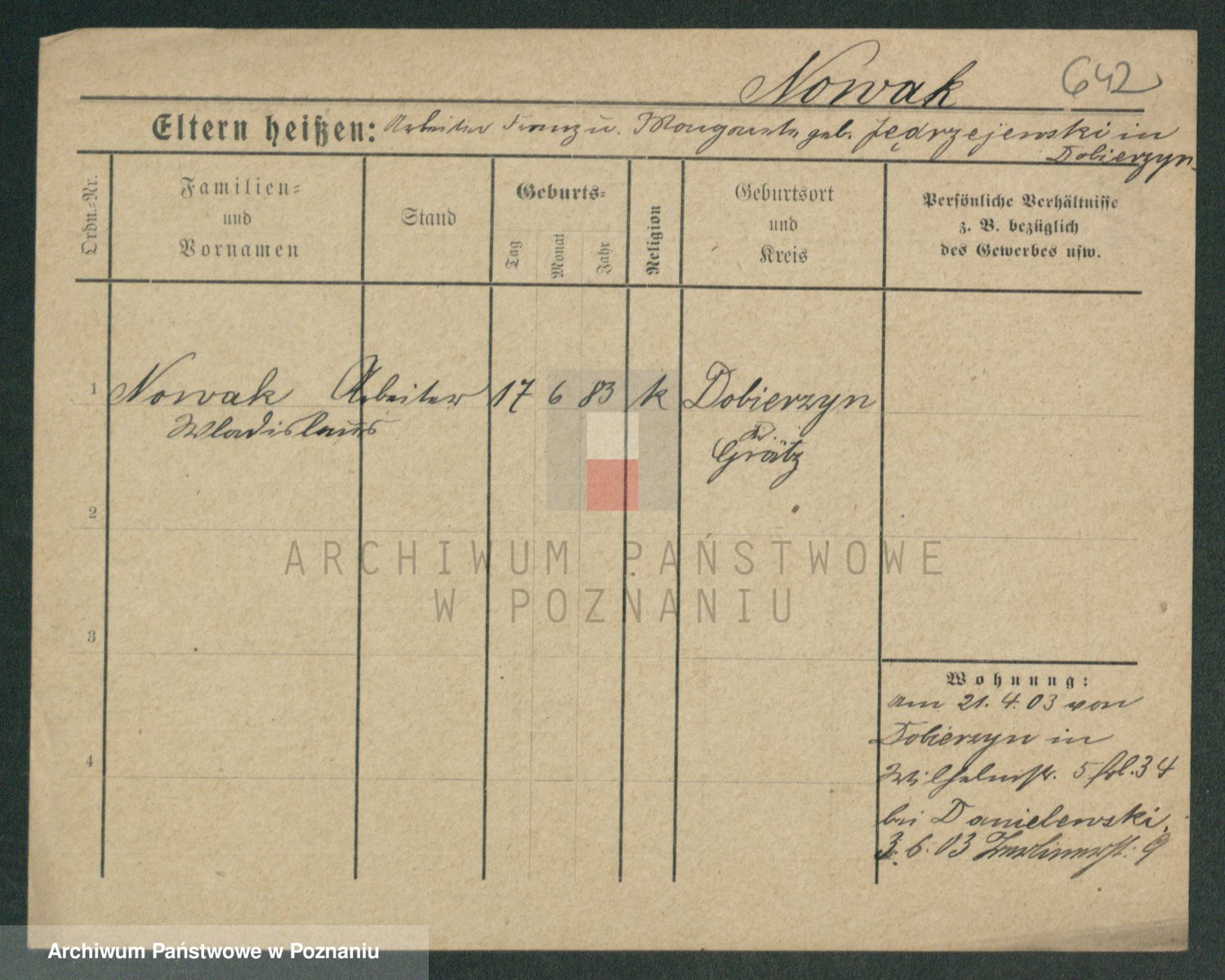 Podgląd karty osobowej dostępny jest po kliknięciu na nazwisko lub ikonkę karty. Można dokonywać powiększenia (ikony na górze) lub przechodzić między kolejnymi skanami (strzałki po bokach).