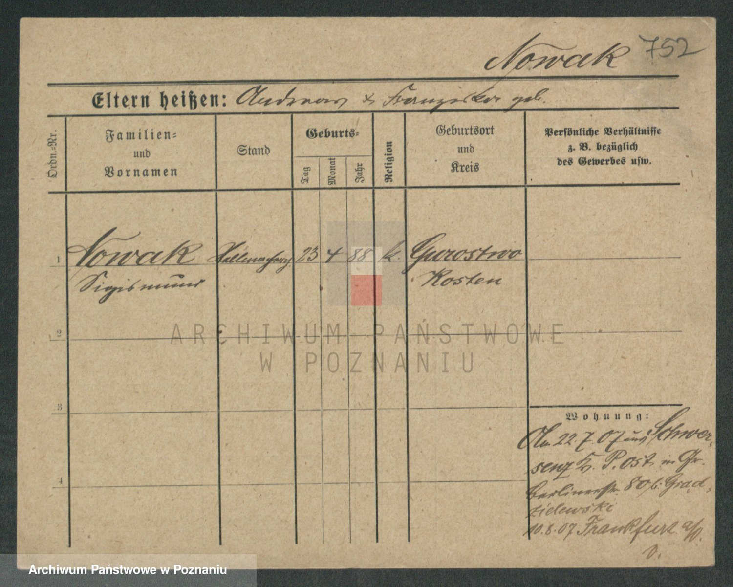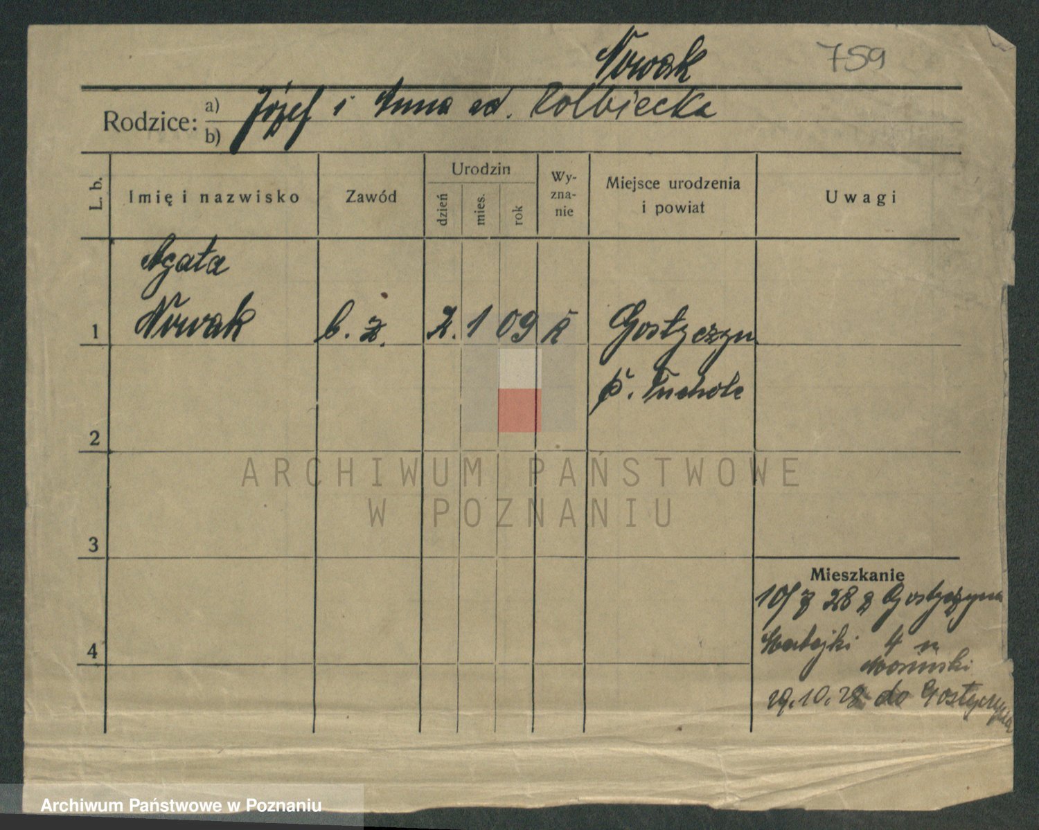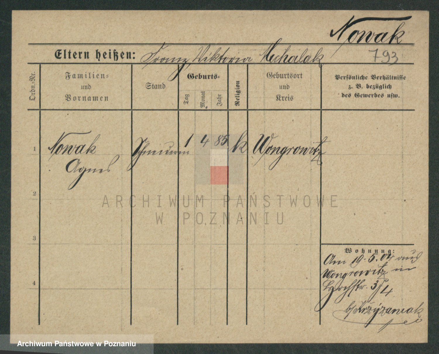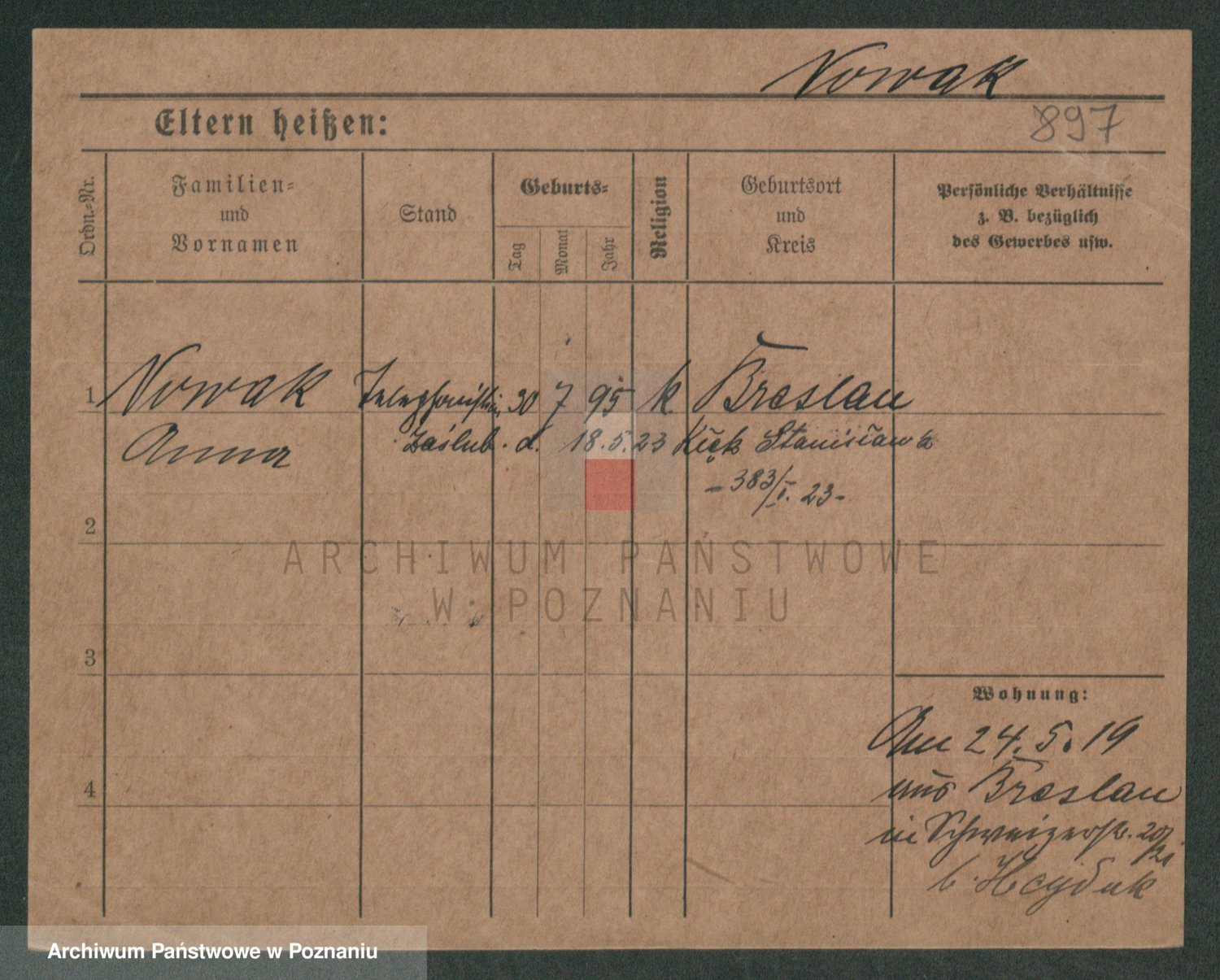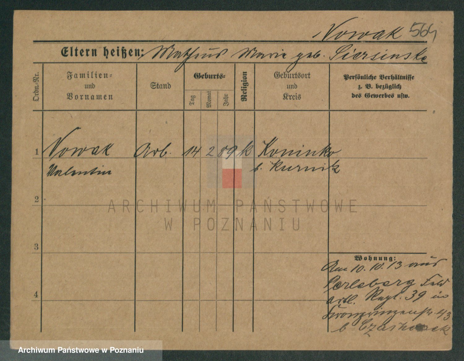 Podgląd karty osobowej dostępny jest po kliknięciu na nazwisko lub ikonkę karty. Można dokonywać powiększenia (ikony na górze) lub przechodzić między kolejnymi skanami (strzałki po bokach).