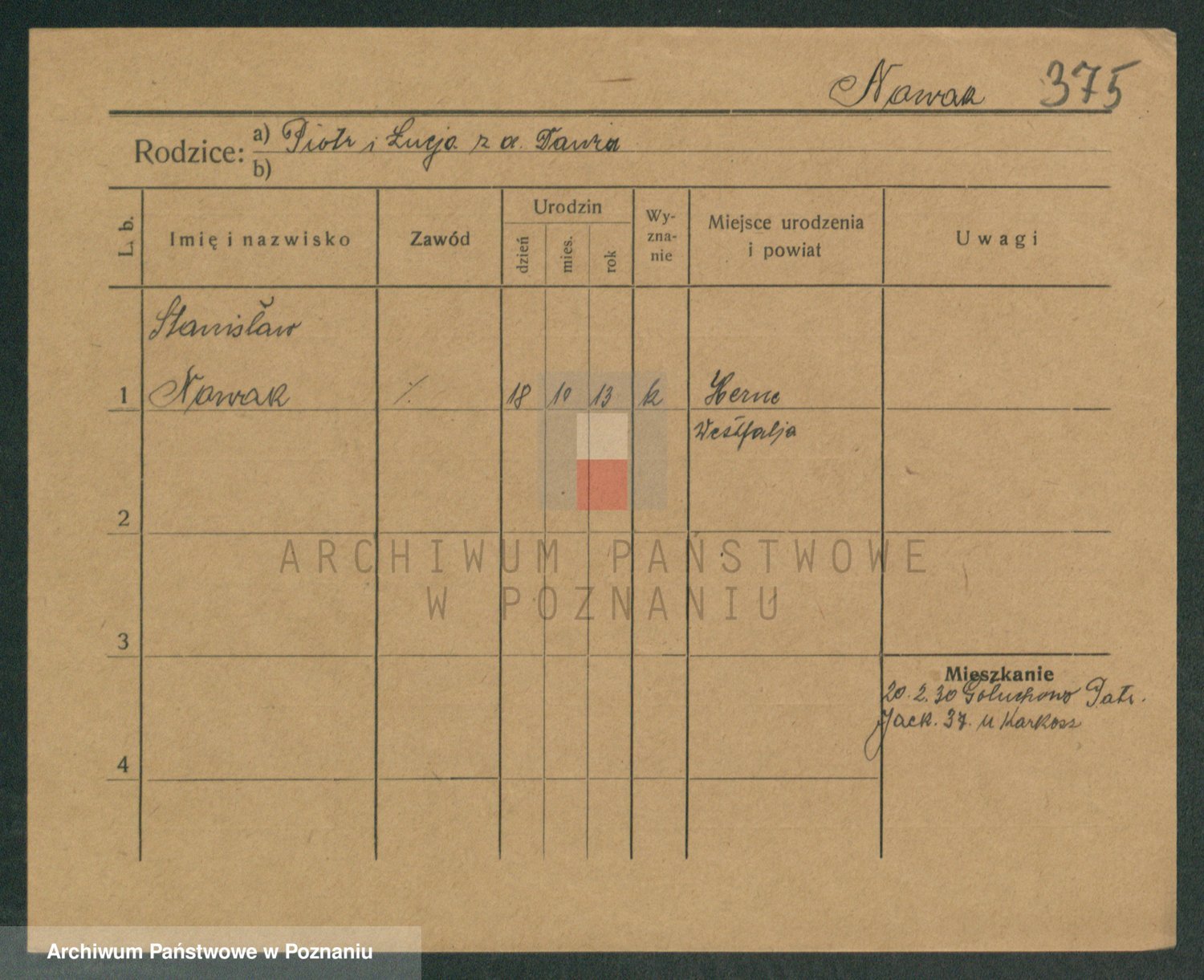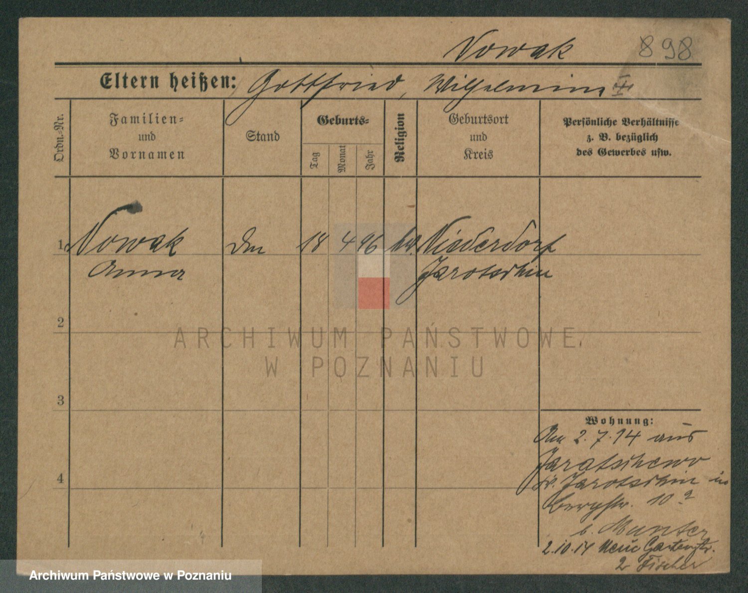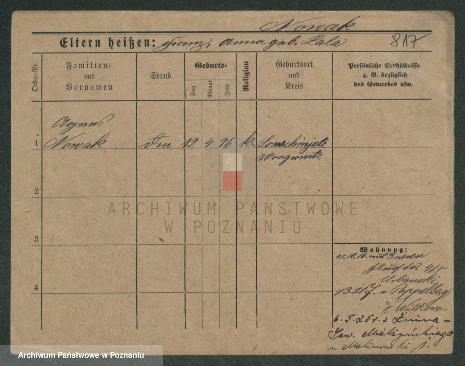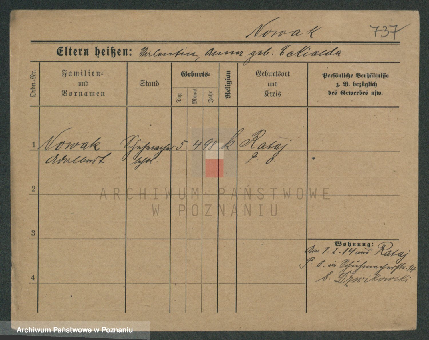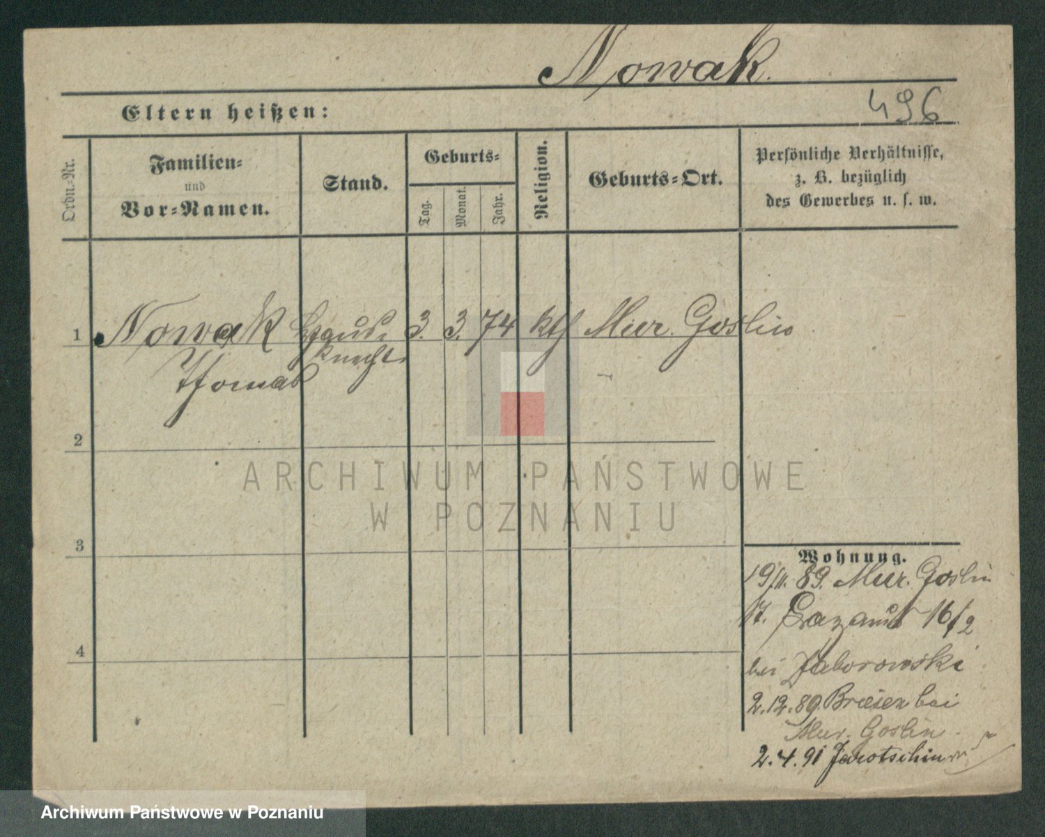 Podgląd karty osobowej dostępny jest po kliknięciu na nazwisko lub ikonkę karty. Można dokonywać powiększenia (ikony na górze) lub przechodzić między kolejnymi skanami (strzałki po bokach).