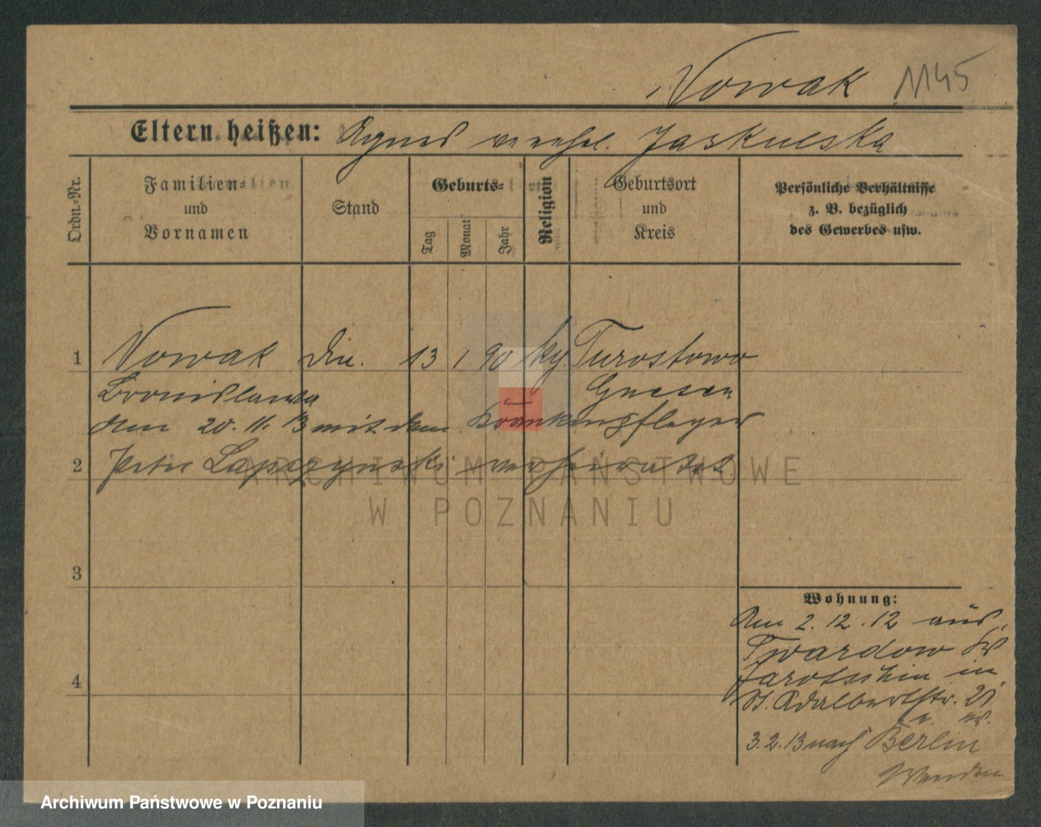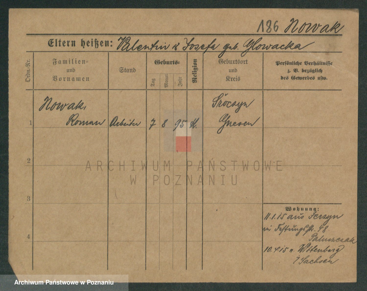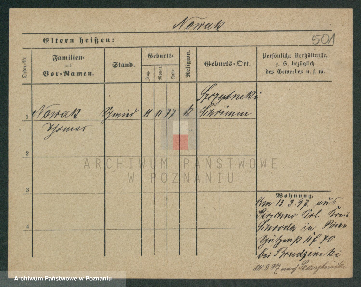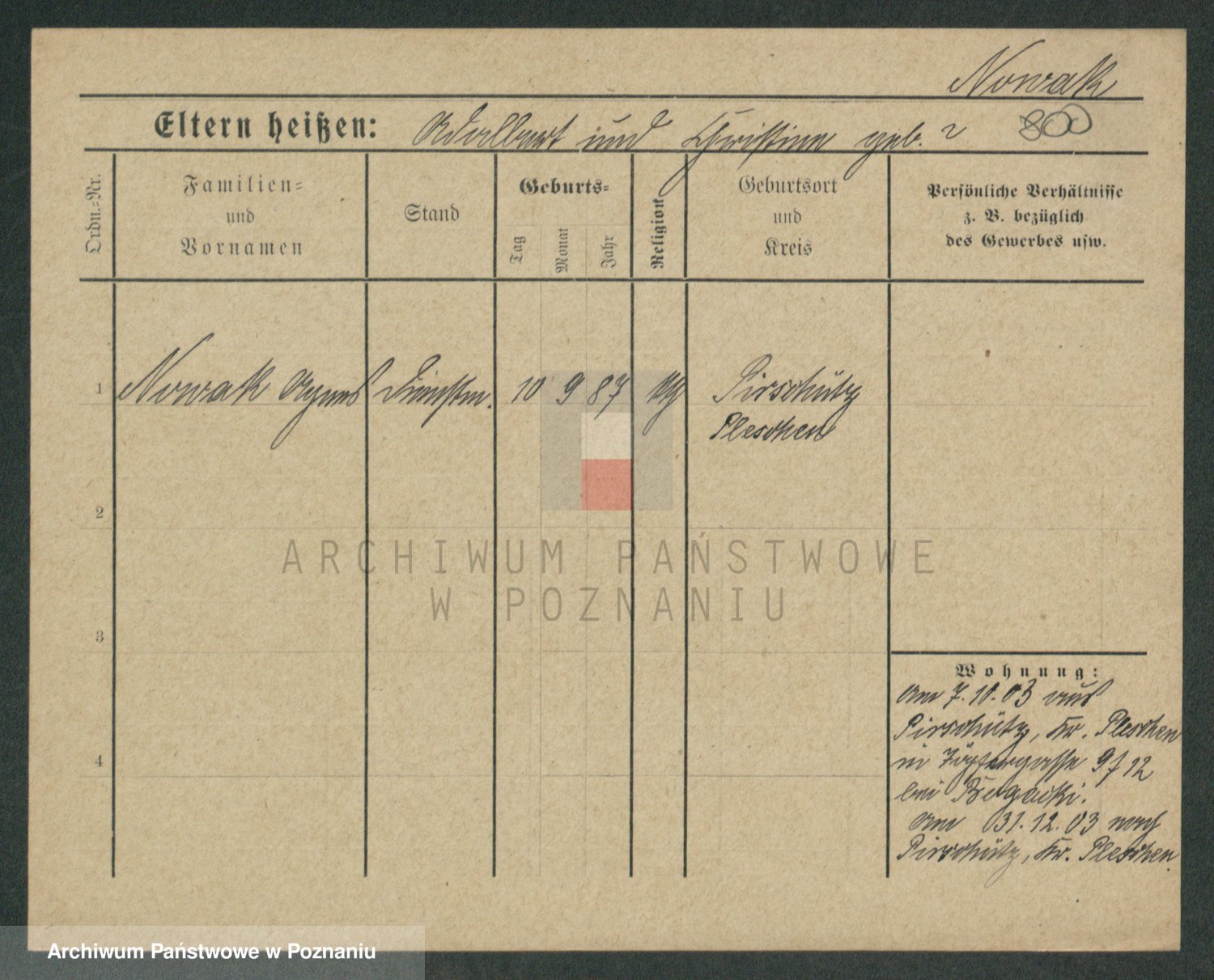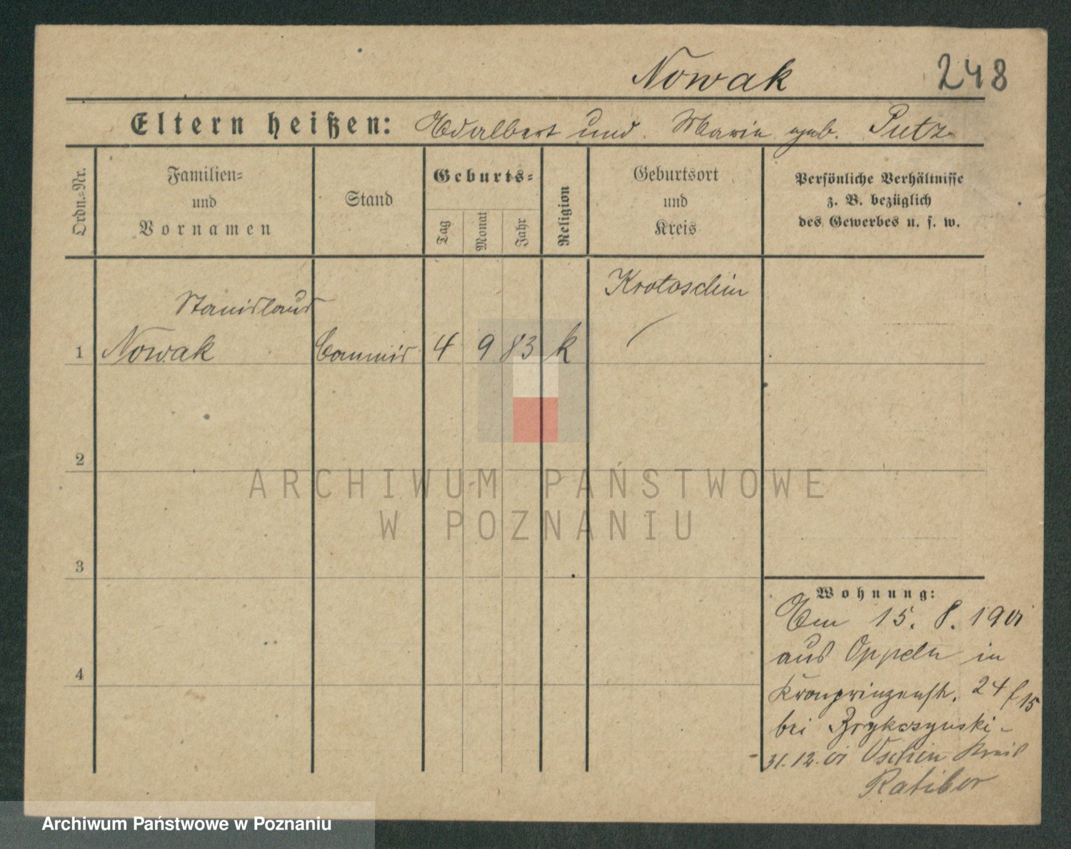 Podgląd karty osobowej dostępny jest po kliknięciu na nazwisko lub ikonkę karty. Można dokonywać powiększenia (ikony na górze) lub przechodzić między kolejnymi skanami (strzałki po bokach).
