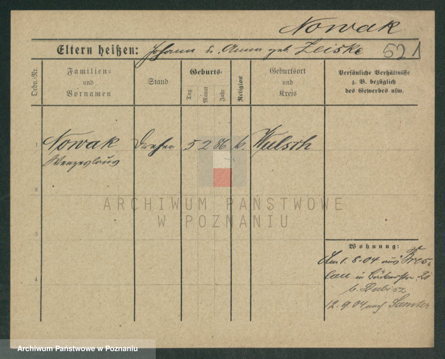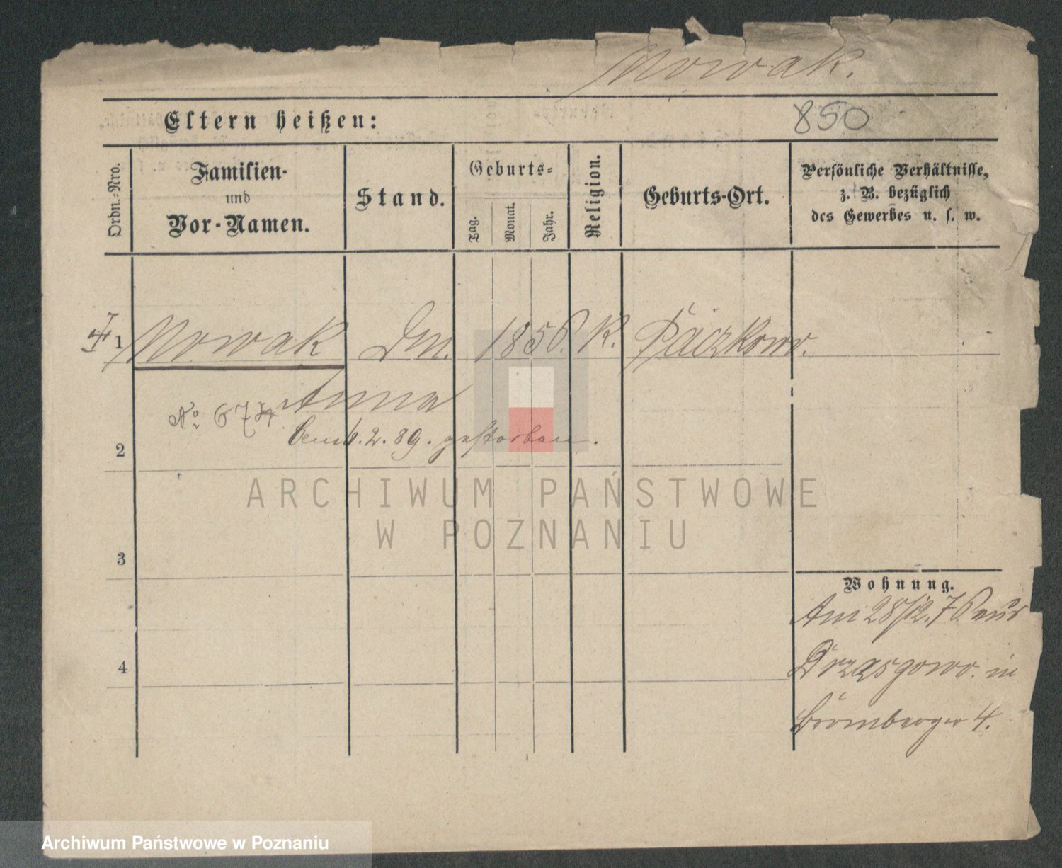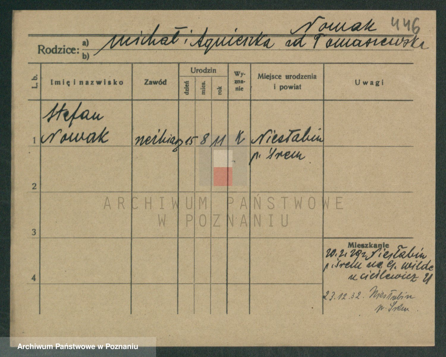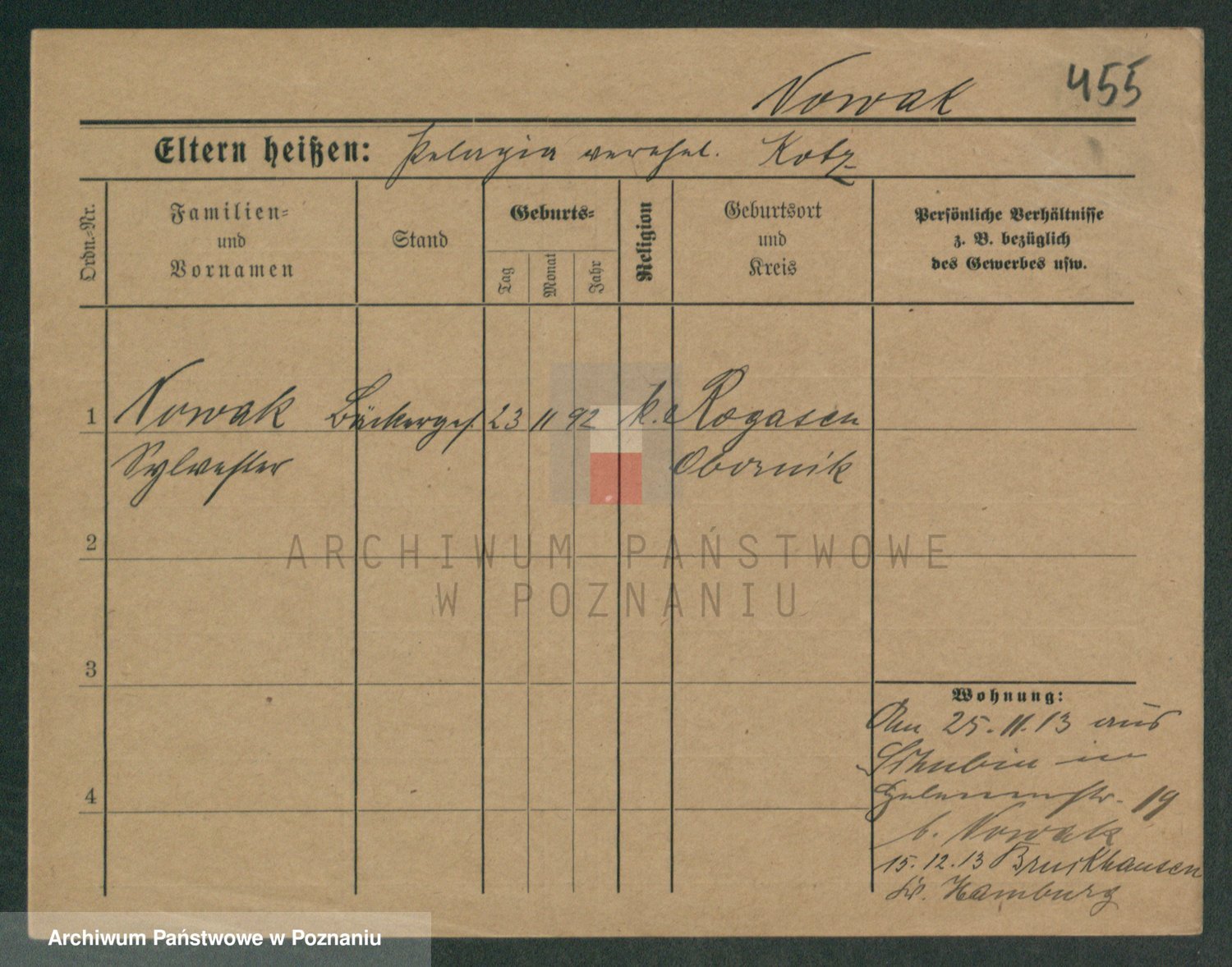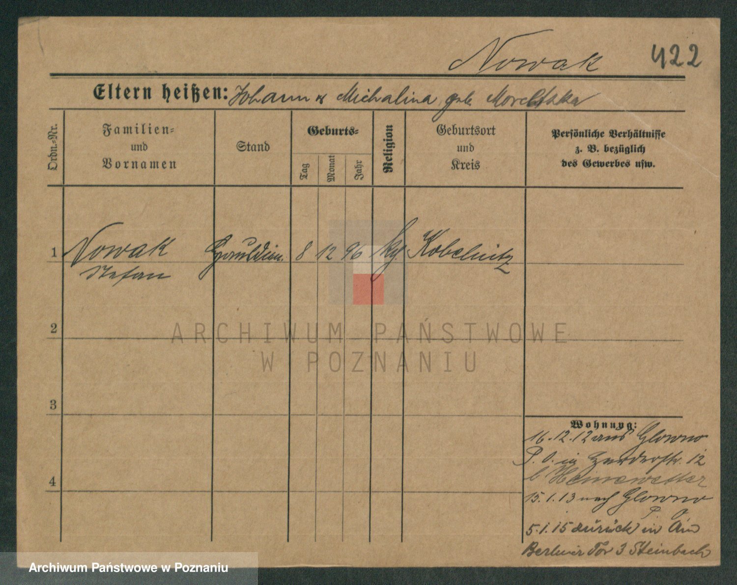 Podgląd karty osobowej dostępny jest po kliknięciu na nazwisko lub ikonkę karty. Można dokonywać powiększenia (ikony na górze) lub przechodzić między kolejnymi skanami (strzałki po bokach).