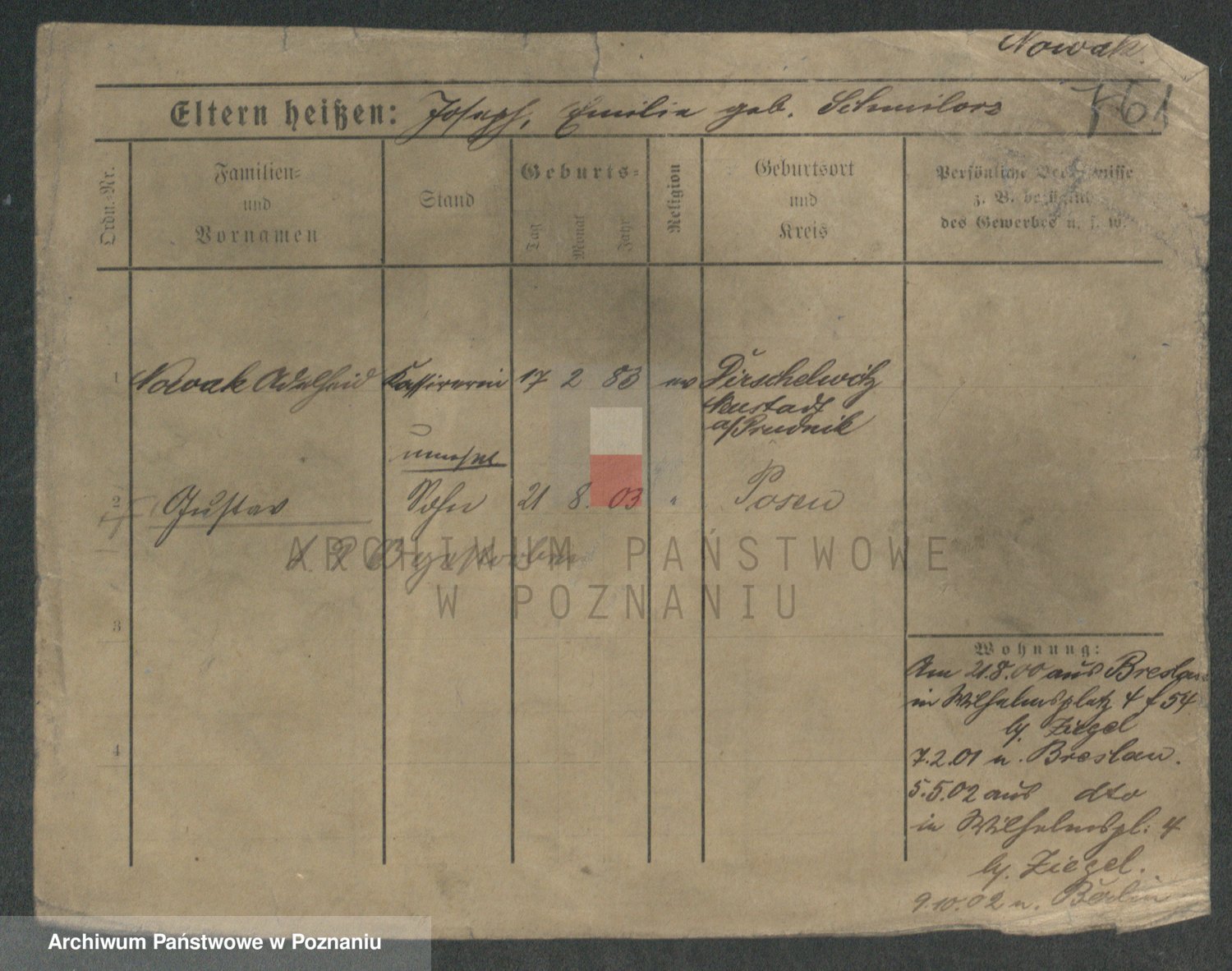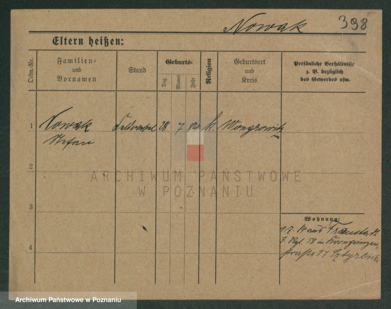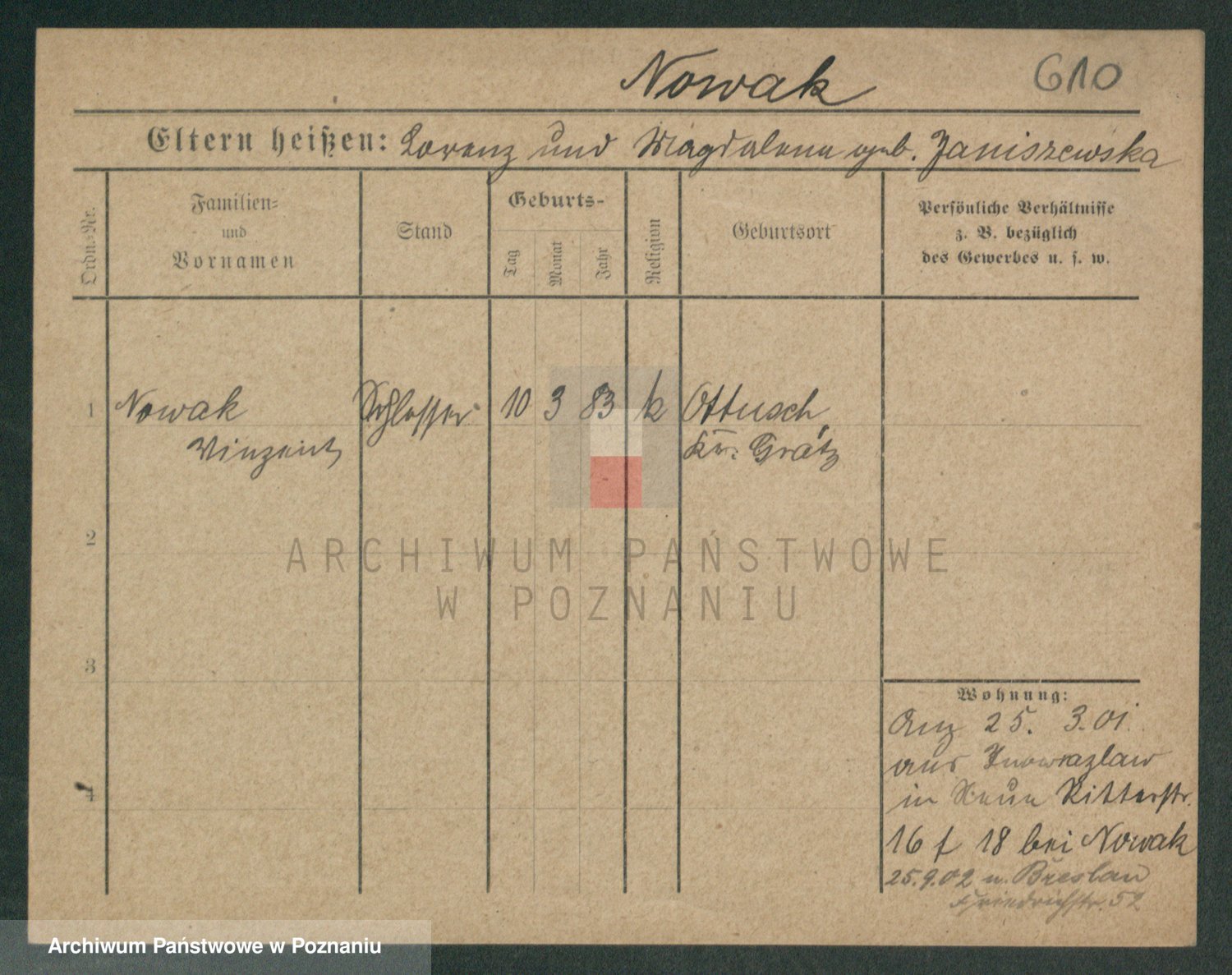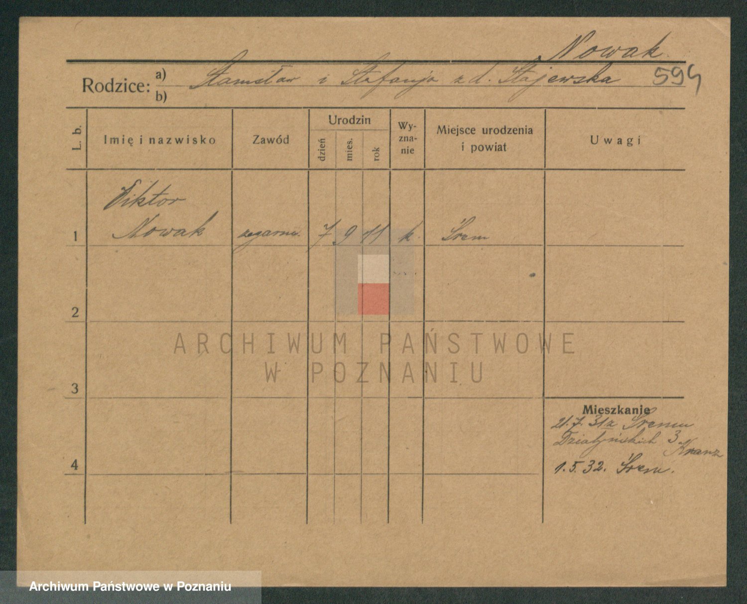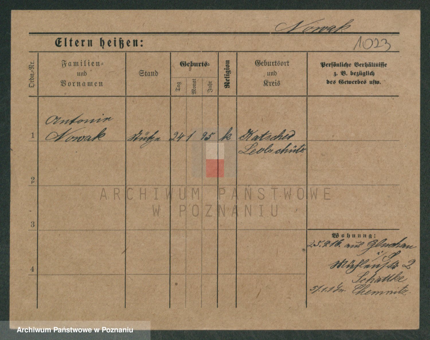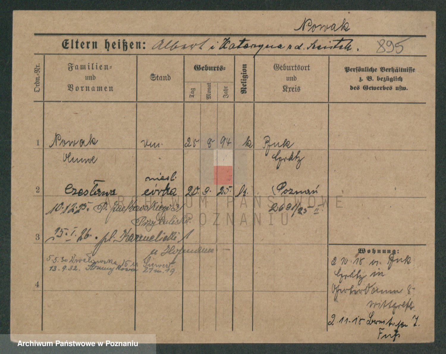 Podgląd karty osobowej dostępny jest po kliknięciu na nazwisko lub ikonkę karty. Można dokonywać powiększenia (ikony na górze) lub przechodzić między kolejnymi skanami (strzałki po bokach).