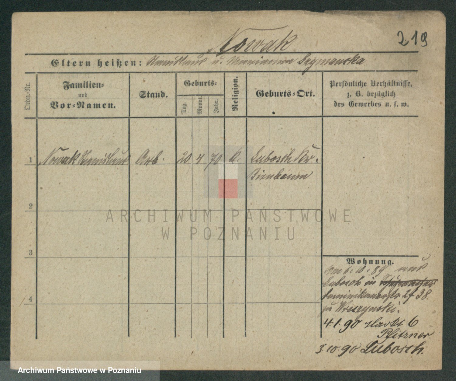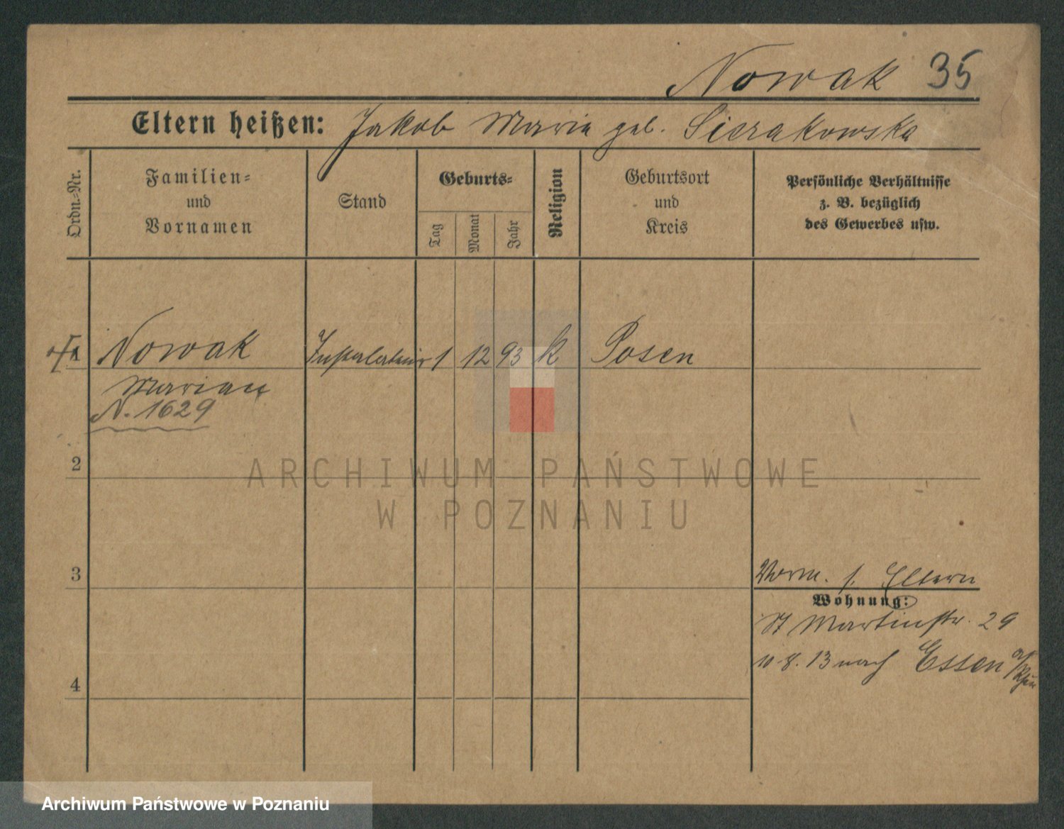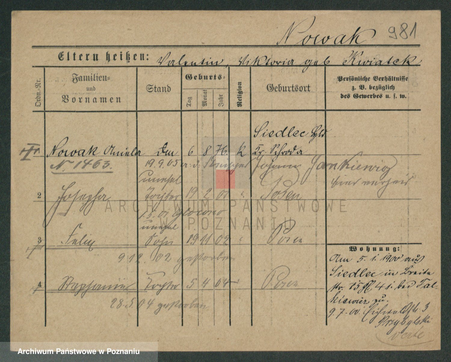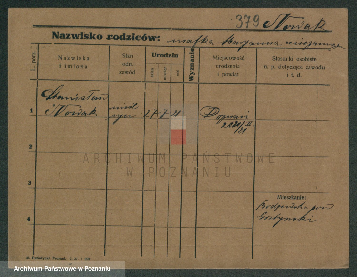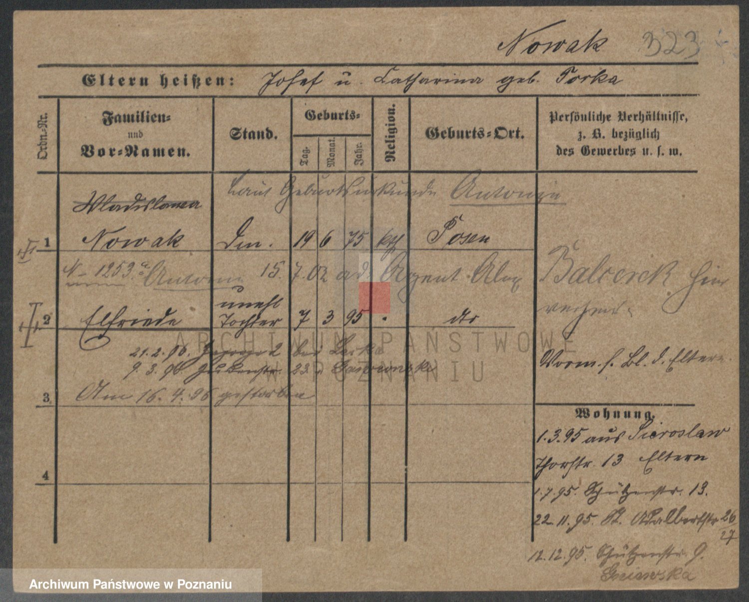 Podgląd karty osobowej dostępny jest po kliknięciu na nazwisko lub ikonkę karty. Można dokonywać powiększenia (ikony na górze) lub przechodzić między kolejnymi skanami (strzałki po bokach).