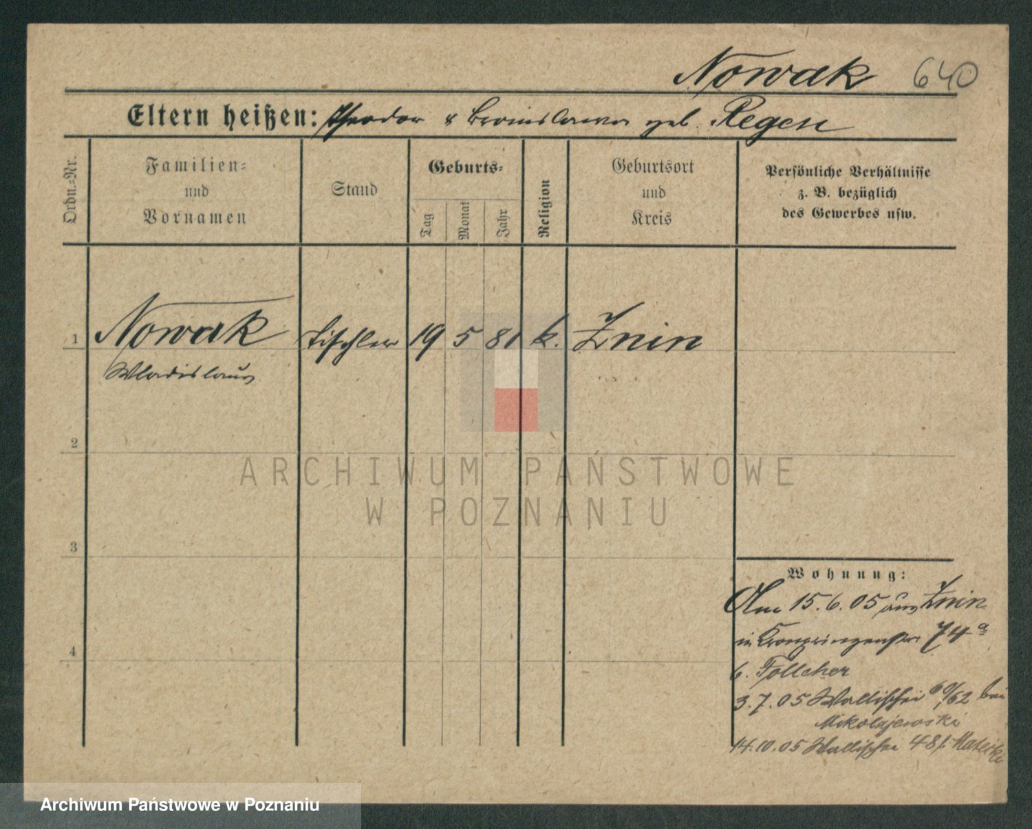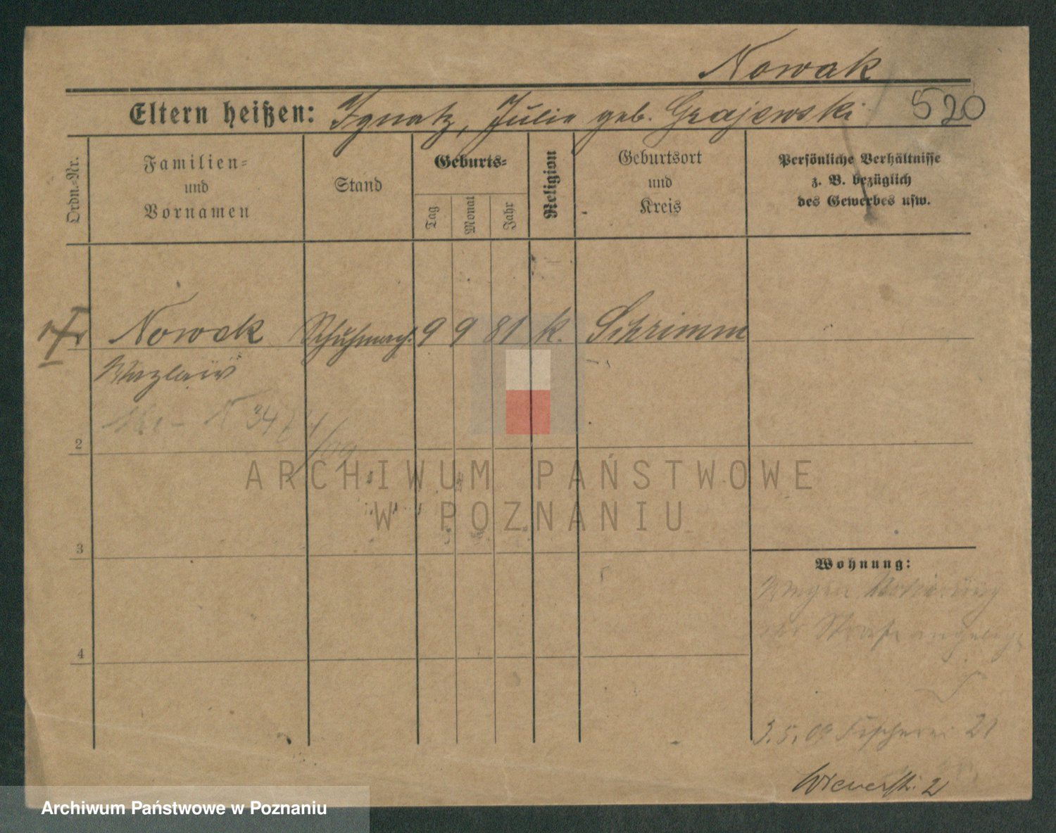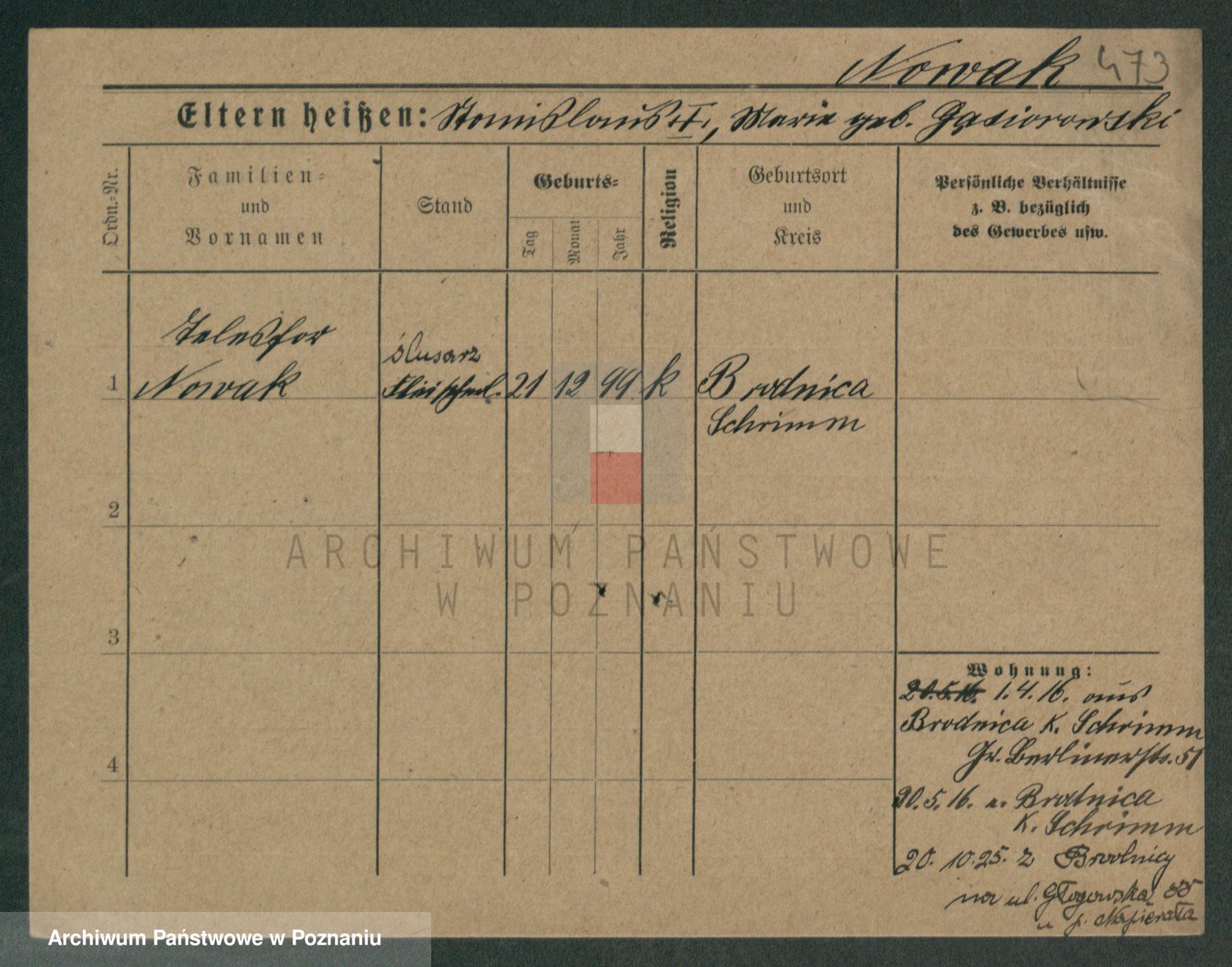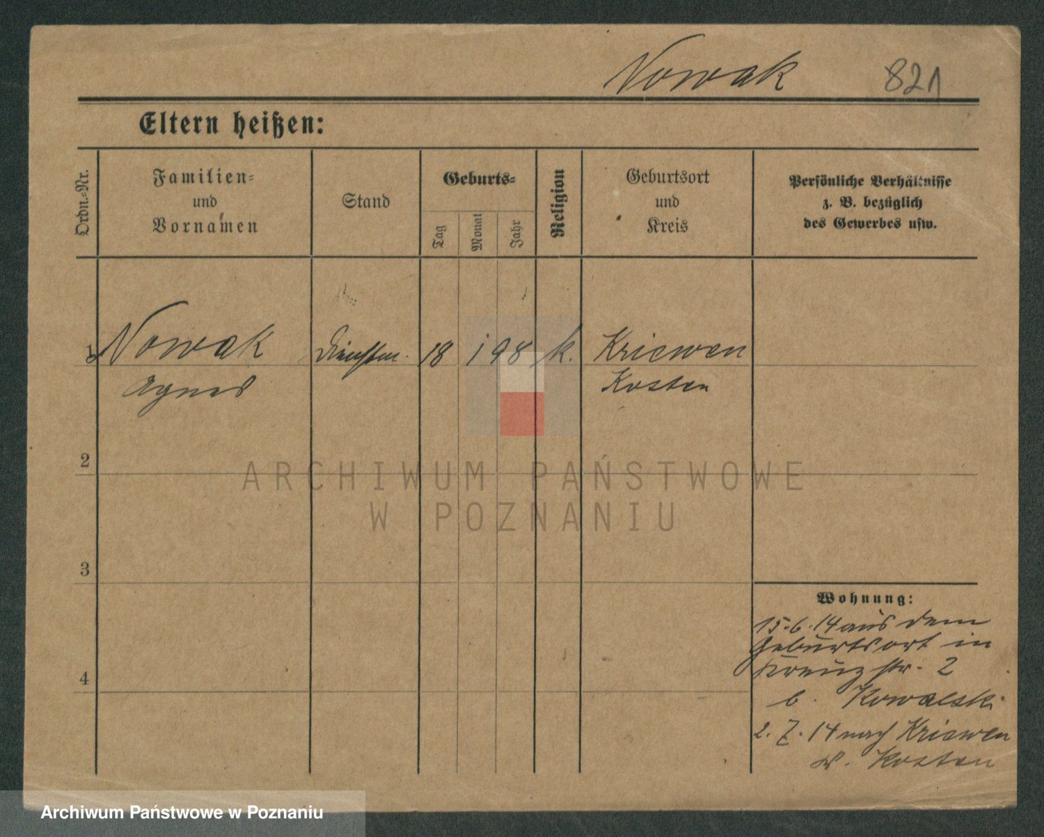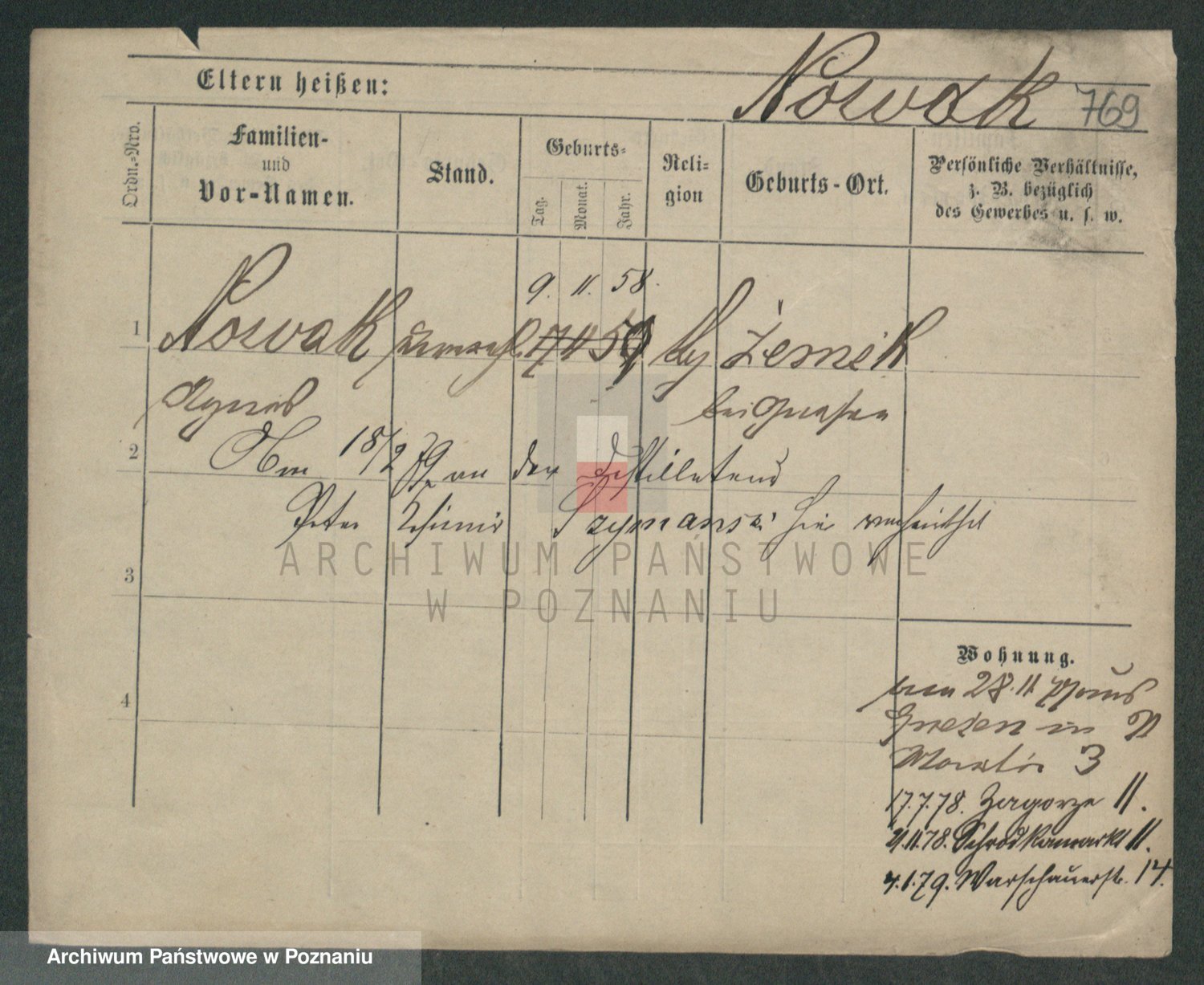 Podgląd karty osobowej dostępny jest po kliknięciu na nazwisko lub ikonkę karty. Można dokonywać powiększenia (ikony na górze) lub przechodzić między kolejnymi skanami (strzałki po bokach).