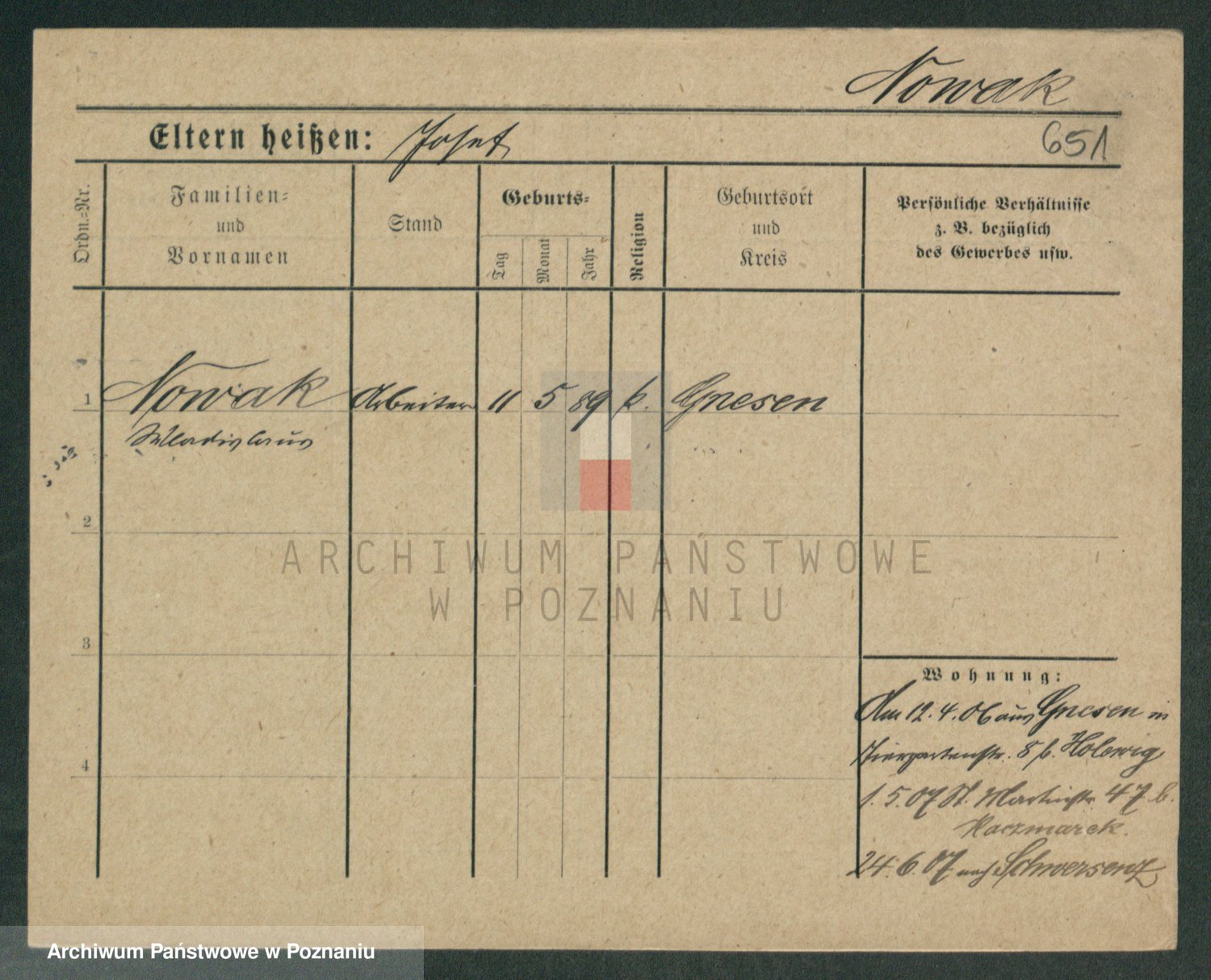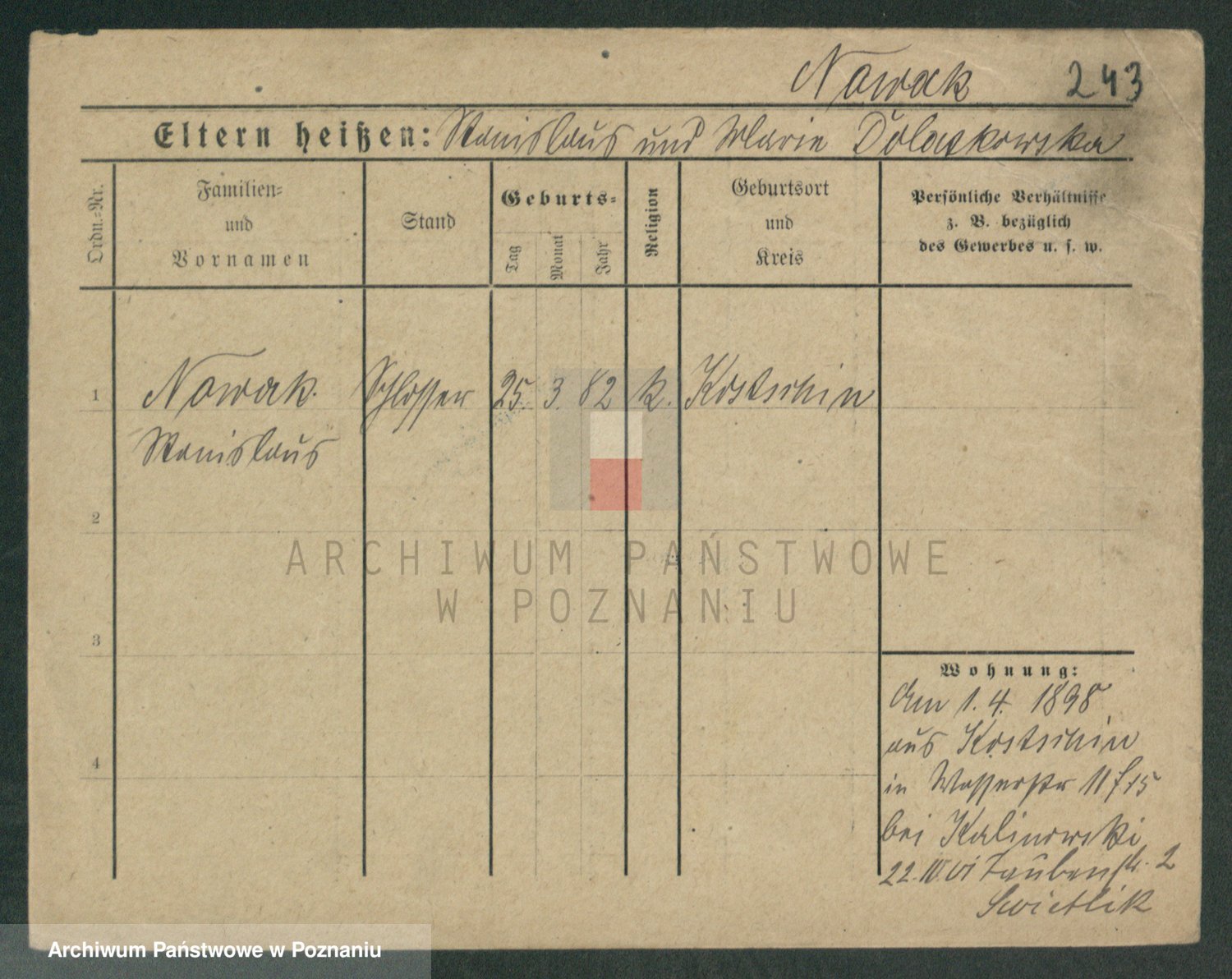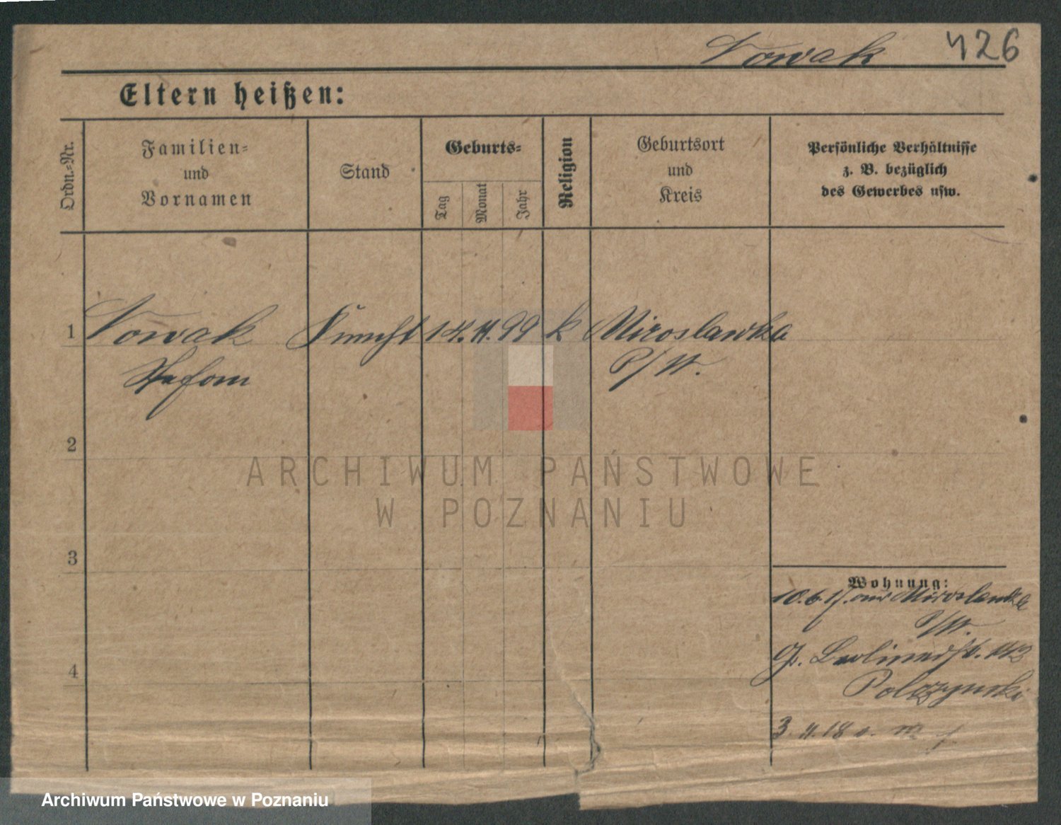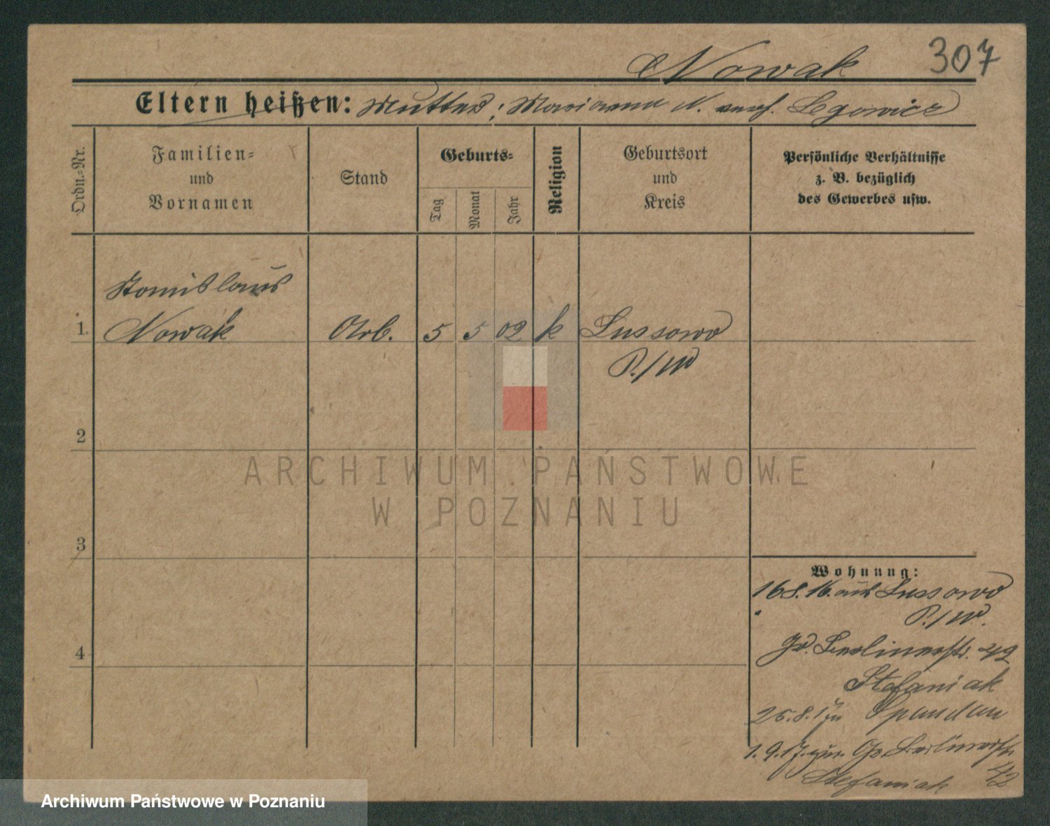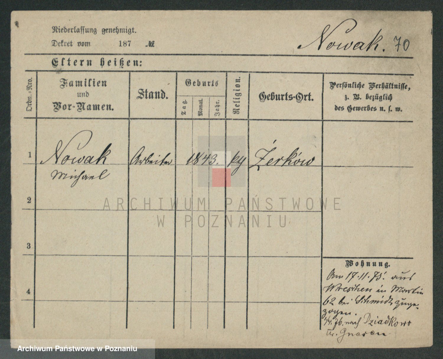 Podgląd karty osobowej dostępny jest po kliknięciu na nazwisko lub ikonkę karty. Można dokonywać powiększenia (ikony na górze) lub przechodzić między kolejnymi skanami (strzałki po bokach).