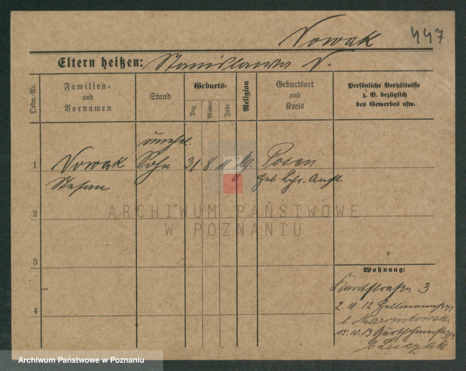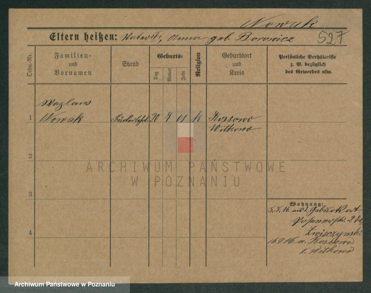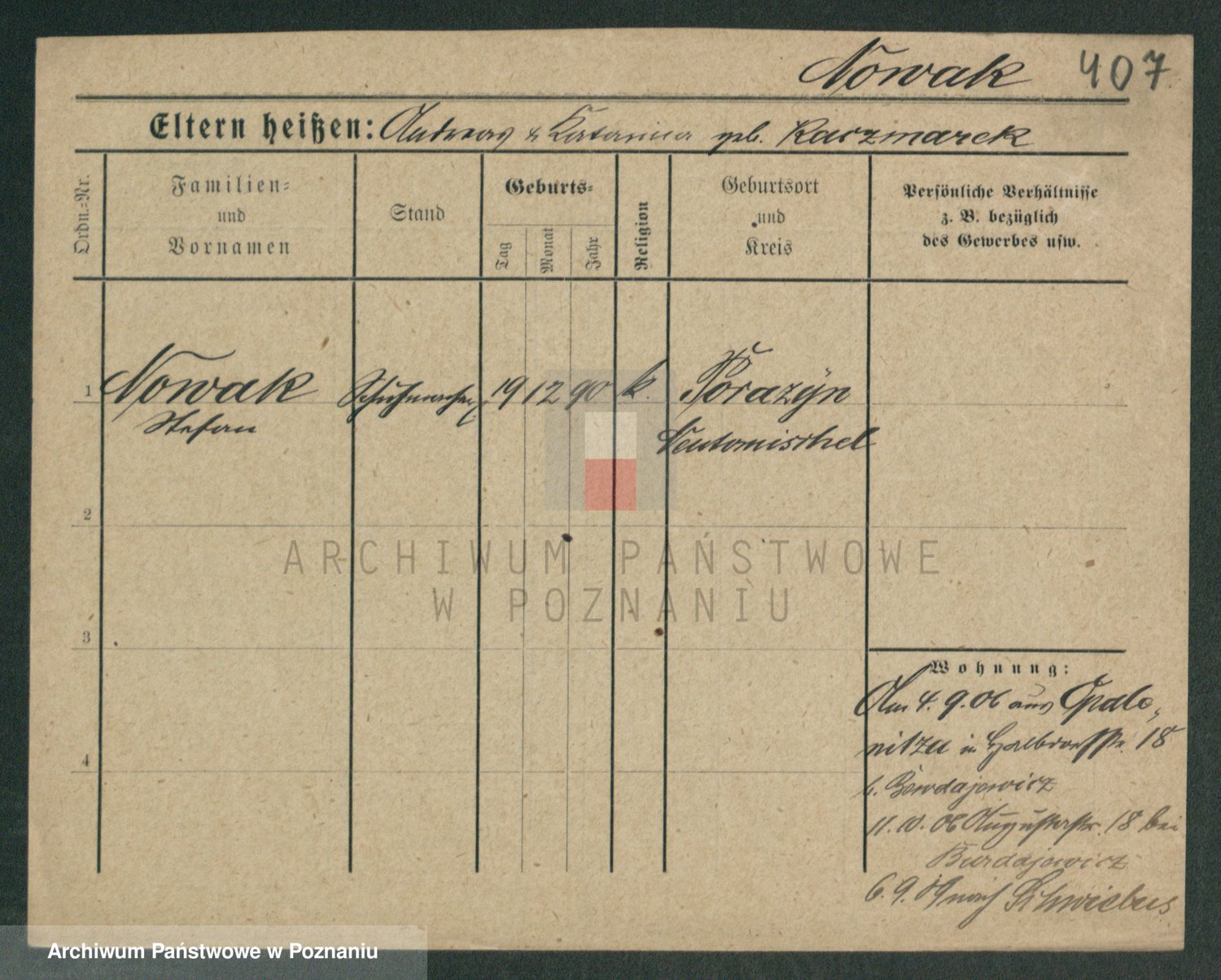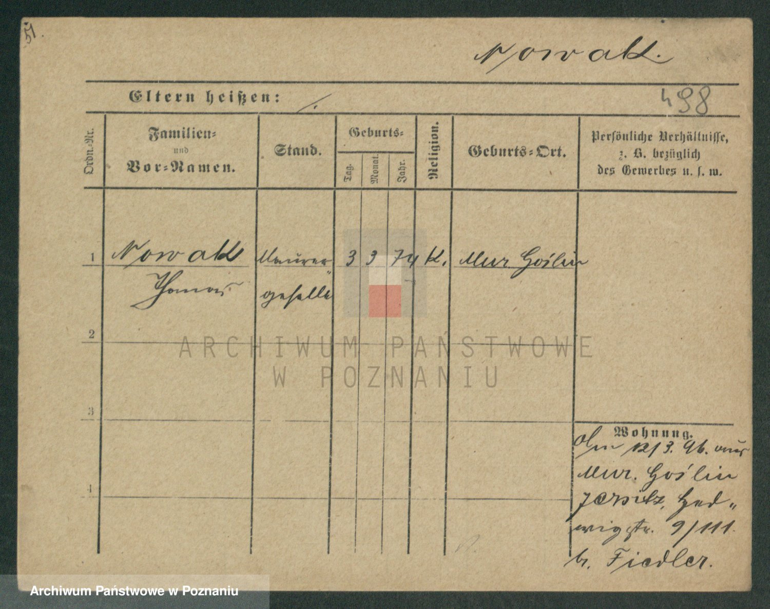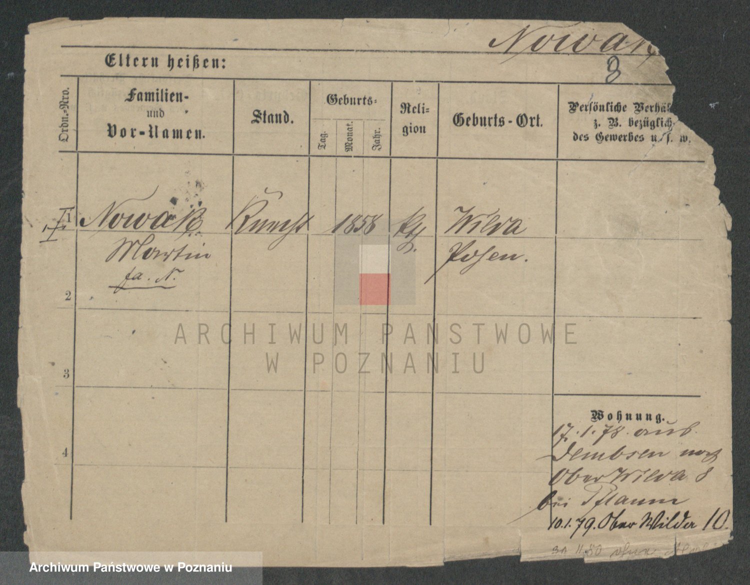 Podgląd karty osobowej dostępny jest po kliknięciu na nazwisko lub ikonkę karty. Można dokonywać powiększenia (ikony na górze) lub przechodzić między kolejnymi skanami (strzałki po bokach).