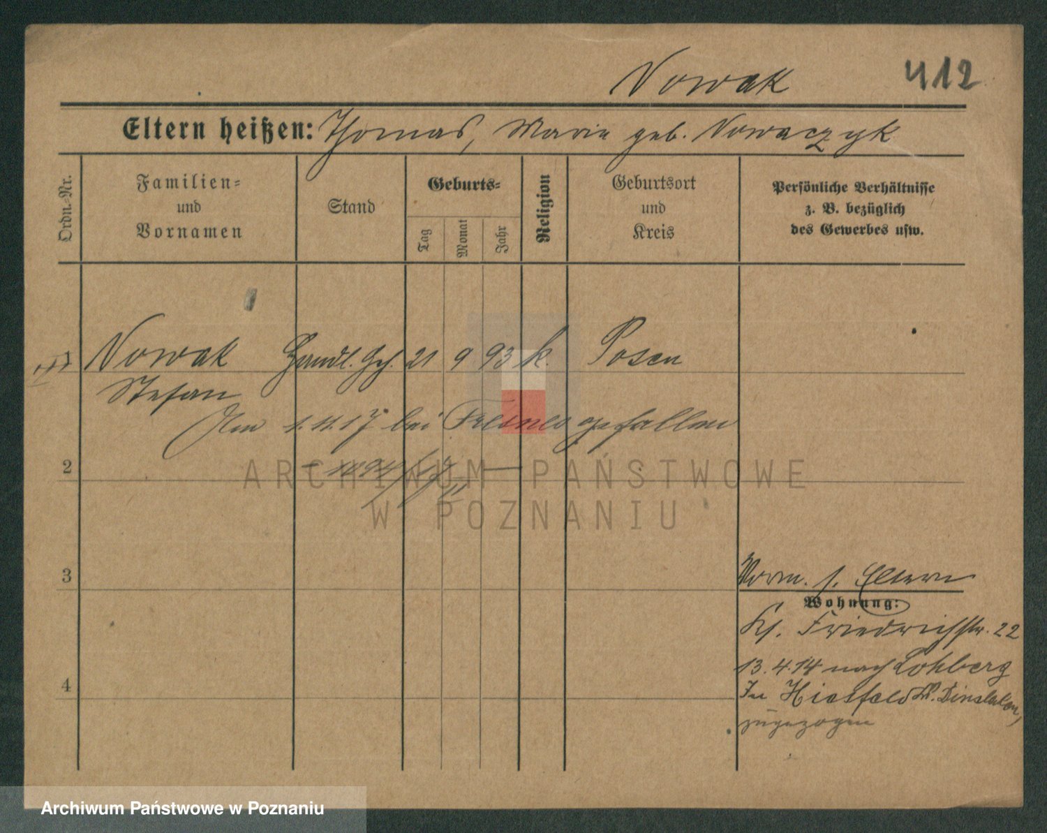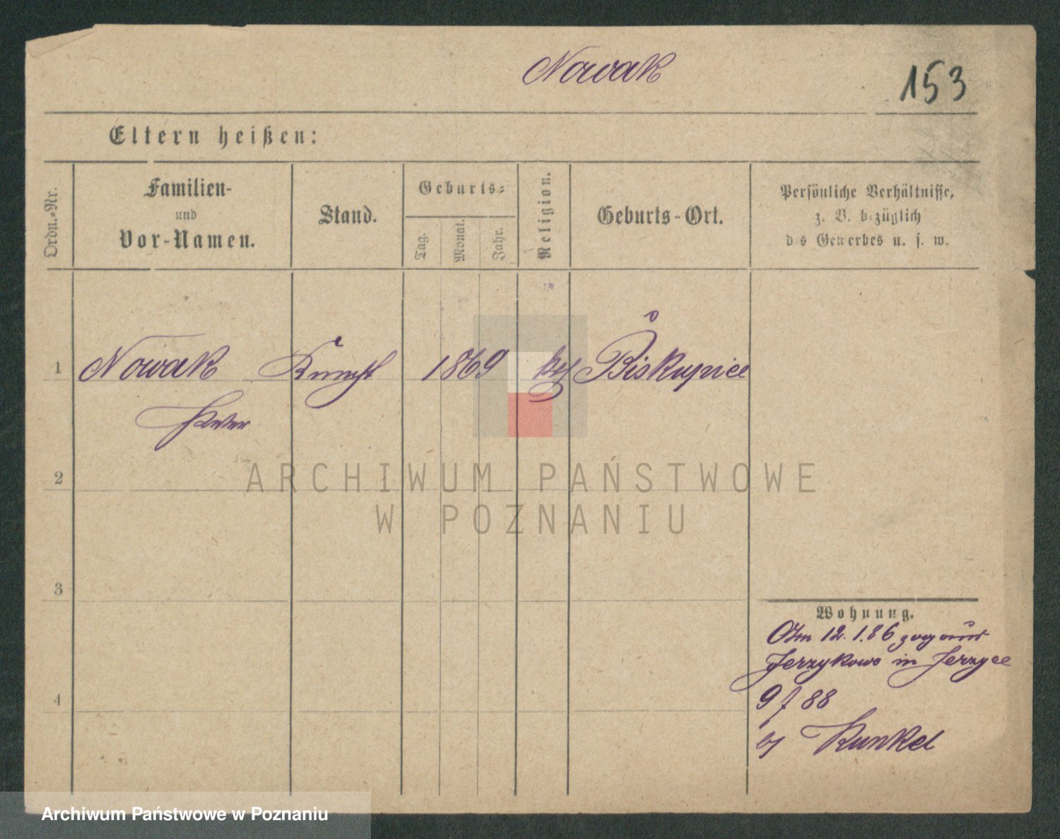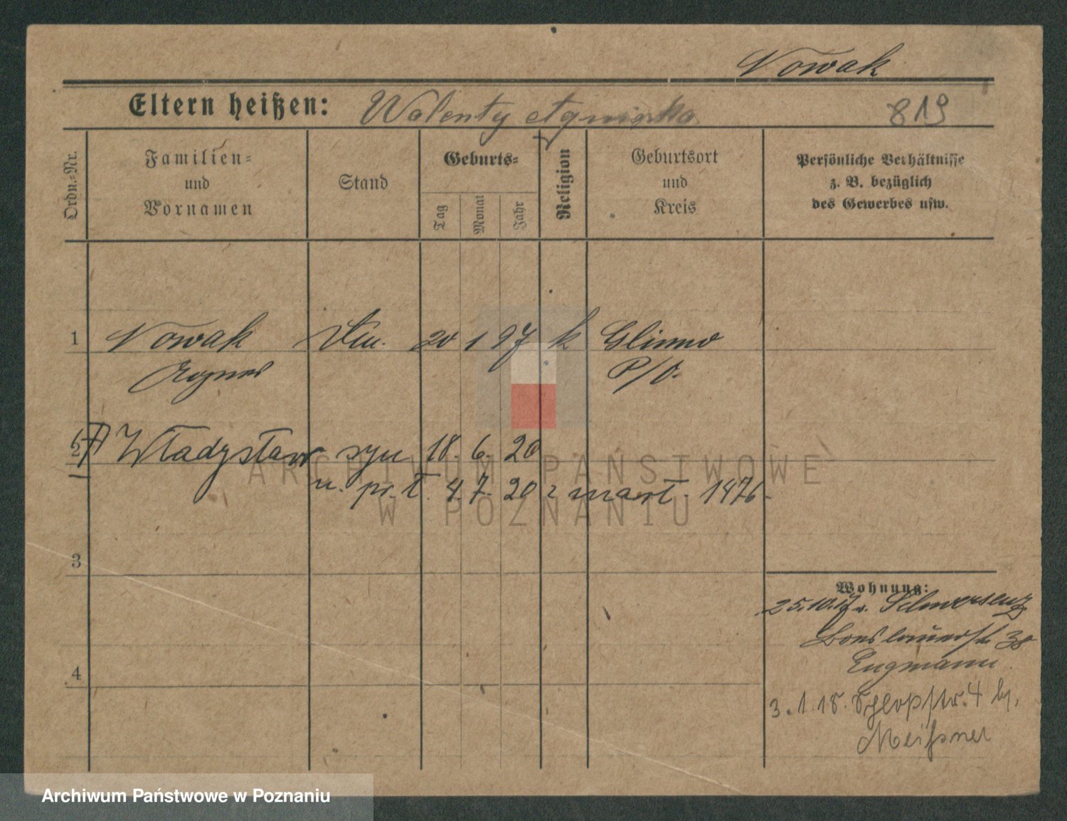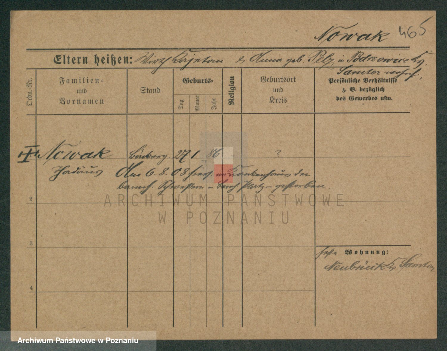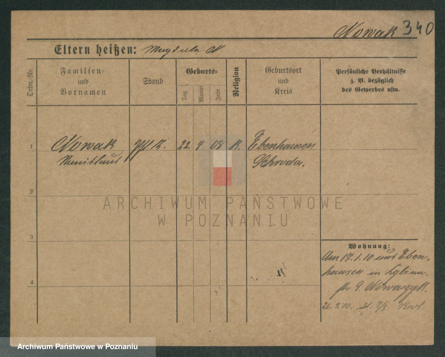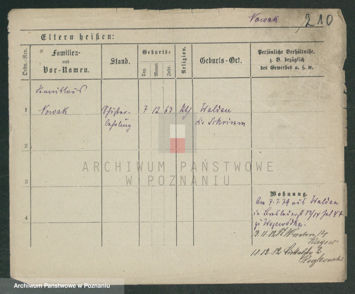 Podgląd karty osobowej dostępny jest po kliknięciu na nazwisko lub ikonkę karty. Można dokonywać powiększenia (ikony na górze) lub przechodzić między kolejnymi skanami (strzałki po bokach).