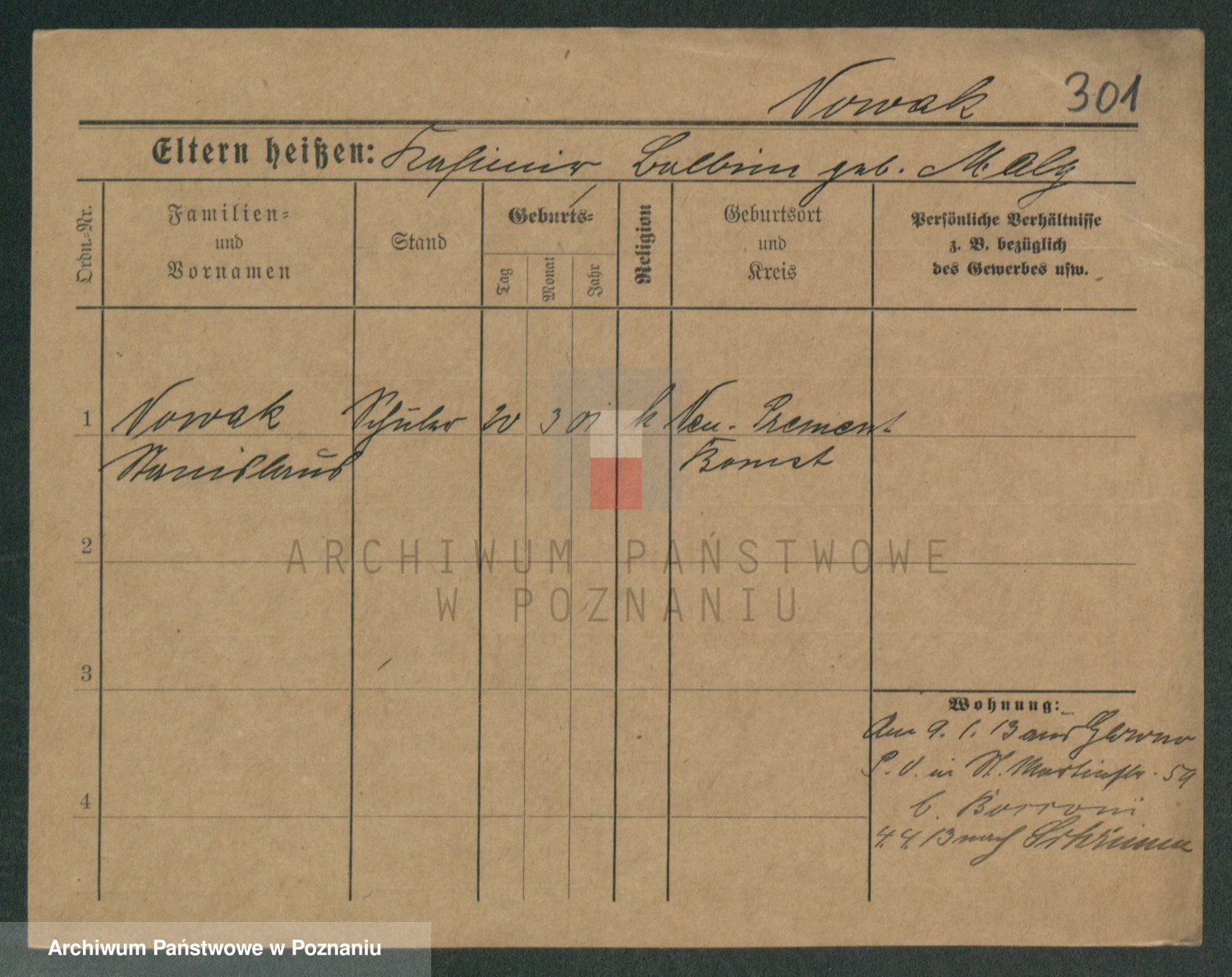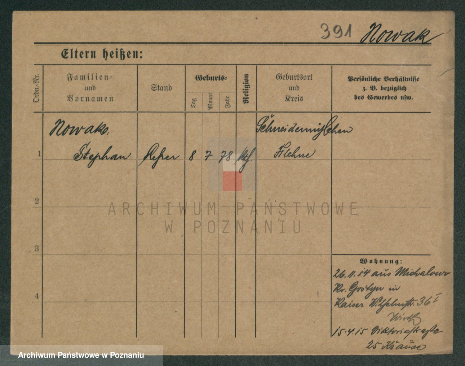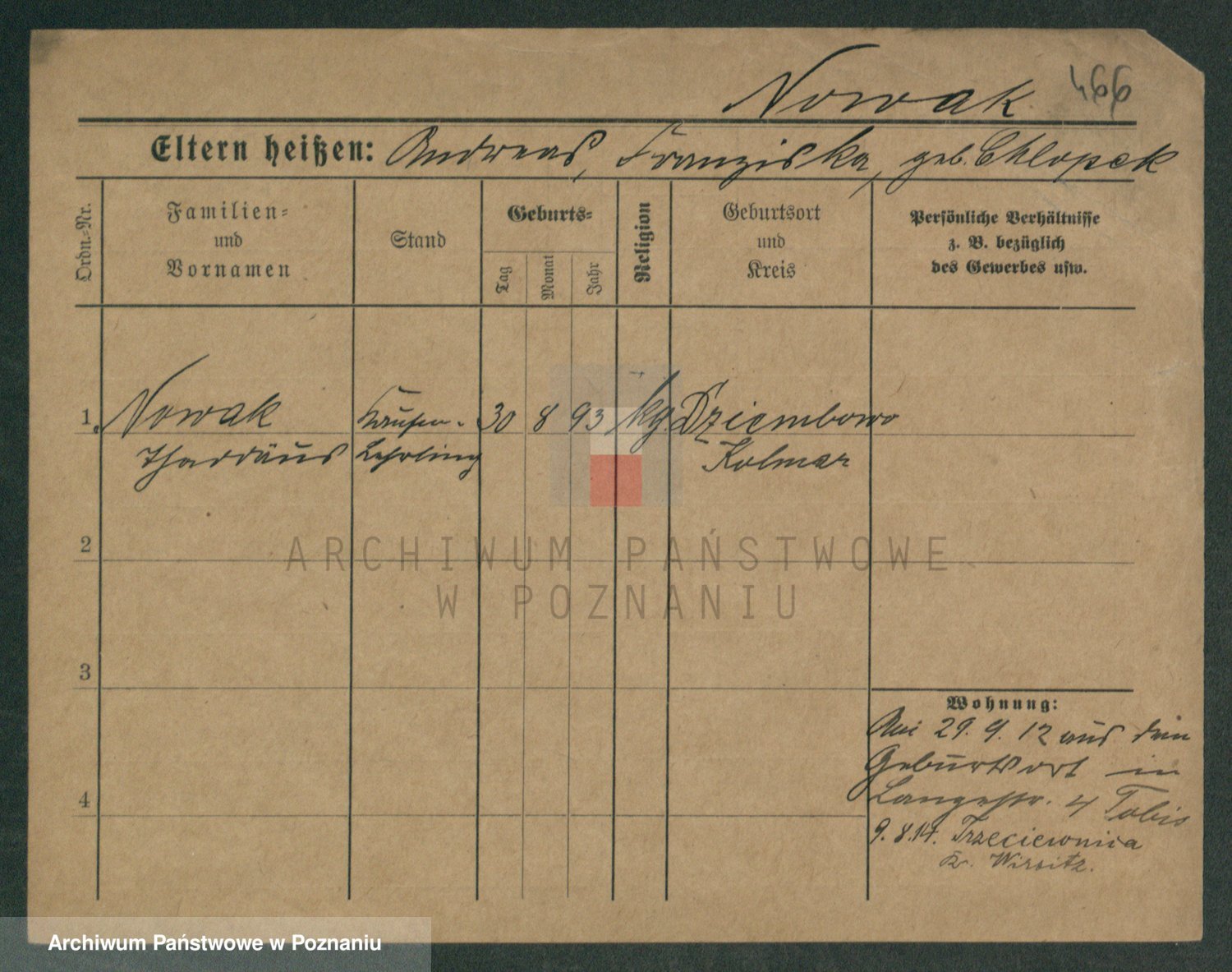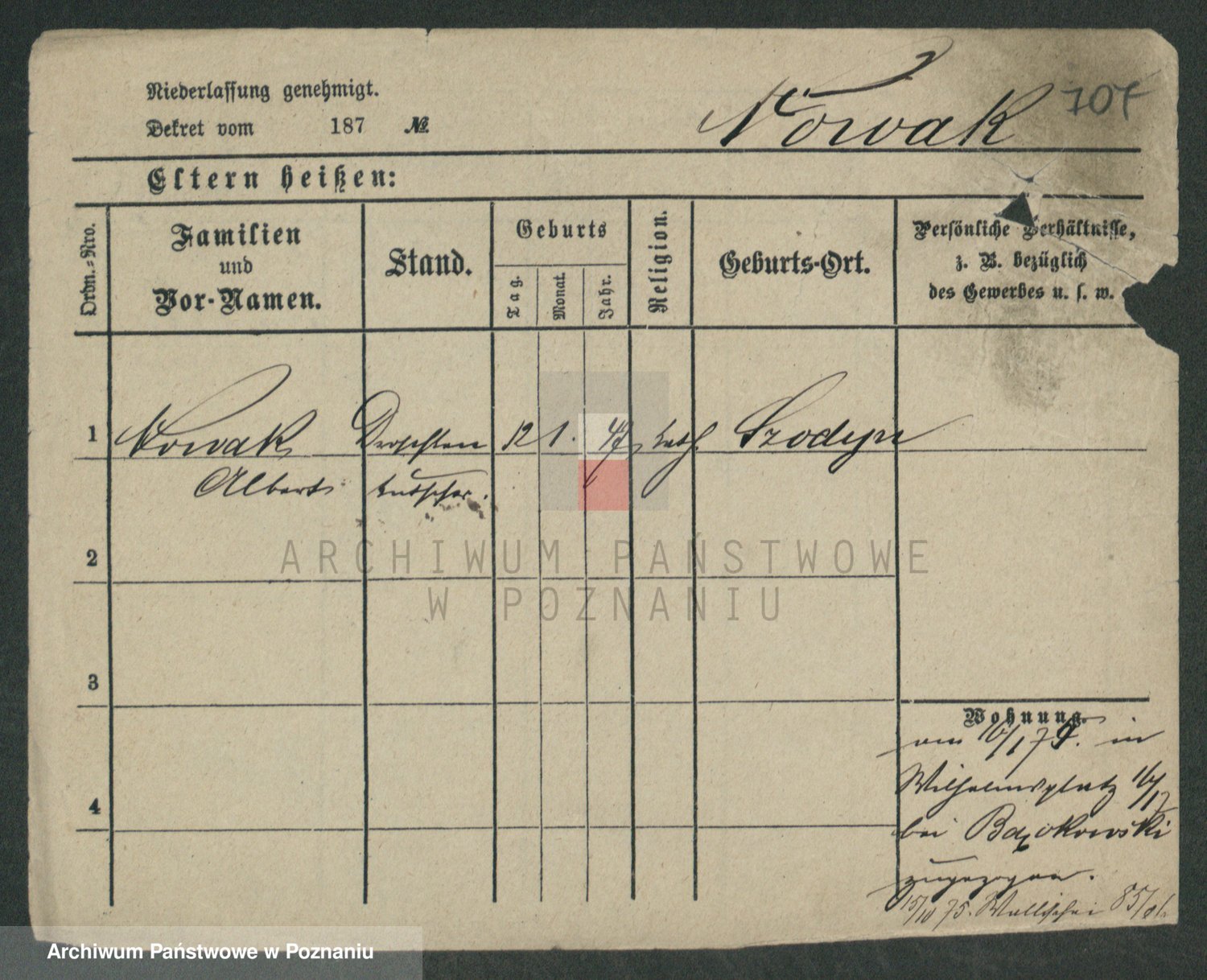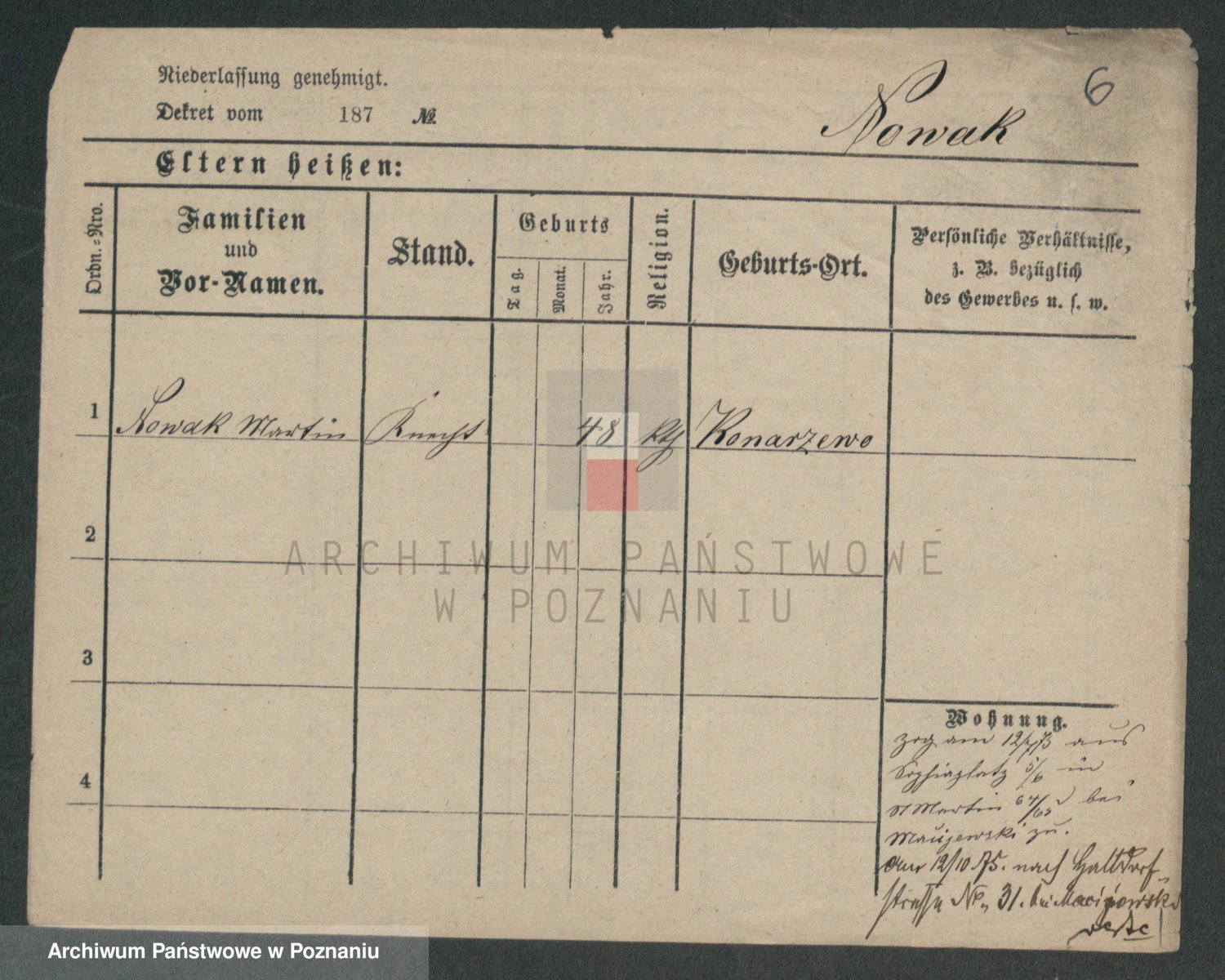 Podgląd karty osobowej dostępny jest po kliknięciu na nazwisko lub ikonkę karty. Można dokonywać powiększenia (ikony na górze) lub przechodzić między kolejnymi skanami (strzałki po bokach).