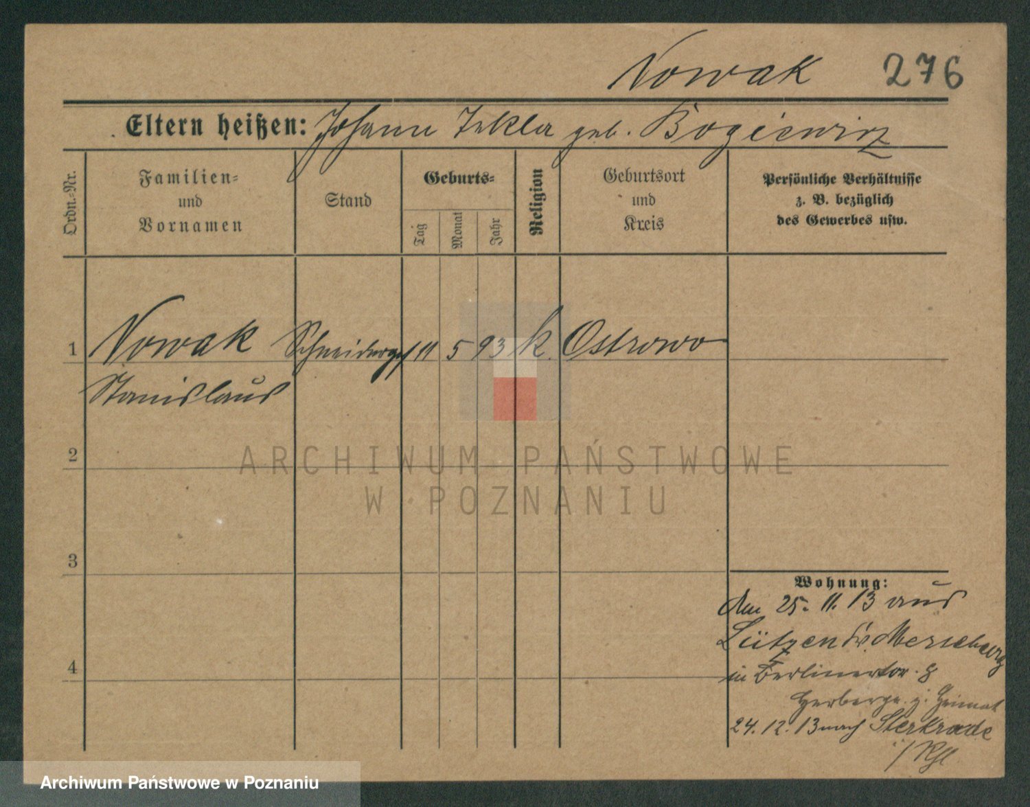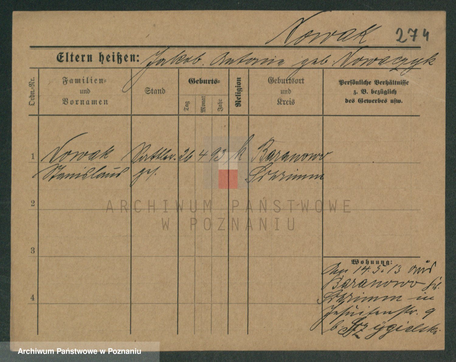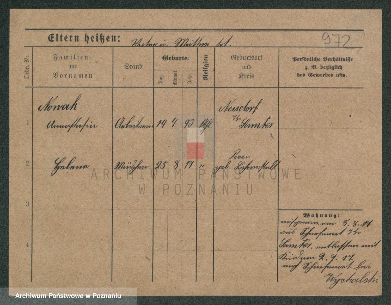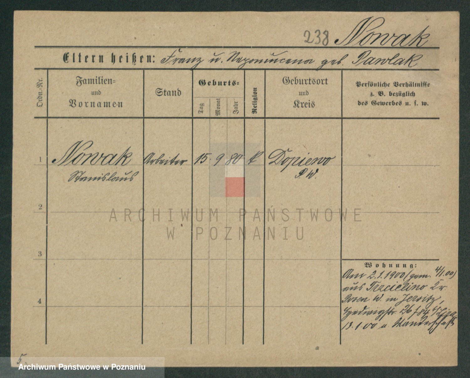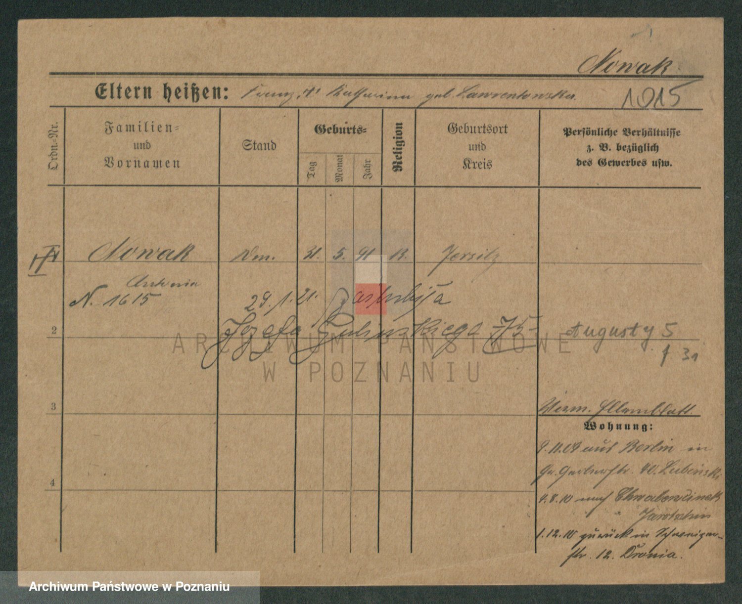 Podgląd karty osobowej dostępny jest po kliknięciu na nazwisko lub ikonkę karty. Można dokonywać powiększenia (ikony na górze) lub przechodzić między kolejnymi skanami (strzałki po bokach).