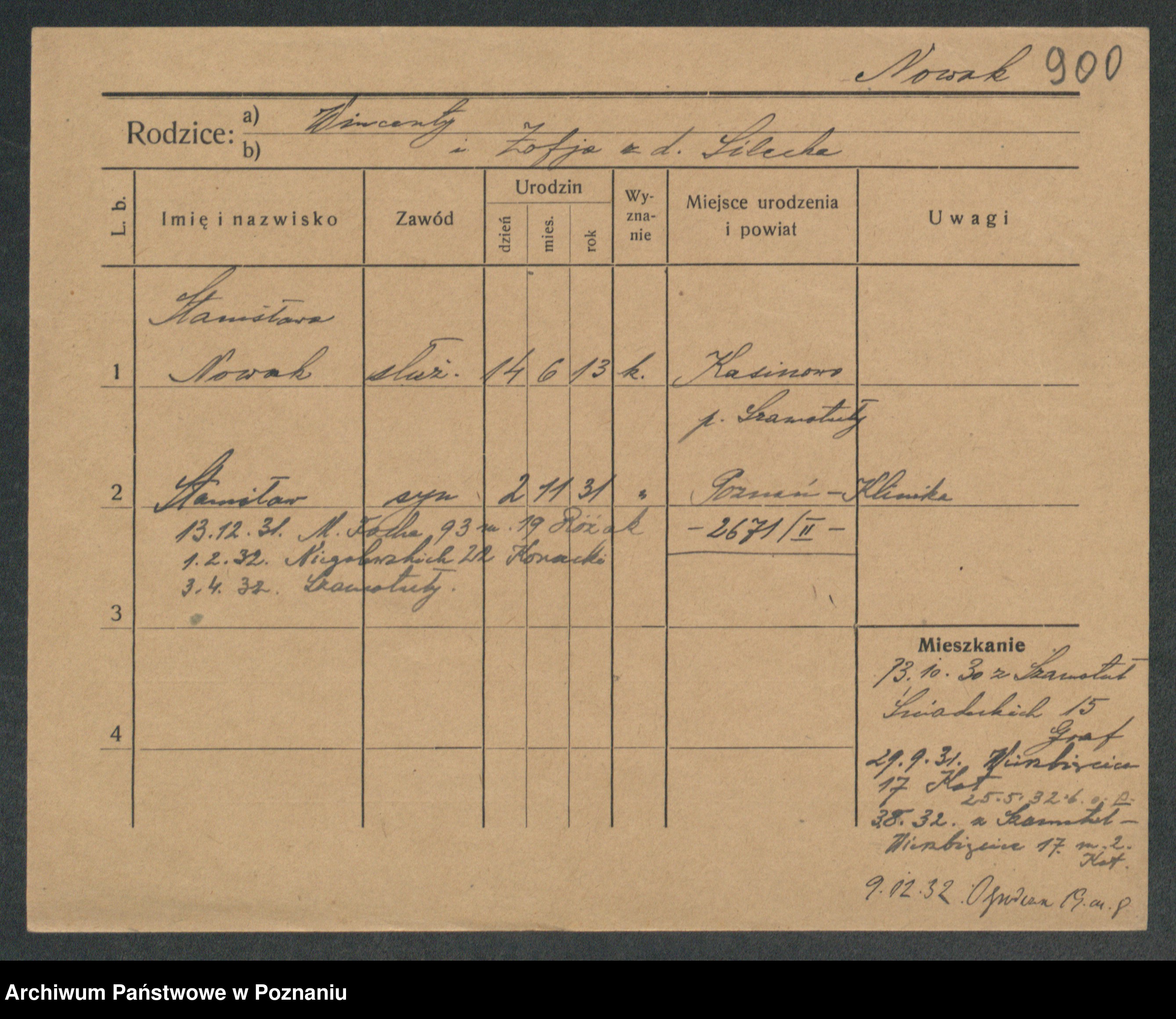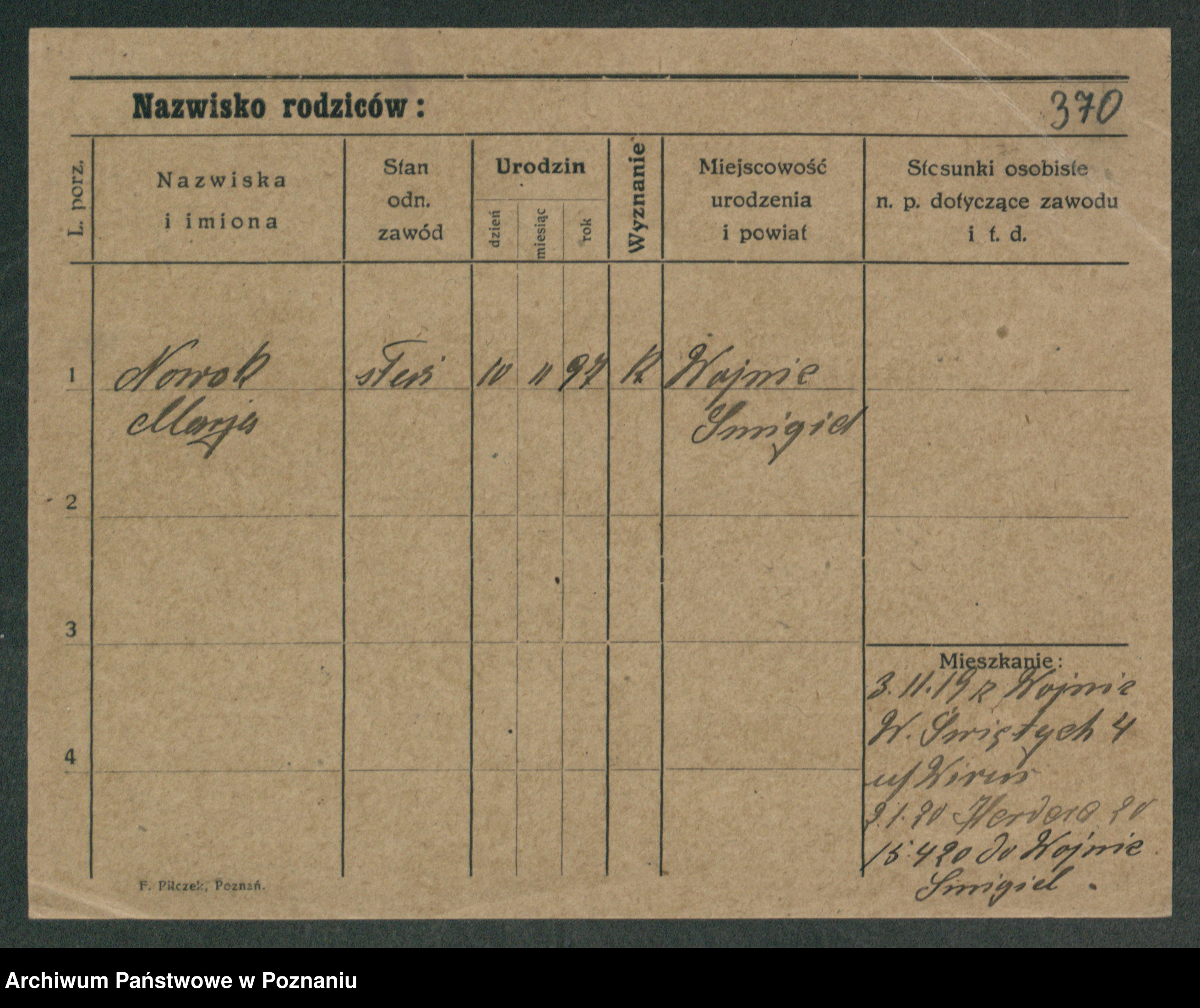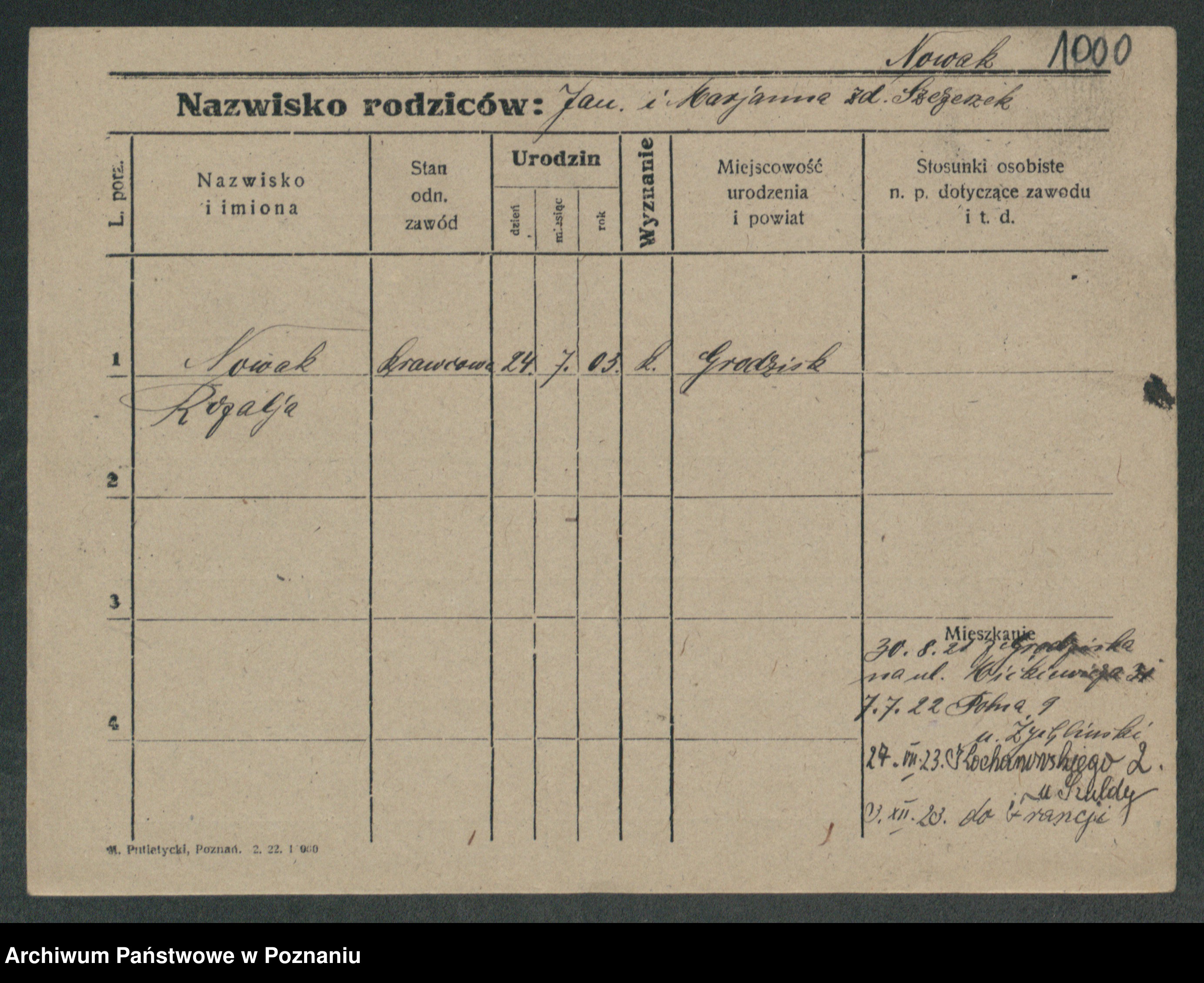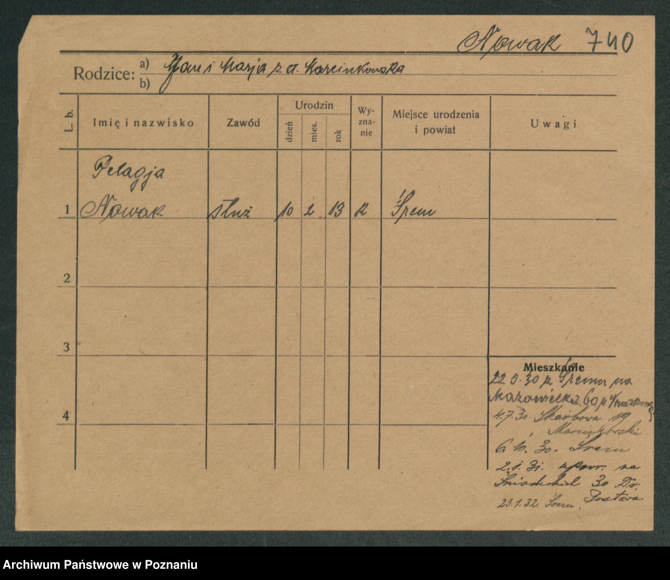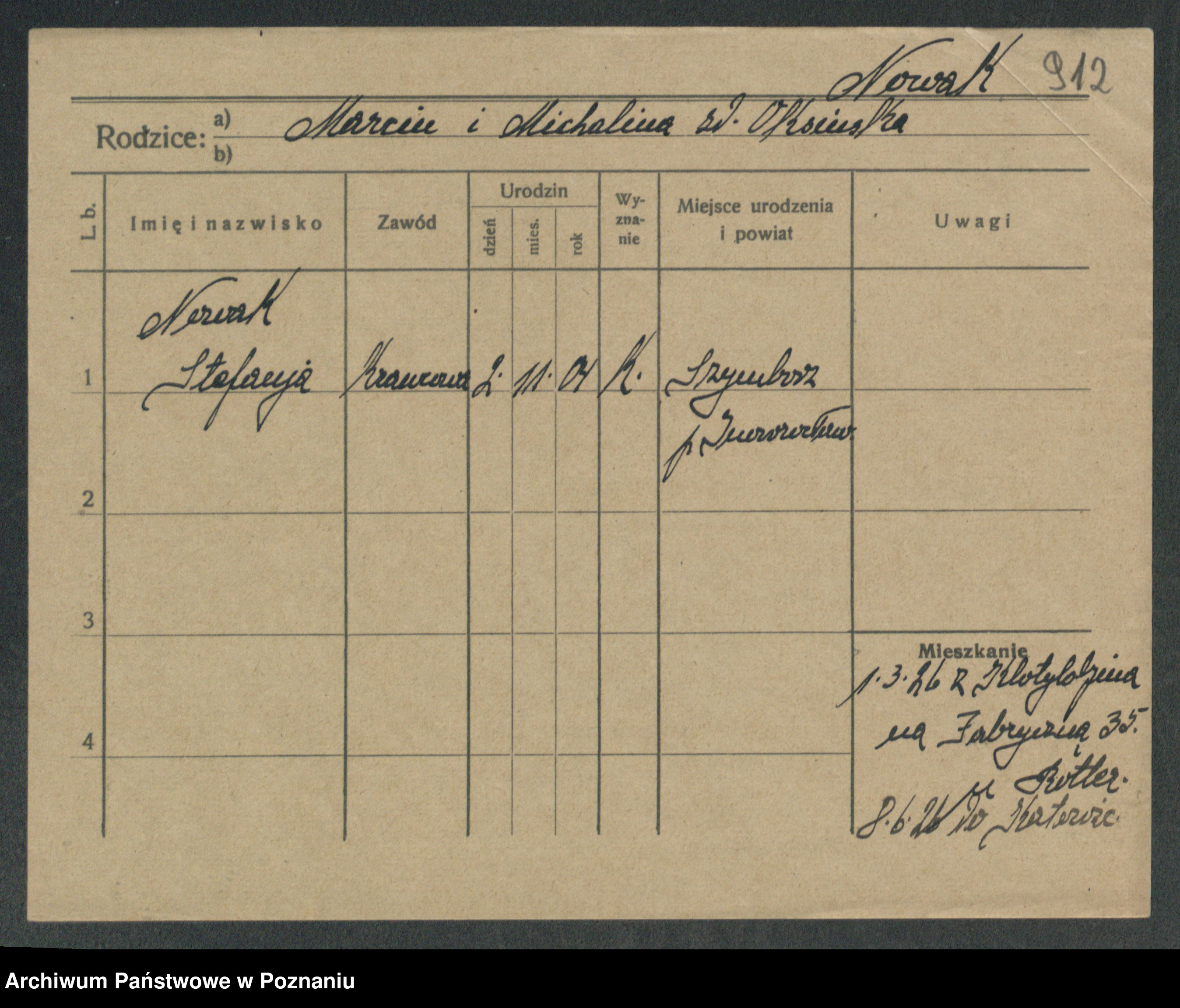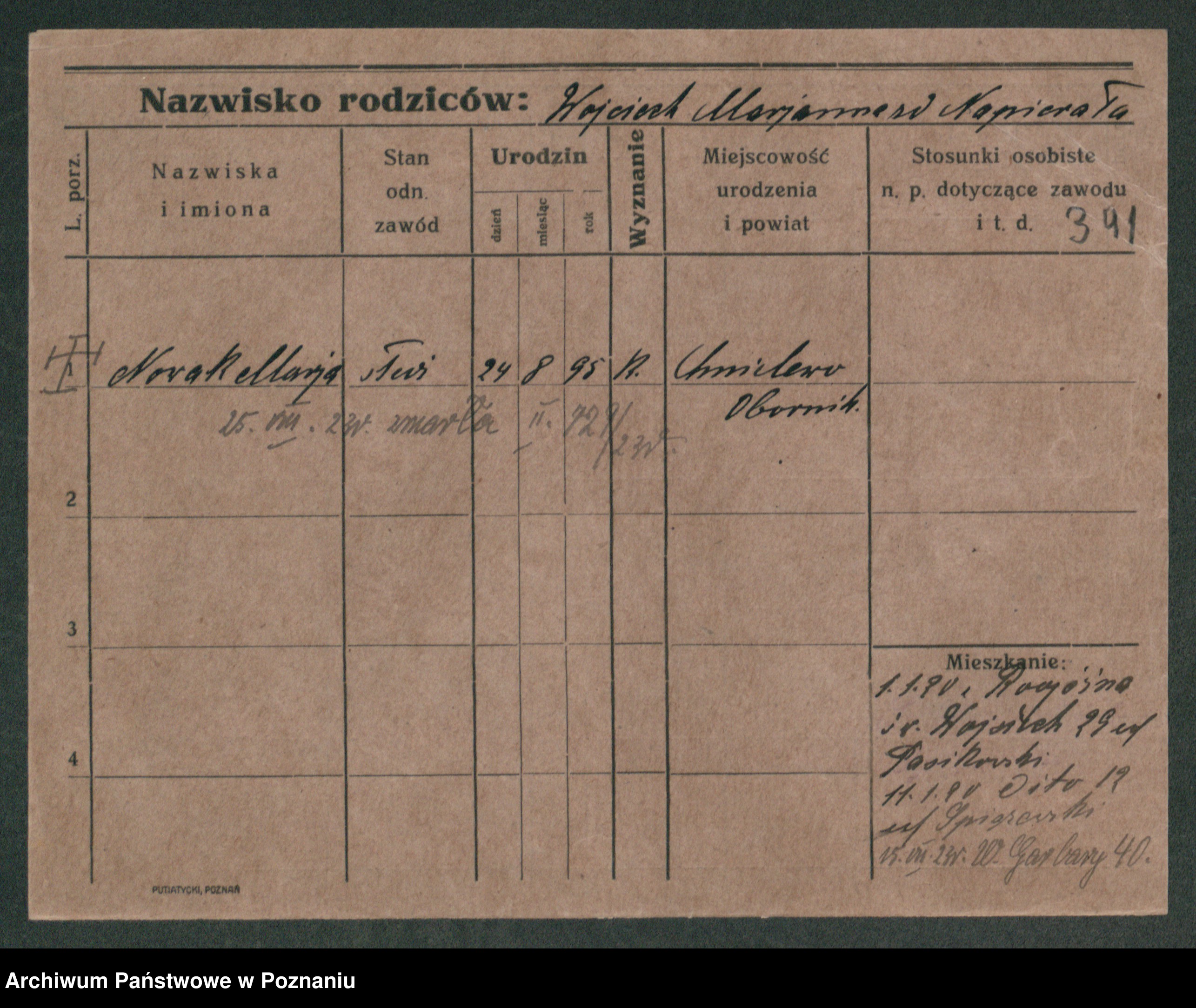 Podgląd karty osobowej dostępny jest po kliknięciu na nazwisko lub ikonkę karty. Można dokonywać powiększenia (ikony na górze) lub przechodzić między kolejnymi skanami (strzałki po bokach).