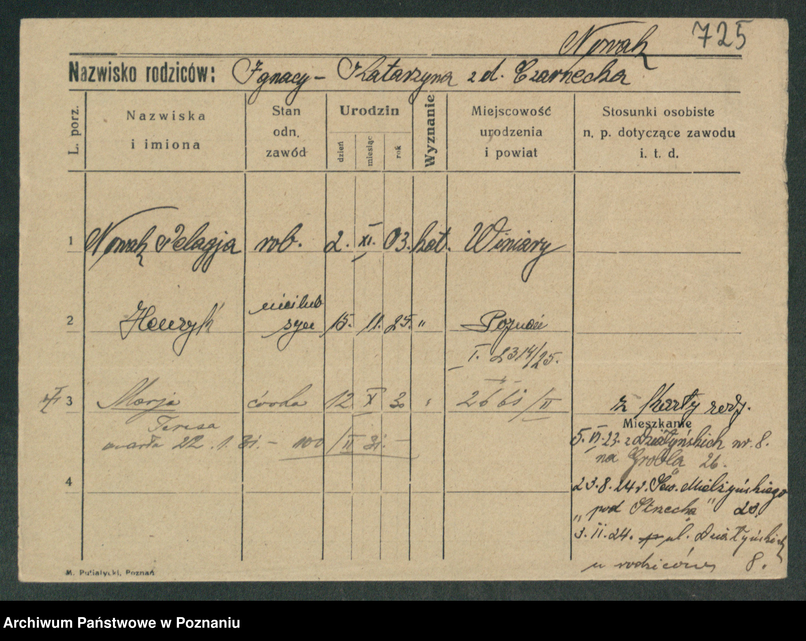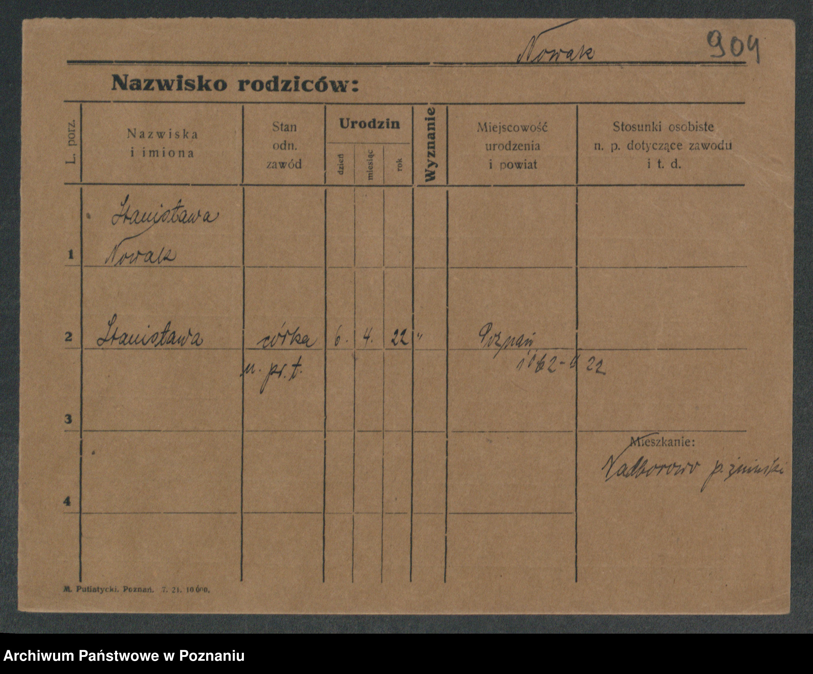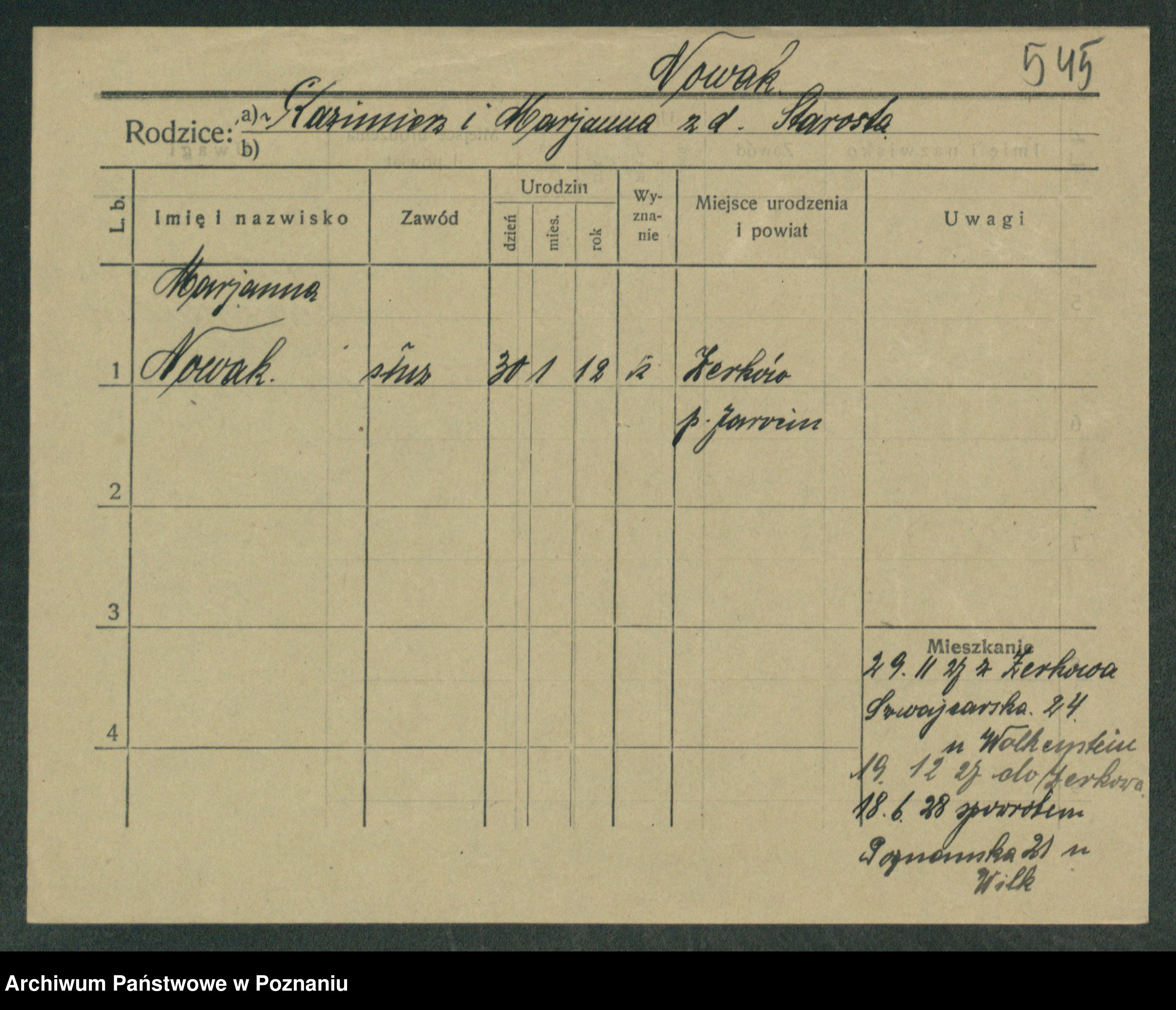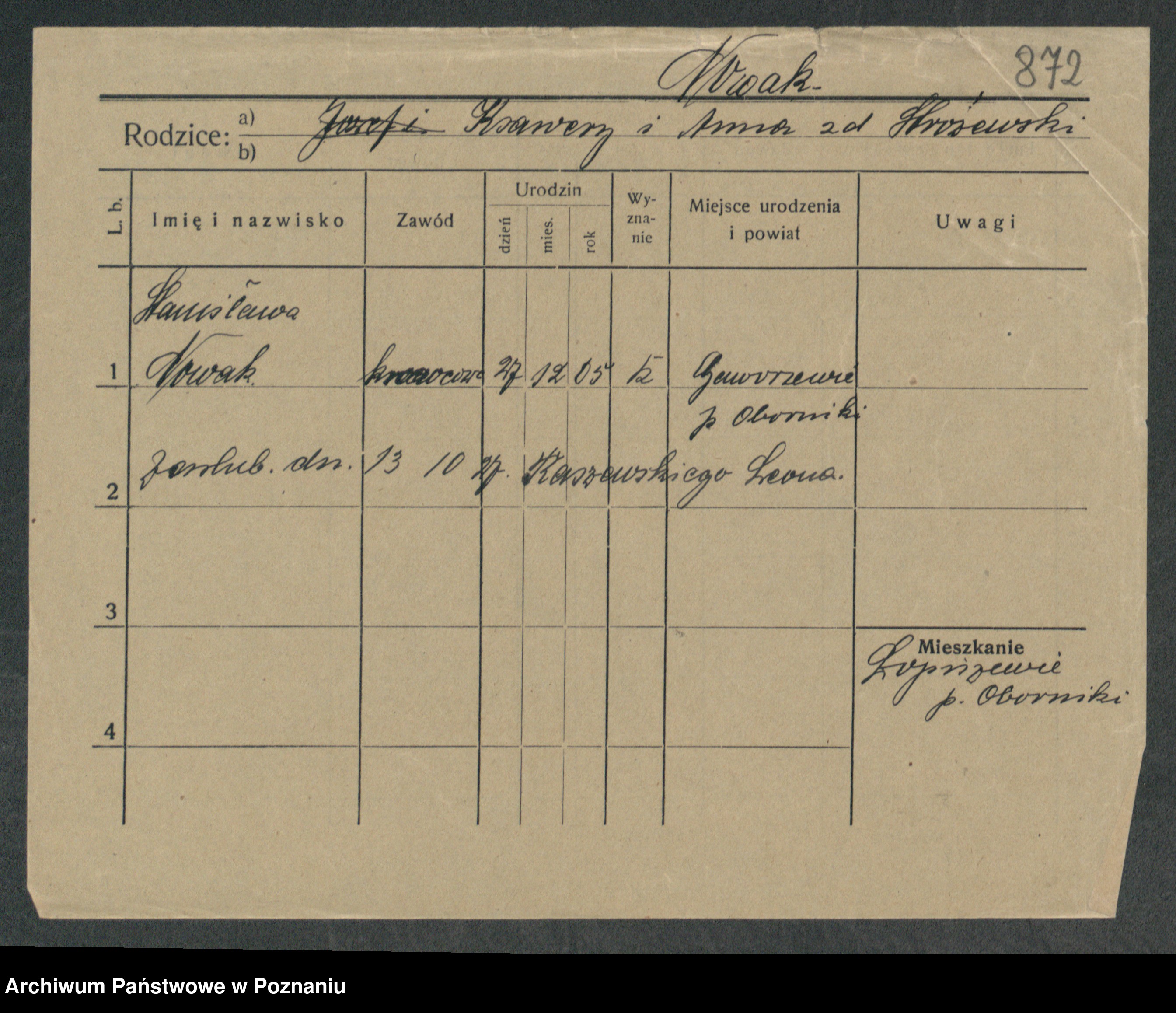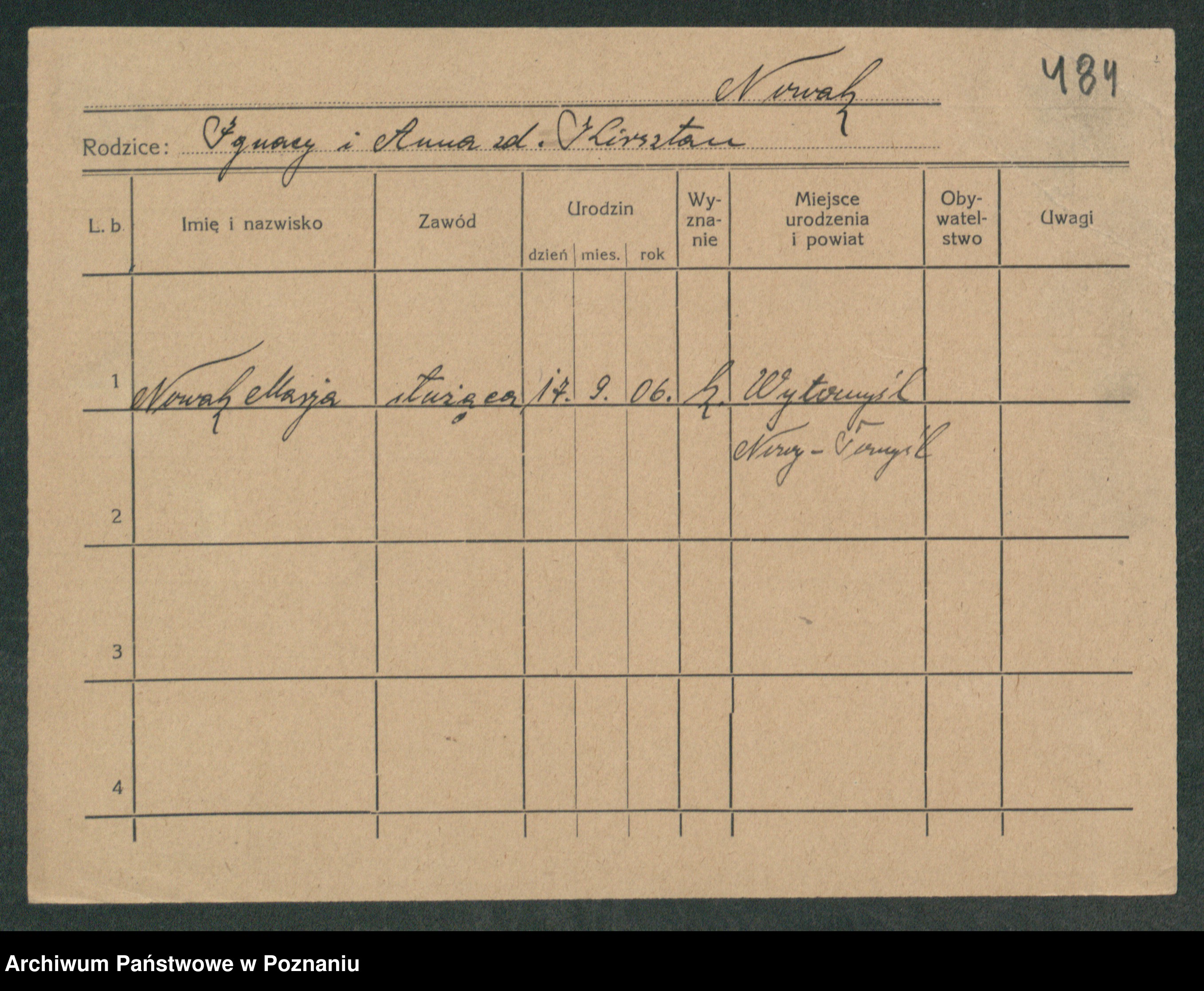Podgląd karty osobowej dostępny jest po kliknięciu na nazwisko lub ikonkę karty. Można dokonywać powiększenia (ikony na górze) lub przechodzić między kolejnymi skanami (strzałki po bokach).