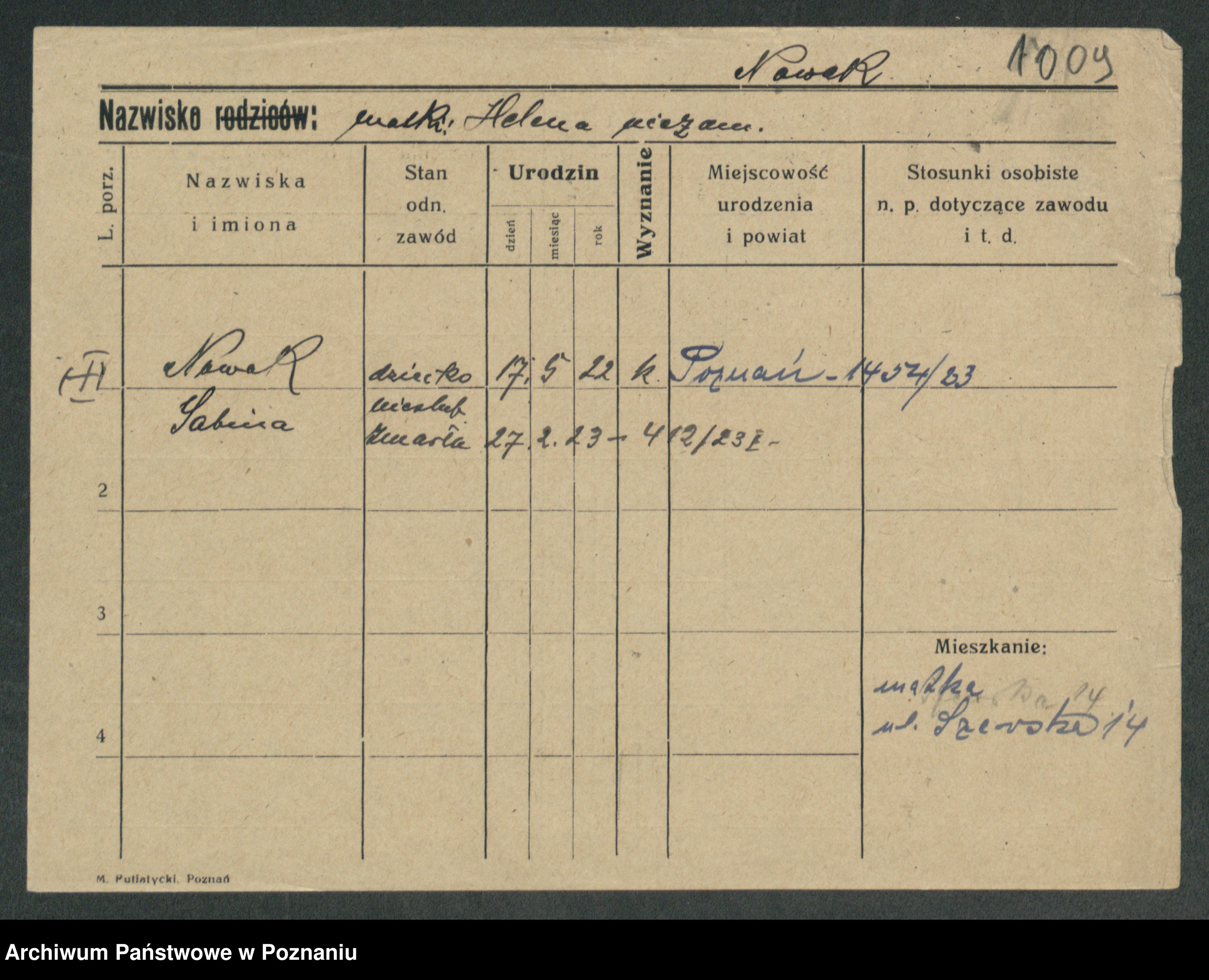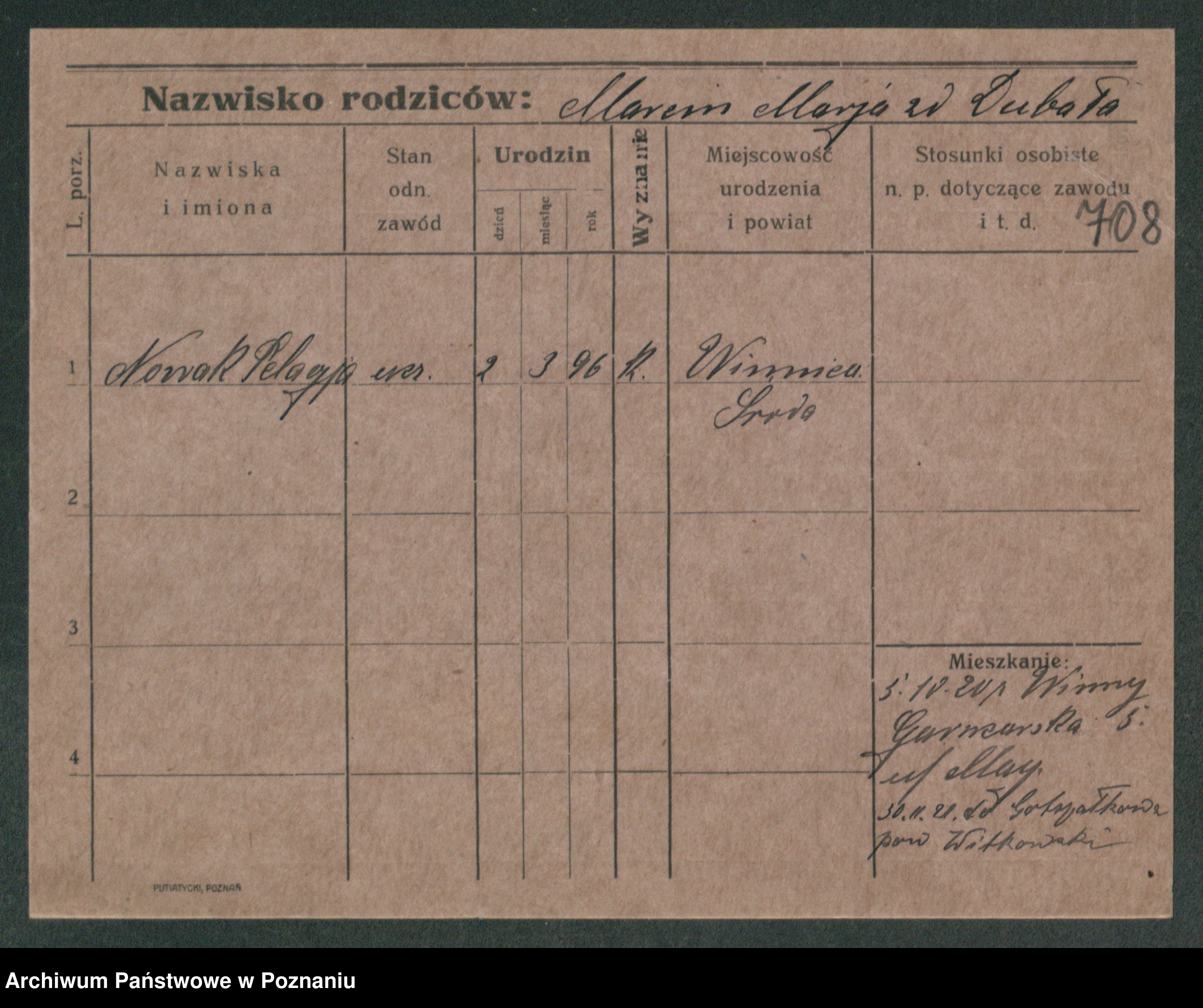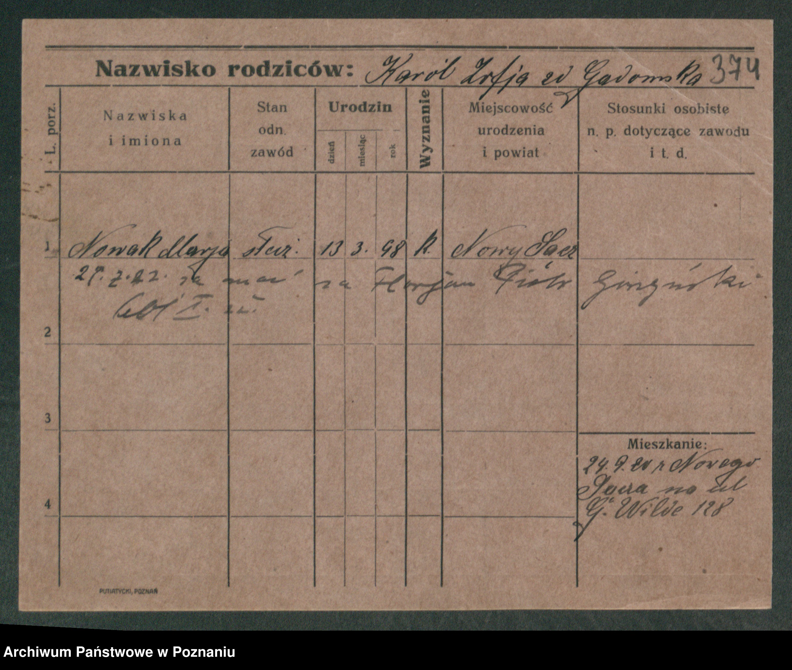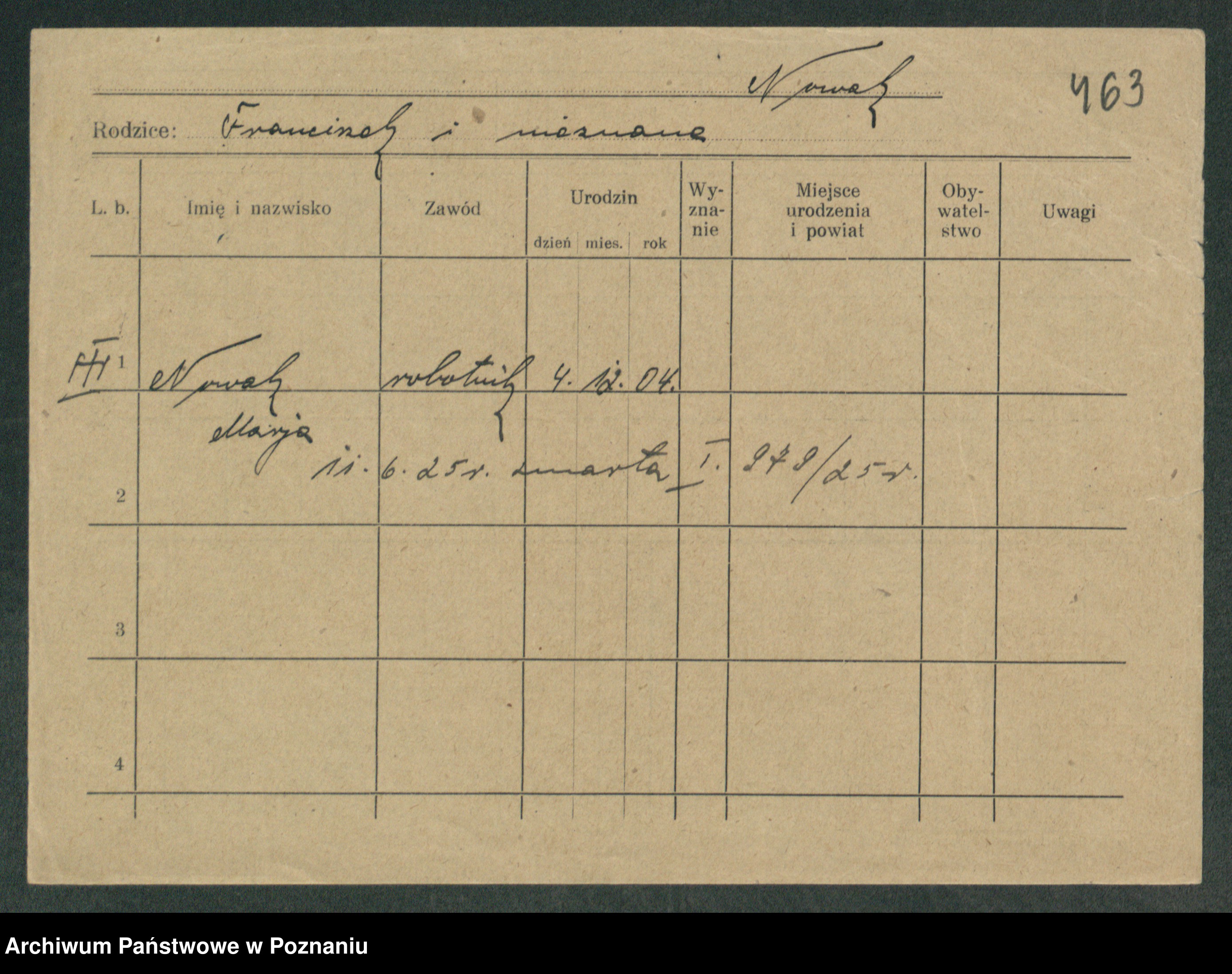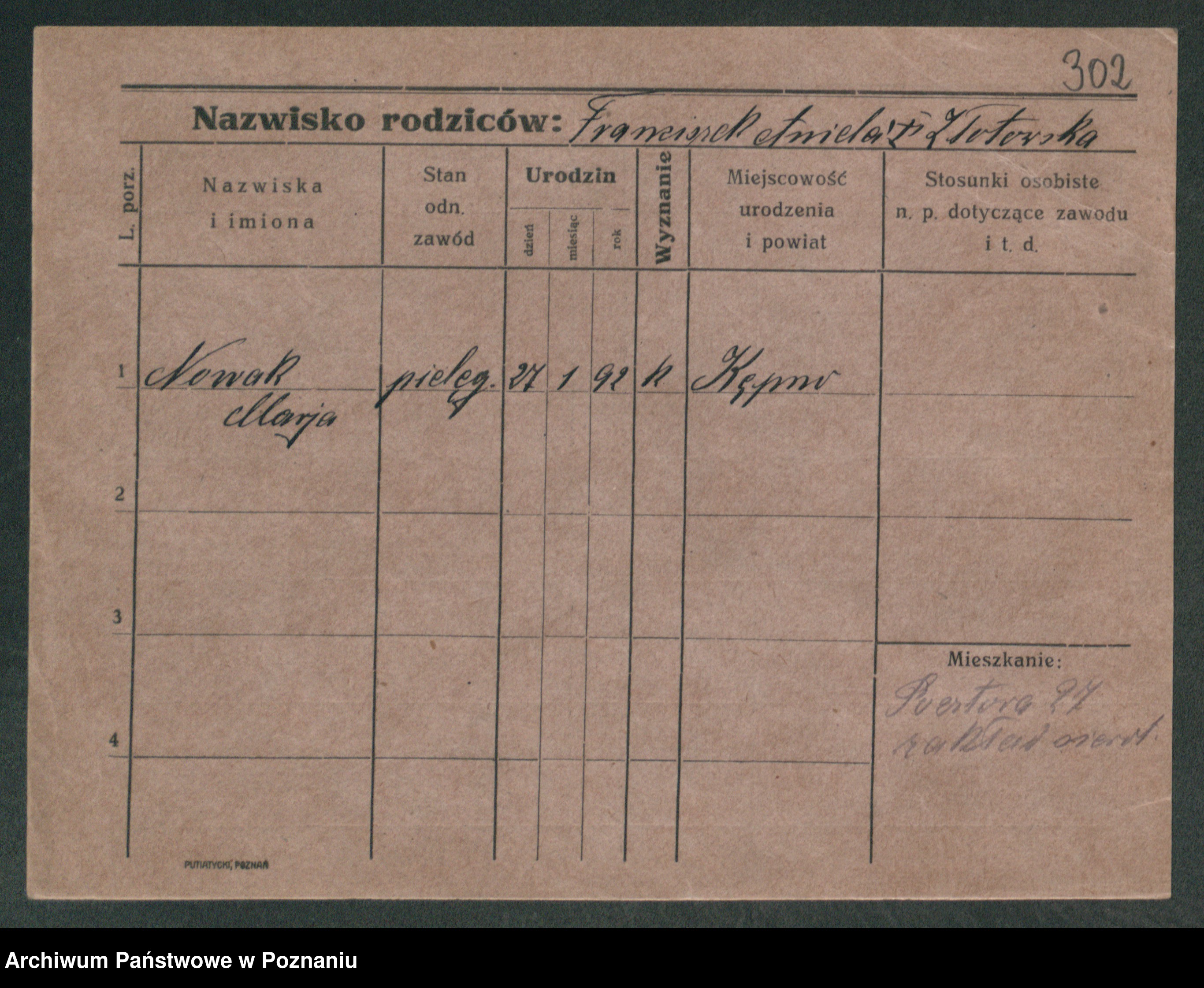 Podgląd karty osobowej dostępny jest po kliknięciu na nazwisko lub ikonkę karty. Można dokonywać powiększenia (ikony na górze) lub przechodzić między kolejnymi skanami (strzałki po bokach).