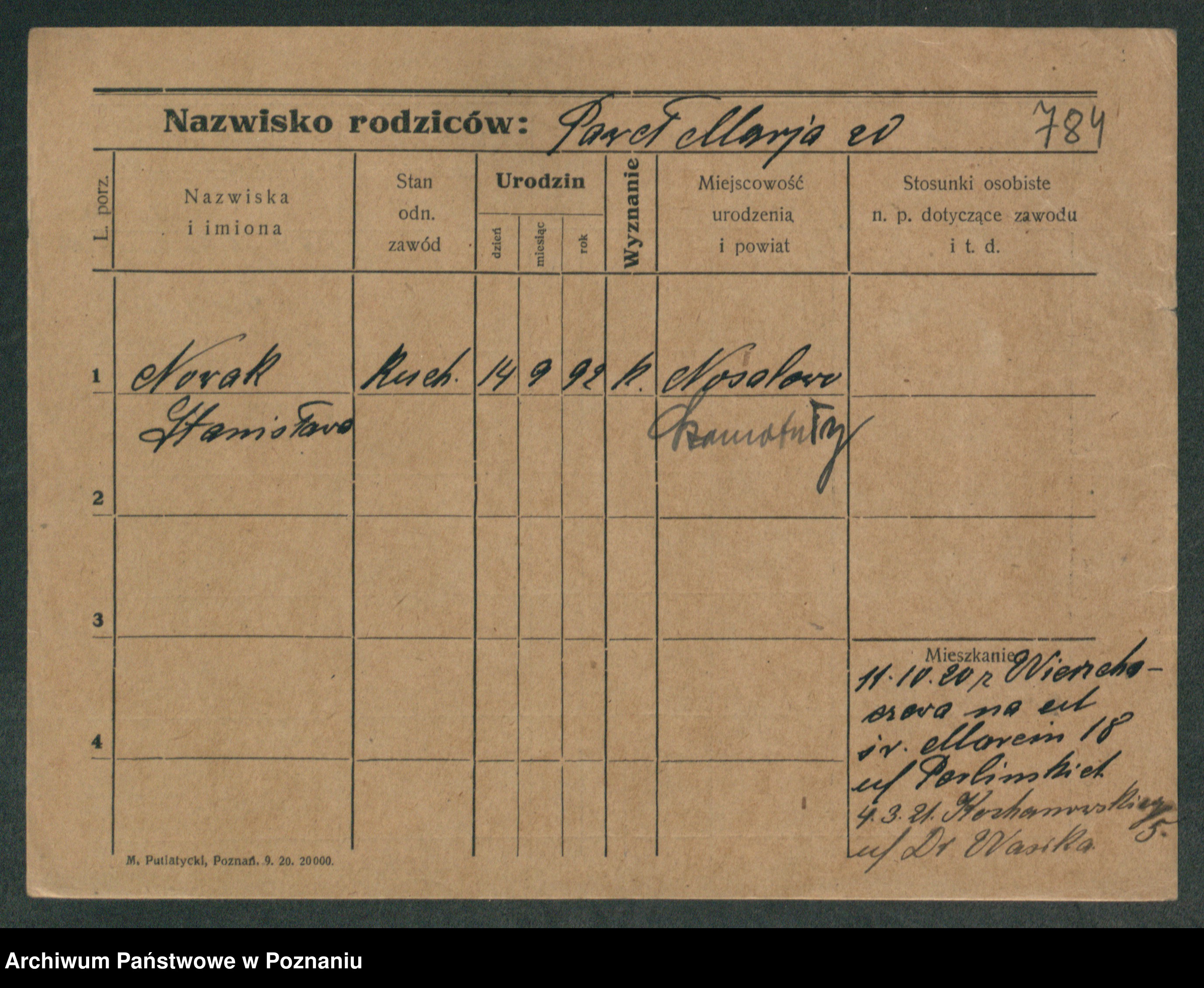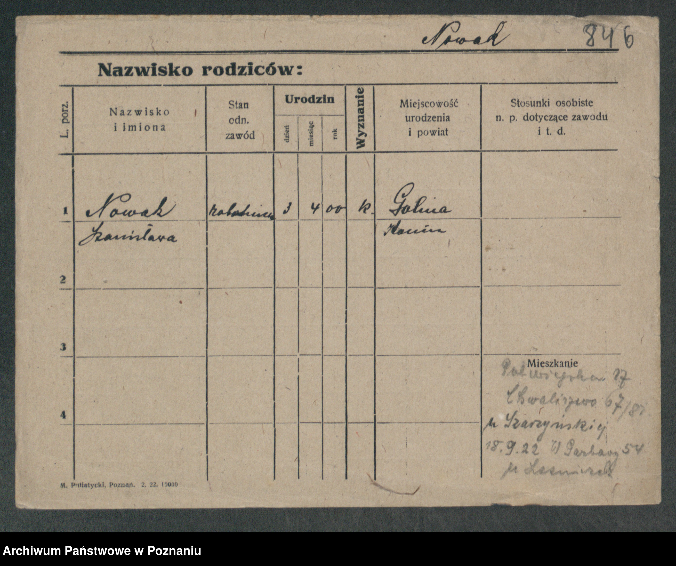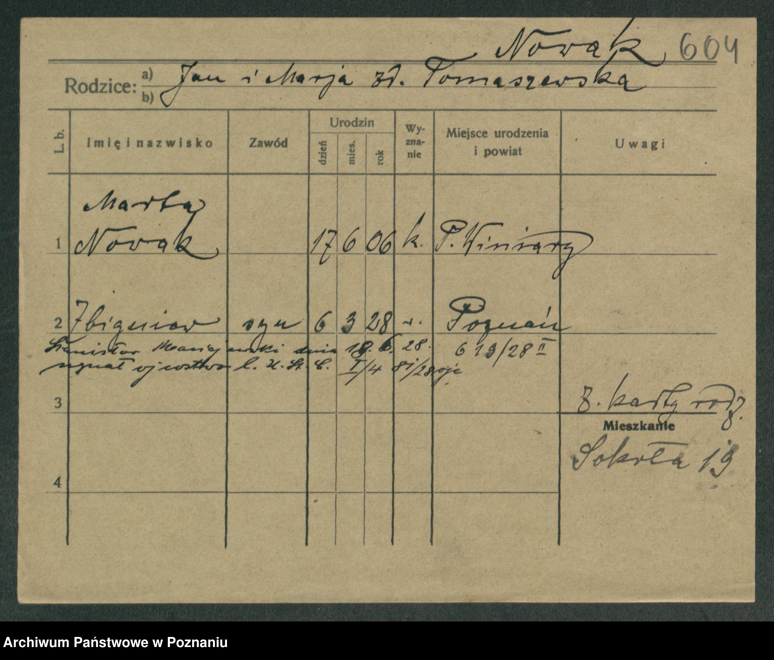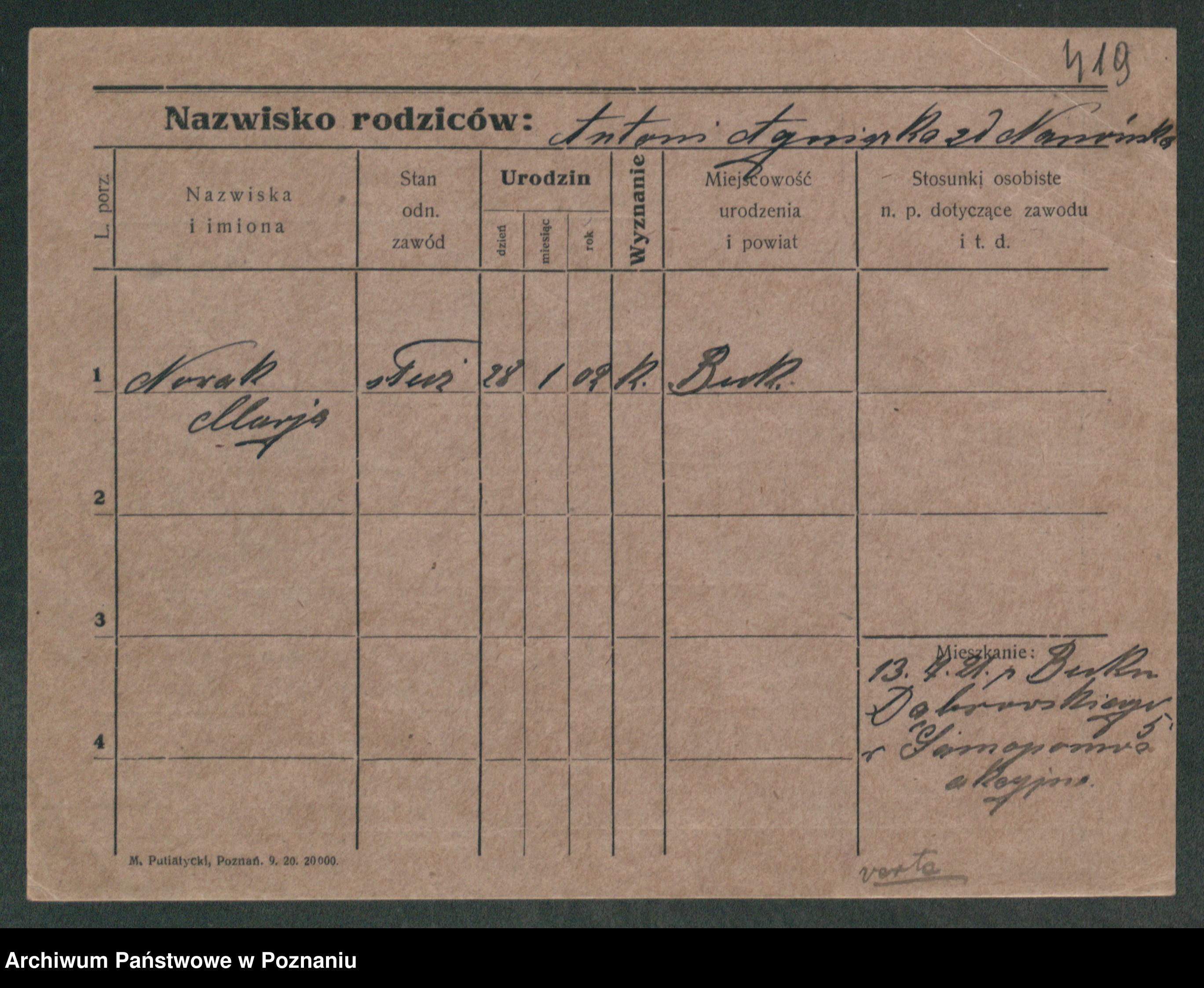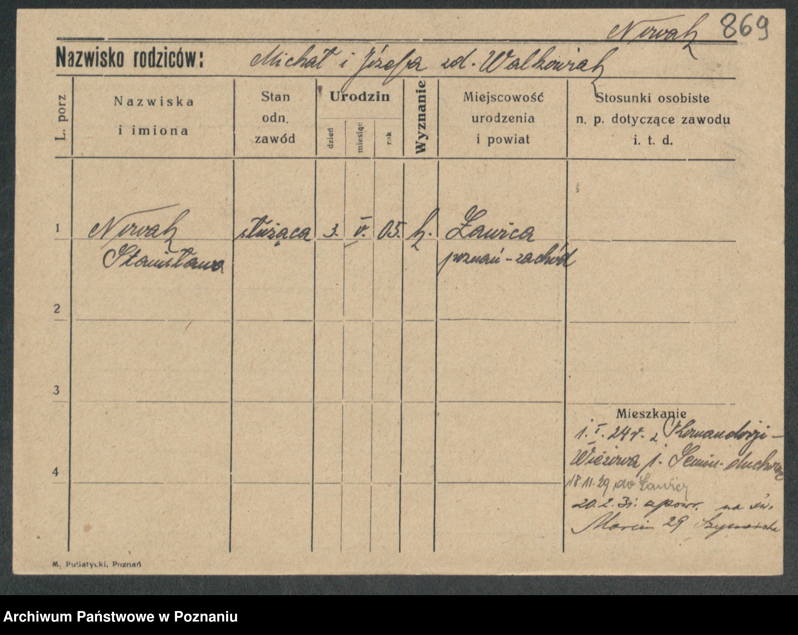 Podgląd karty osobowej dostępny jest po kliknięciu na nazwisko lub ikonkę karty. Można dokonywać powiększenia (ikony na górze) lub przechodzić między kolejnymi skanami (strzałki po bokach).